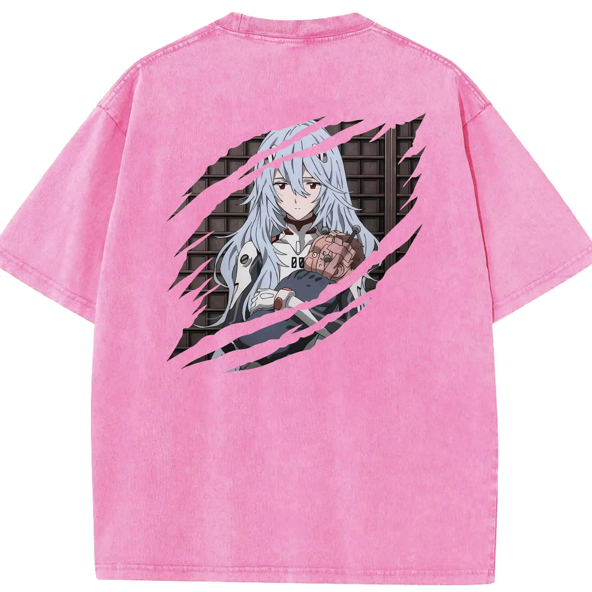 エヴァンゲリオン グッズ,綾波レイ - 綿100% ヴィンテージ風 半袖Tシャツ ・ フロントプリント ・ 柔らか肌触り ・ 通気性 快適 ・ スポーツ カジュアル 外出用