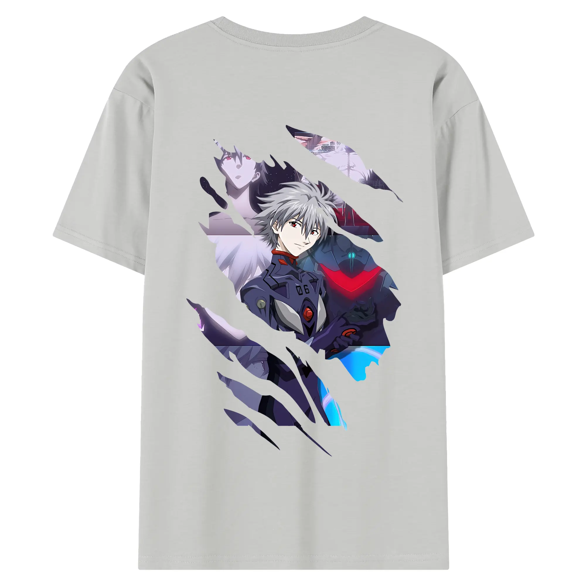 エヴァンゲリオン グッズ,渚カヲル - 綿100% ヴィンテージ風 半袖Tシャツ ・ 背面プリント ・ 柔らか肌触り ・ 通気性 快適 ・ スポーツ カジュアル 外出用