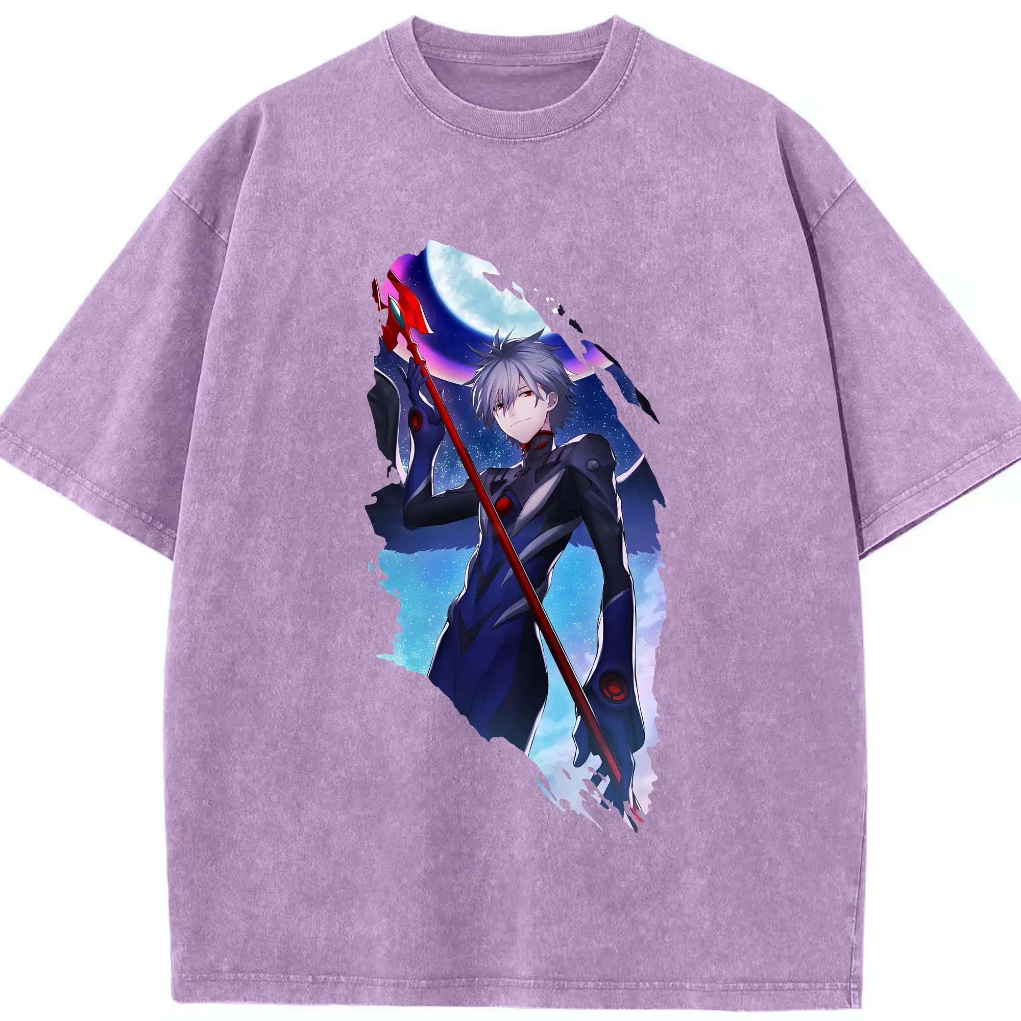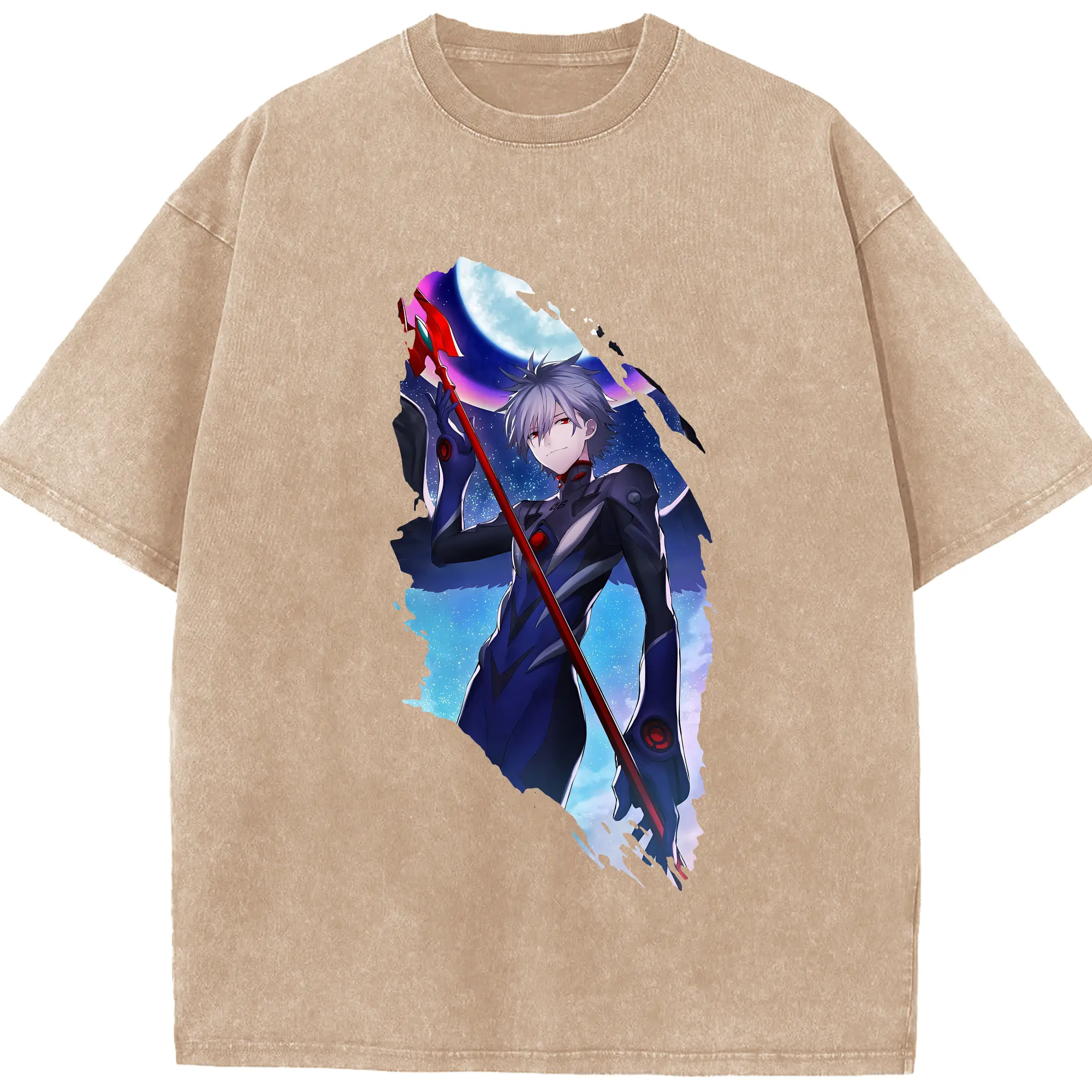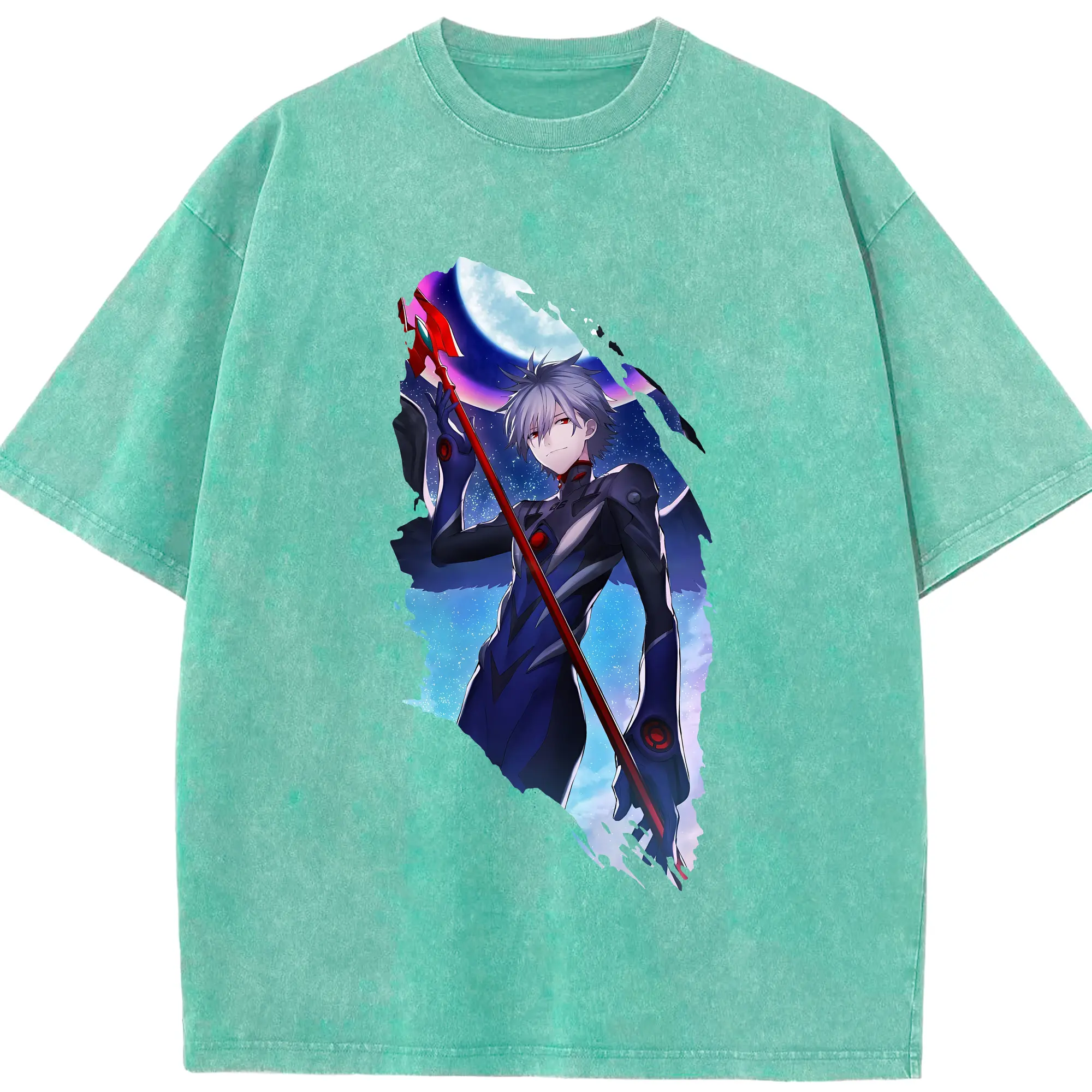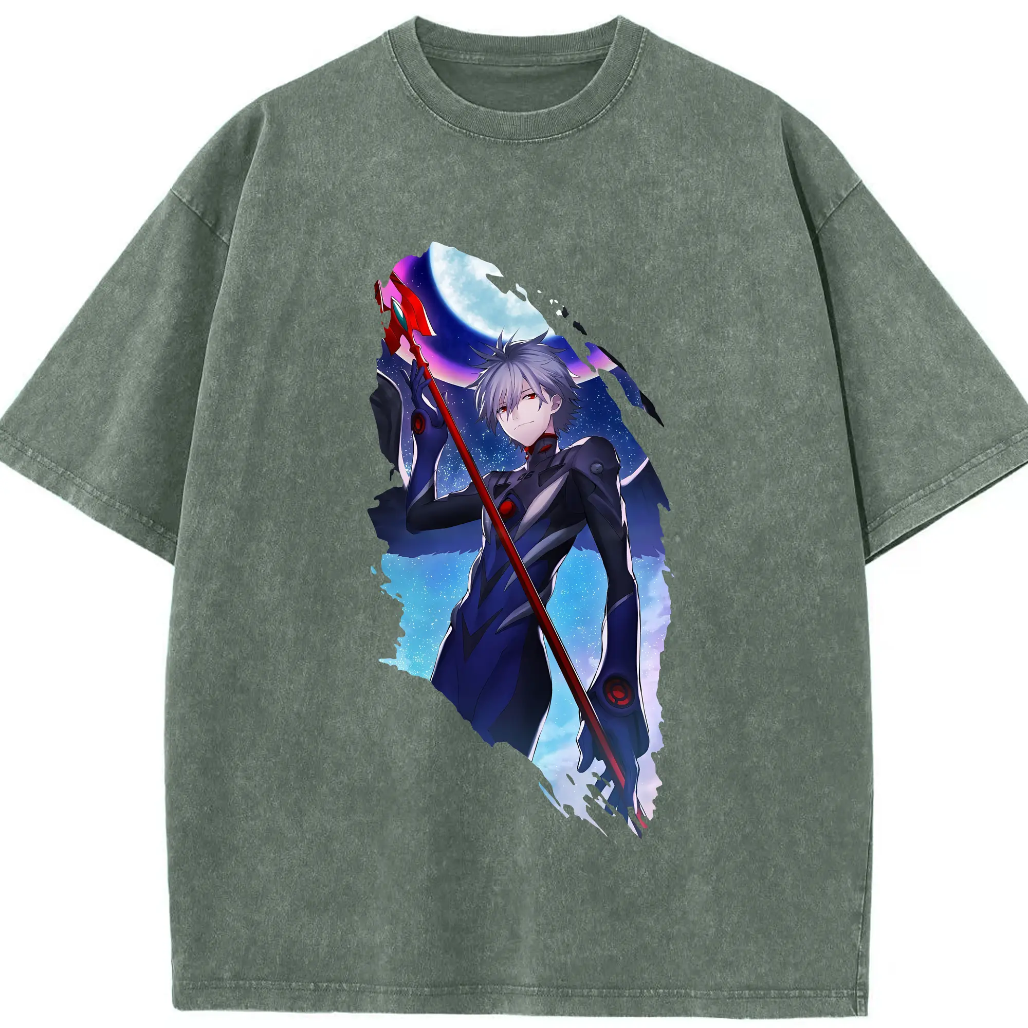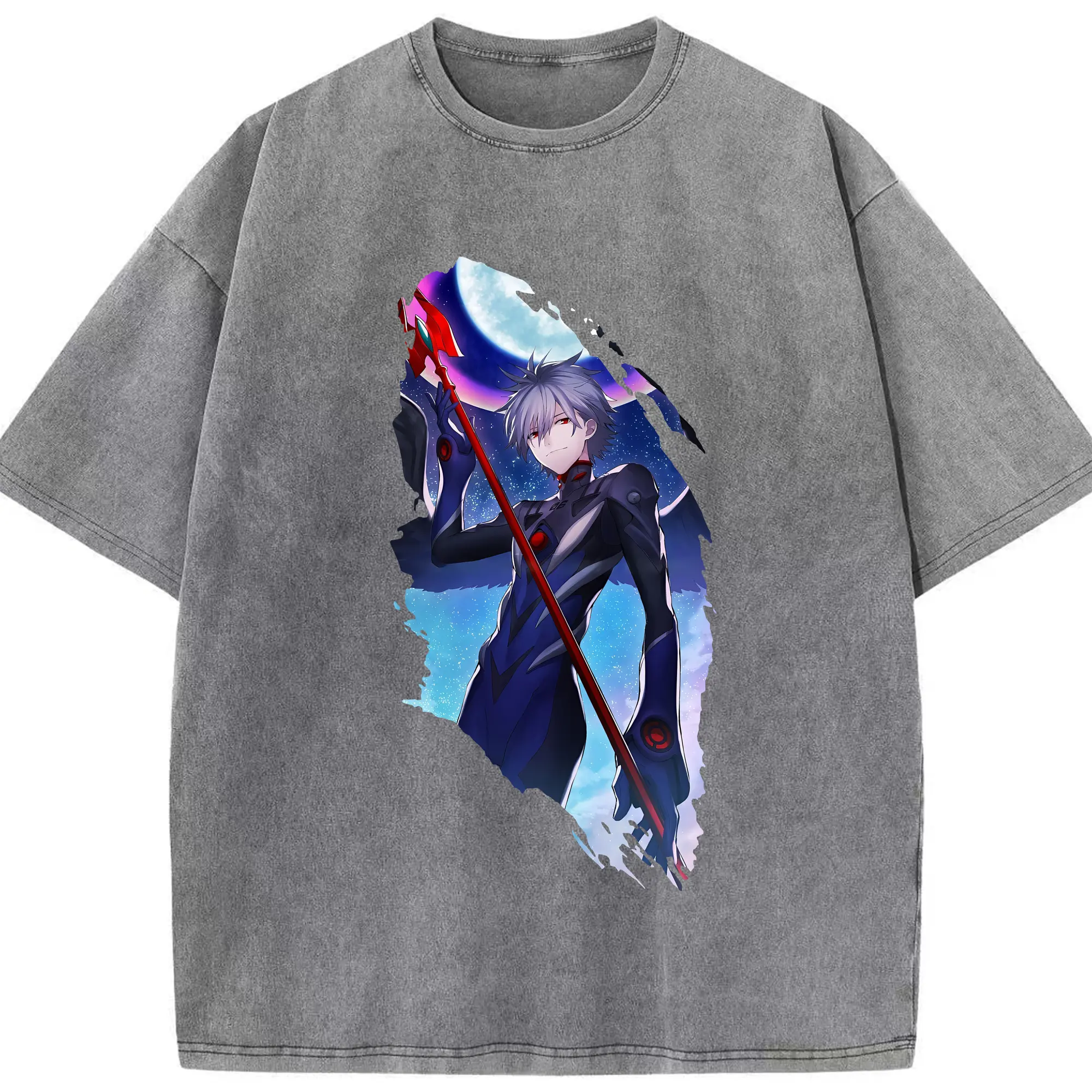 エヴァンゲリオン グッズ,渚カヲル - 綿100% ヴィンテージ風 半袖Tシャツ ・ 背面プリント ・ 柔らか肌触り ・ 通気性 快適 ・ スポーツ カジュアル 外出用