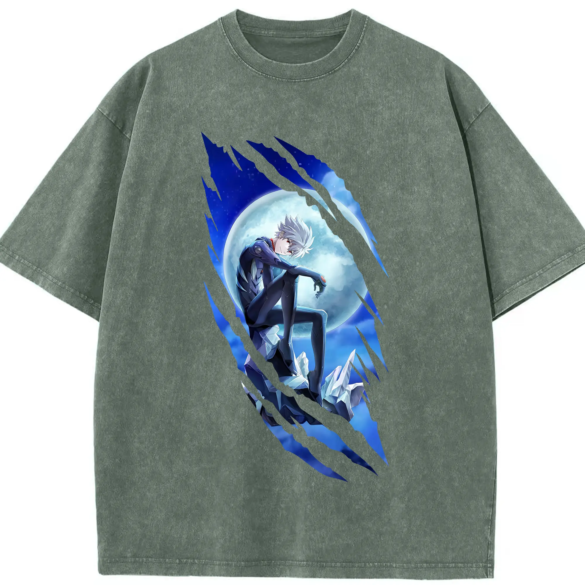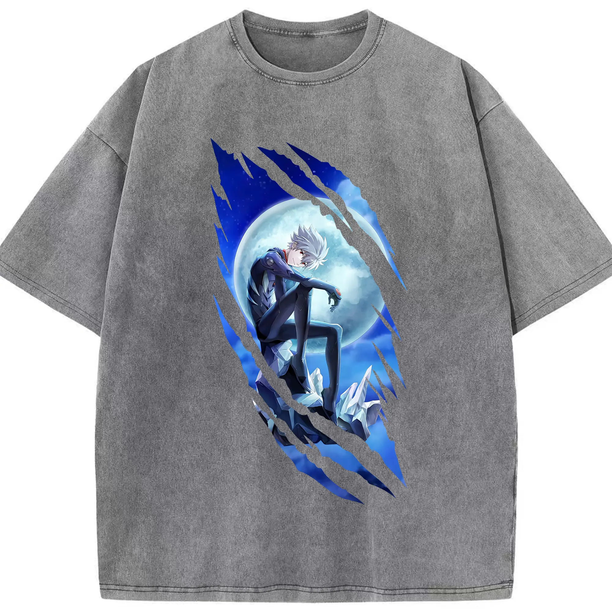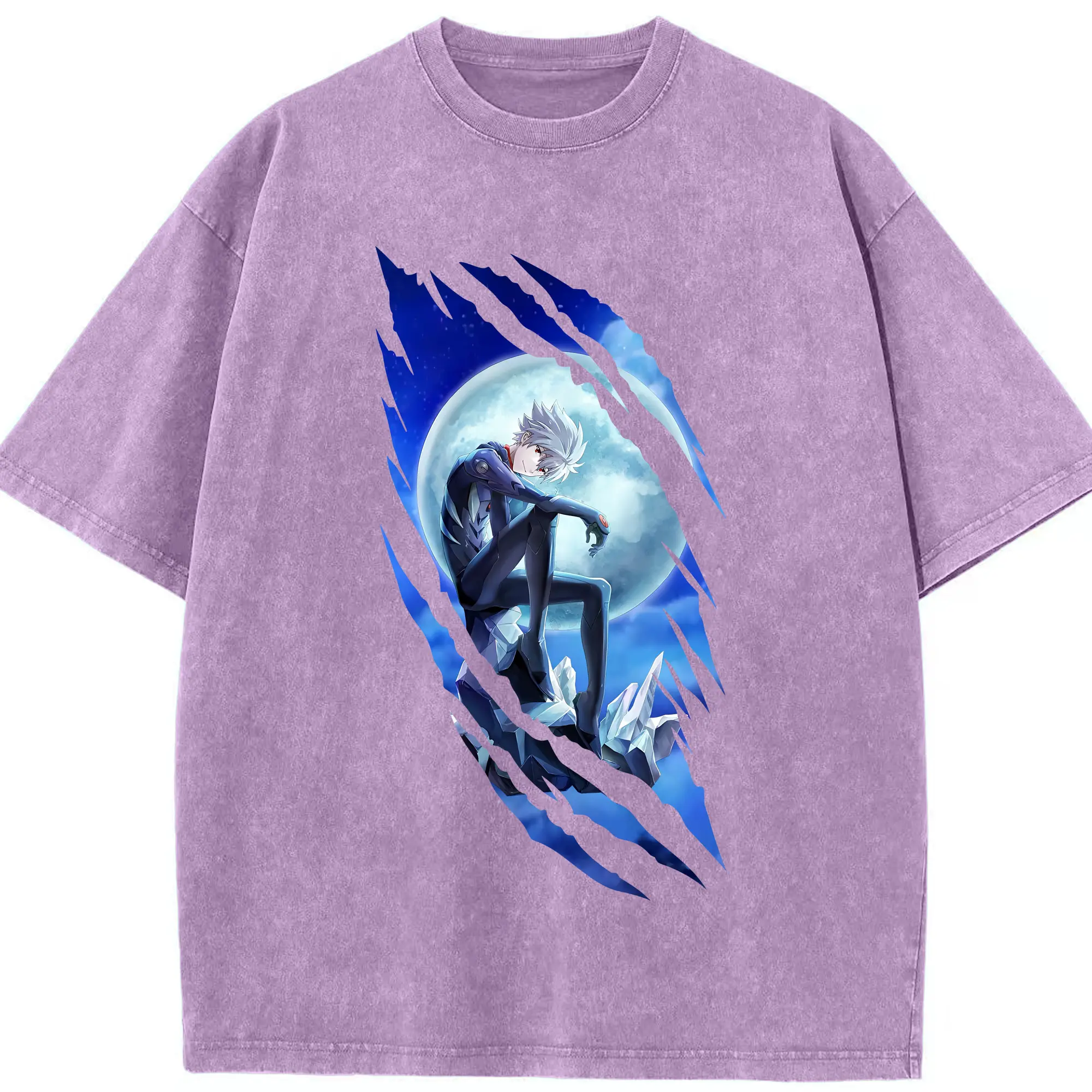 エヴァンゲリオン グッズ,渚カヲル - 綿100% ヴィンテージ風 半袖Tシャツ ・ 背面プリント ・ 柔らか肌触り ・ 通気性 快適 ・ スポーツ カジュアル 外出用