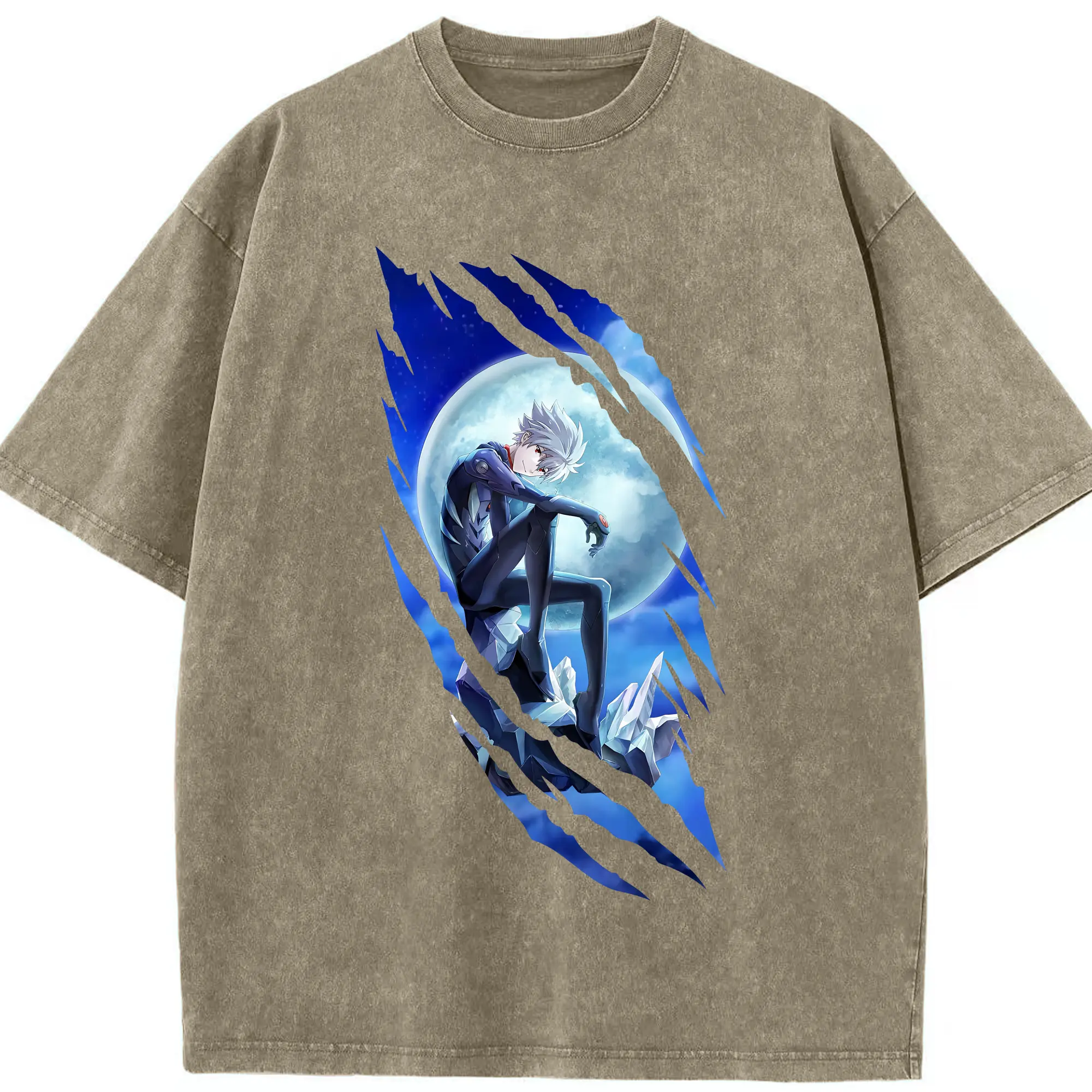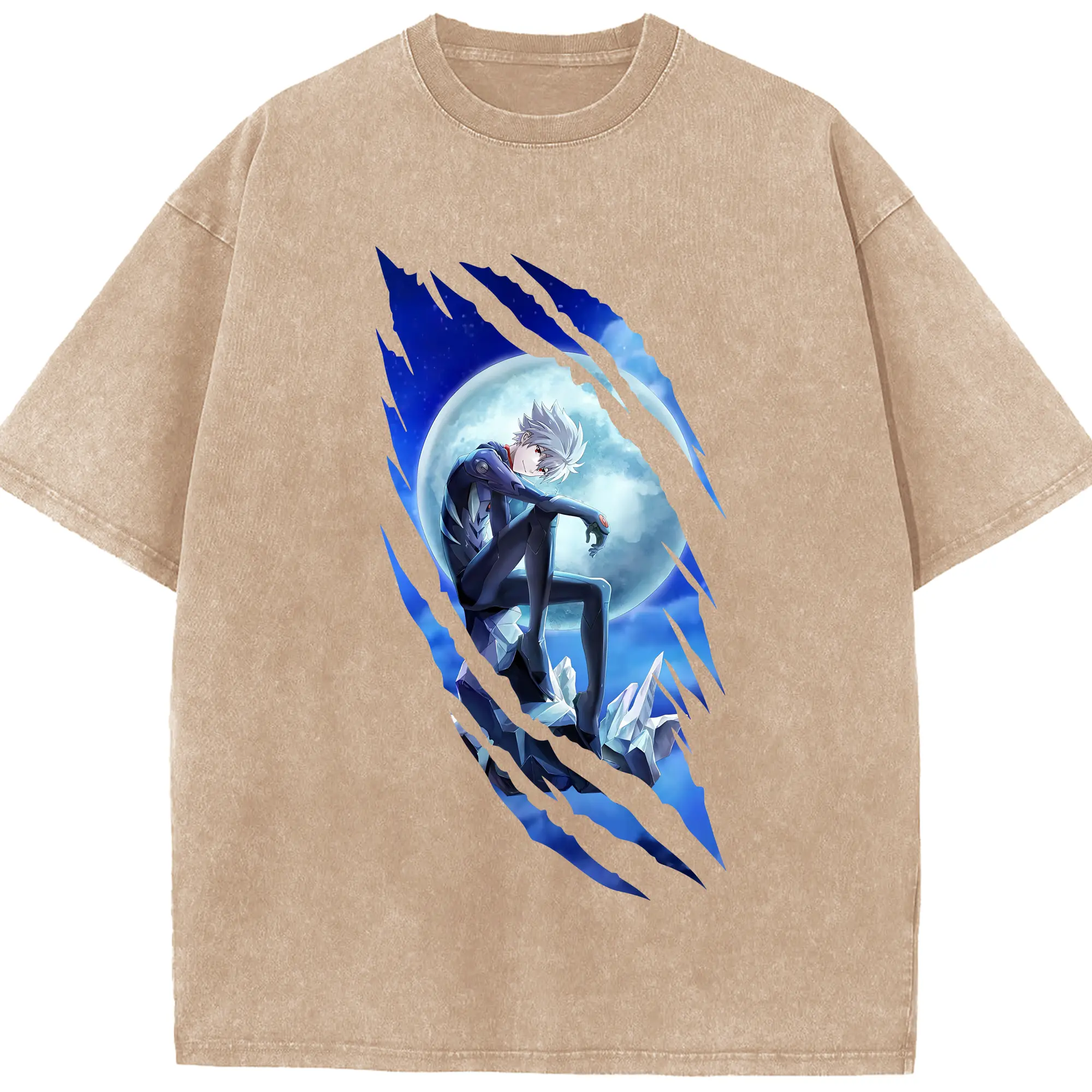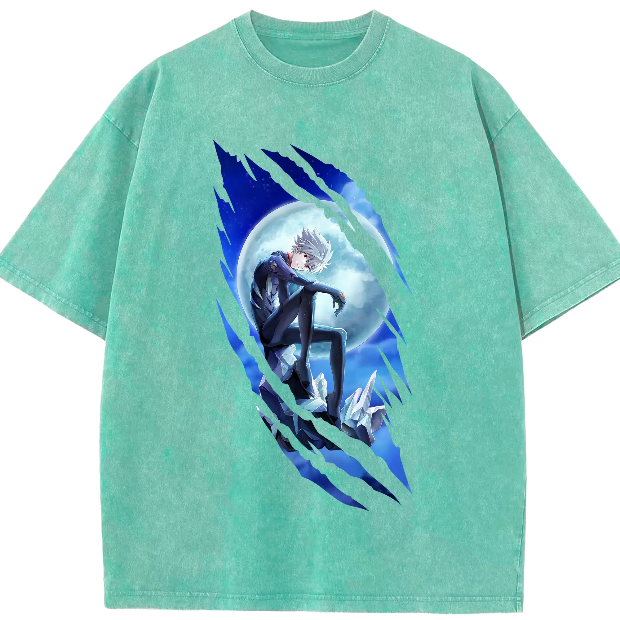 エヴァンゲリオン グッズ,渚カヲル - 綿100% ヴィンテージ風 半袖Tシャツ ・ 背面プリント ・ 柔らか肌触り ・ 通気性 快適 ・ スポーツ カジュアル 外出用