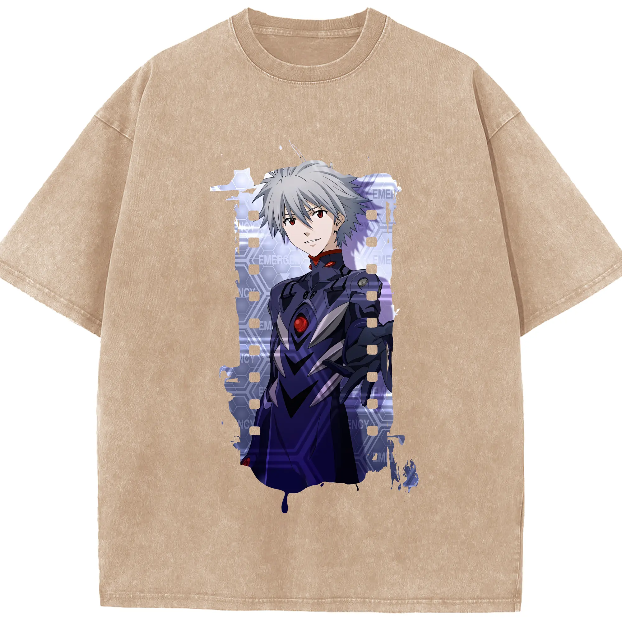 エヴァンゲリオン グッズ,渚カヲル - 綿100% ヴィンテージ風 半袖Tシャツ ・ 背面プリント ・ 柔らか肌触り ・ 通気性 快適 ・ スポーツ カジュアル 外出用