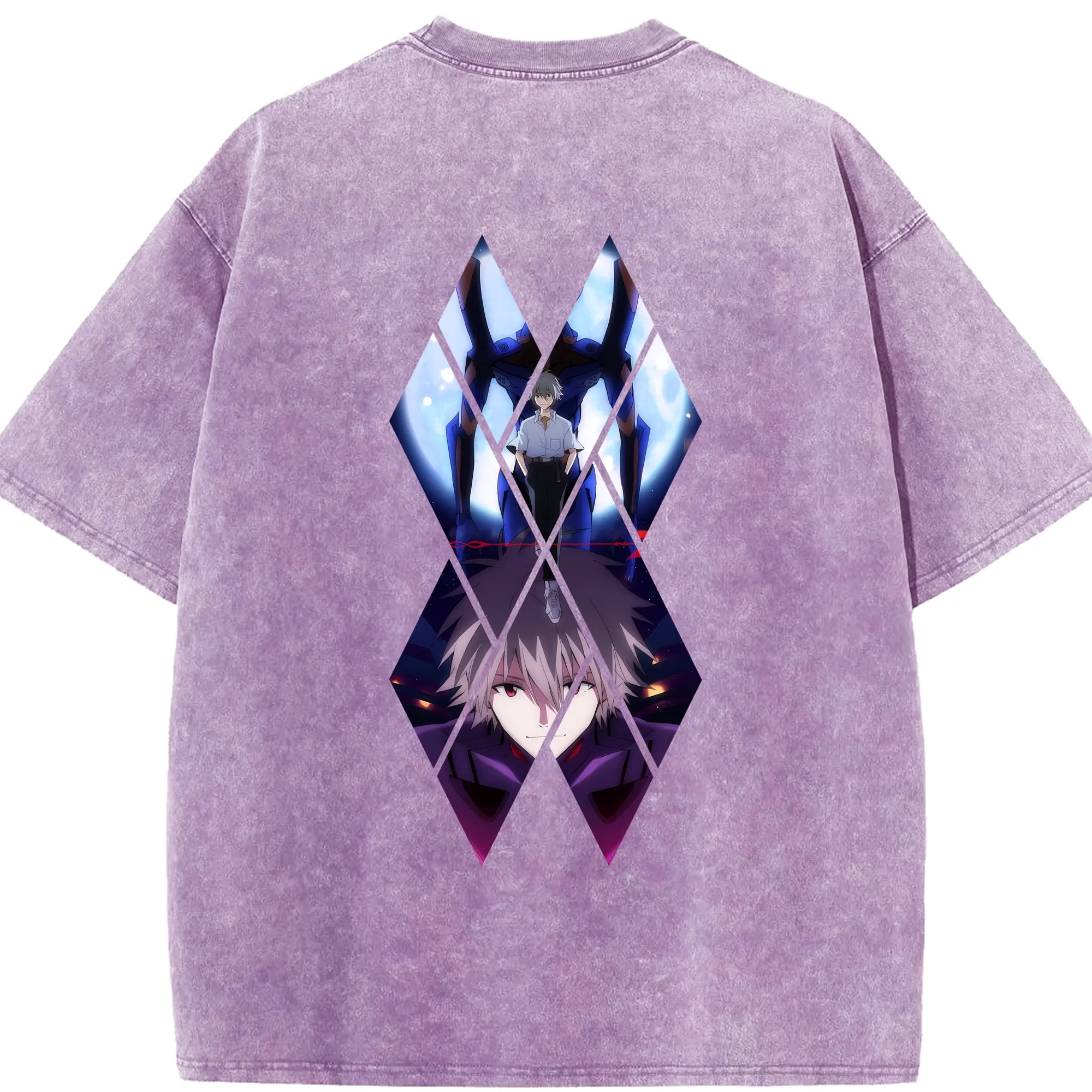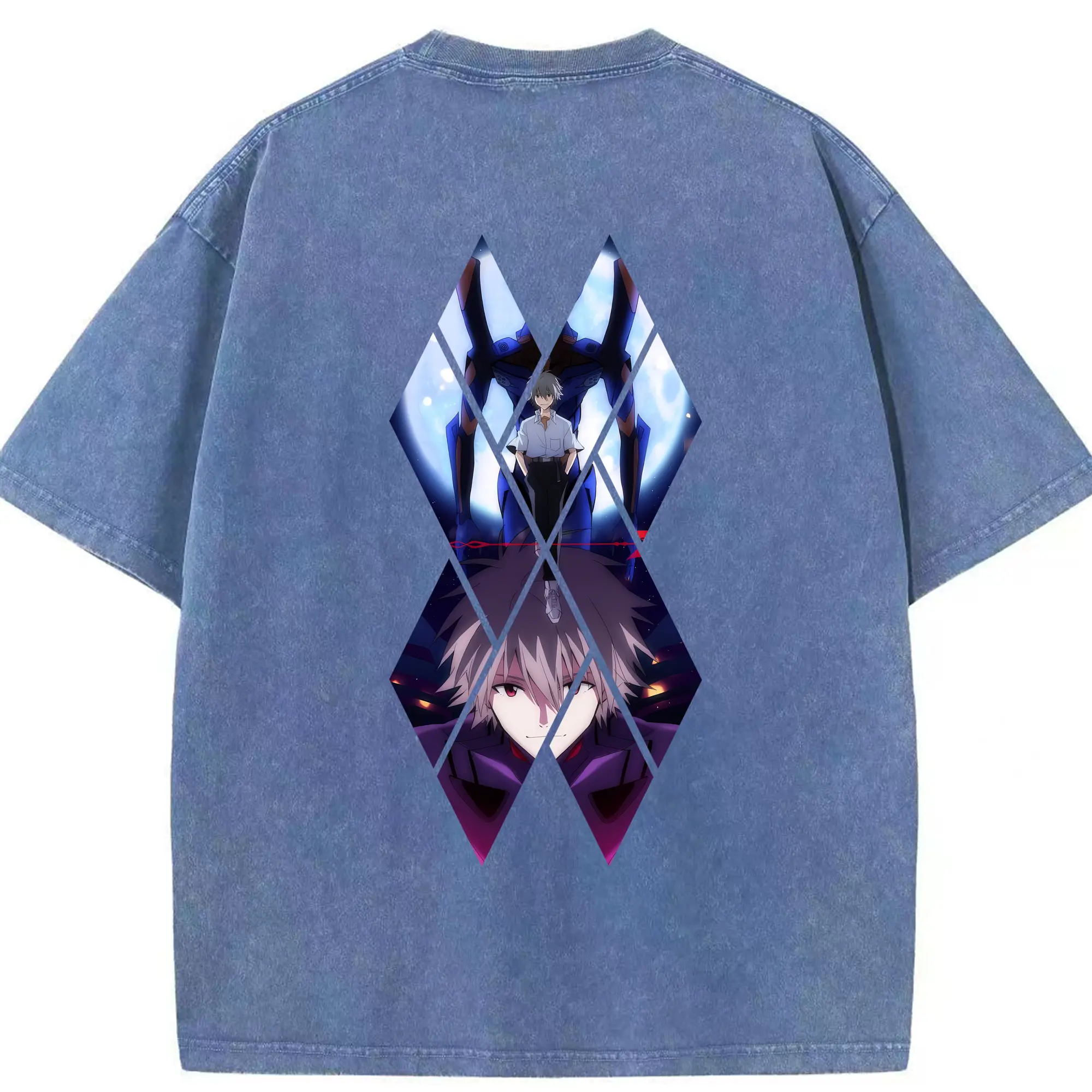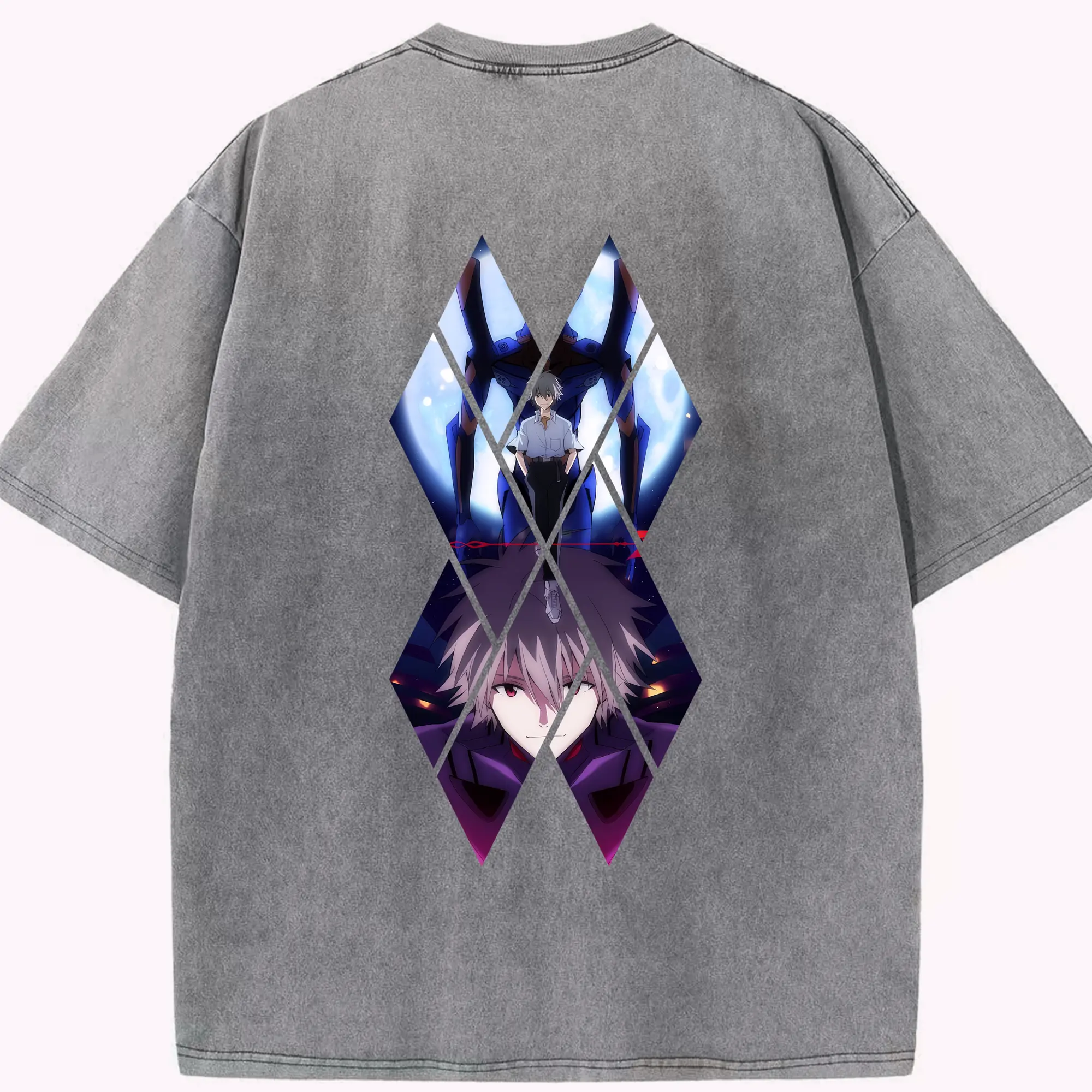 エヴァンゲリオン グッズ,渚カヲル - 綿100% ヴィンテージ風 半袖Tシャツ ・ フロントプリント ・ 柔らか肌触り ・ 通気性 快適 ・ スポーツ カジュアル 外出用