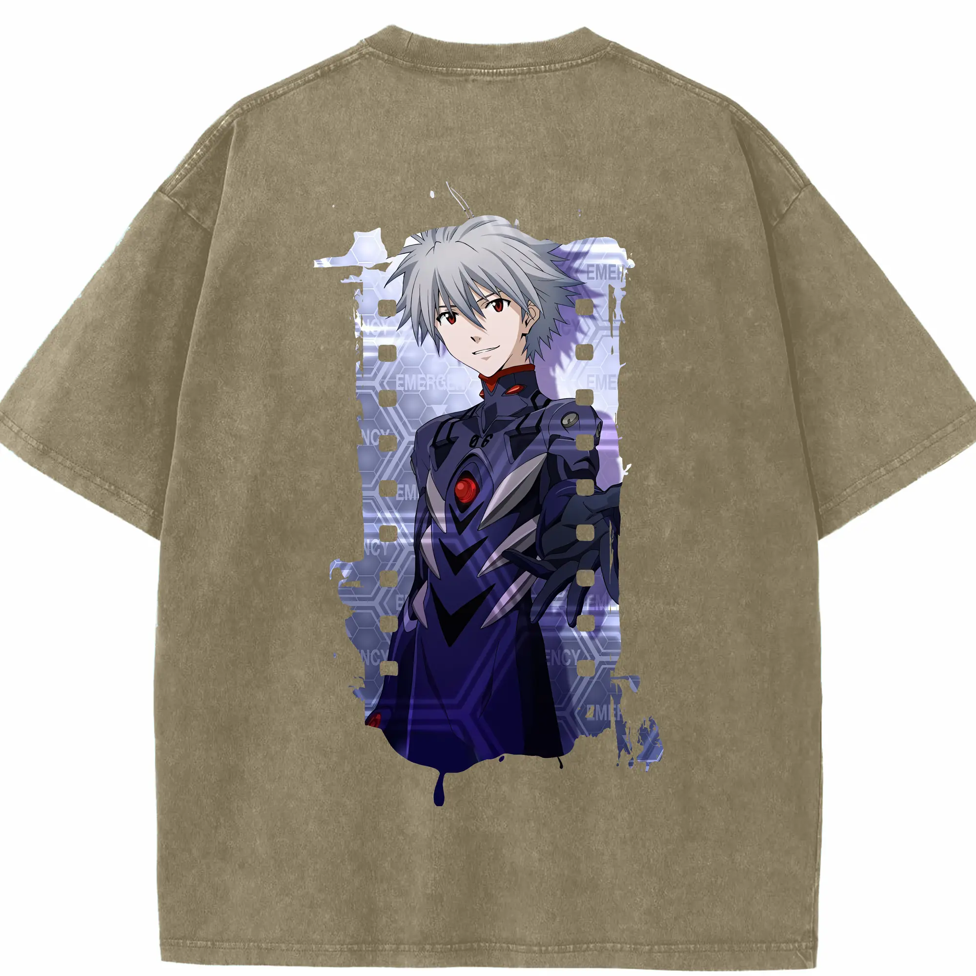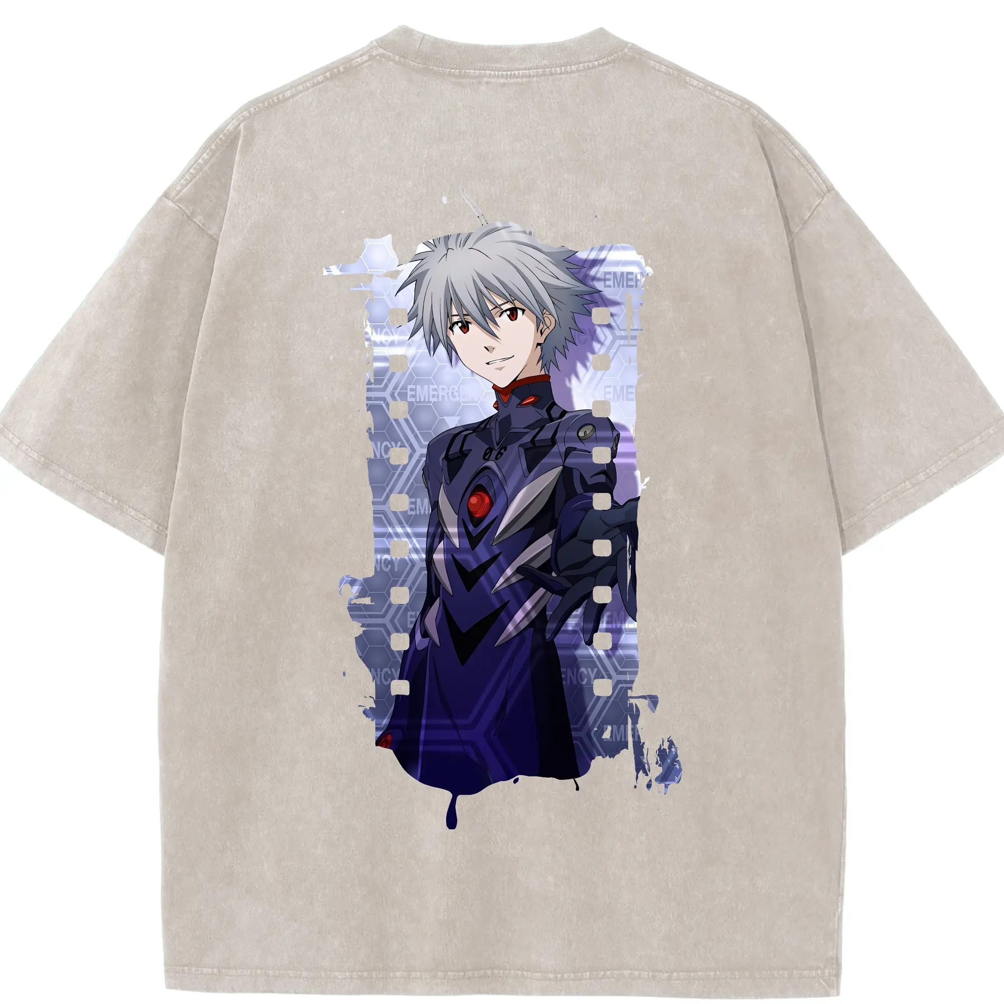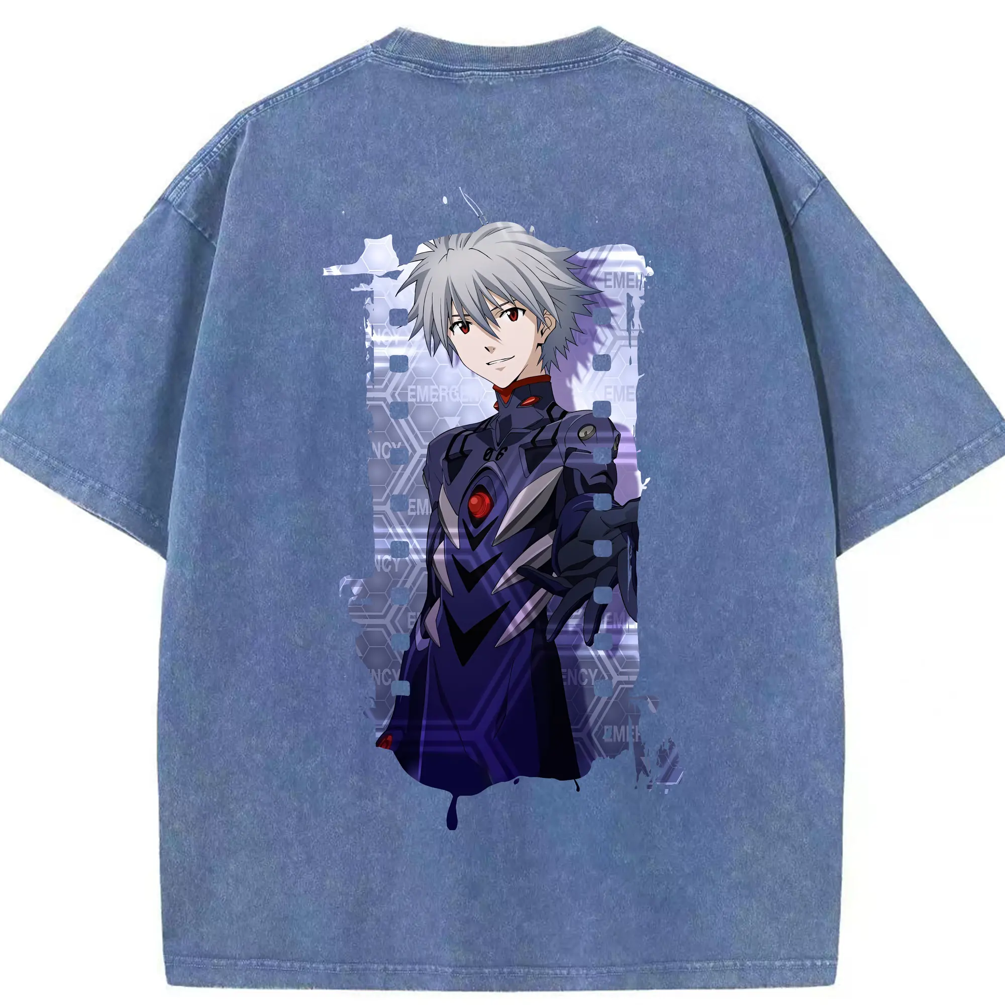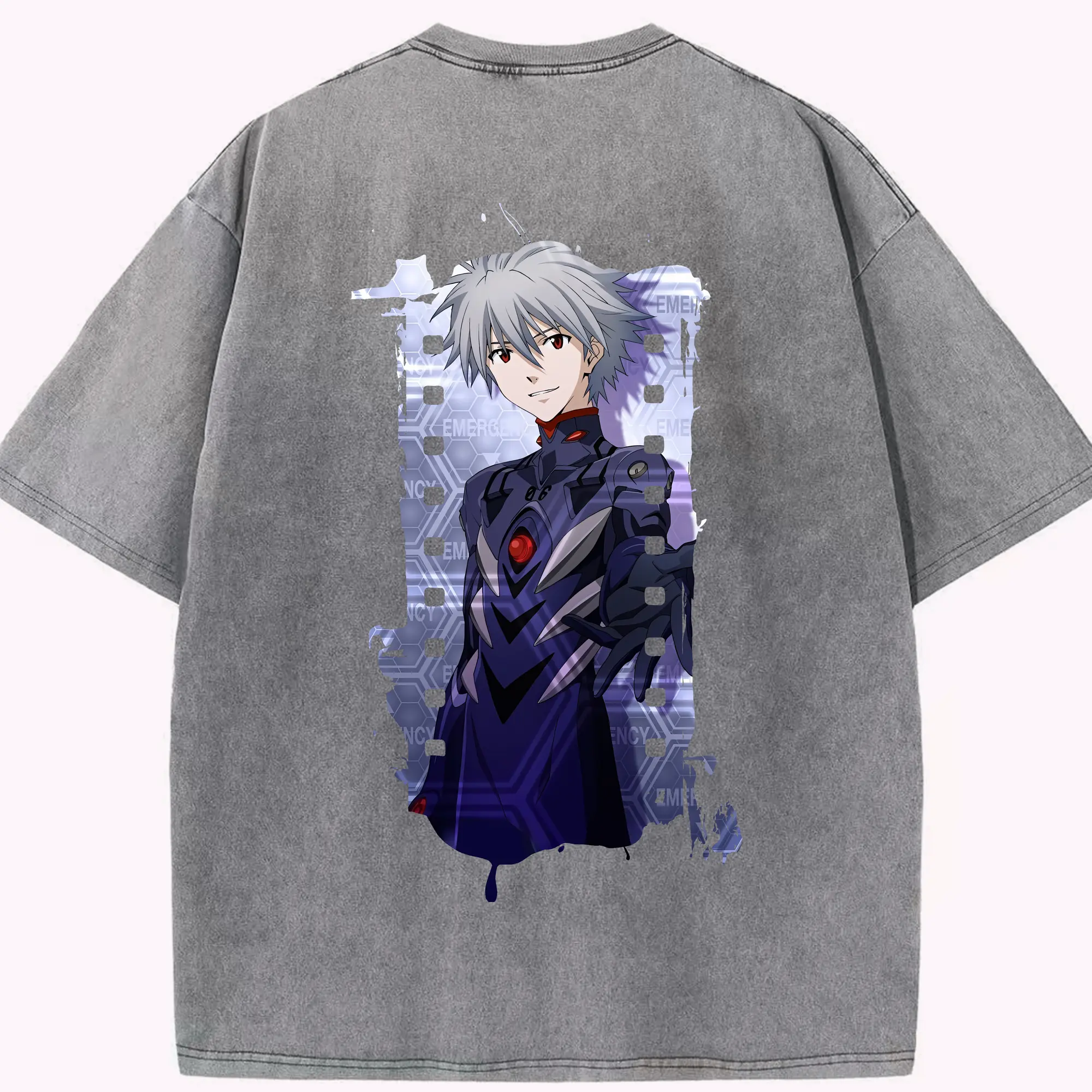 エヴァンゲリオン グッズ,渚カヲル - 綿100% ヴィンテージ風 半袖Tシャツ ・ フロントプリント ・ 柔らか肌触り ・ 通気性 快適 ・ スポーツ カジュアル 外出用