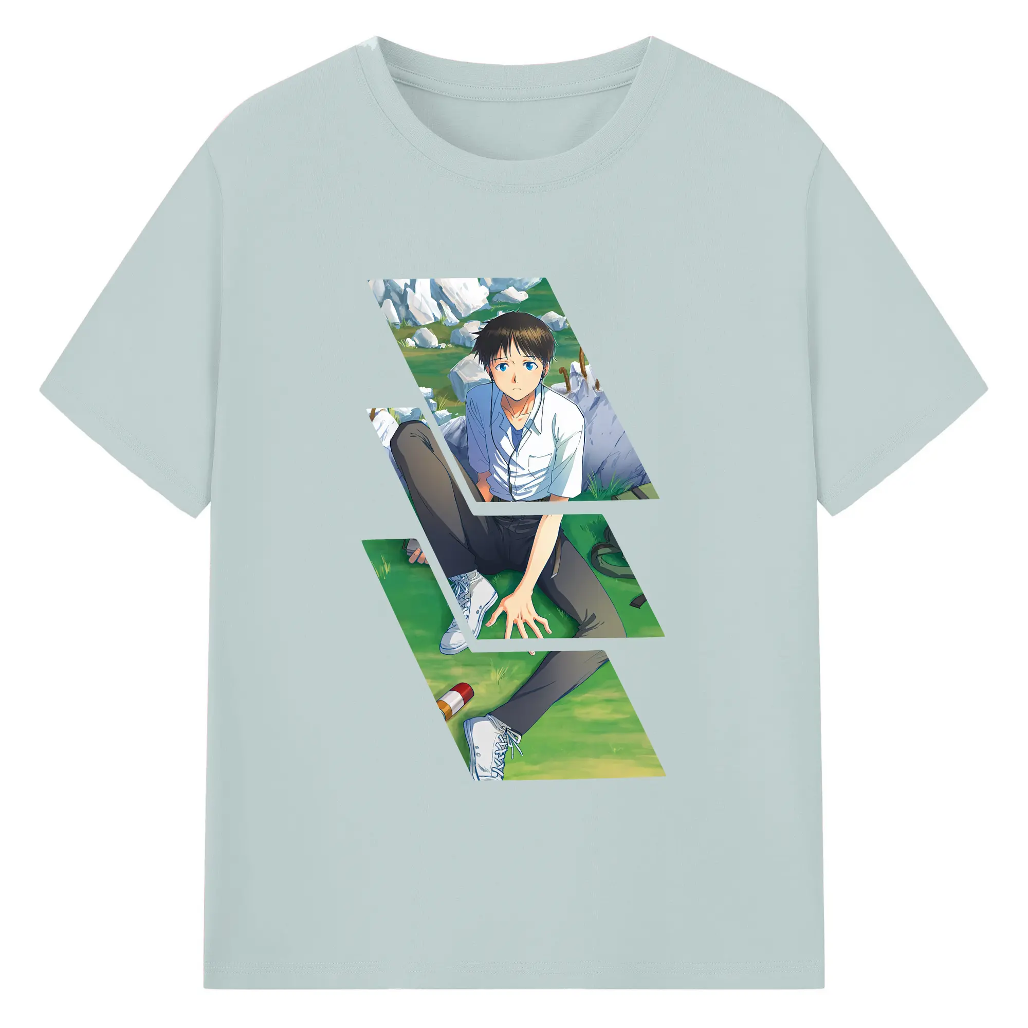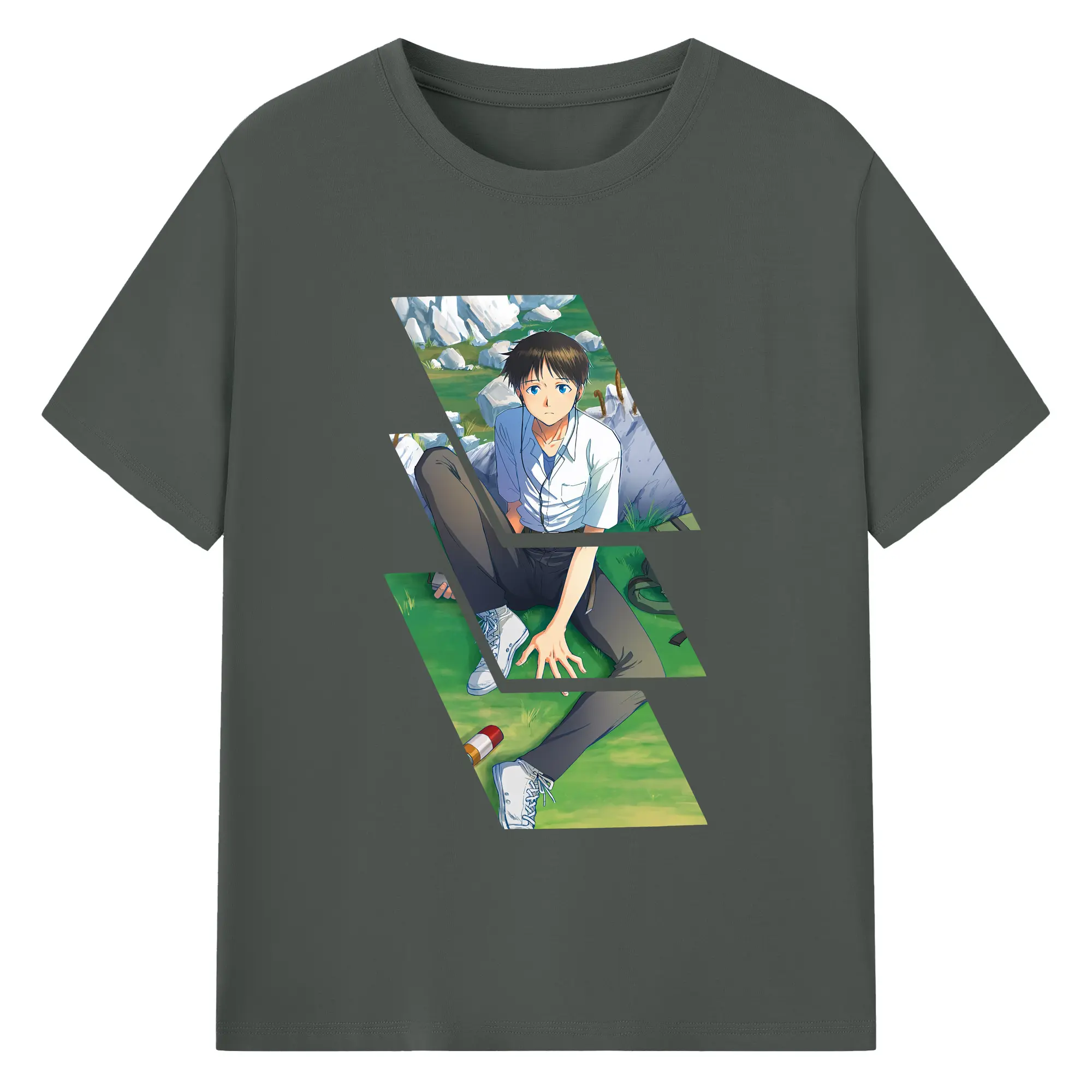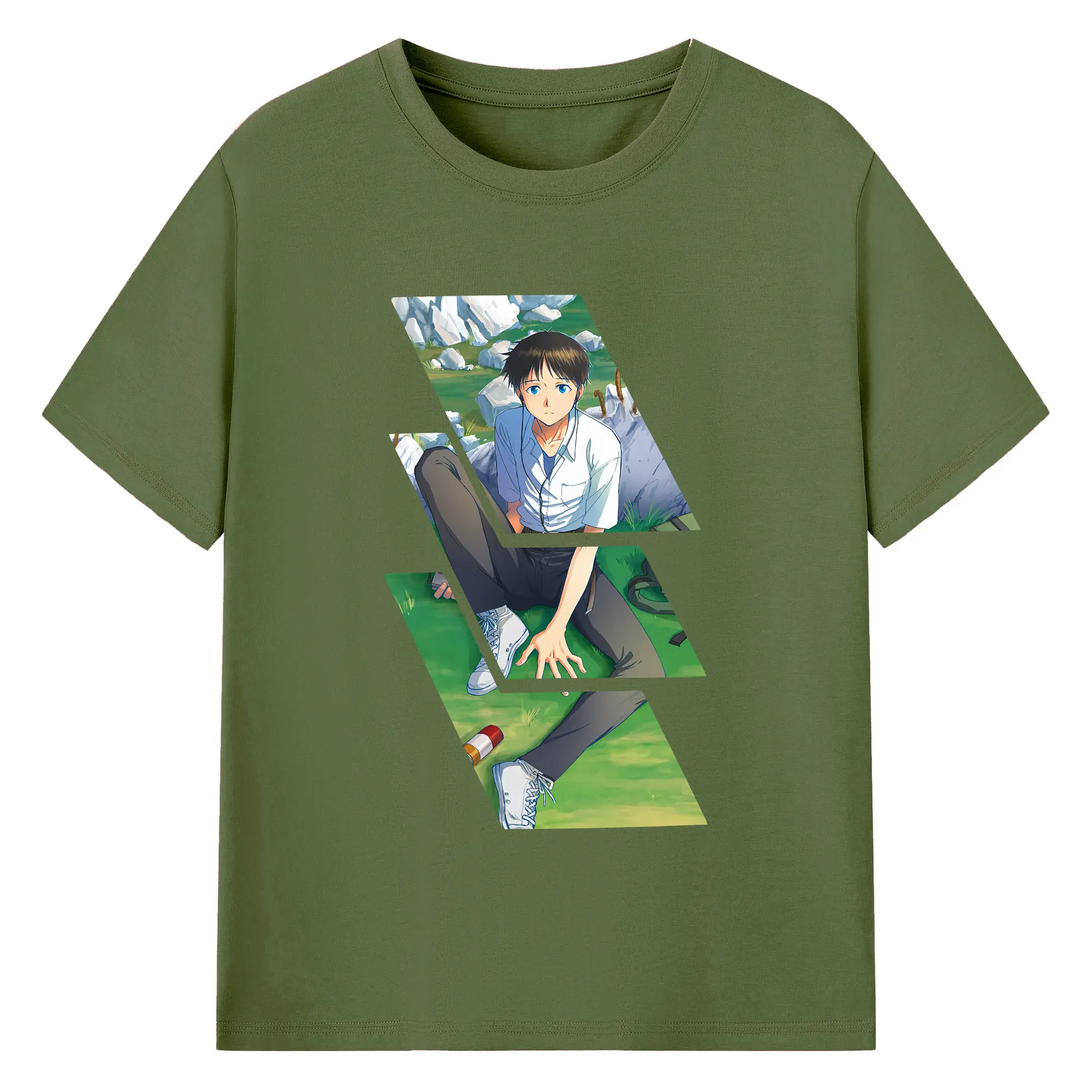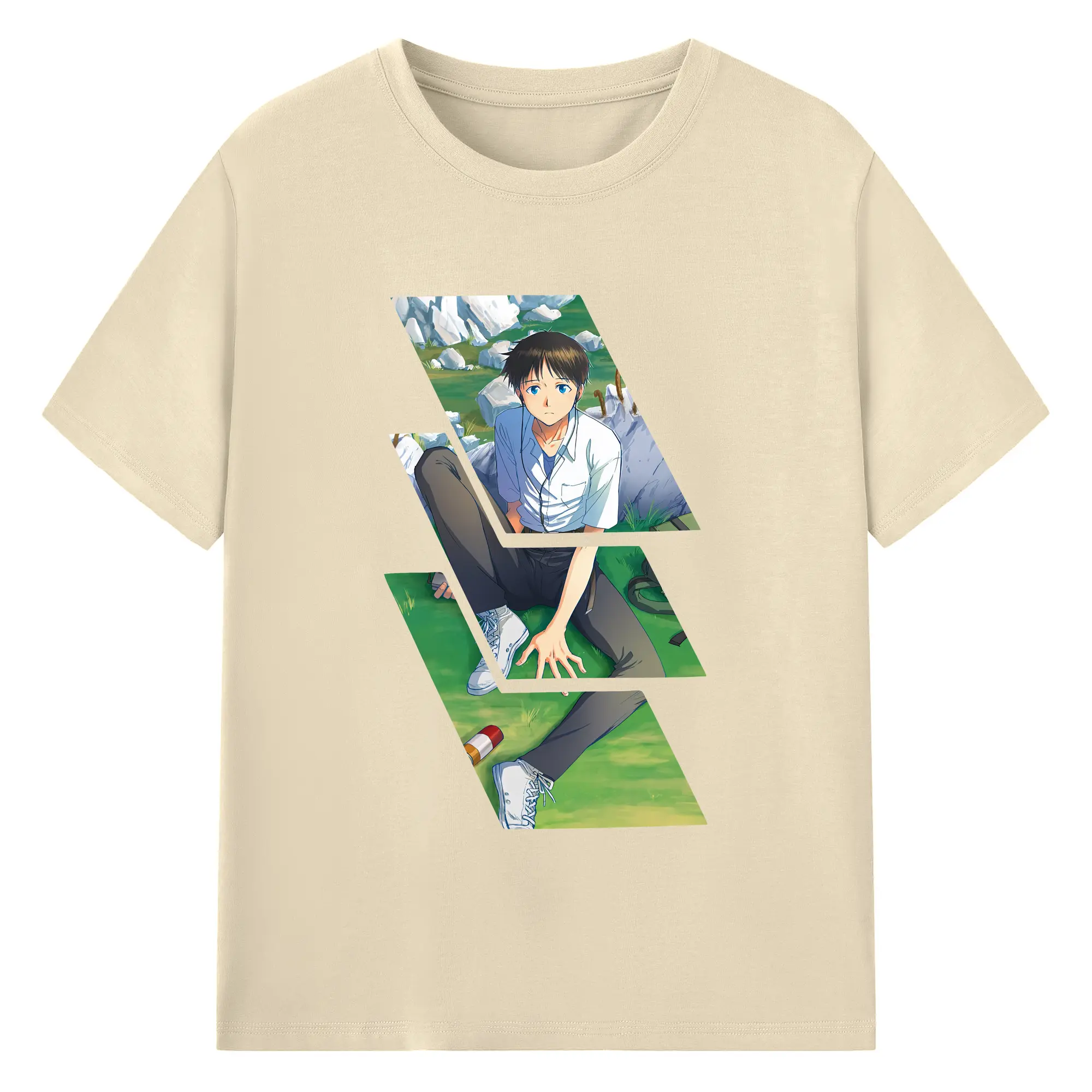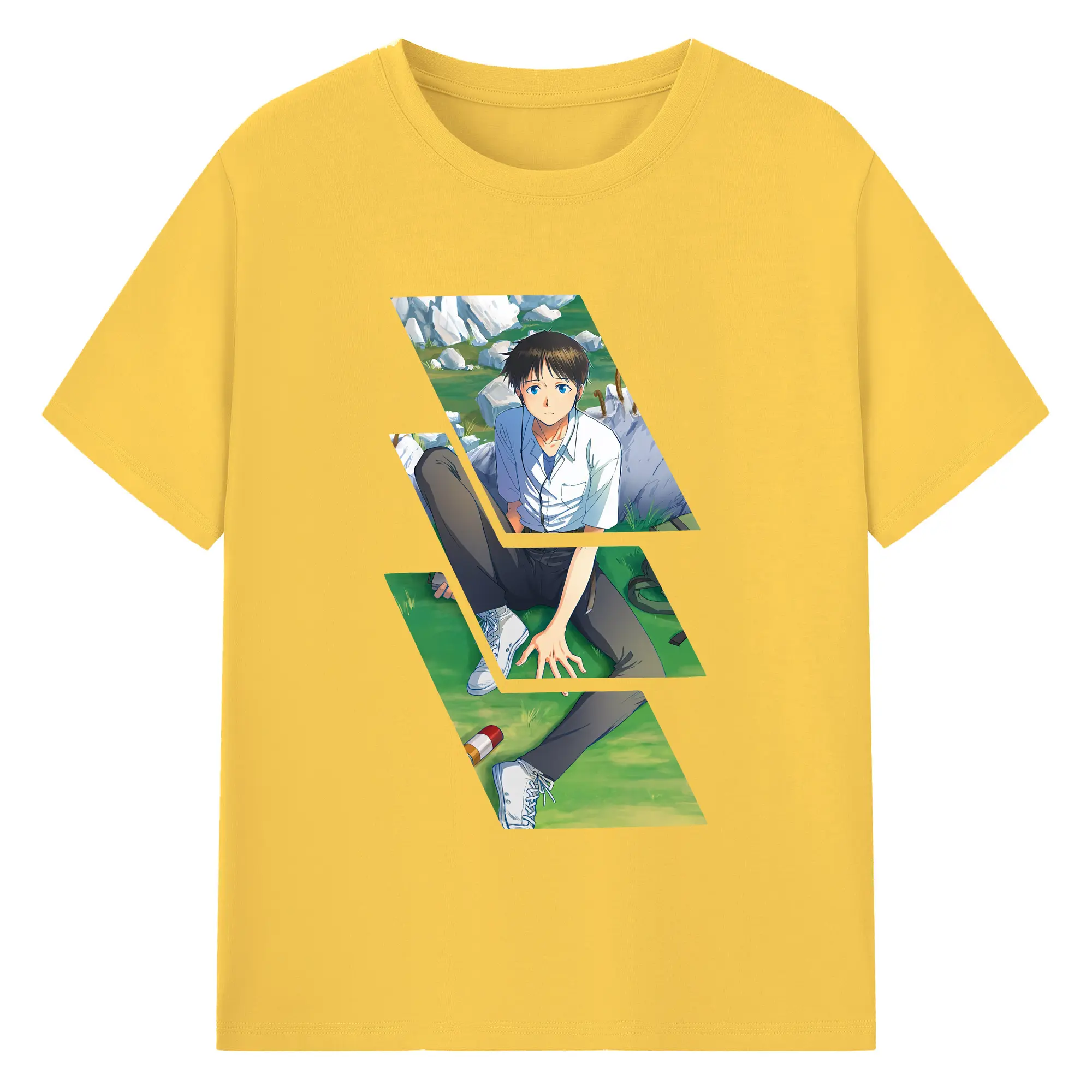 エヴァンゲリオン グッズ,碇シンジ - 綿100% ヴィンテージ風 半袖Tシャツ ・ フロントプリント ・ 柔らか肌触り ・ 通気性 快適 ・ スポーツ カジュアル 外出用