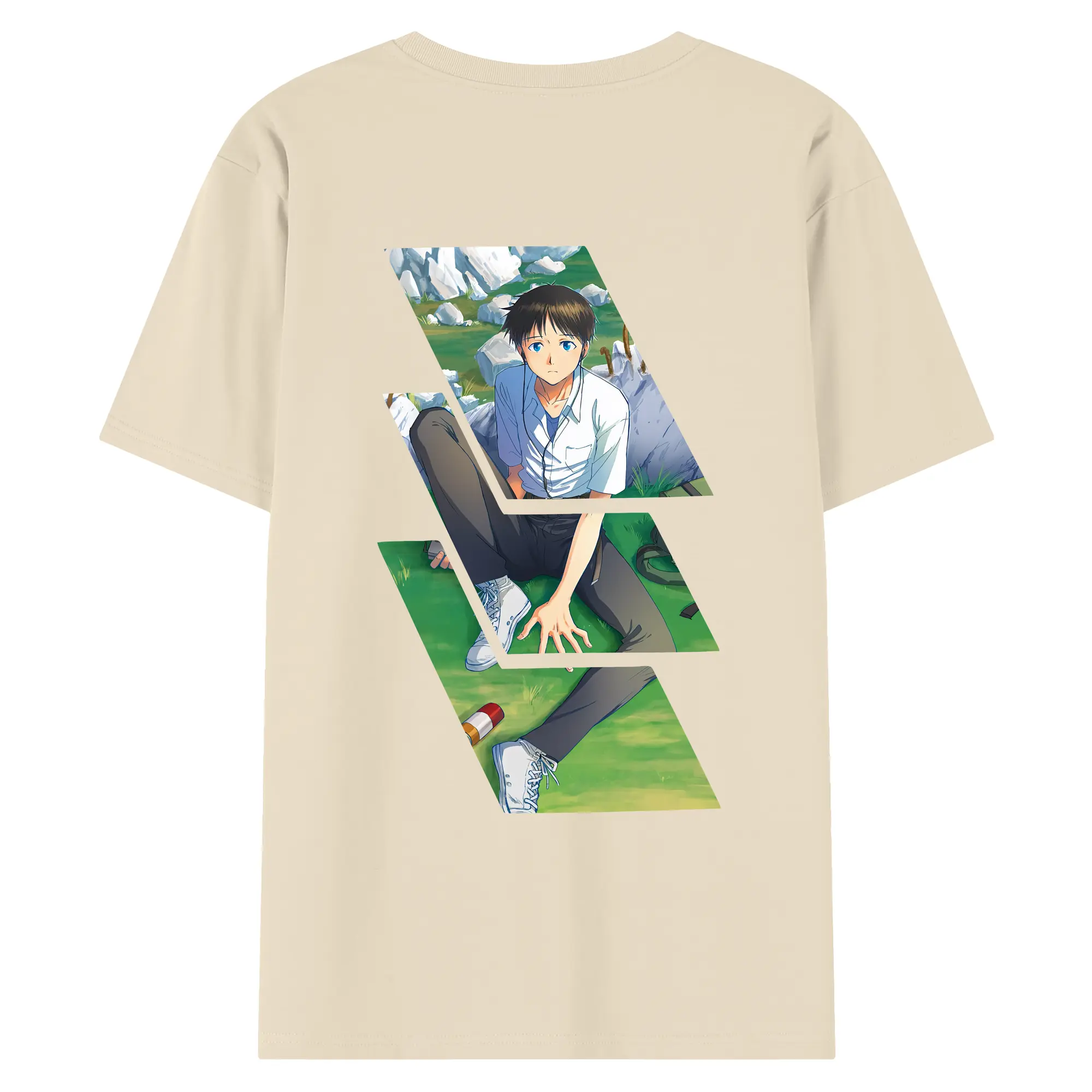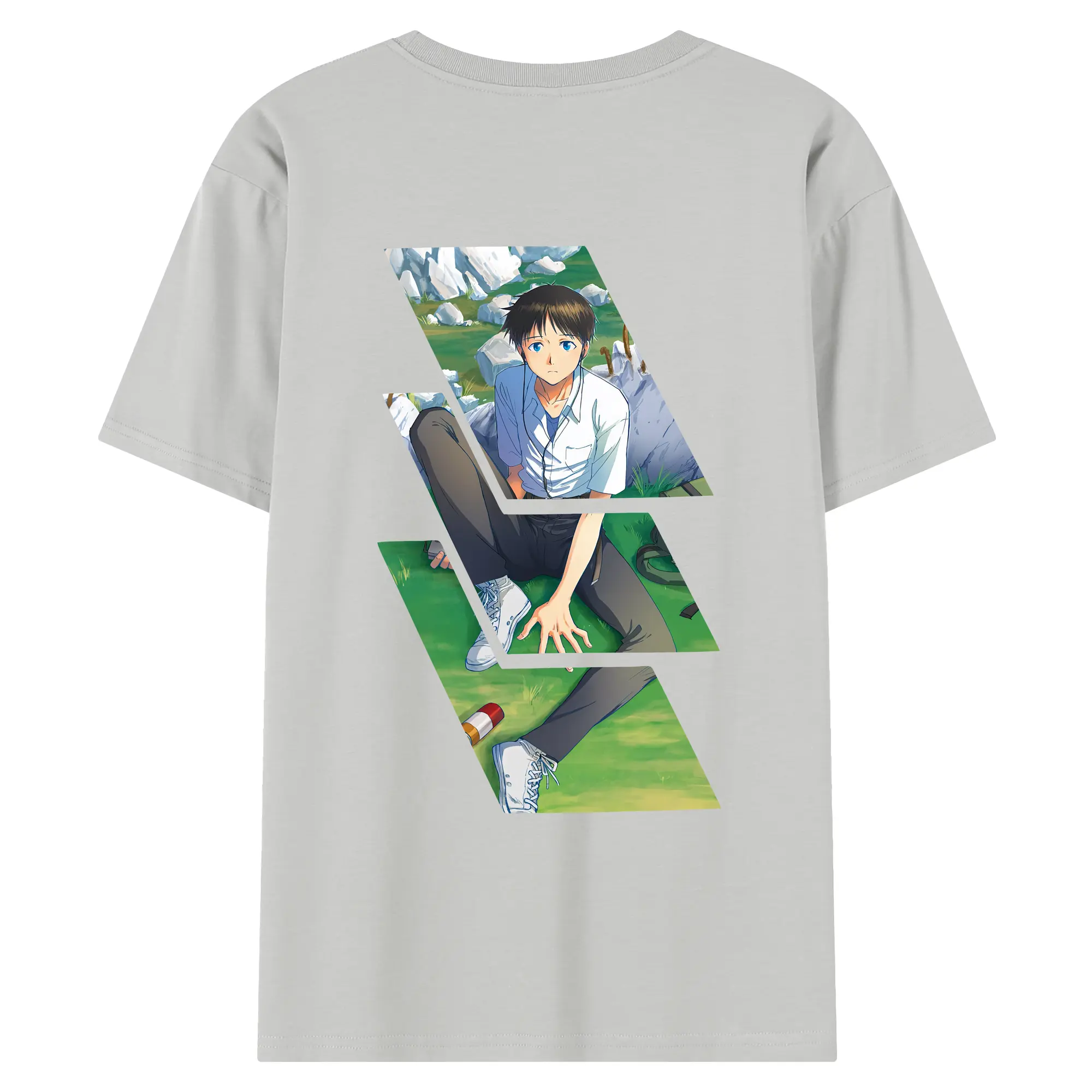 エヴァンゲリオン グッズ,碇シンジ - 綿100% ヴィンテージ風 半袖Tシャツ ・ 背面プリント ・ 柔らか肌触り ・ 通気性 快適 ・ スポーツ カジュアル 外出用