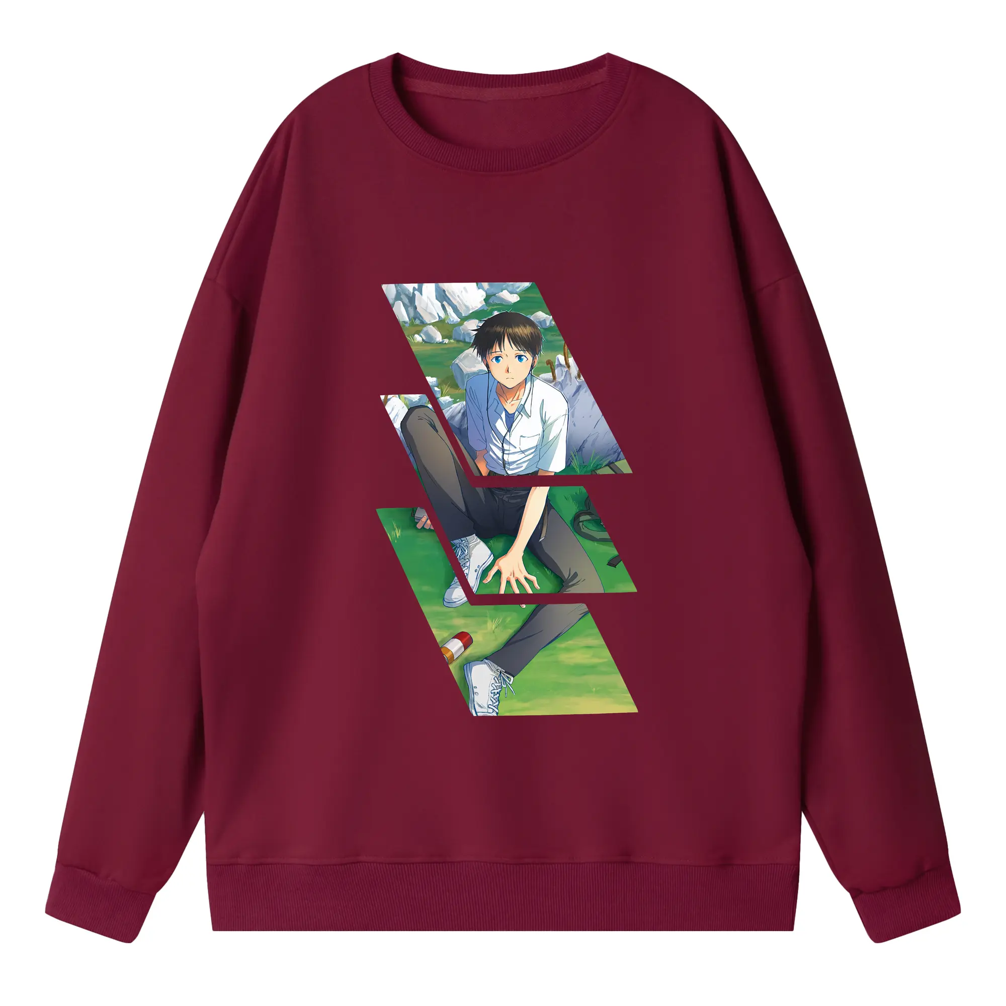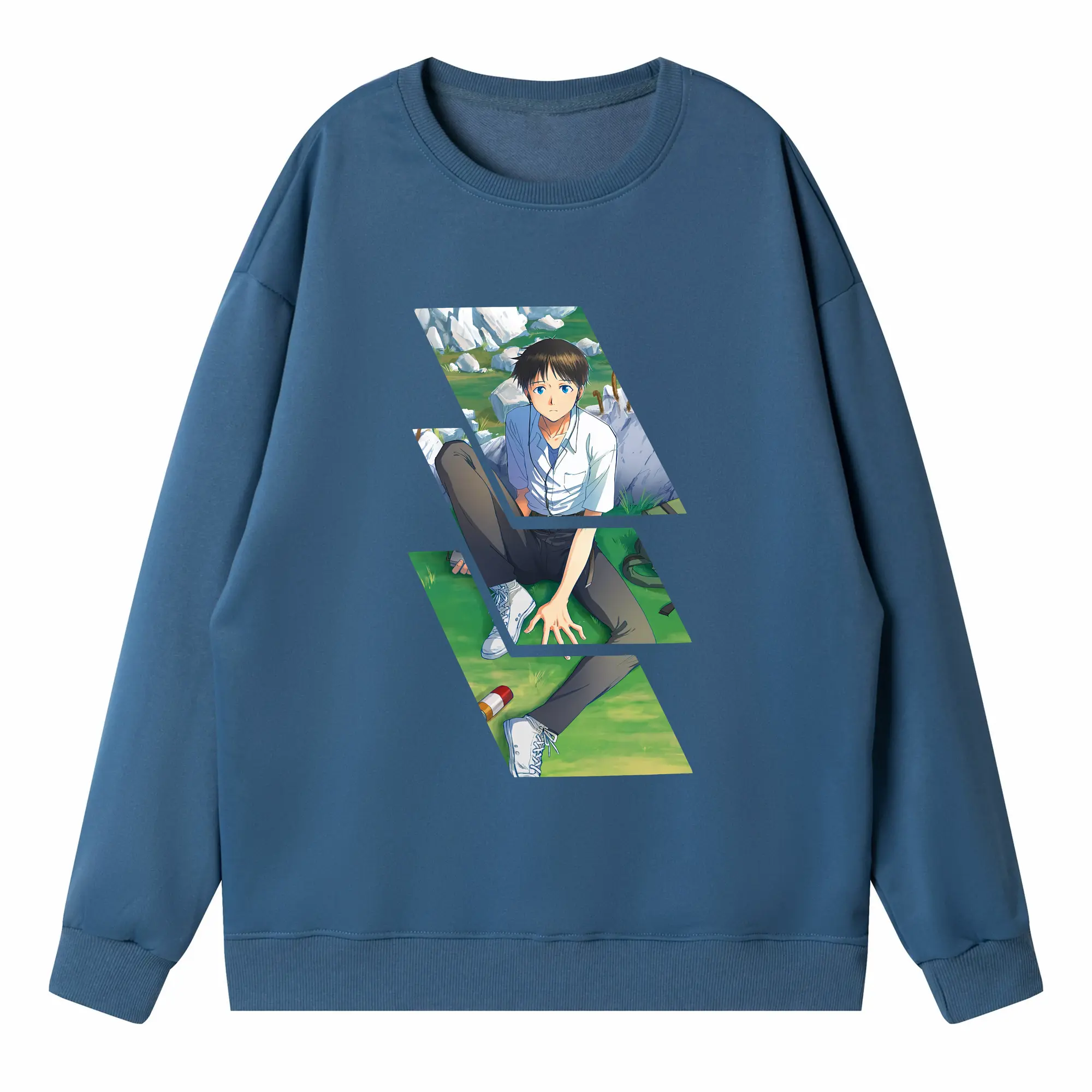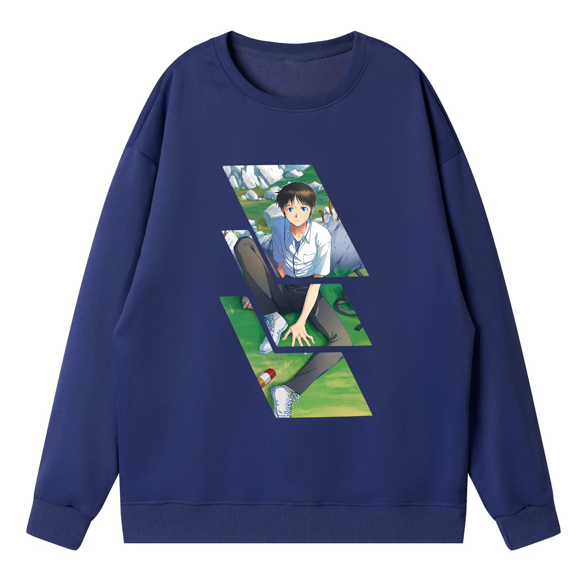エヴァンゲリオン グッズ,碇シンジ - 高品質 クルーネック スウェット ・ コットン59% ポリエステル41% ・ ユニセックス 長袖 トレーナー ・ カジュアル デイリー スポーツ 散歩用