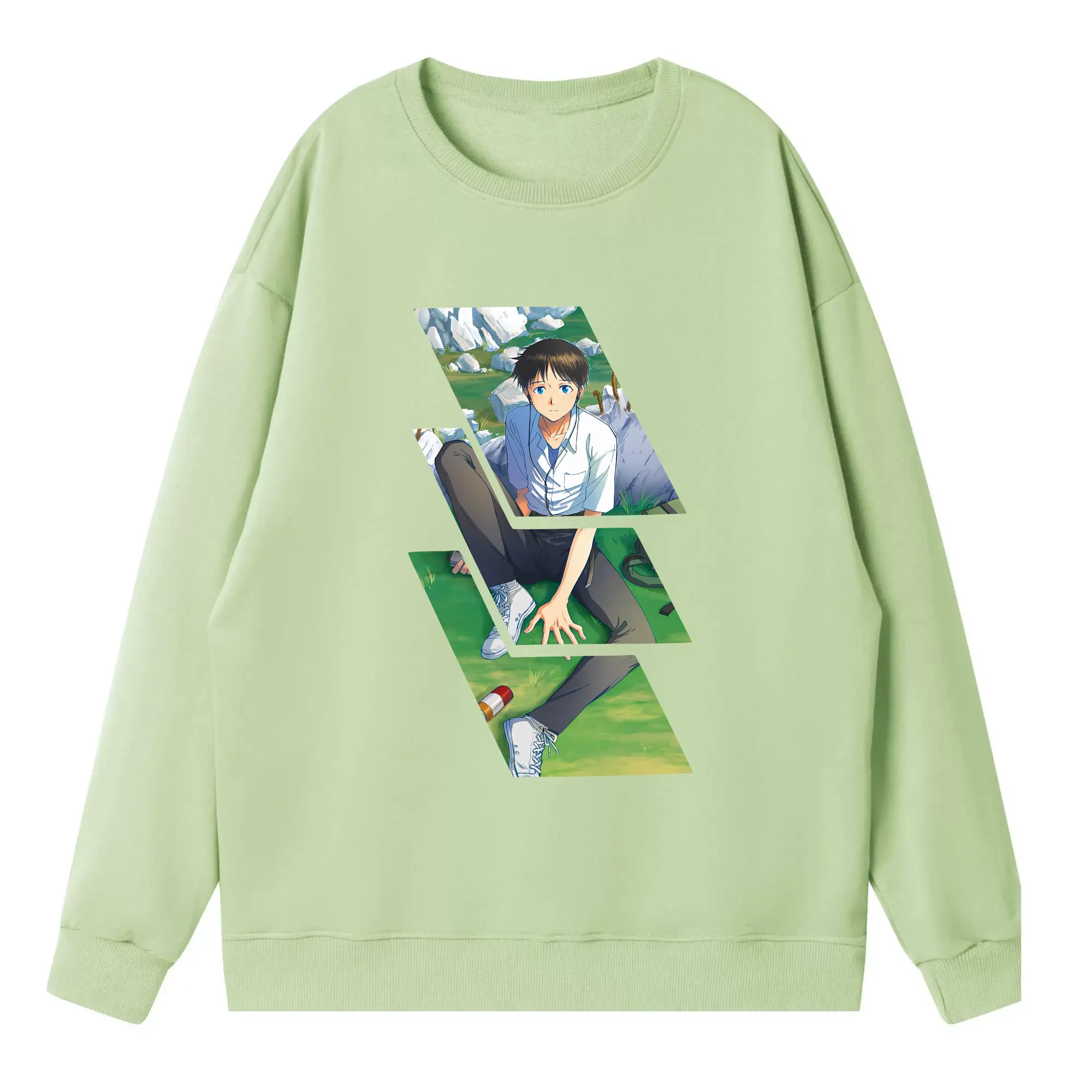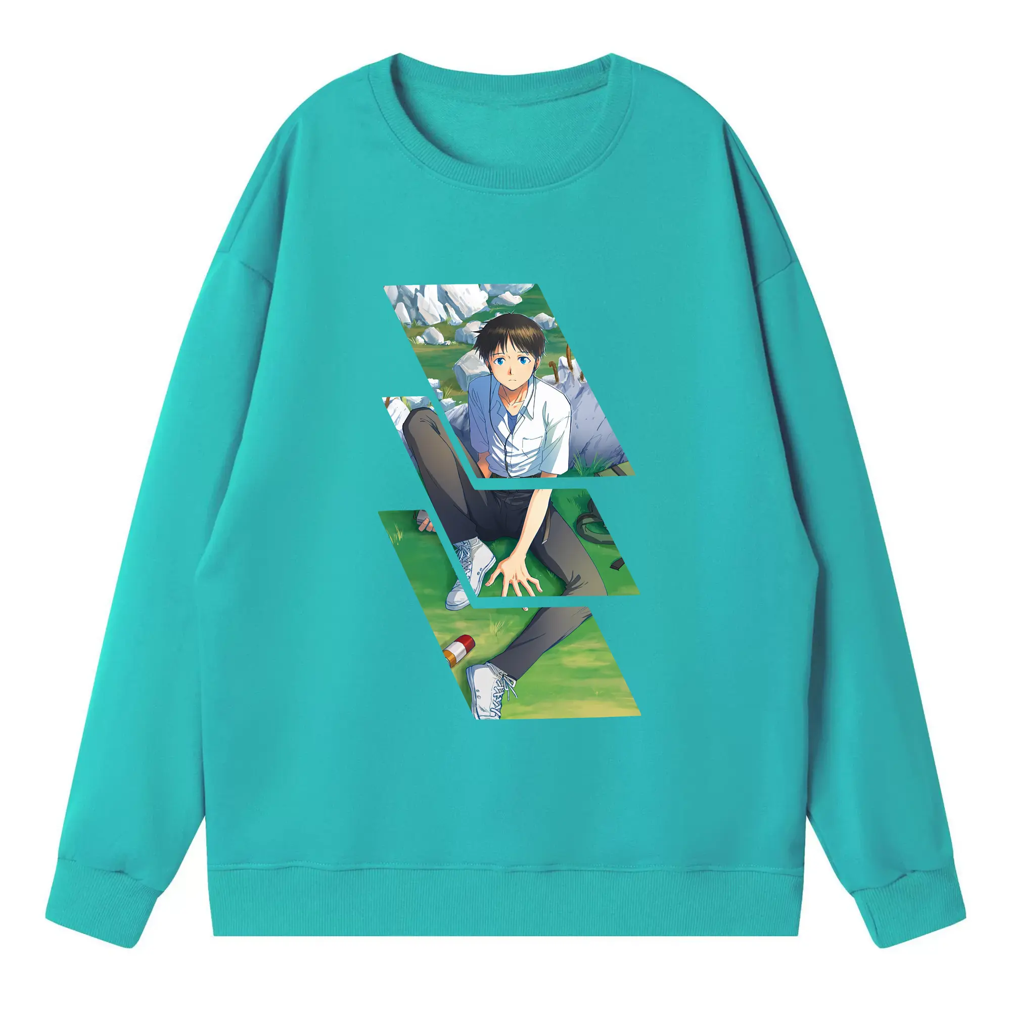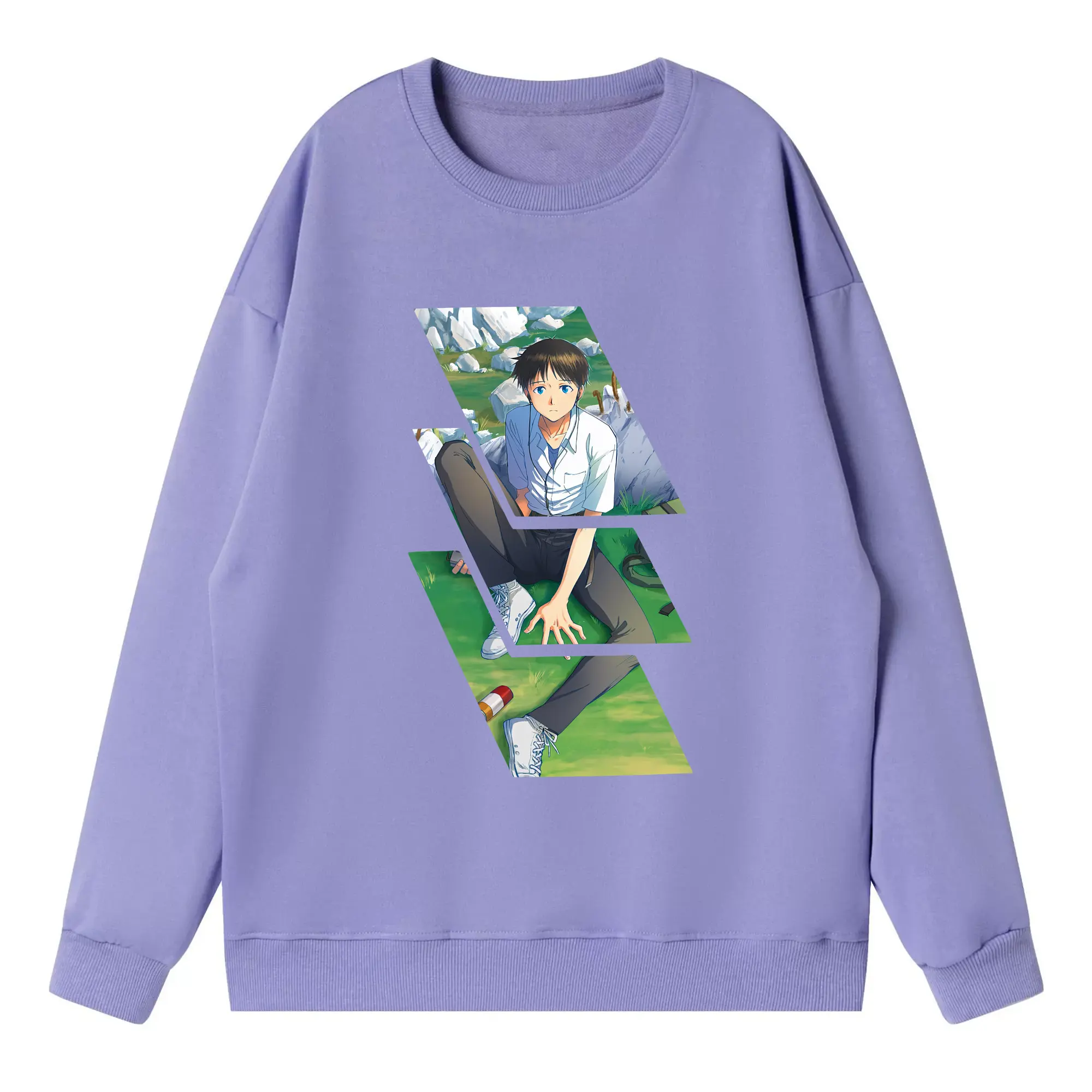 エヴァンゲリオン グッズ,碇シンジ - 高品質 クルーネック スウェット ・ コットン59% ポリエステル41% ・ ユニセックス 長袖 トレーナー ・ カジュアル デイリー スポーツ 散歩用