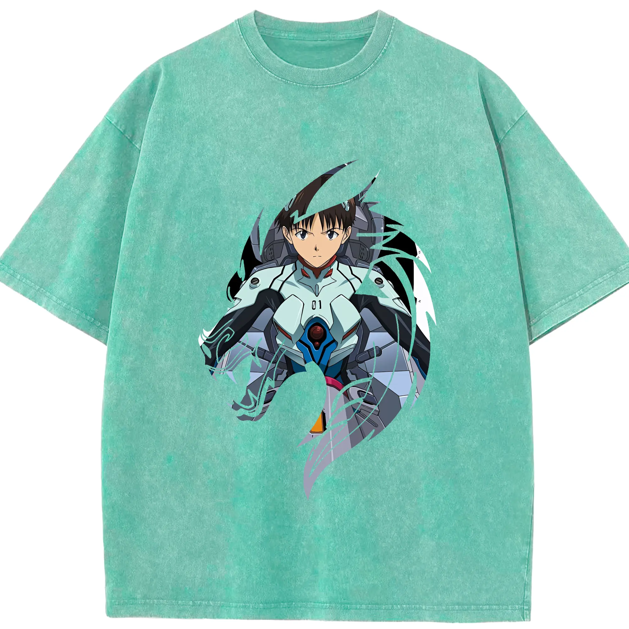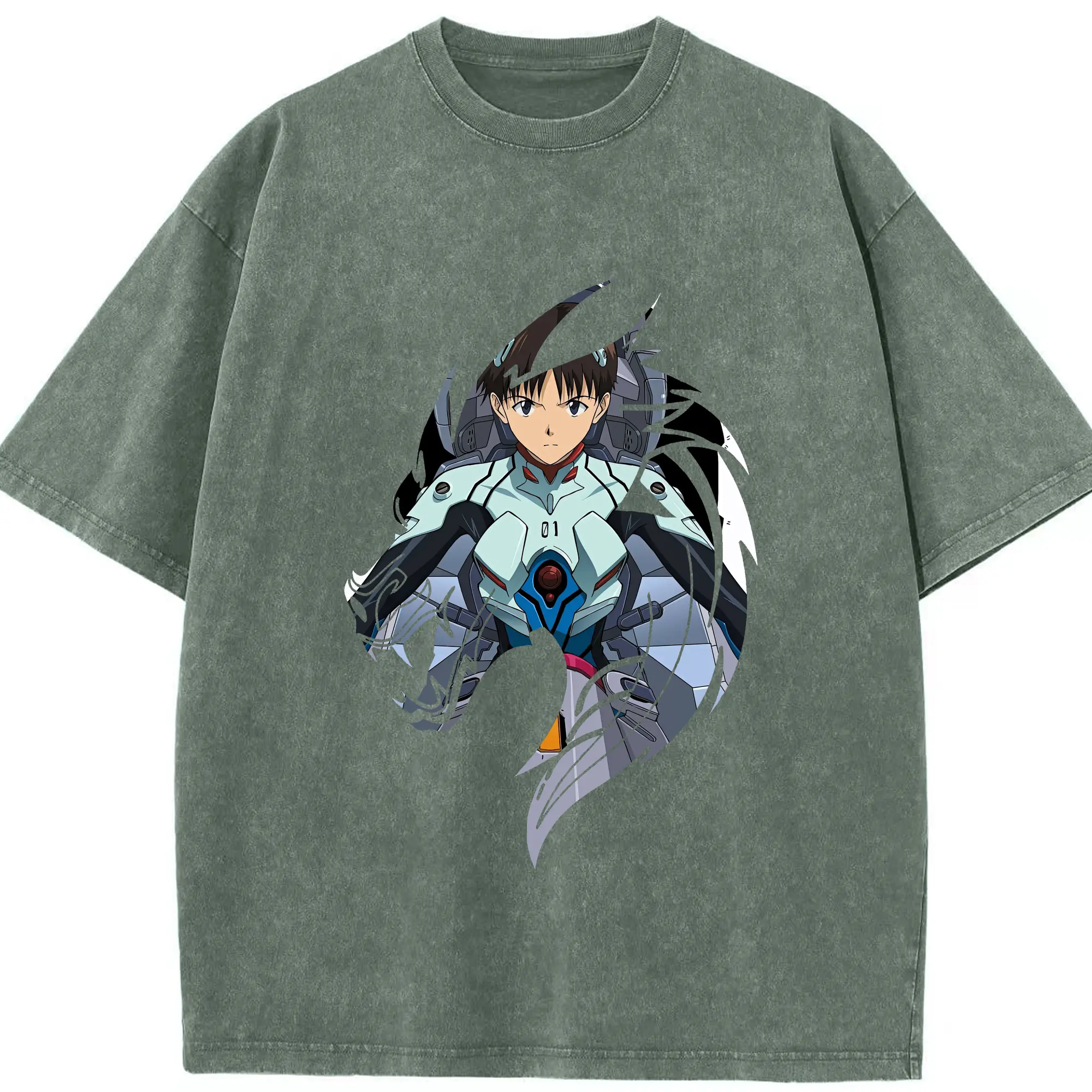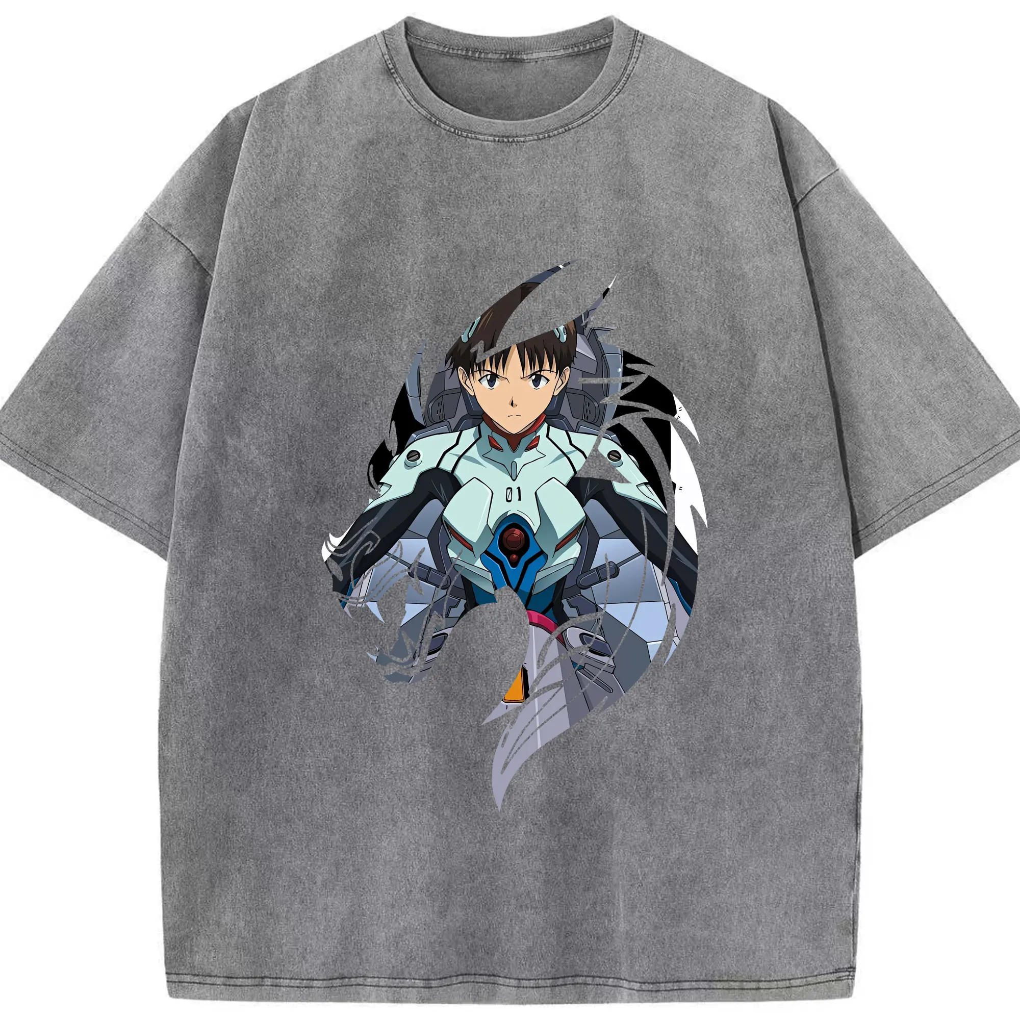 エヴァンゲリオン グッズ,碇シンジ - 綿100% ヴィンテージ風 半袖Tシャツ ・ 背面プリント ・ 柔らか肌触り ・ 通気性 快適 ・ スポーツ カジュアル 外出用