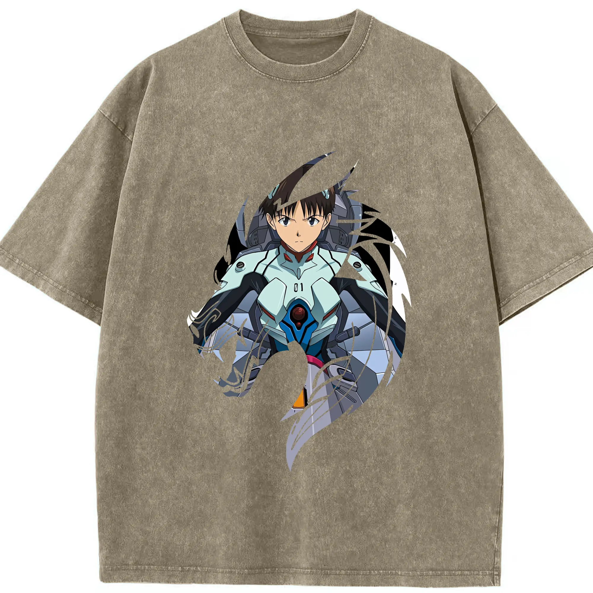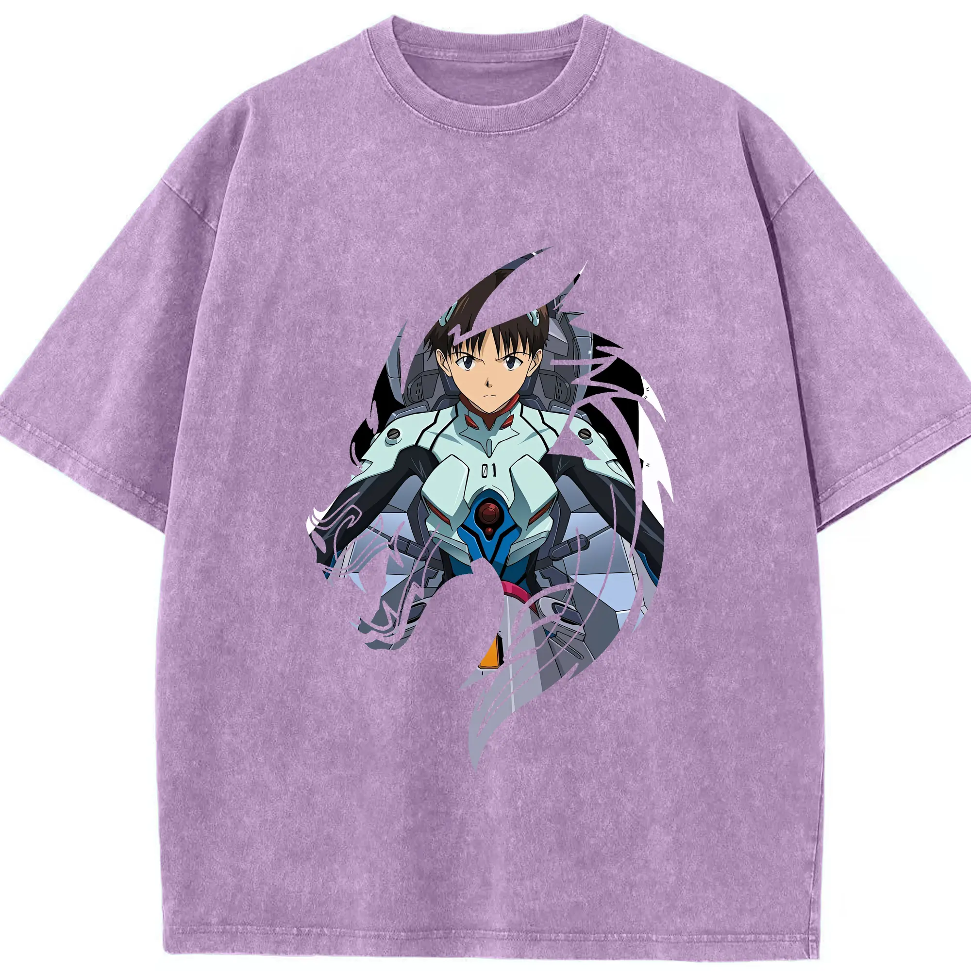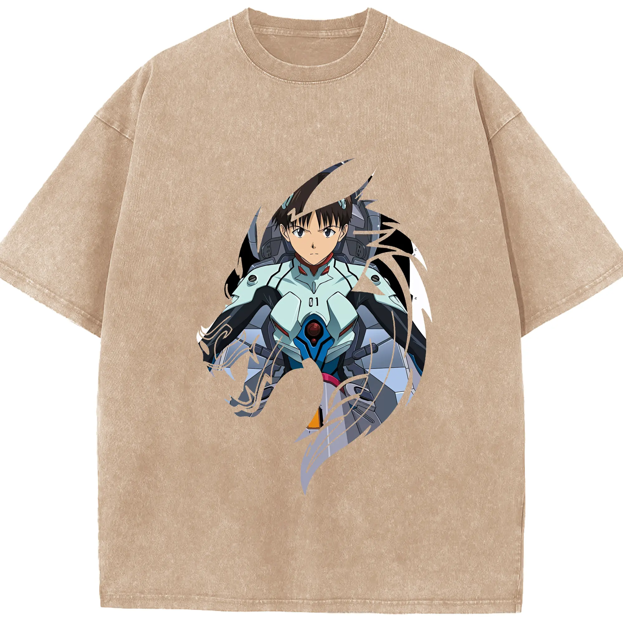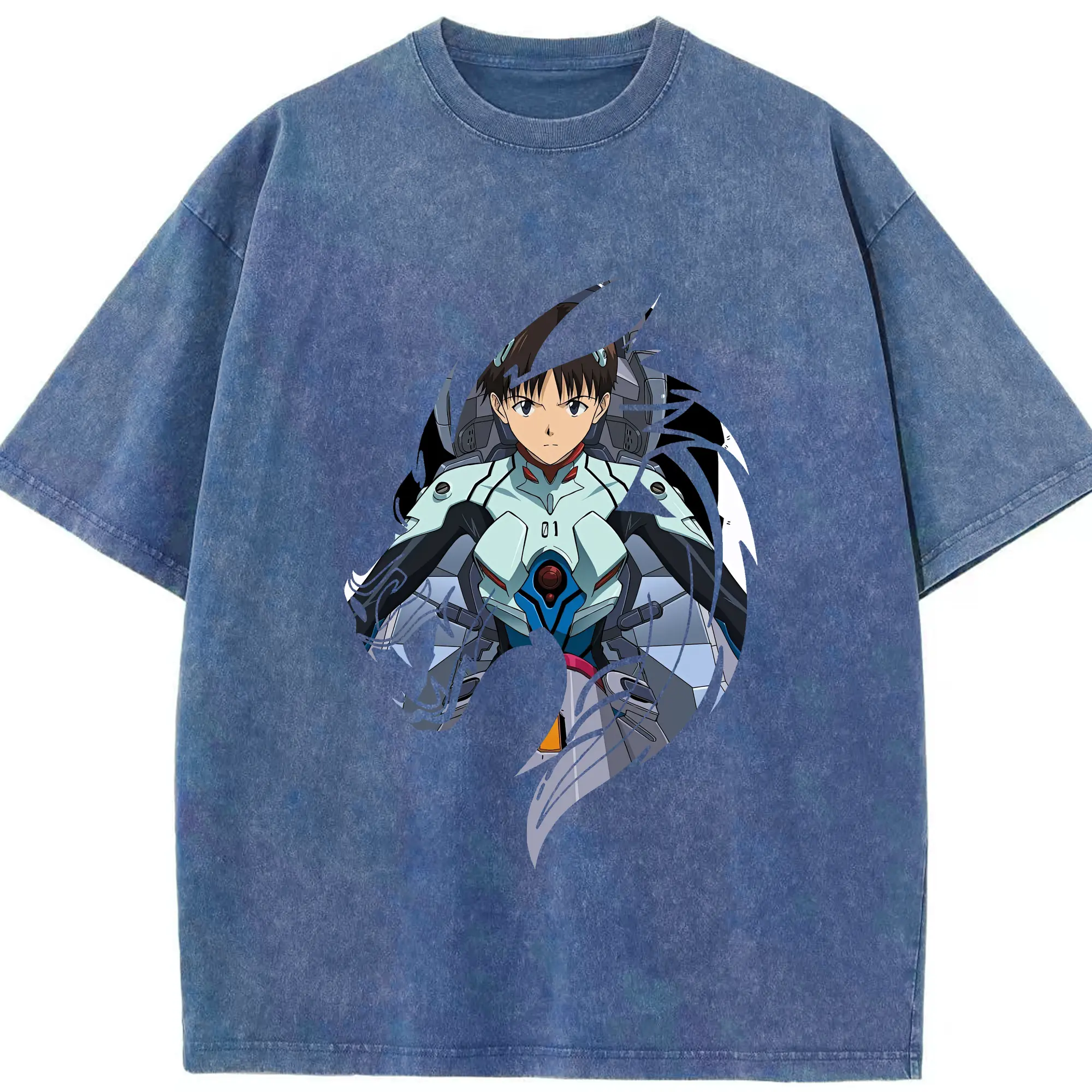 エヴァンゲリオン グッズ,碇シンジ - 綿100% ヴィンテージ風 半袖Tシャツ ・ 背面プリント ・ 柔らか肌触り ・ 通気性 快適 ・ スポーツ カジュアル 外出用