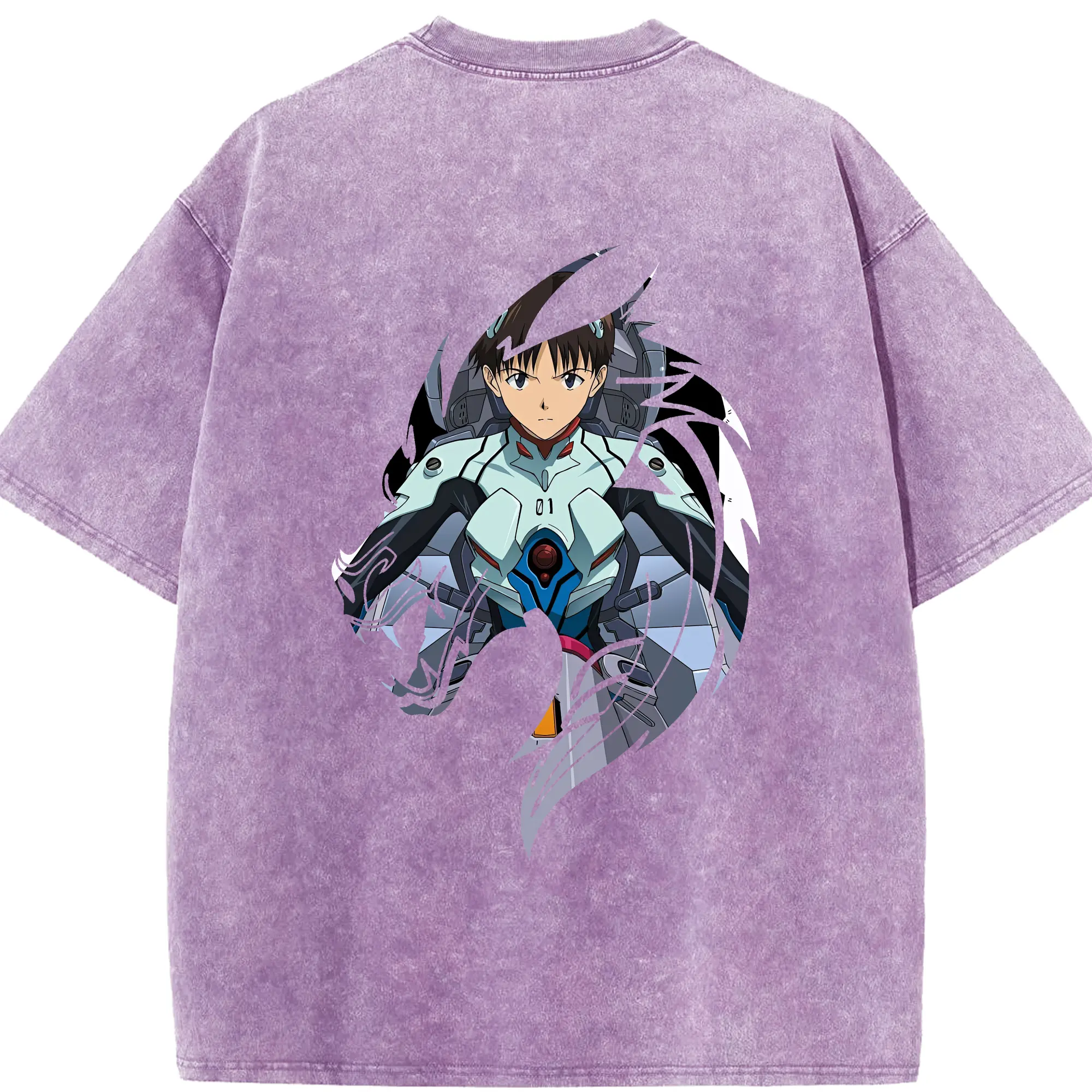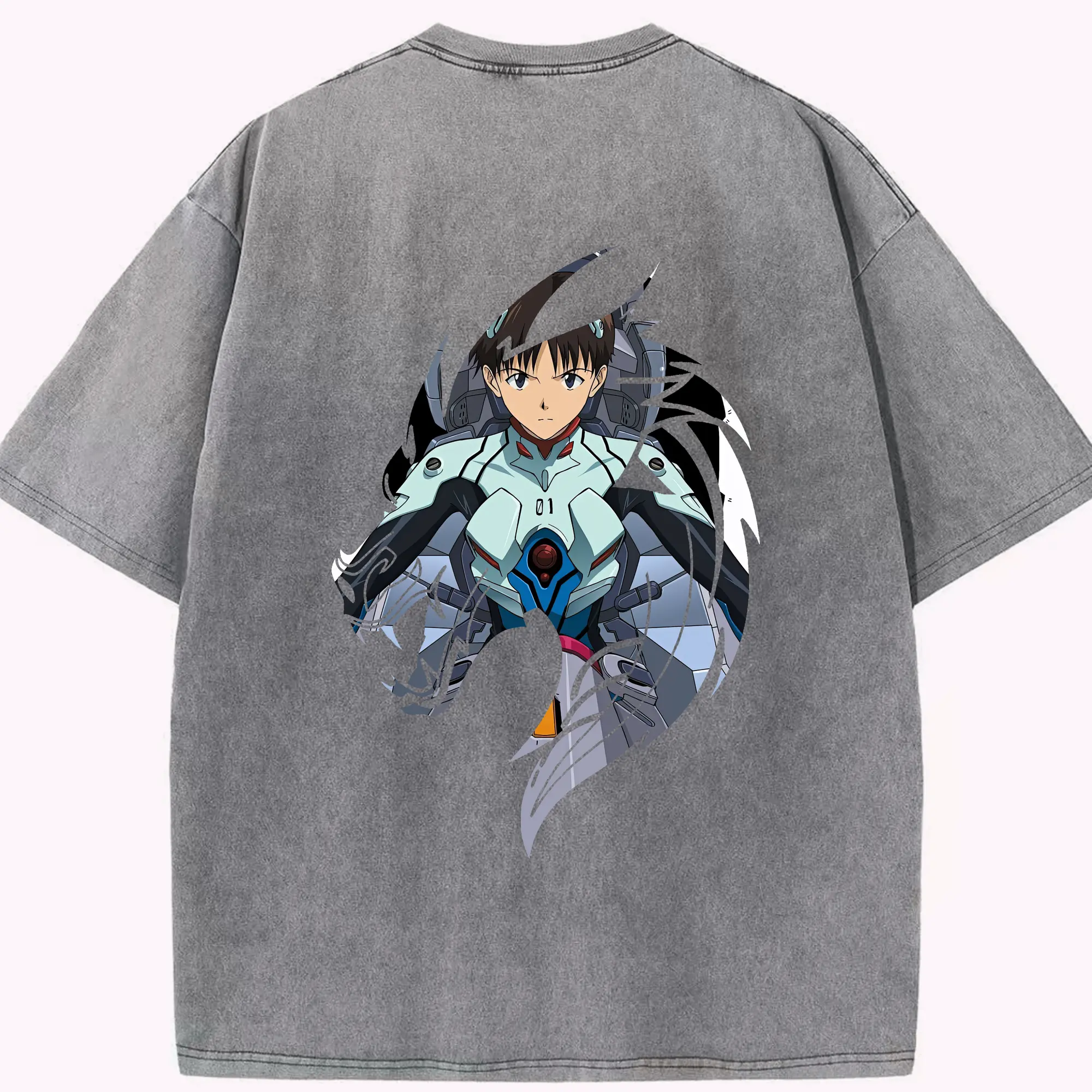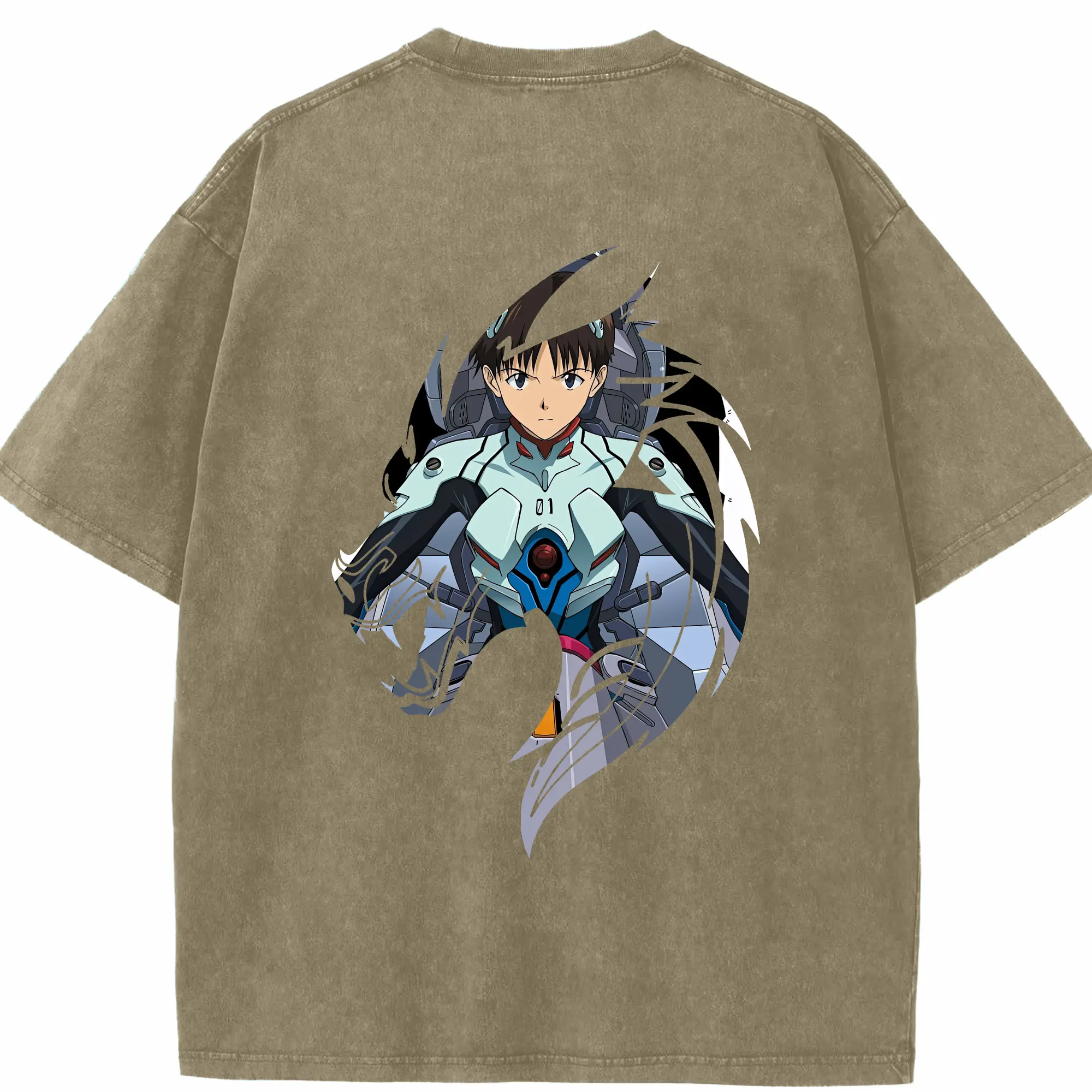 エヴァンゲリオン グッズ,碇シンジ - 綿100% ヴィンテージ風 半袖Tシャツ ・ フロントプリント ・ 柔らか肌触り ・ 通気性 快適 ・ スポーツ カジュアル 外出用