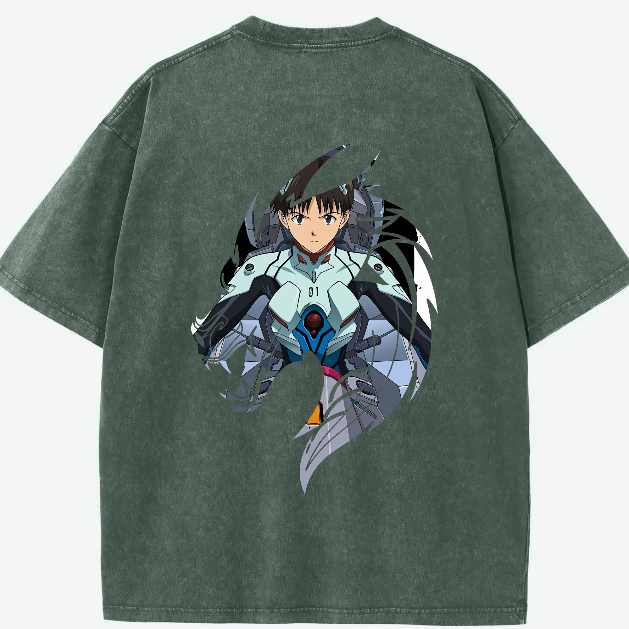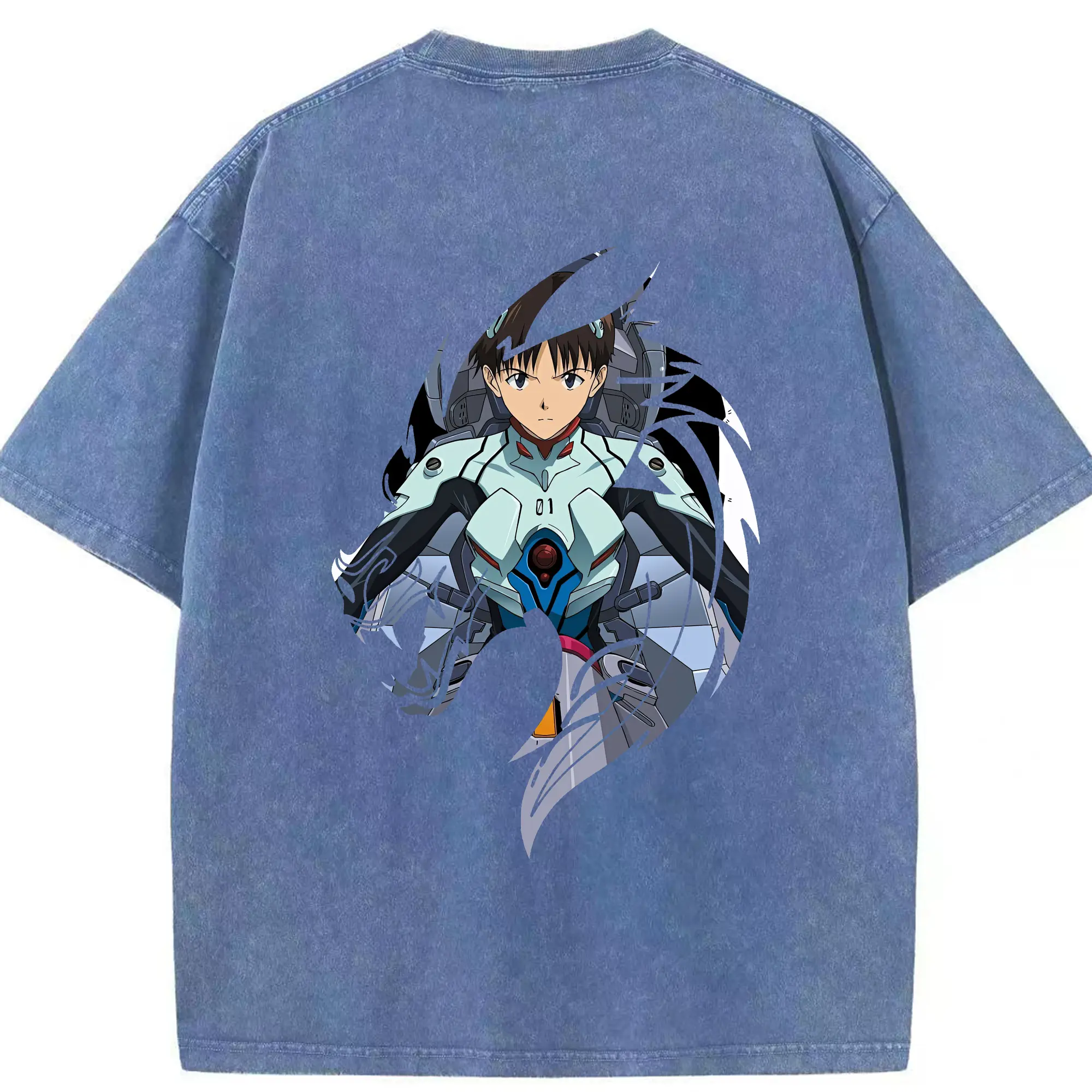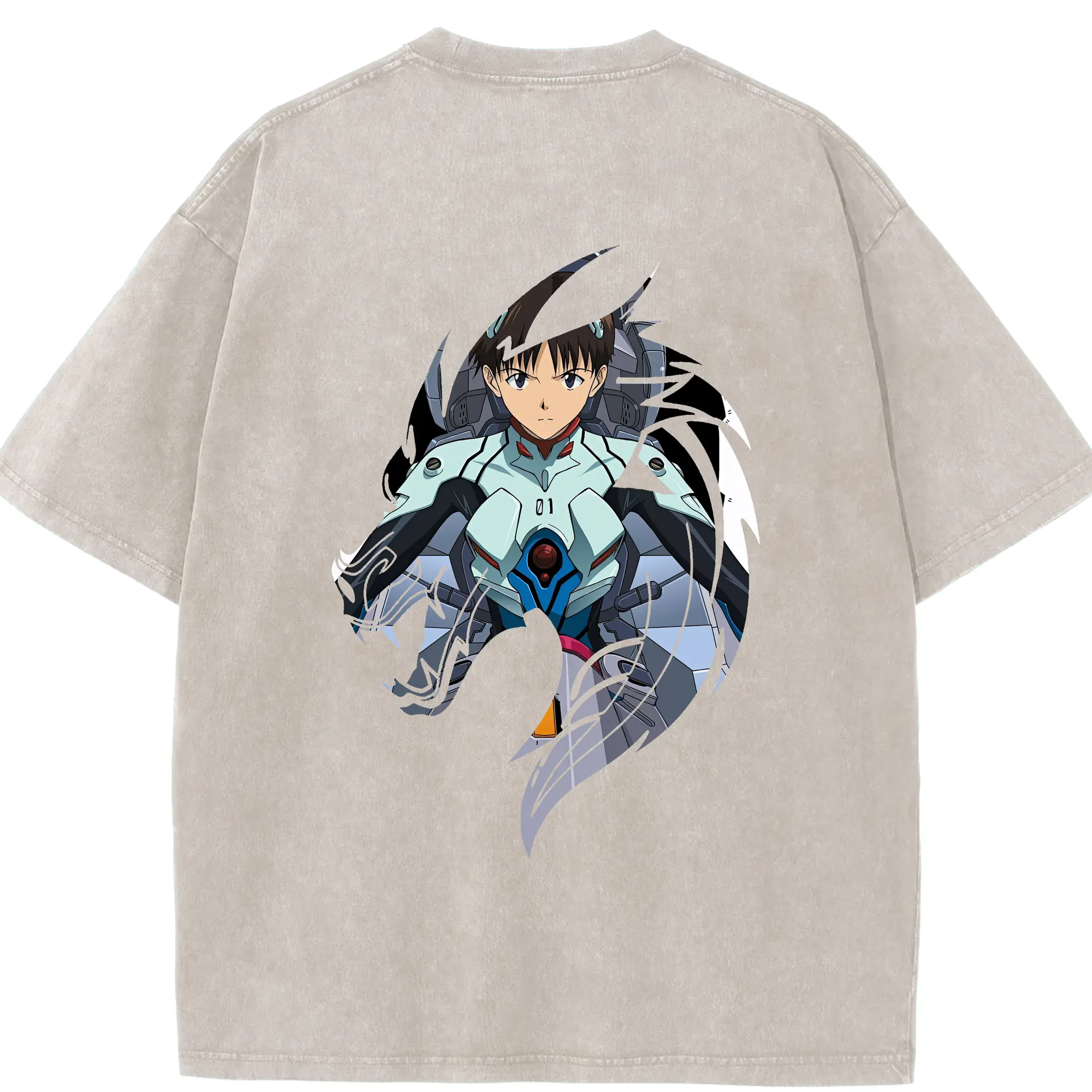 エヴァンゲリオン グッズ,碇シンジ - 綿100% ヴィンテージ風 半袖Tシャツ ・ フロントプリント ・ 柔らか肌触り ・ 通気性 快適 ・ スポーツ カジュアル 外出用