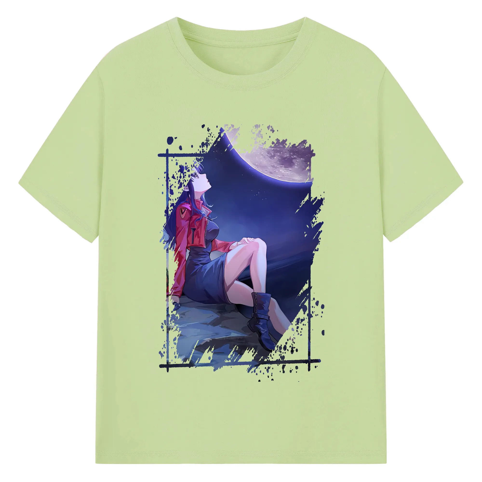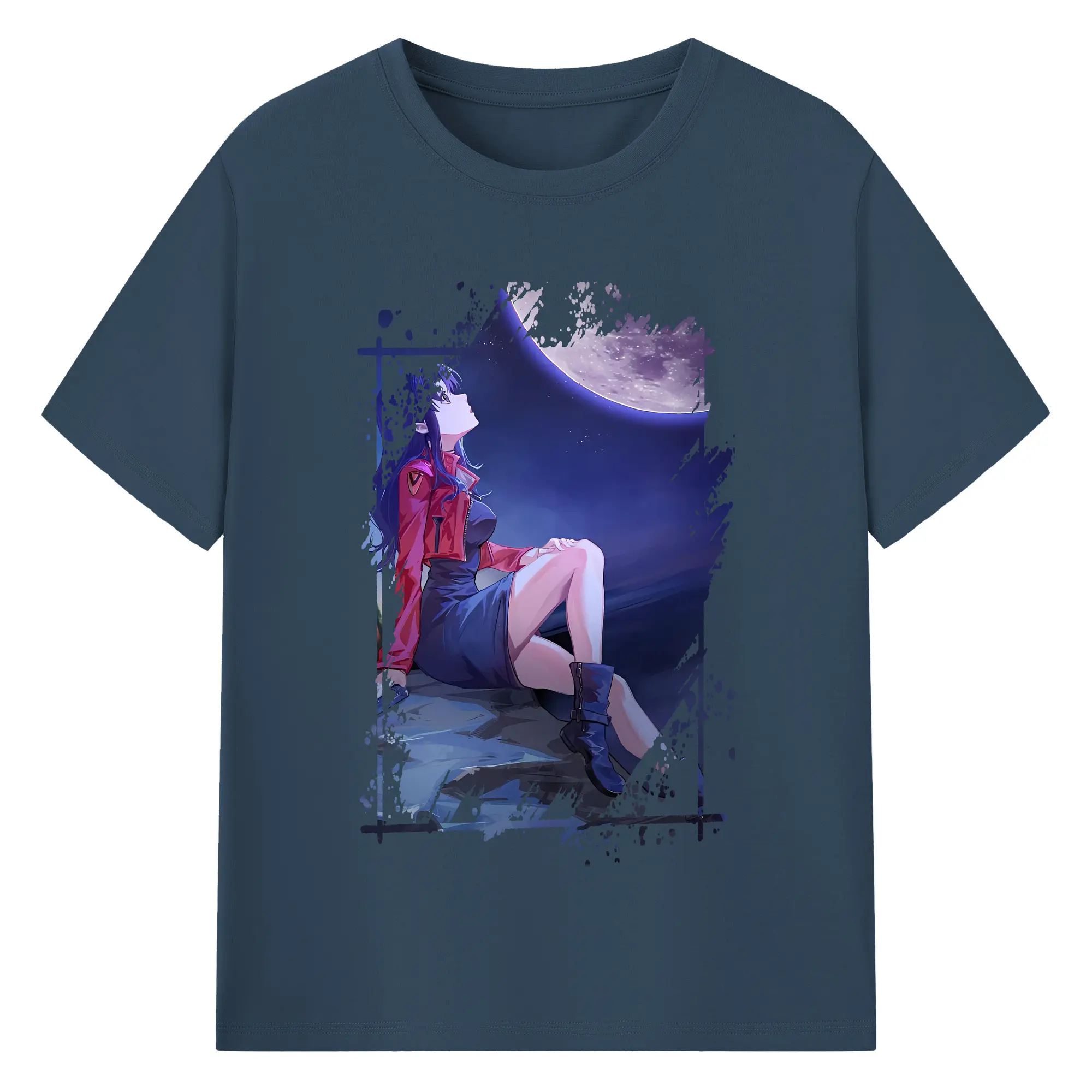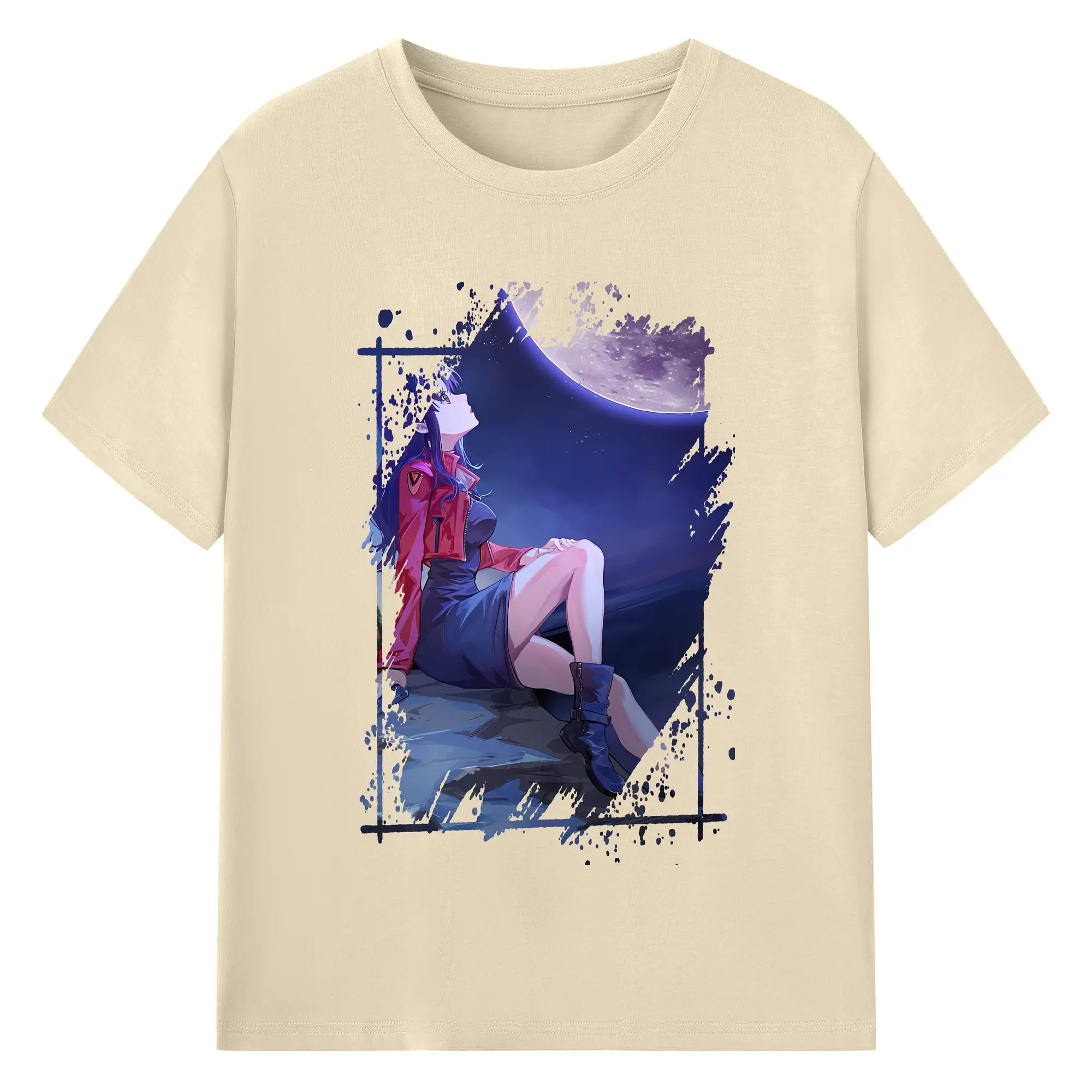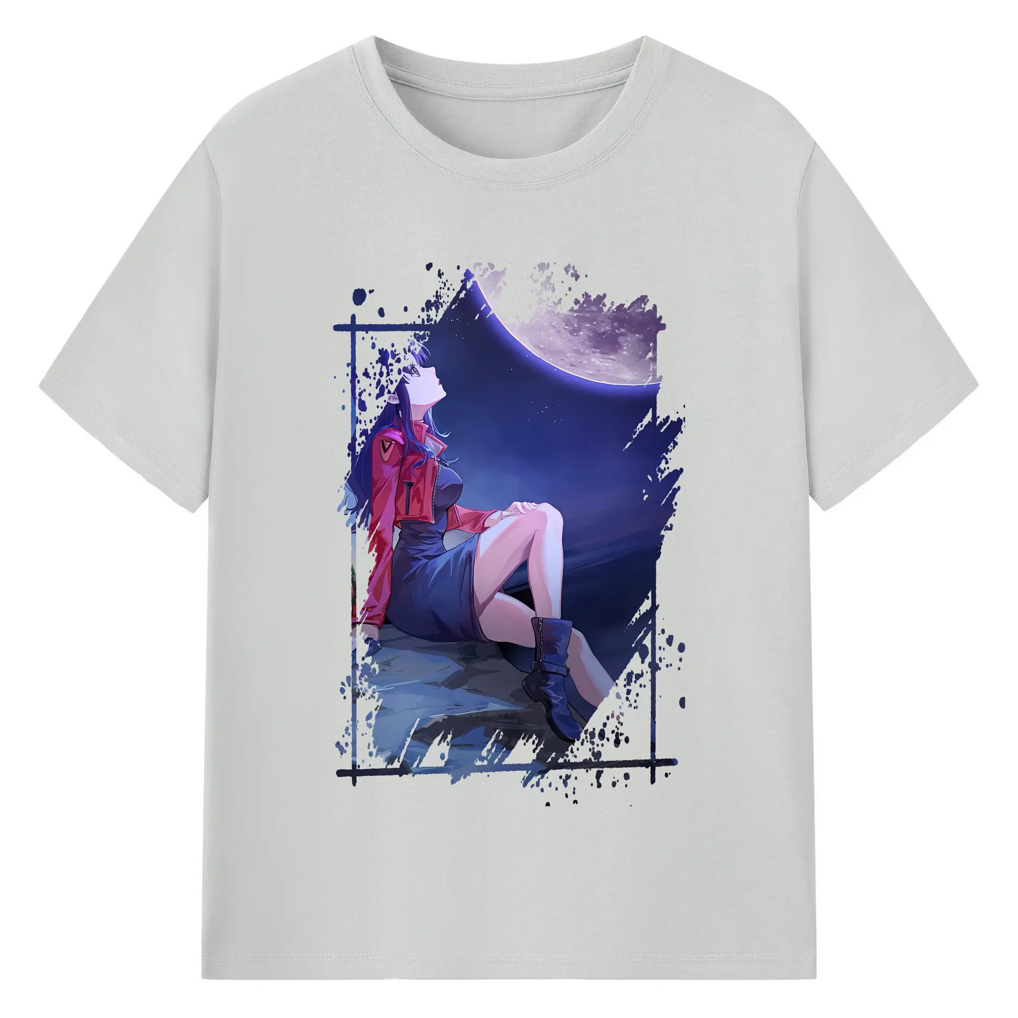 エヴァンゲリオン グッズ,葛城ミサト - 綿100% ヴィンテージ風 半袖Tシャツ ・ フロントプリント ・ 柔らか肌触り ・ 通気性 快適 ・ スポーツ カジュアル 外出用