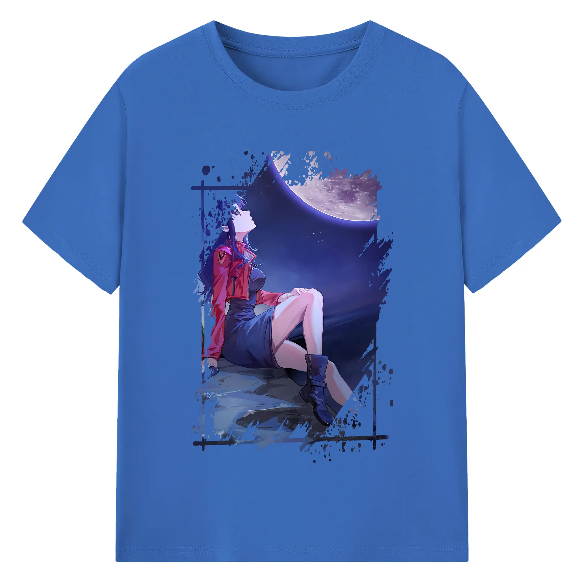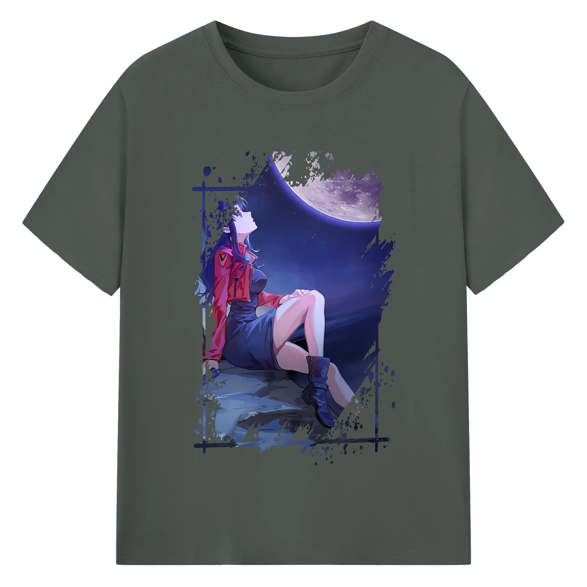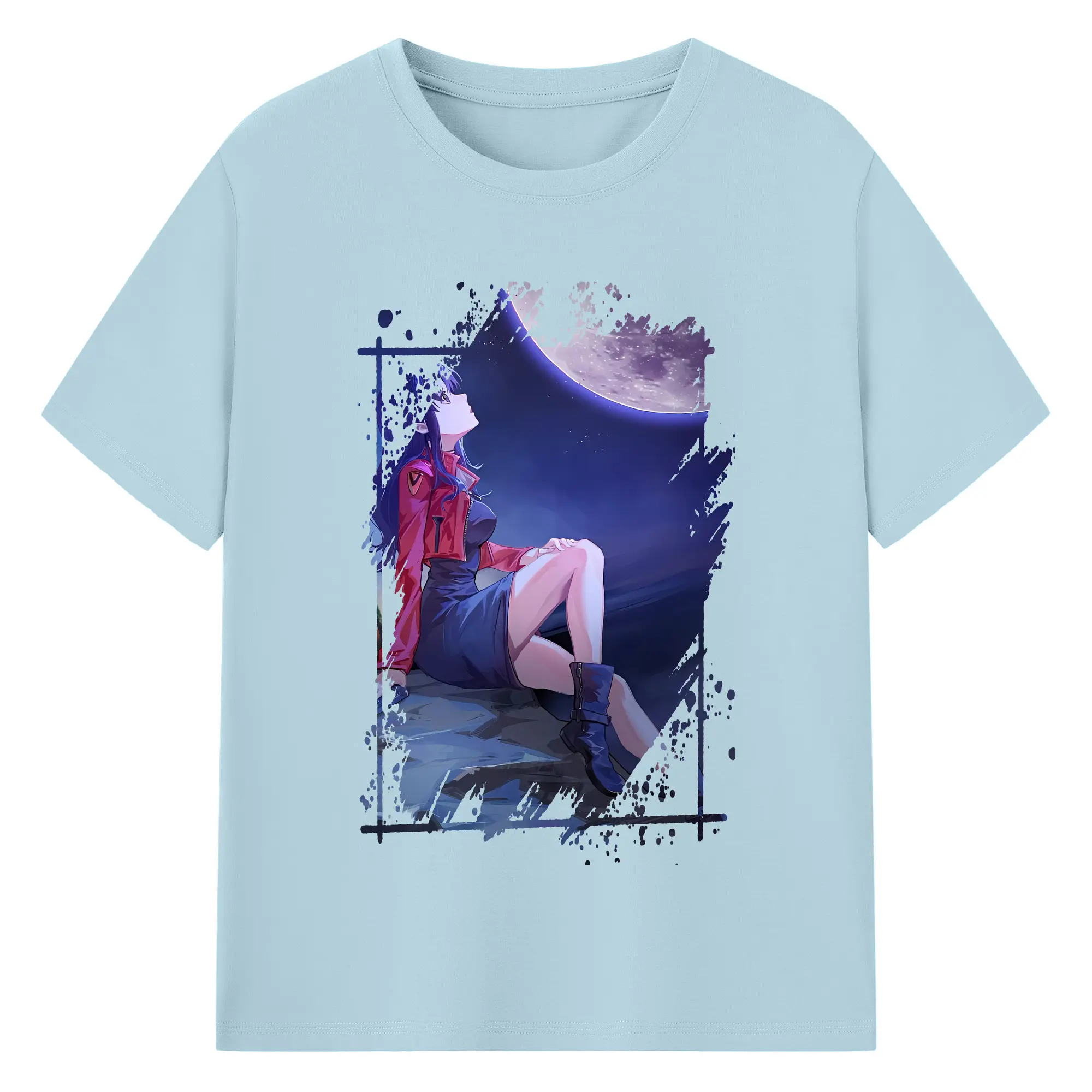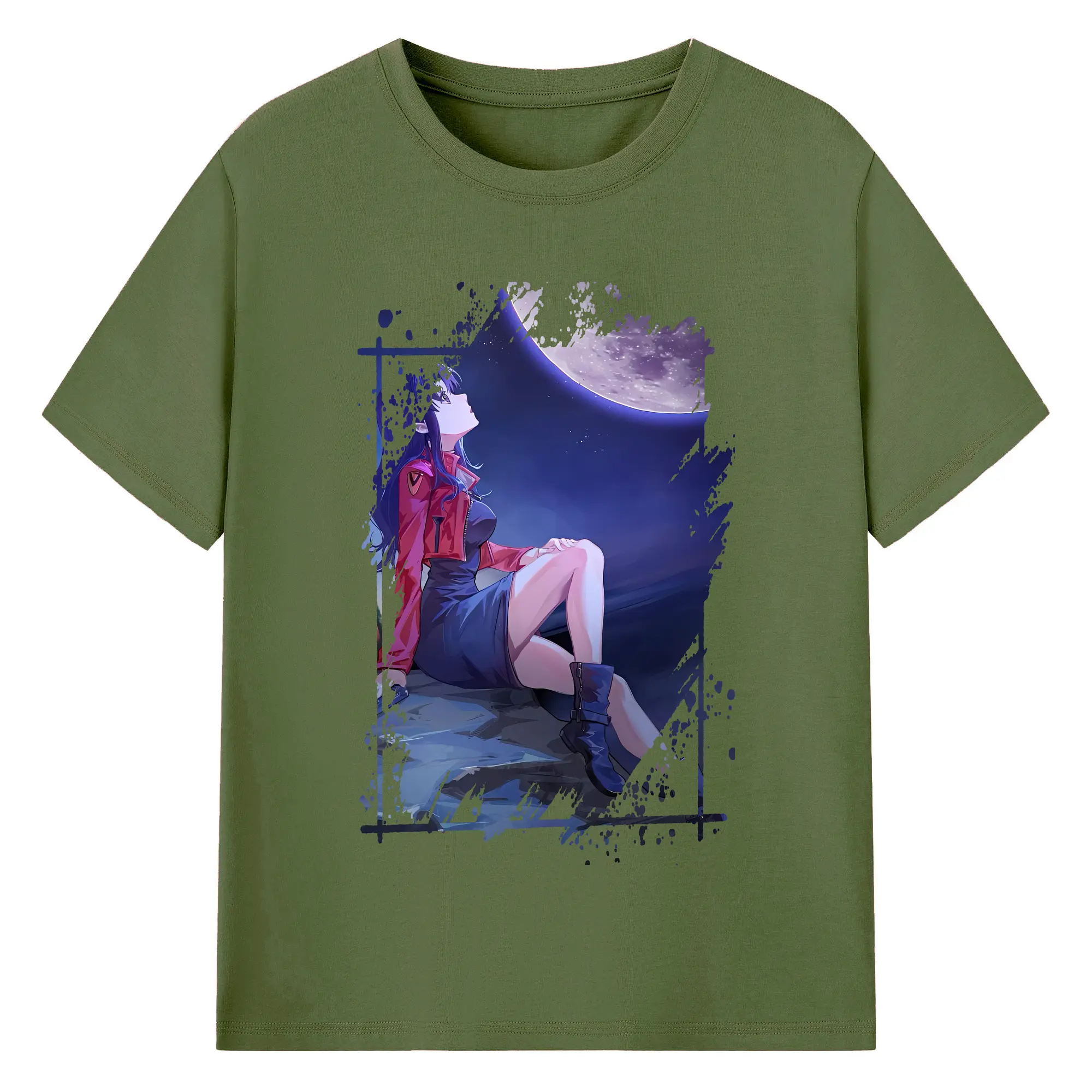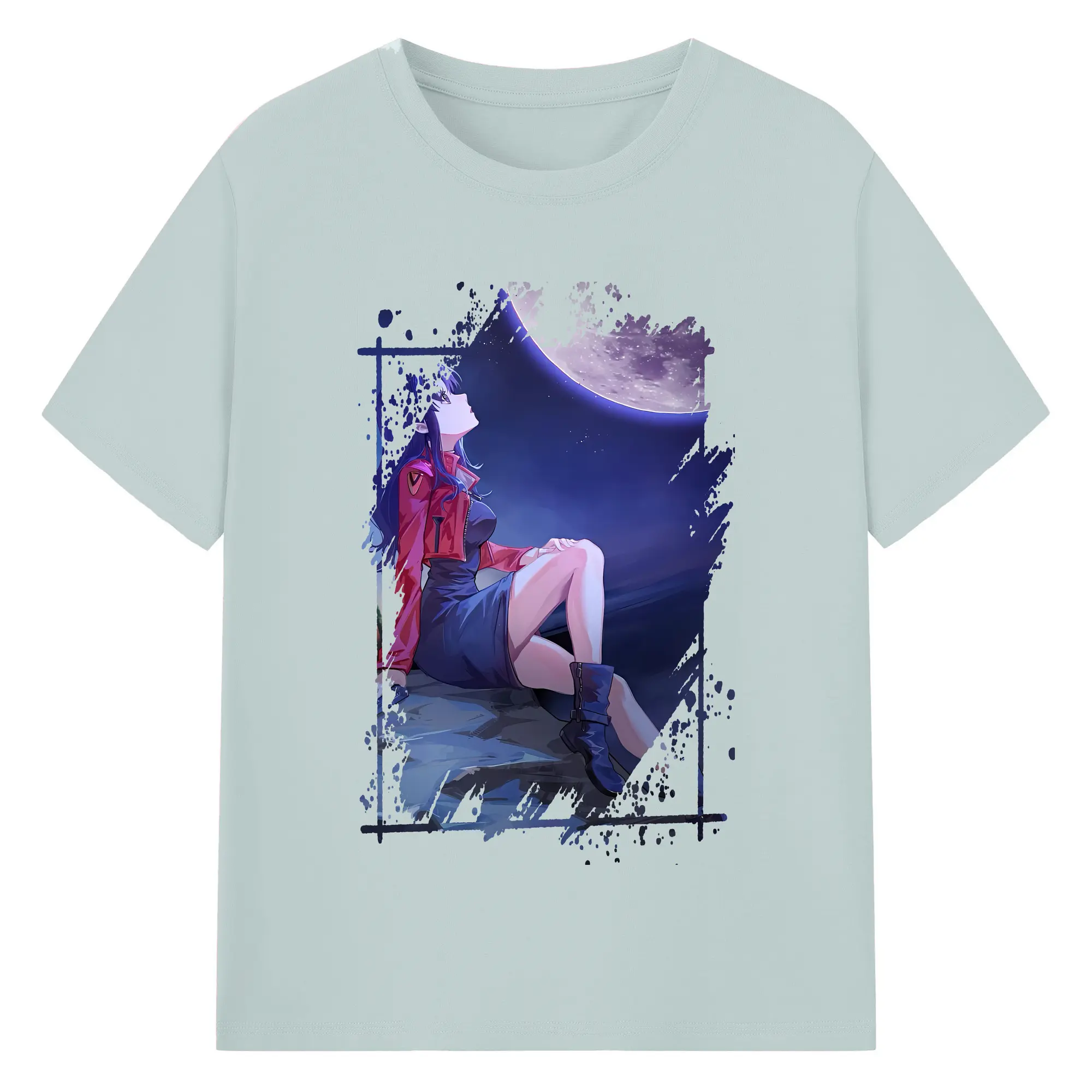 エヴァンゲリオン グッズ,葛城ミサト - 綿100% ヴィンテージ風 半袖Tシャツ ・ フロントプリント ・ 柔らか肌触り ・ 通気性 快適 ・ スポーツ カジュアル 外出用