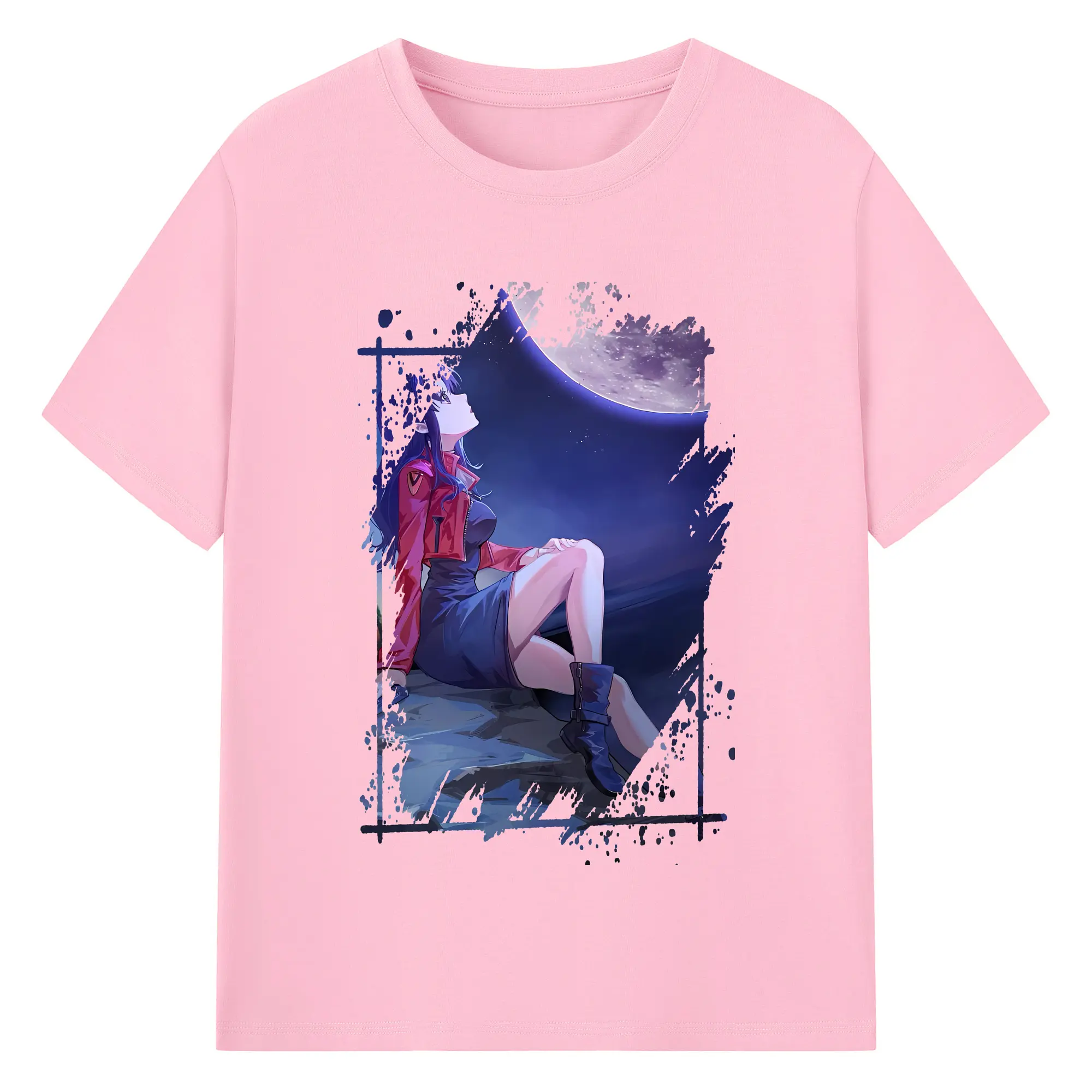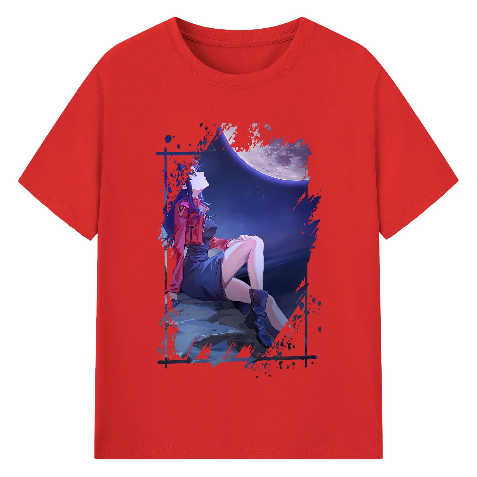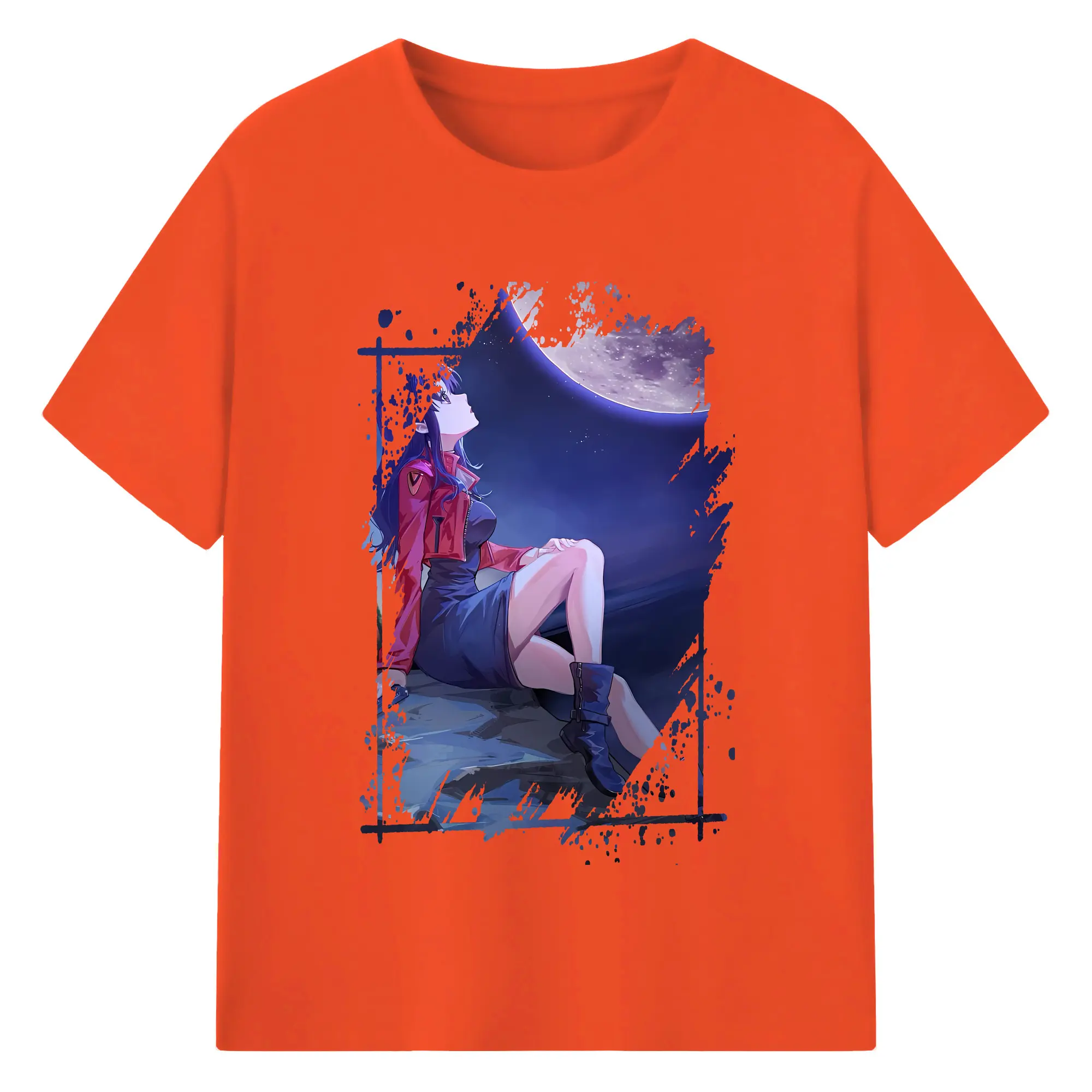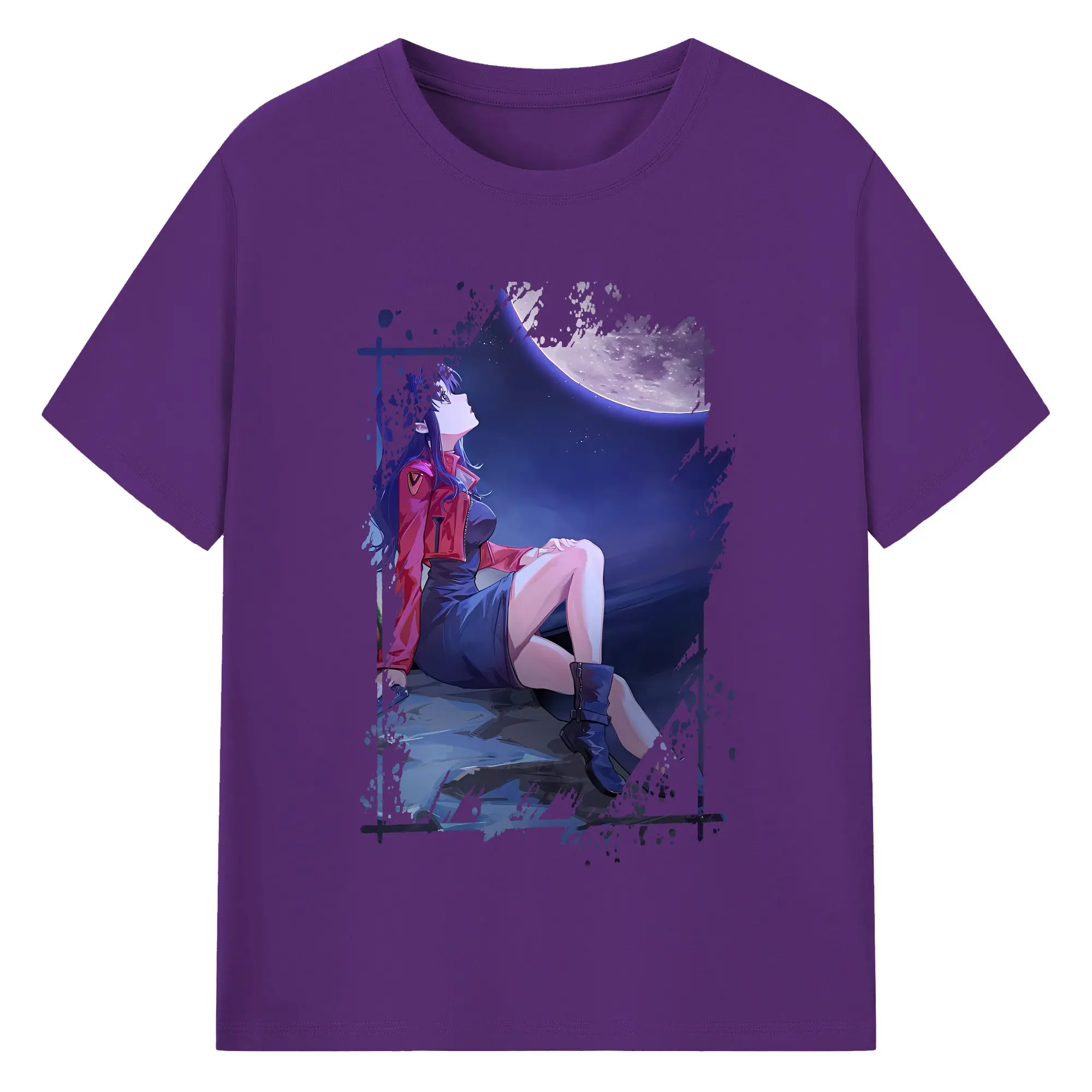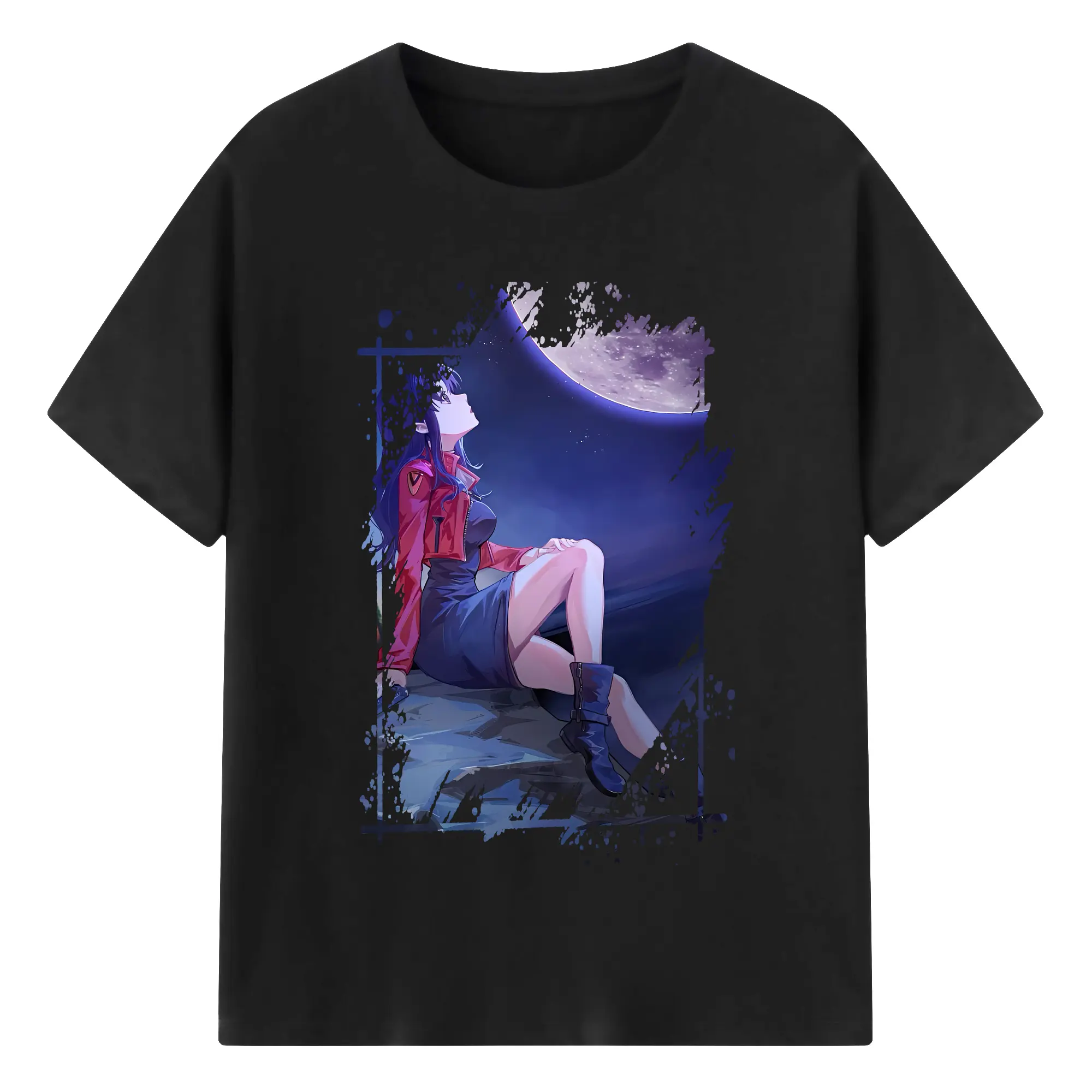 エヴァンゲリオン グッズ,葛城ミサト - 綿100% 半袖Tシャツ ・ バックプリント ・ 快適 通気性 ・ 日常使い 散歩 スポーツ用
