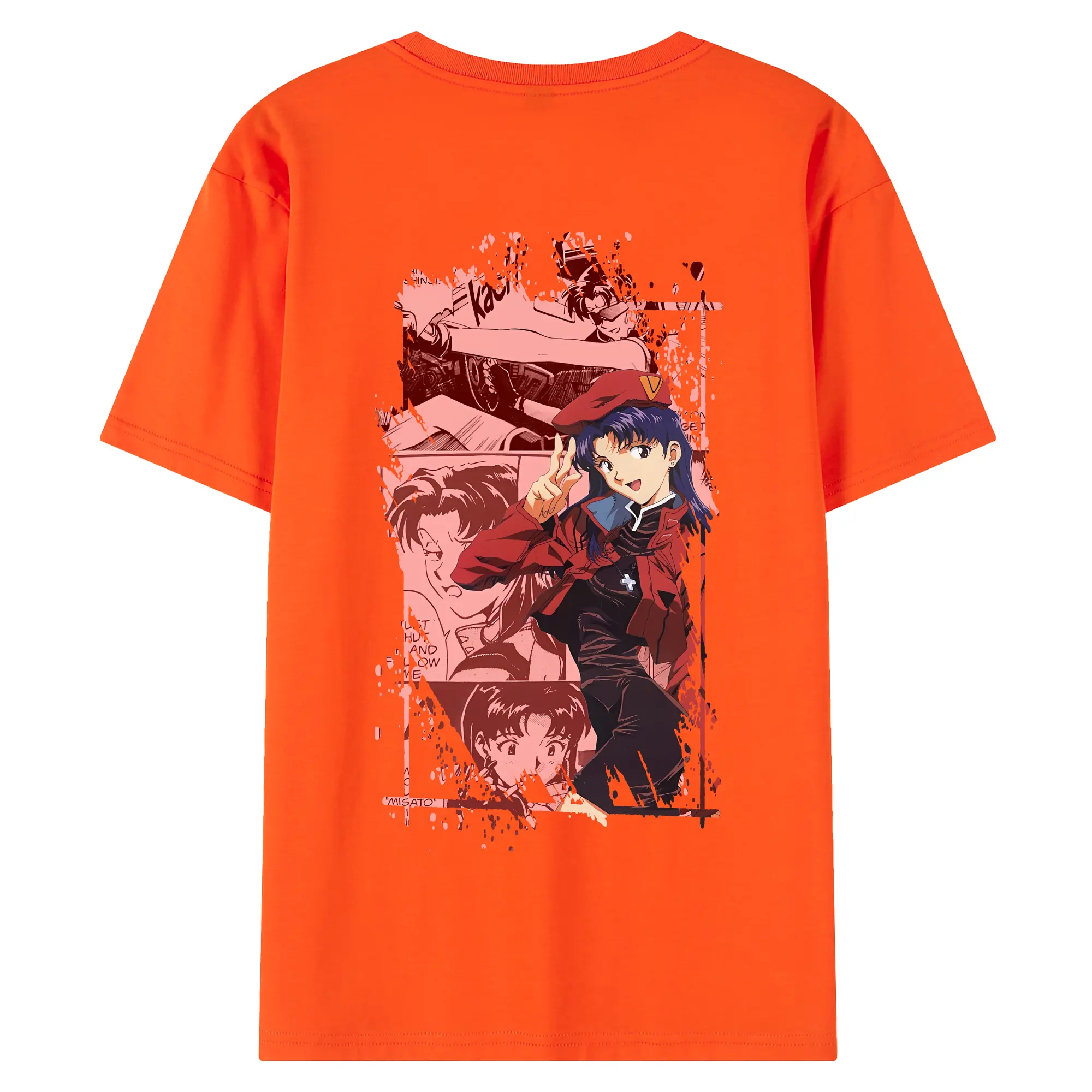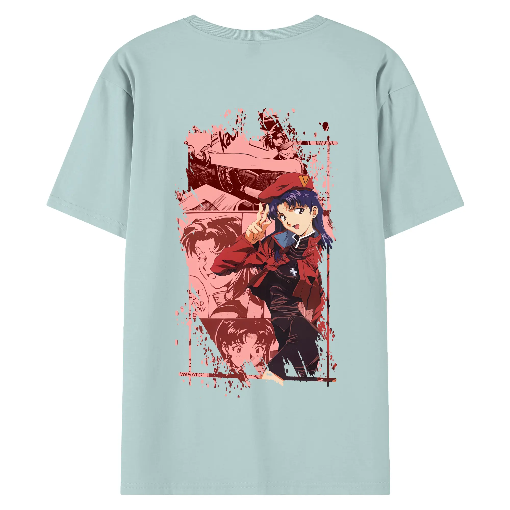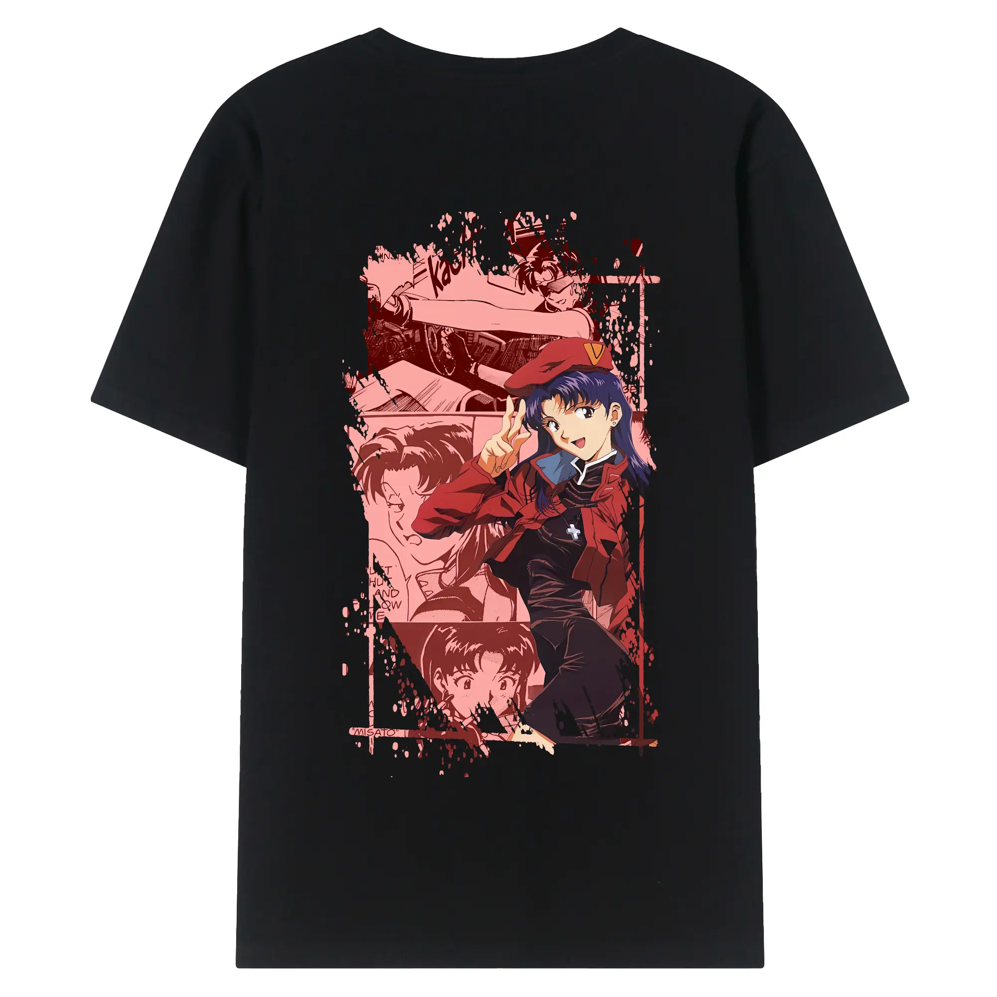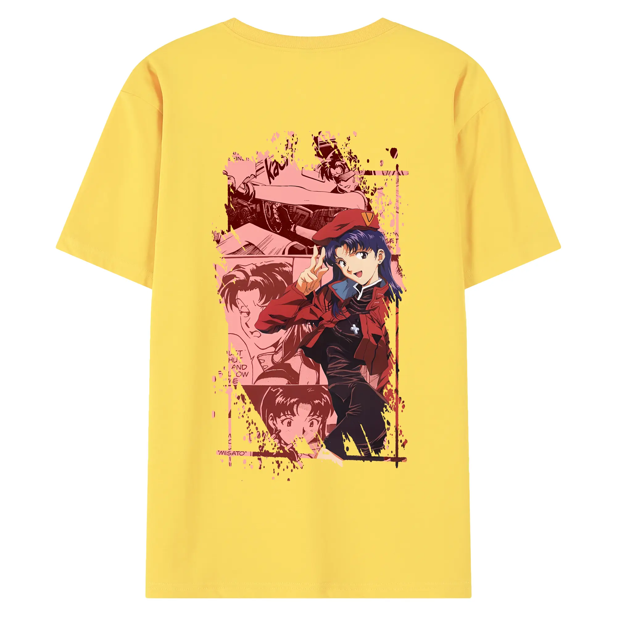 エヴァンゲリオン グッズ,葛城ミサト - 綿100% ヴィンテージ風 半袖Tシャツ ・ 背面プリント ・ 柔らか肌触り ・ 通気性 快適 ・ スポーツ カジュアル 外出用