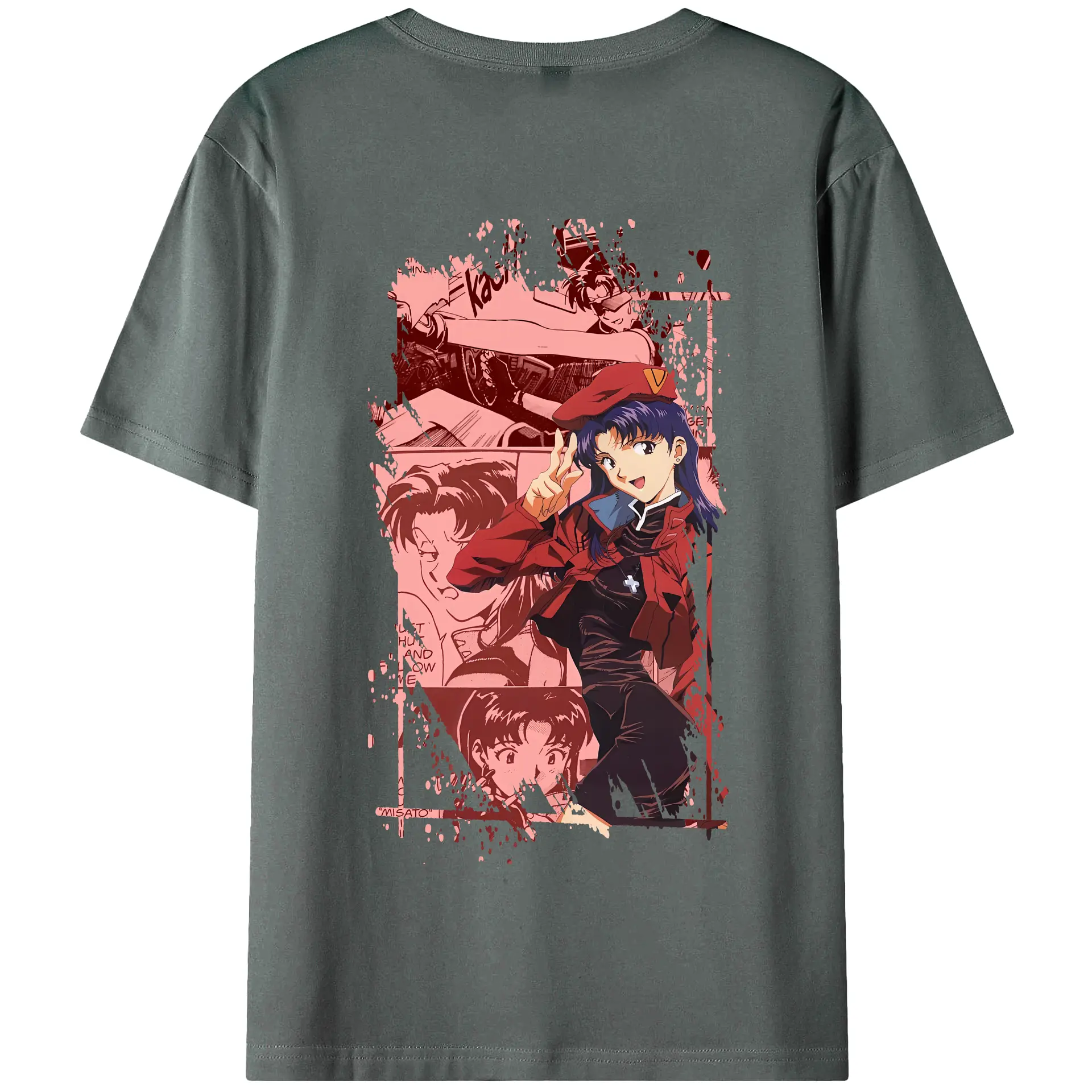 エヴァンゲリオン グッズ,葛城ミサト - 綿100% 半袖Tシャツ ・ フロントプリント ・ 快適 通気性 ・ 日常使い 散歩 スポーツ用