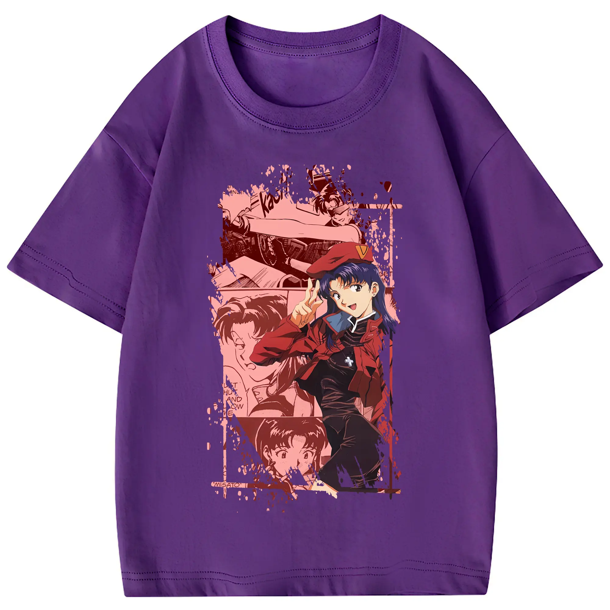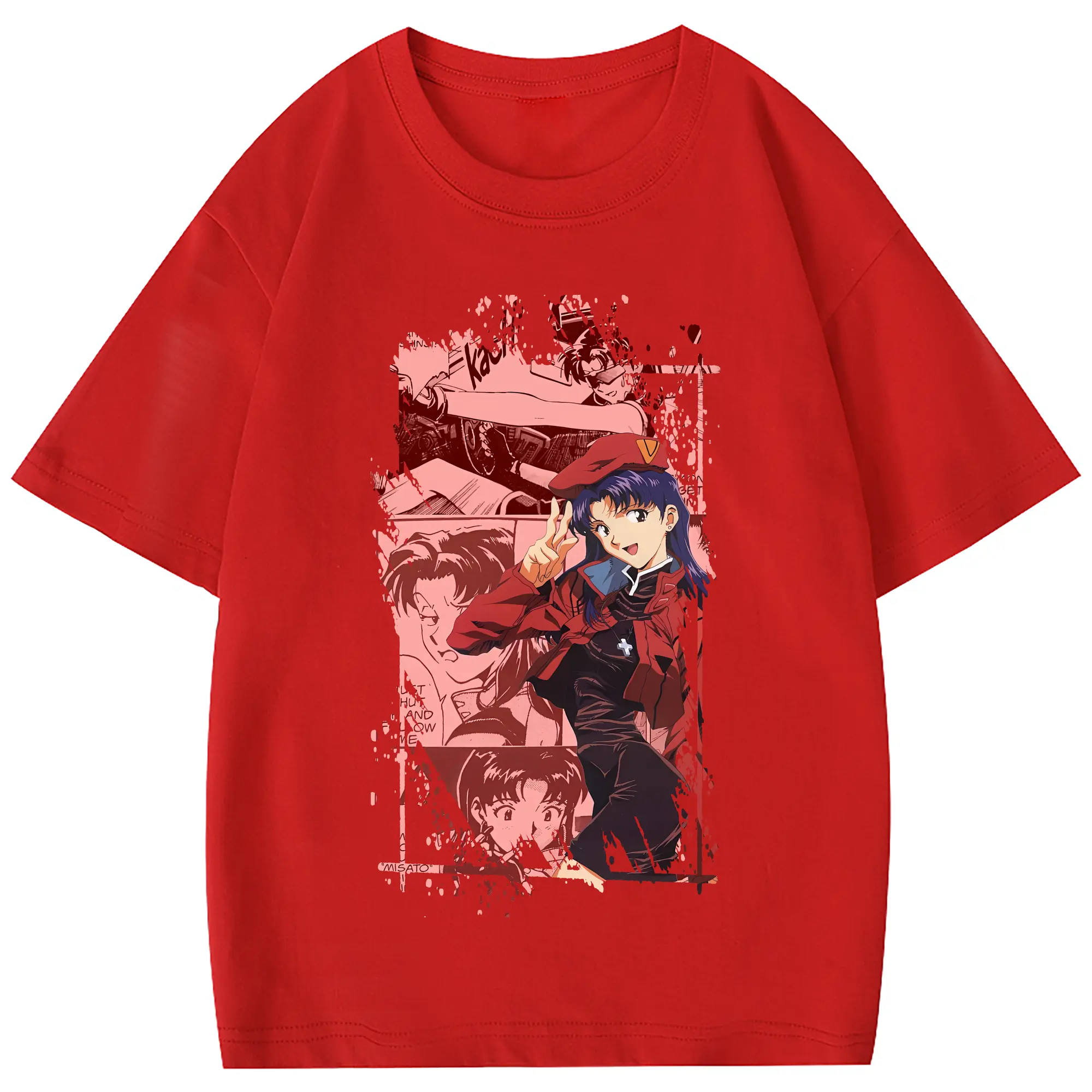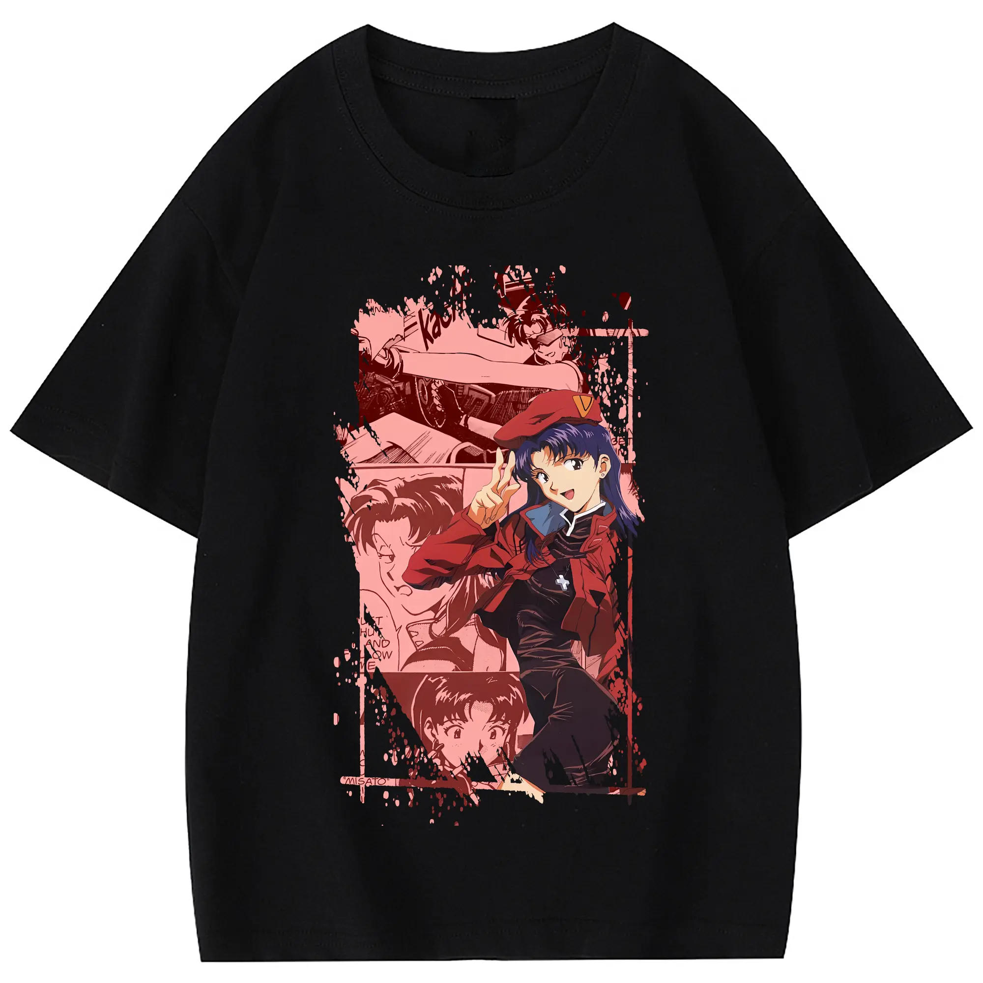 エヴァンゲリオン グッズ,葛城ミサト - 綿100% 半袖Tシャツ ・ フロントプリント ・ 快適 通気性 ・ 日常使い 散歩 スポーツ用