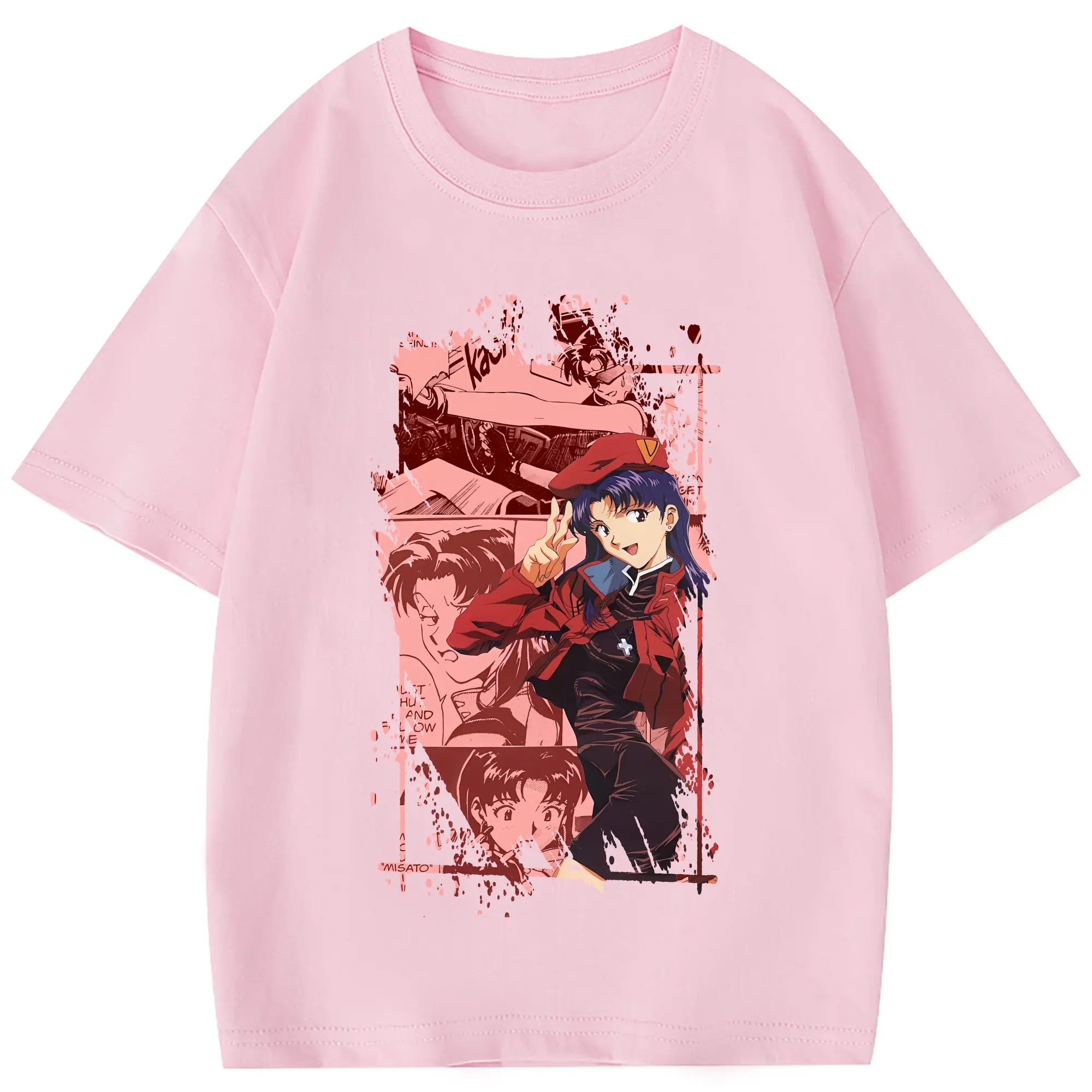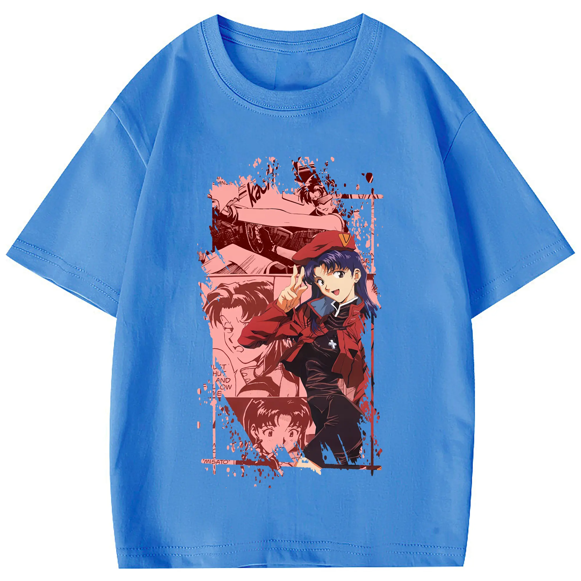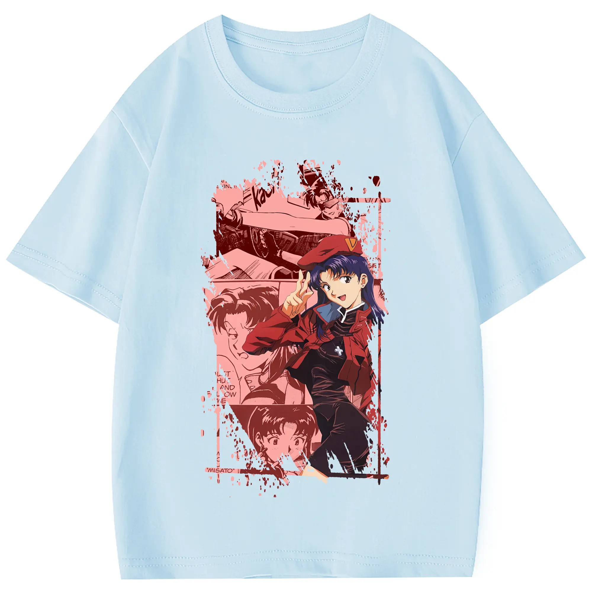 エヴァンゲリオン グッズ,葛城ミサト - 綿100% 半袖Tシャツ ・ フロントプリント ・ 快適 通気性 ・ 日常使い 散歩 スポーツ用