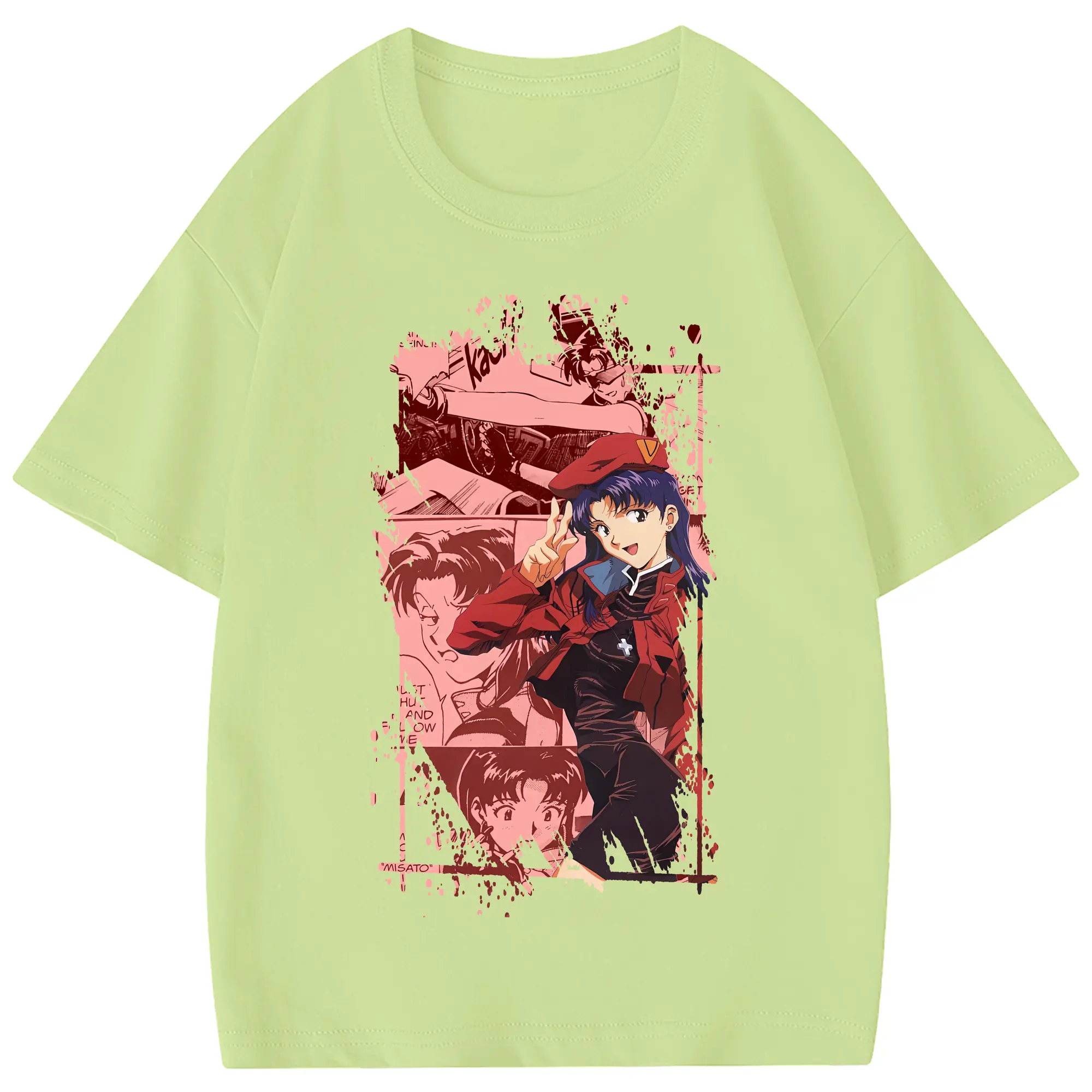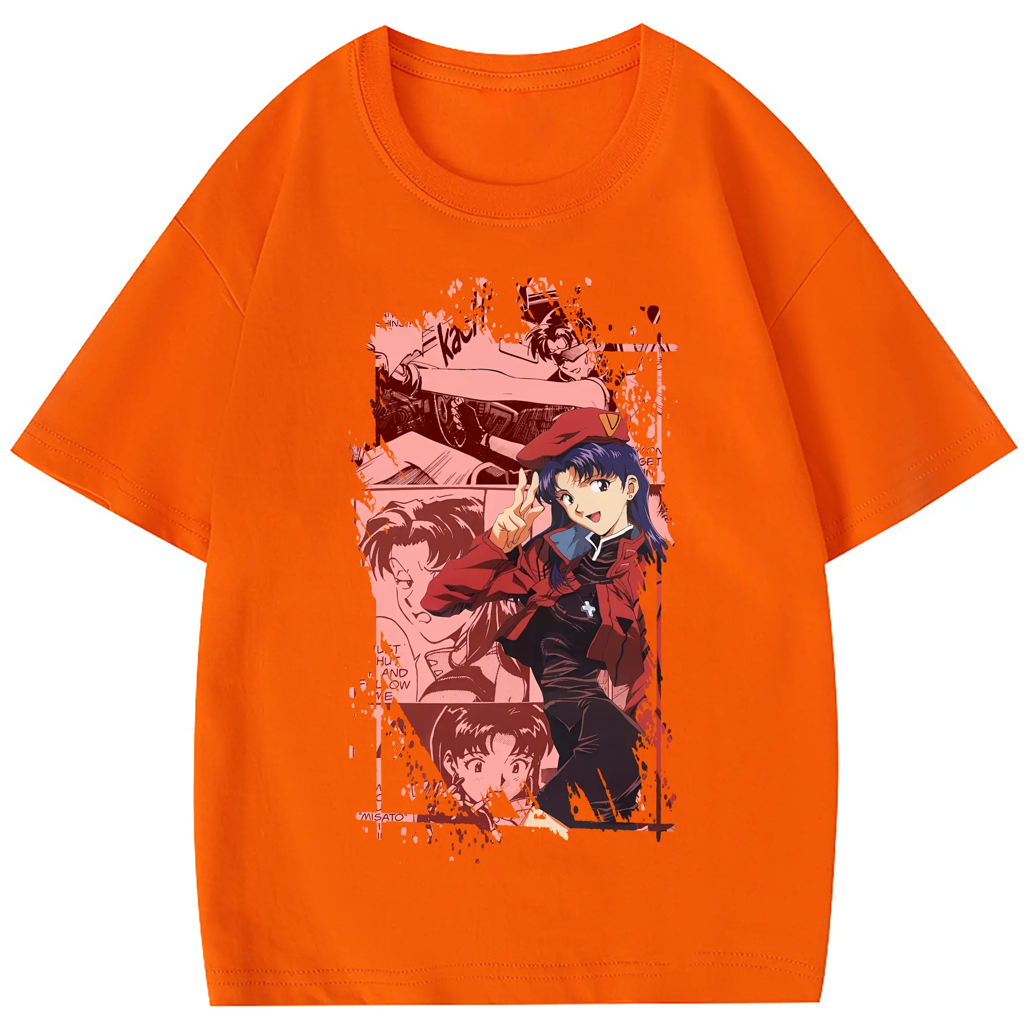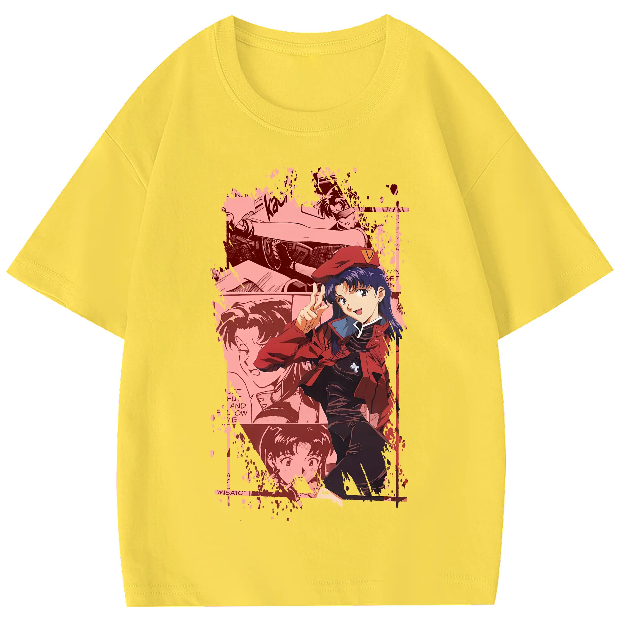 エヴァンゲリオン グッズ,葛城ミサト - 綿100% ヴィンテージ風 半袖Tシャツ ・ フロントプリント ・ 柔らか肌触り ・ 通気性 快適 ・ スポーツ カジュアル 外出用