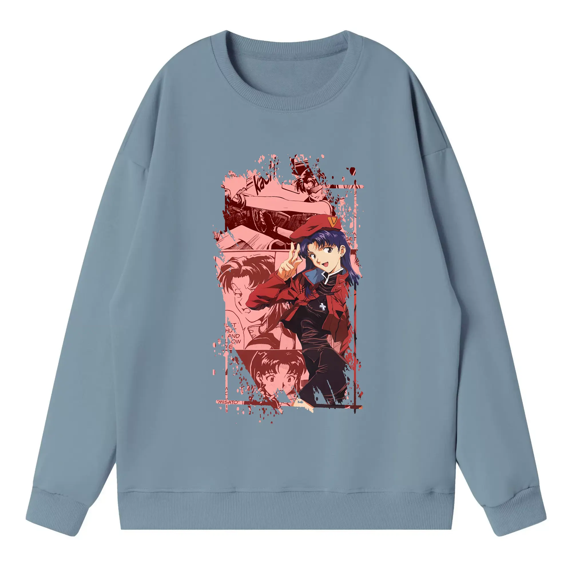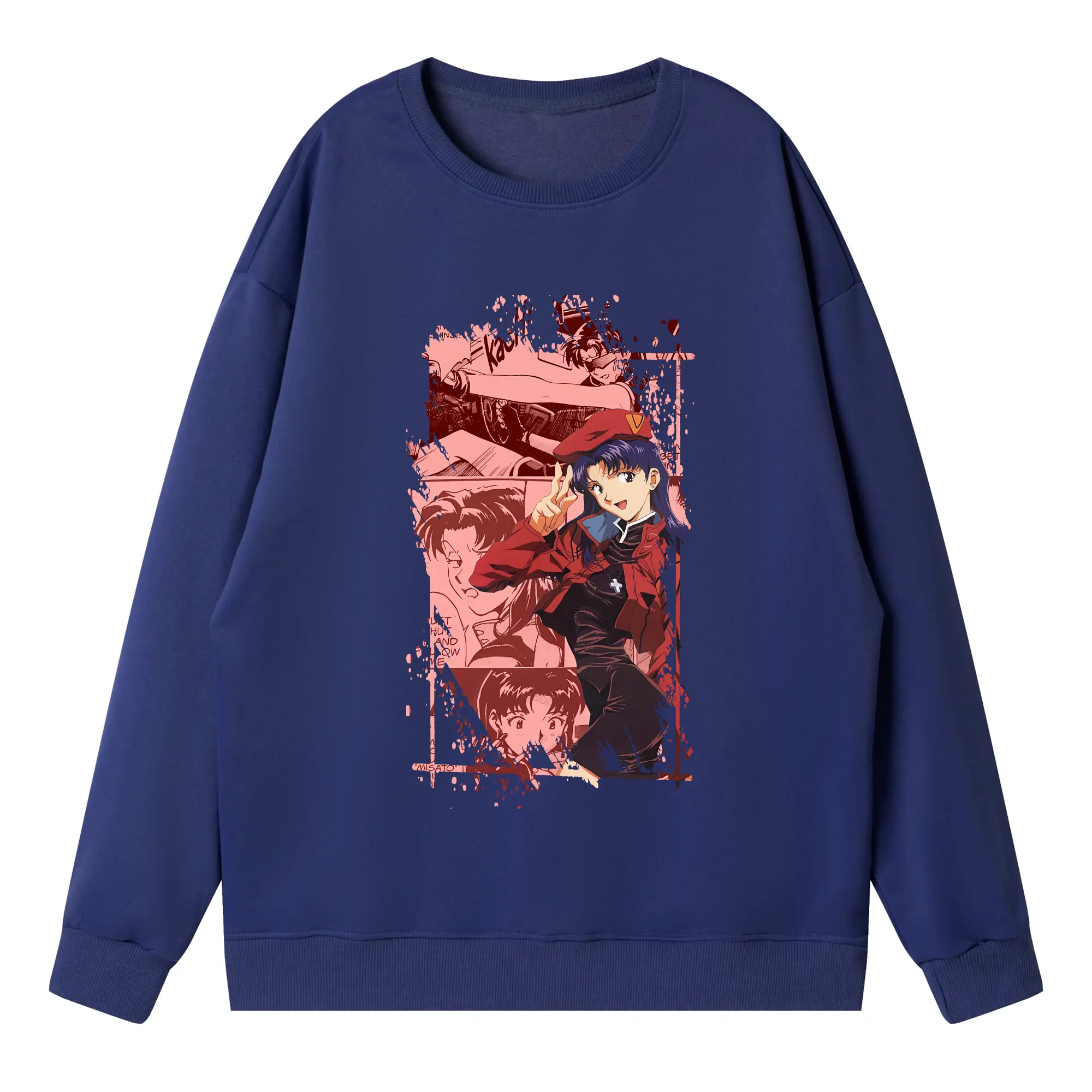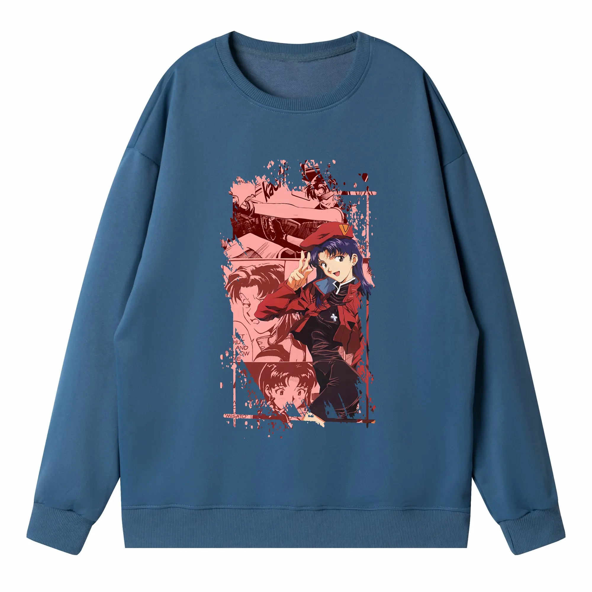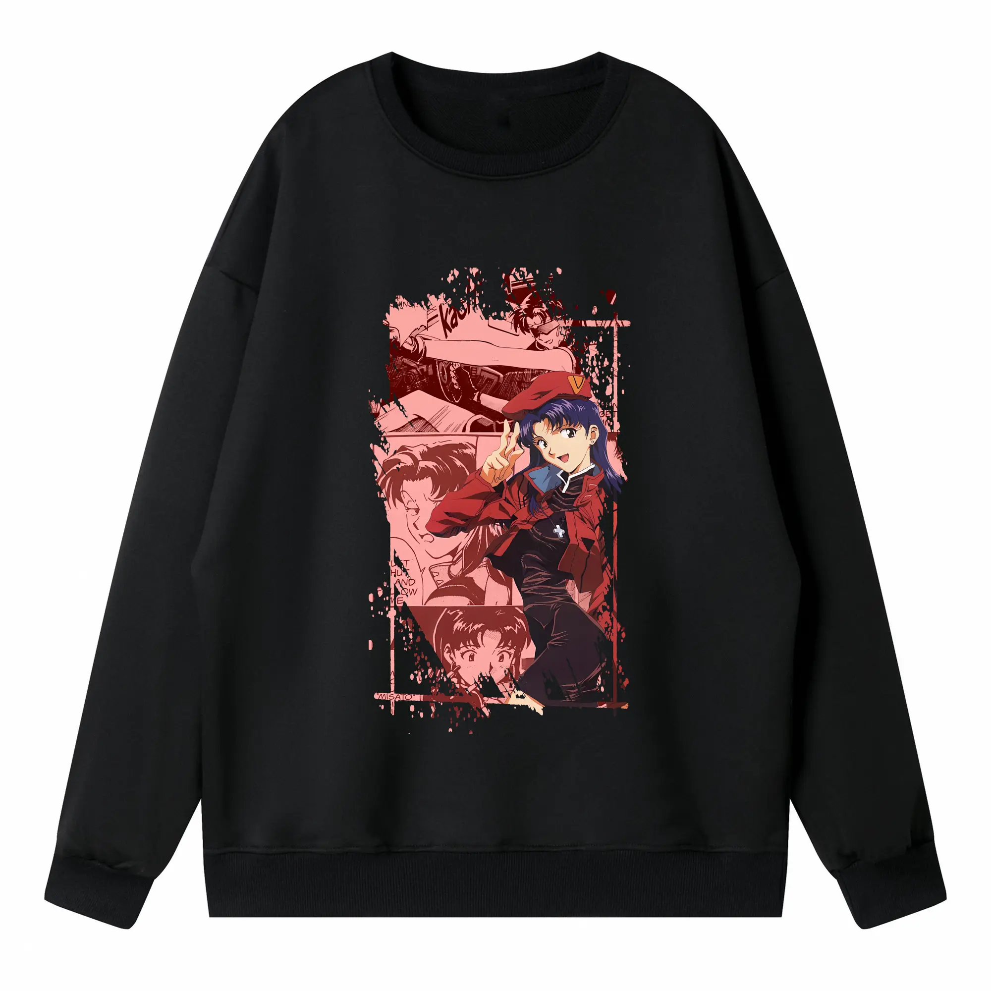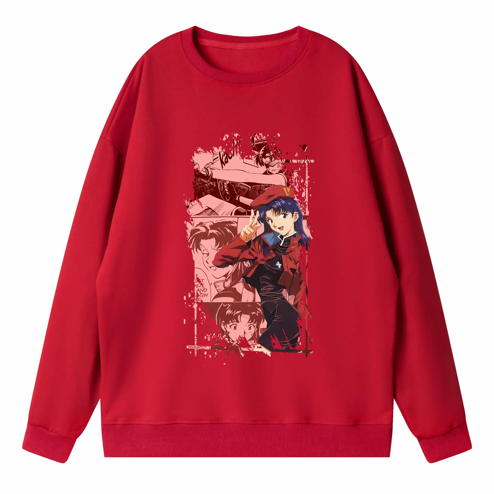 エヴァンゲリオン グッズ,葛城ミサト - 高品質 クルーネック スウェット ・ コットン59% ポリエステル41% ・ ユニセックス 長袖 トレーナー ・ カジュアル デイリー スポーツ 散歩用