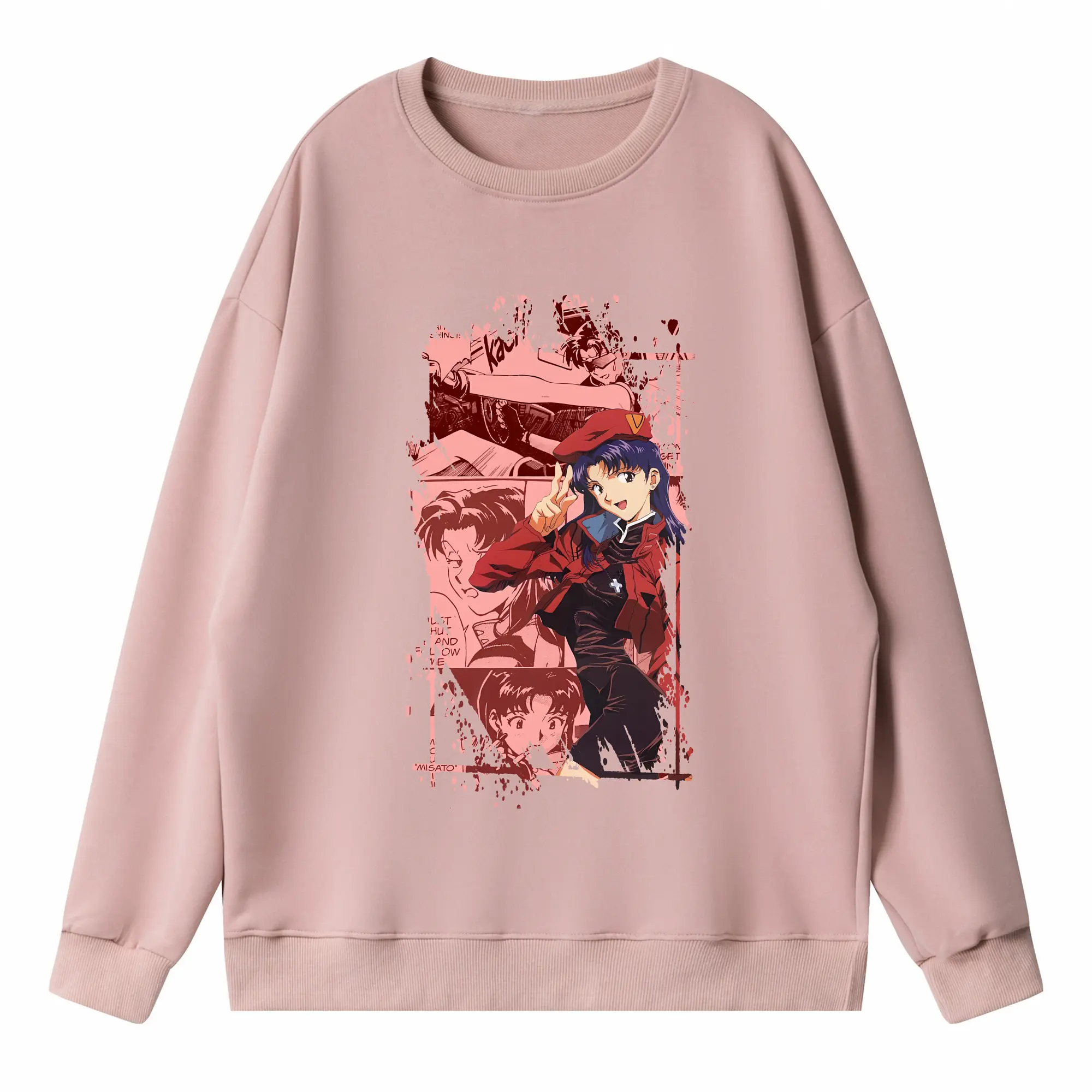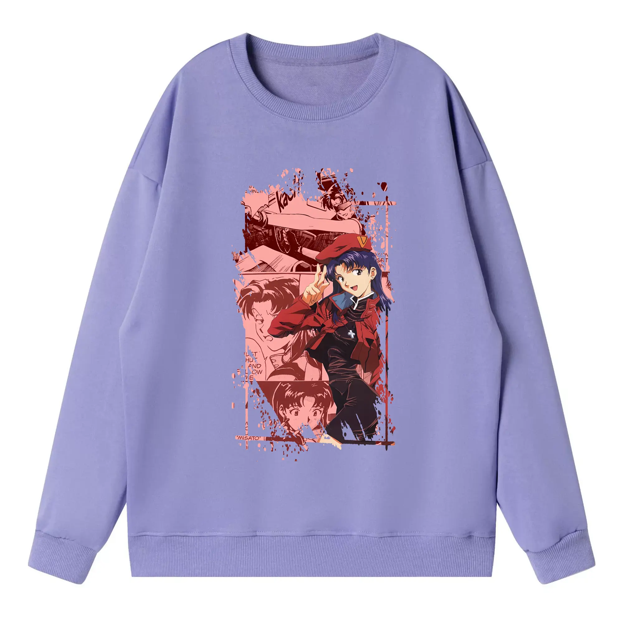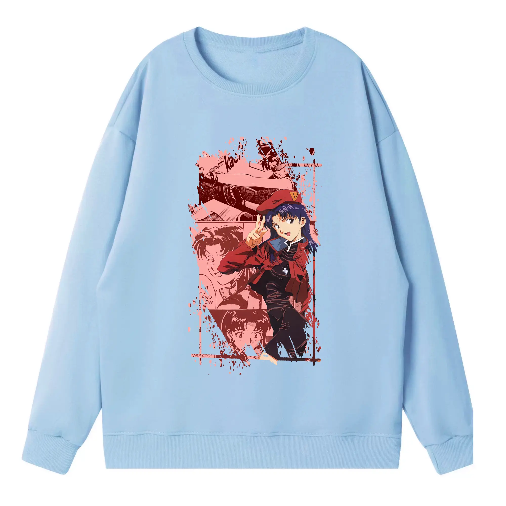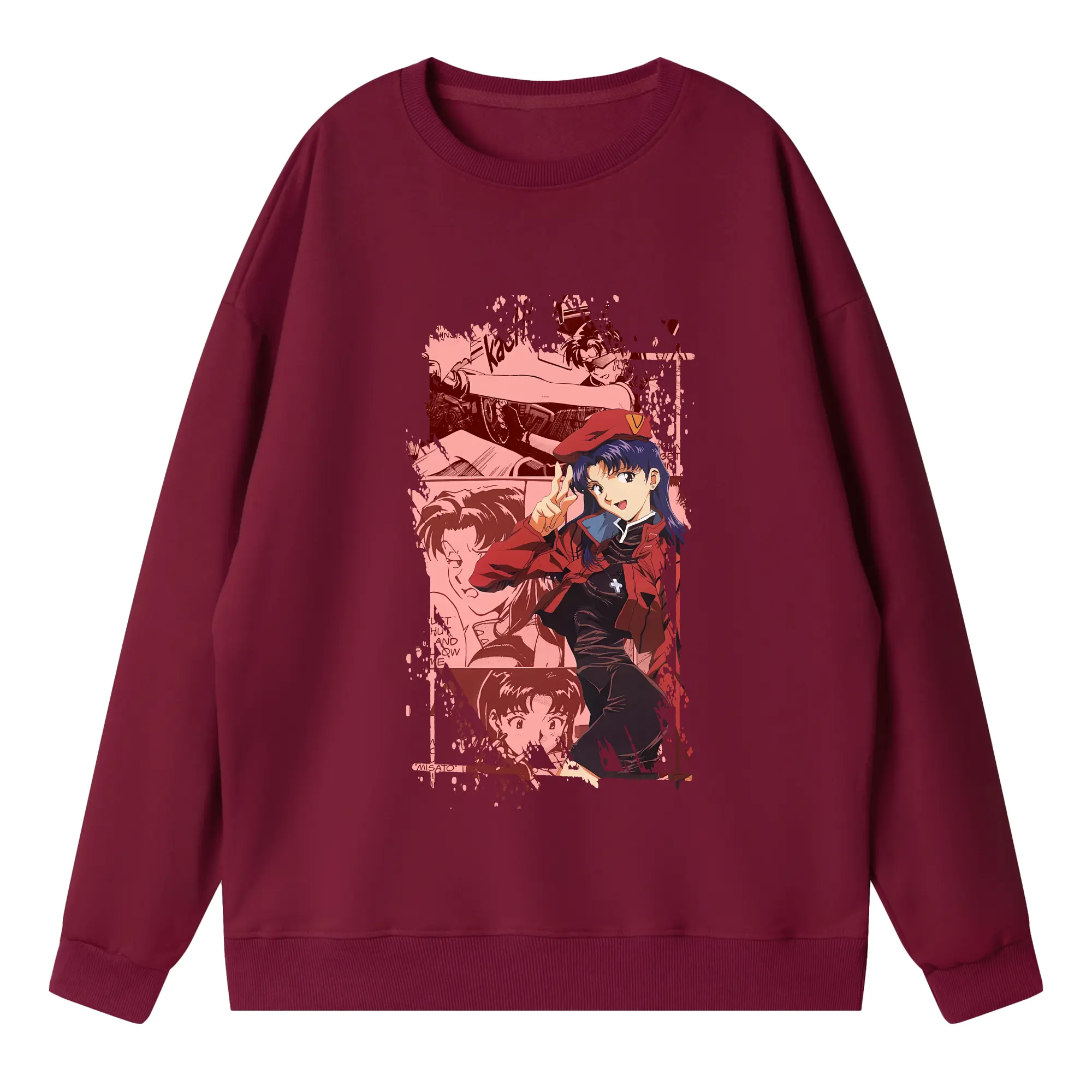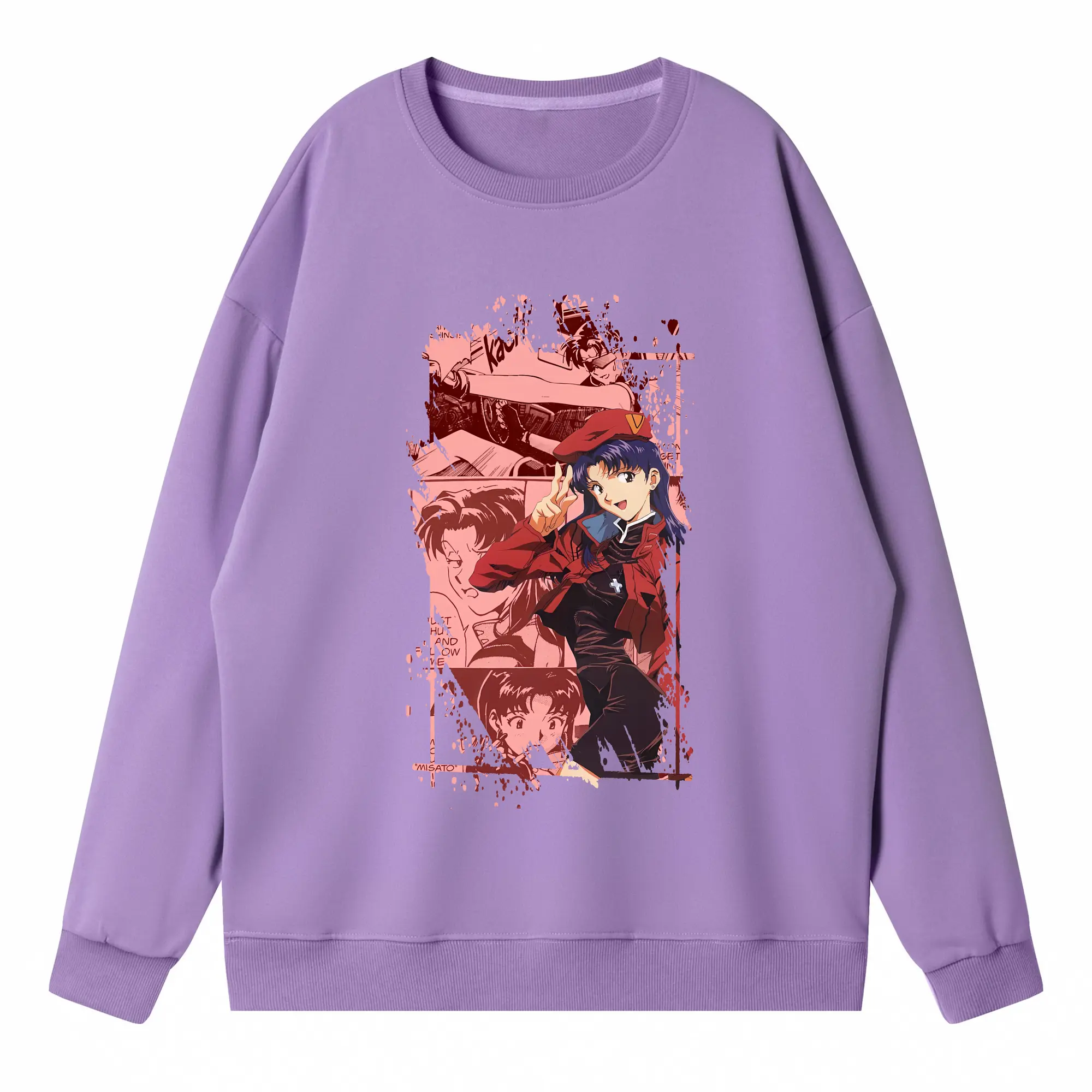 エヴァンゲリオン グッズ,葛城ミサト - 高品質 クルーネック スウェット ・ コットン59% ポリエステル41% ・ ユニセックス 長袖 トレーナー ・ カジュアル デイリー スポーツ 散歩用