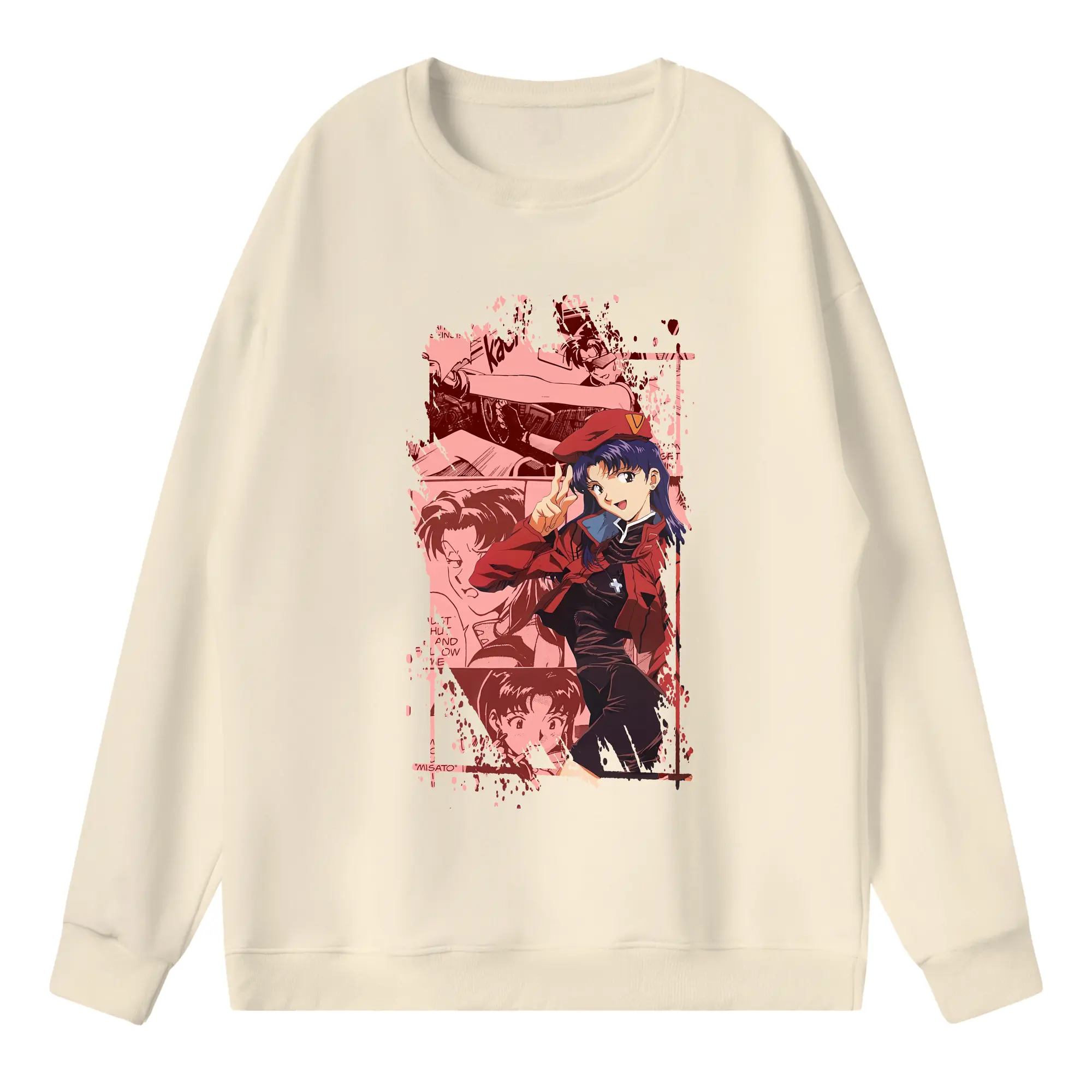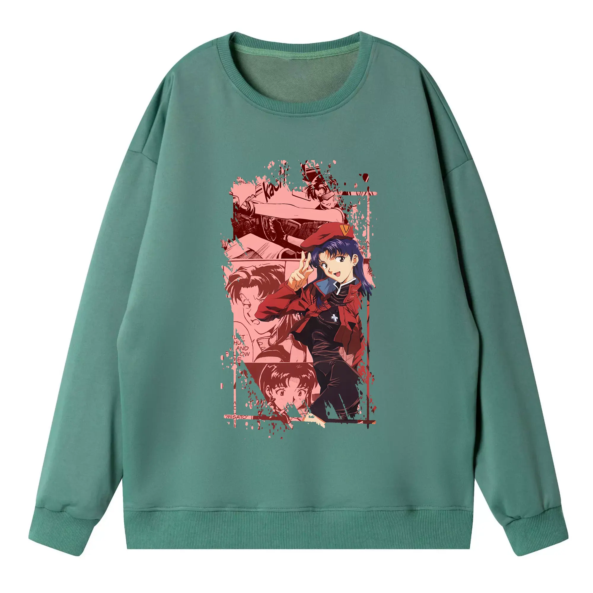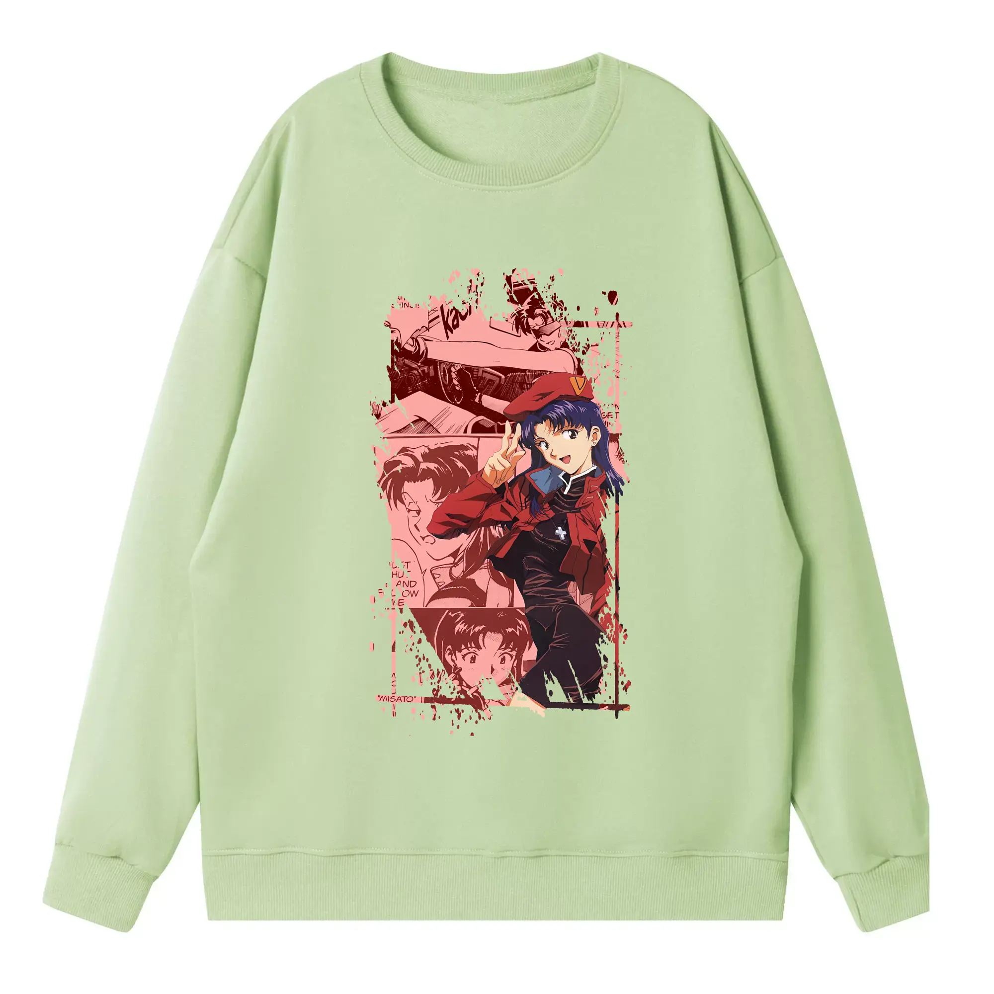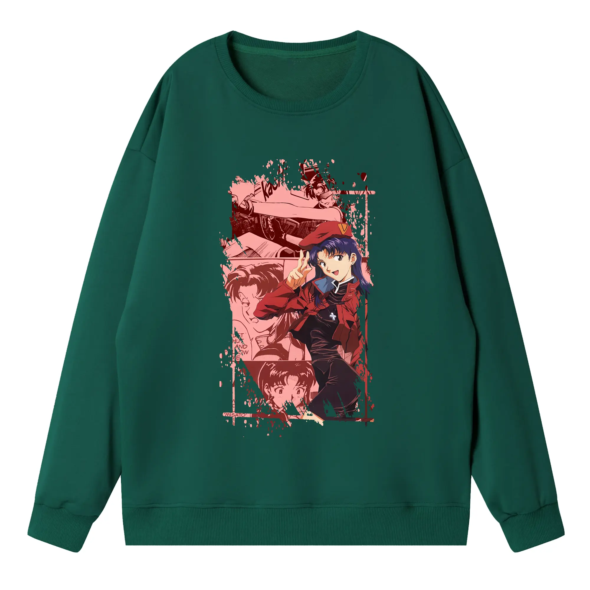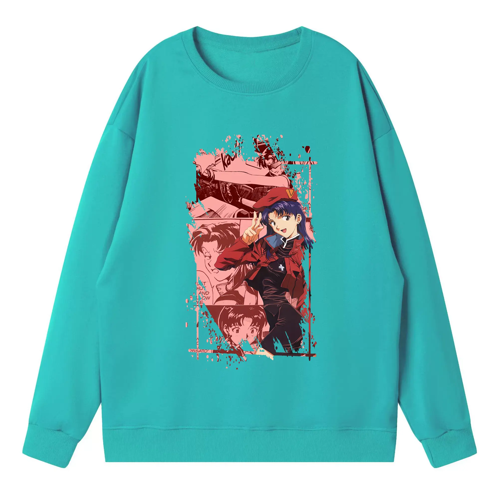 エヴァンゲリオン グッズ,葛城ミサト - 高品質 クルーネック スウェット ・ コットン59% ポリエステル41% ・ ユニセックス 長袖 トレーナー ・ カジュアル デイリー スポーツ 散歩用