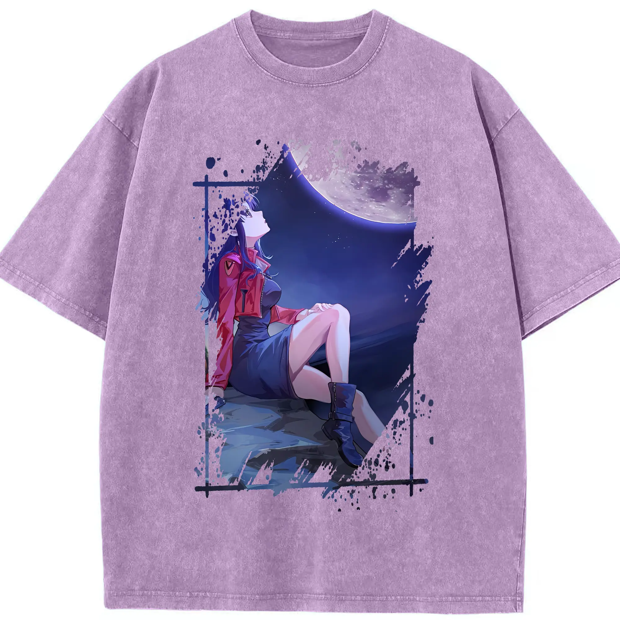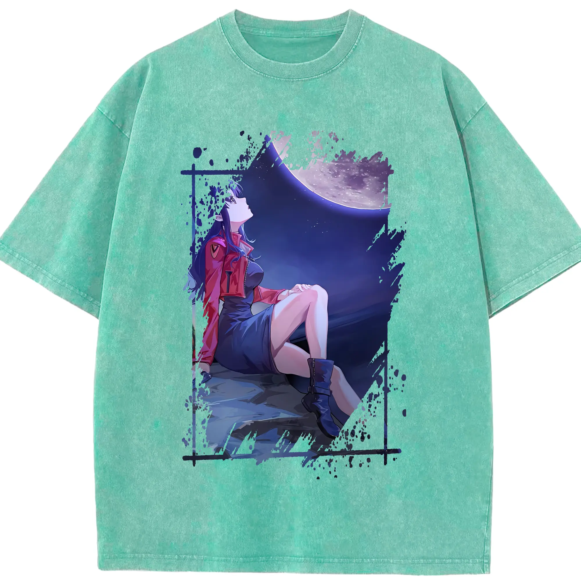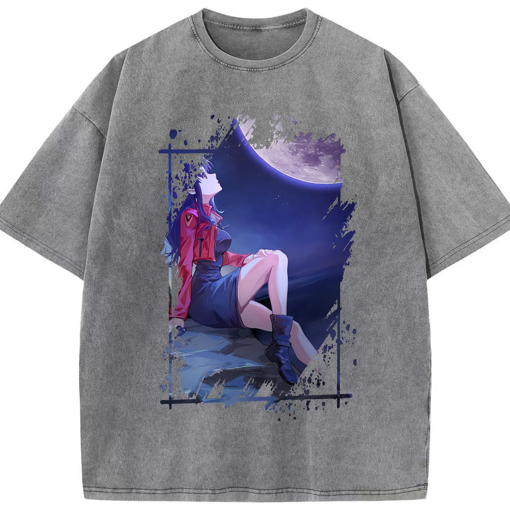 エヴァンゲリオン グッズ,葛城ミサト - 綿100% ヴィンテージ風 半袖Tシャツ ・ 背面プリント ・ 柔らか肌触り ・ 通気性 快適 ・ スポーツ カジュアル 外出用