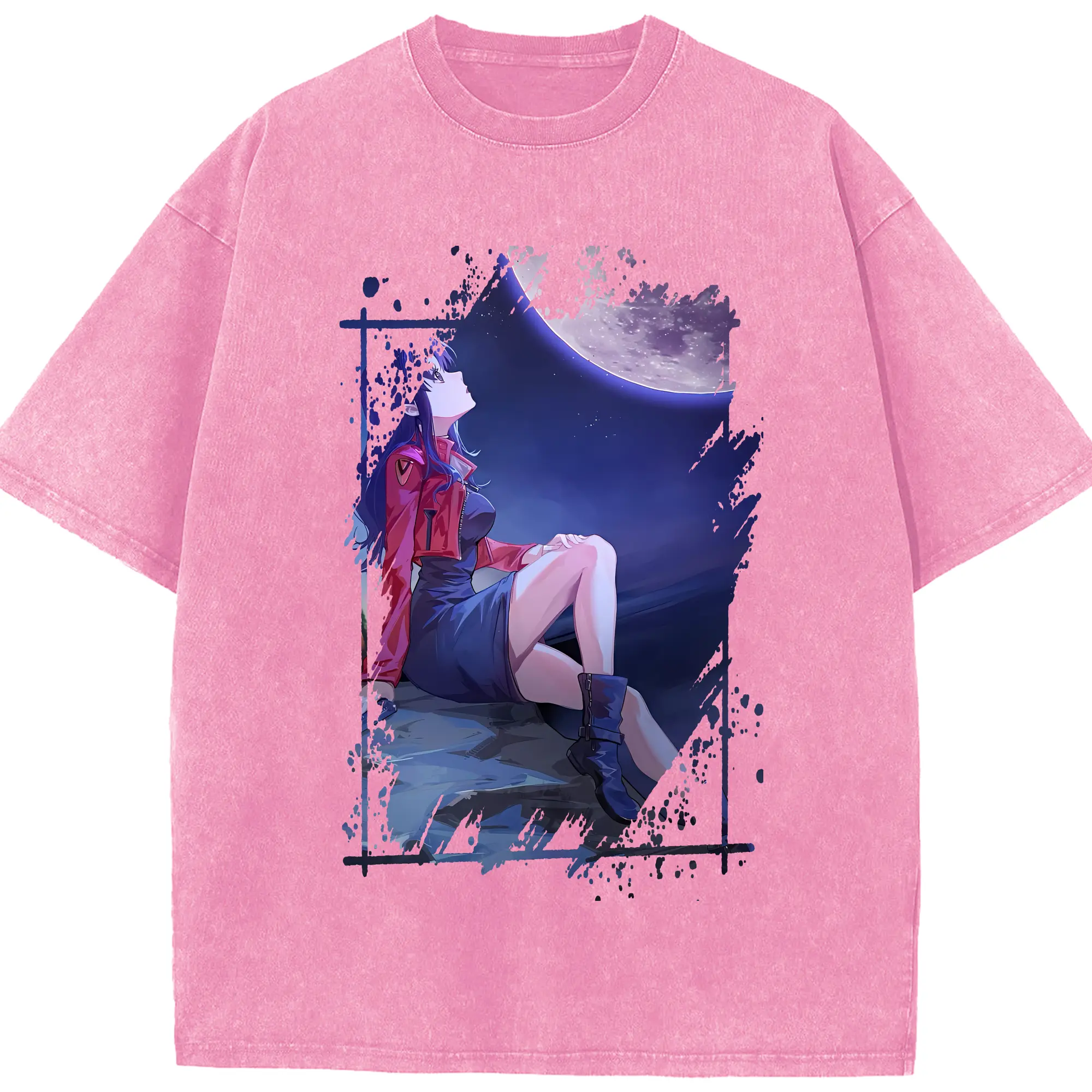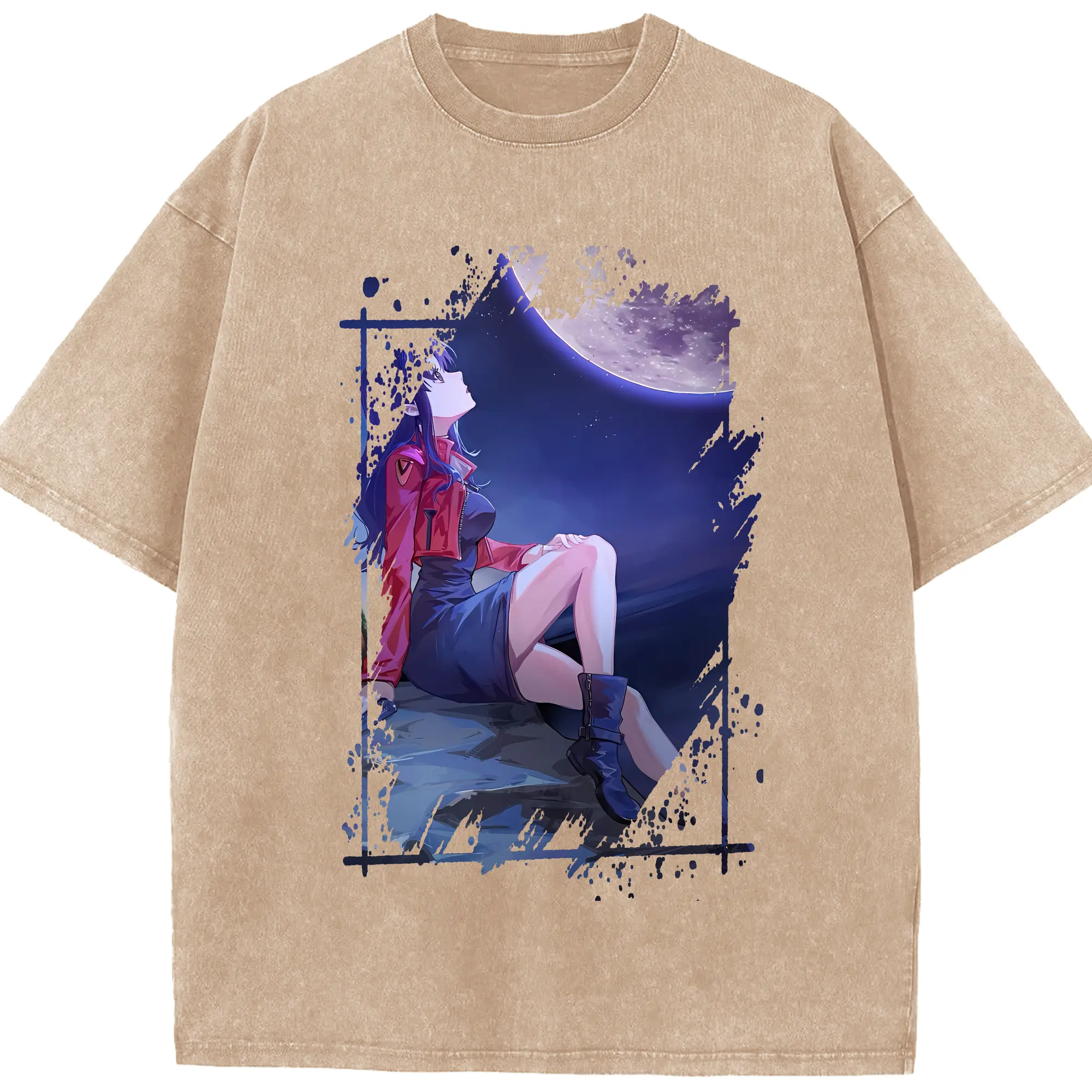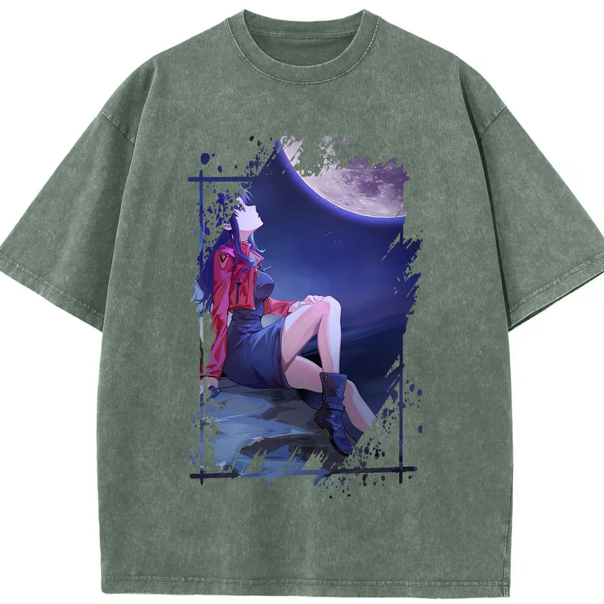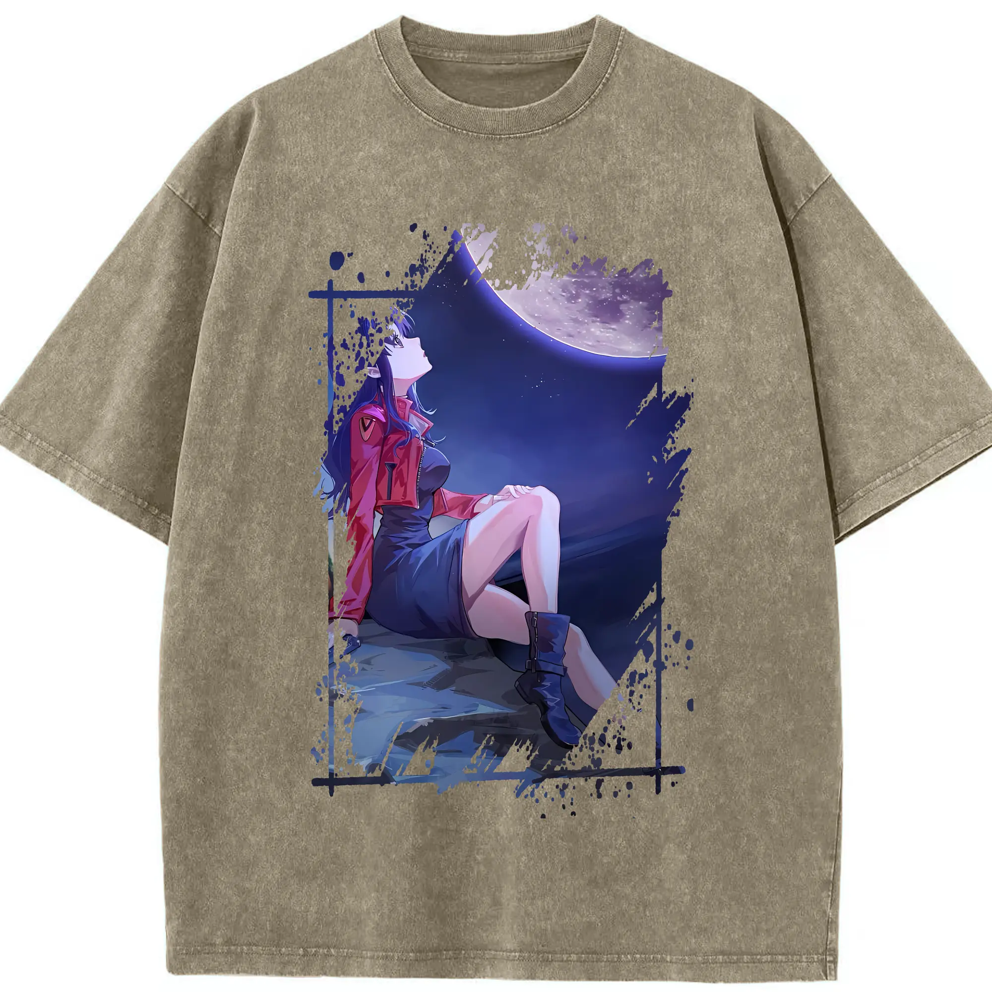 エヴァンゲリオン グッズ,葛城ミサト - 綿100% ヴィンテージ風 半袖Tシャツ ・ 背面プリント ・ 柔らか肌触り ・ 通気性 快適 ・ スポーツ カジュアル 外出用