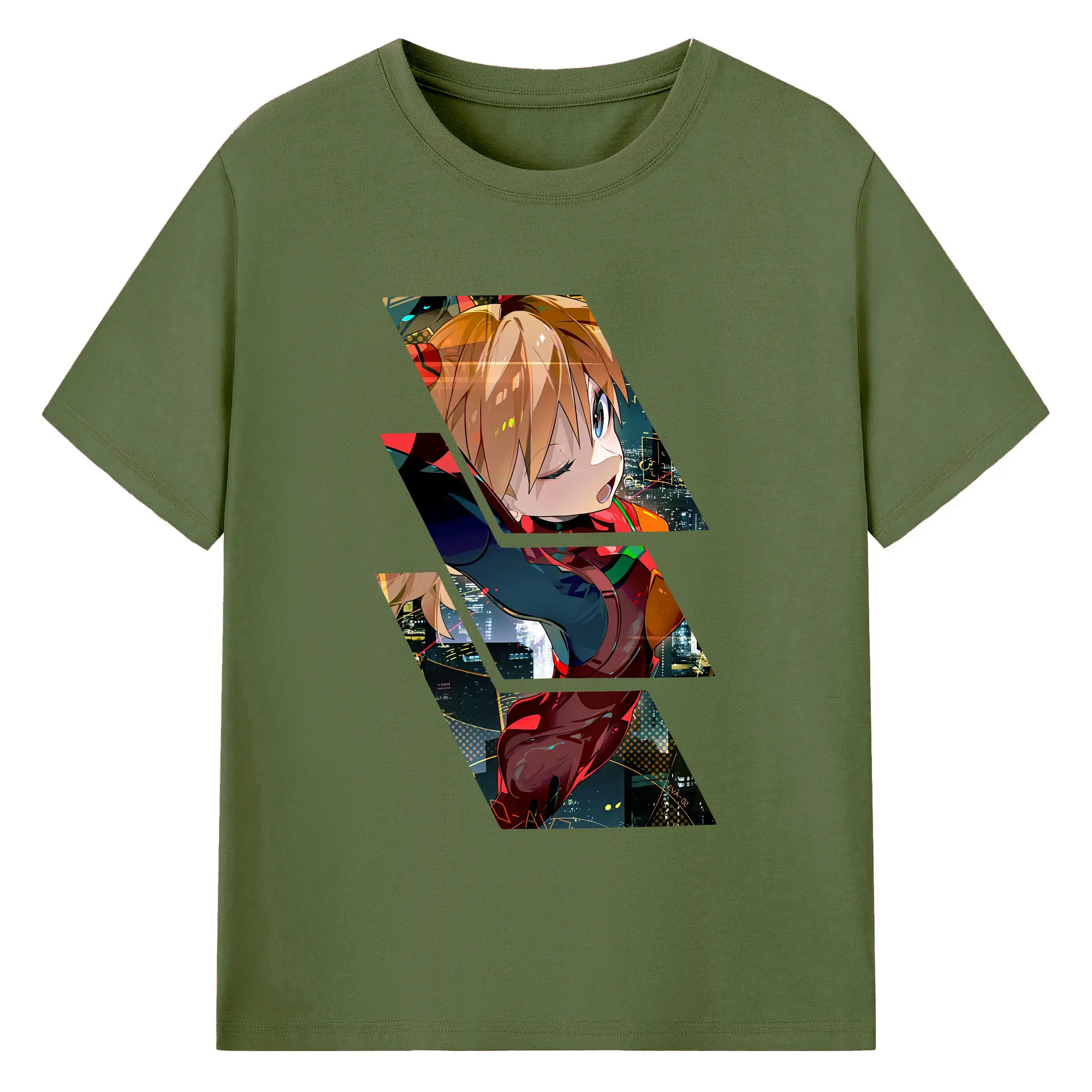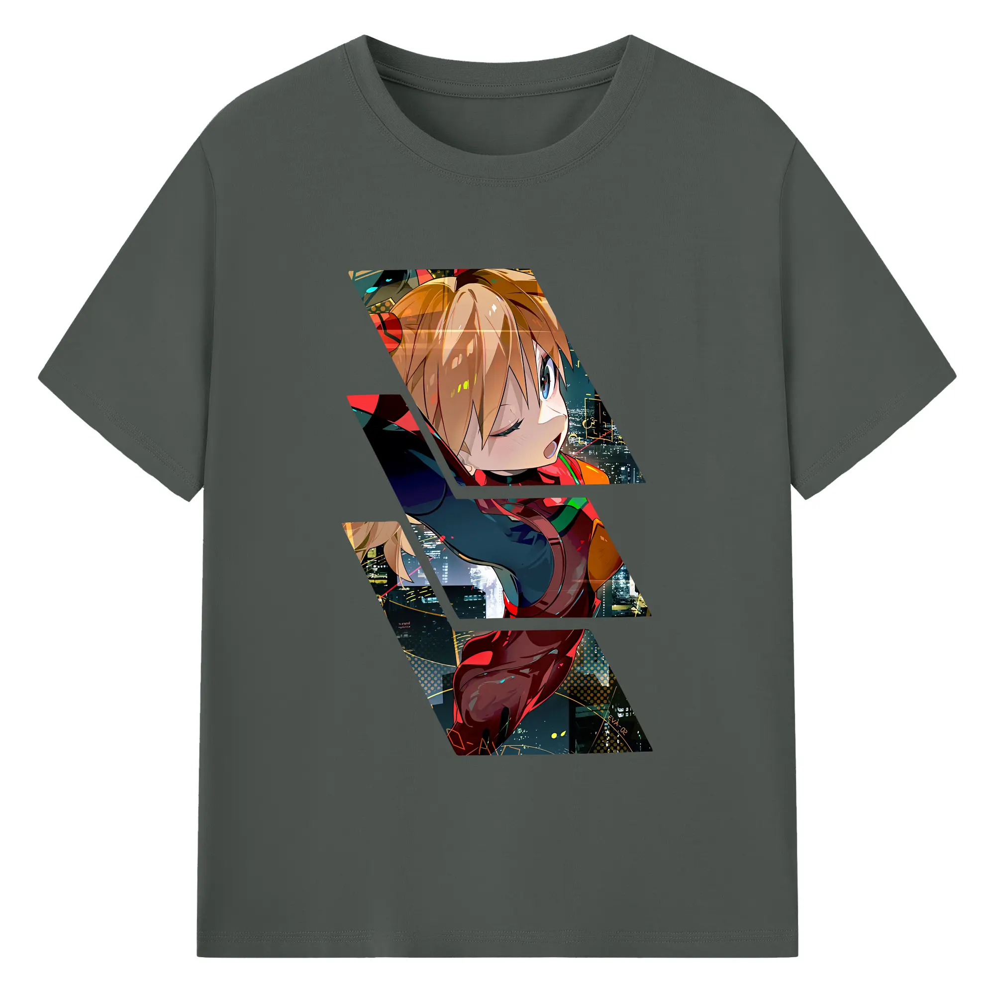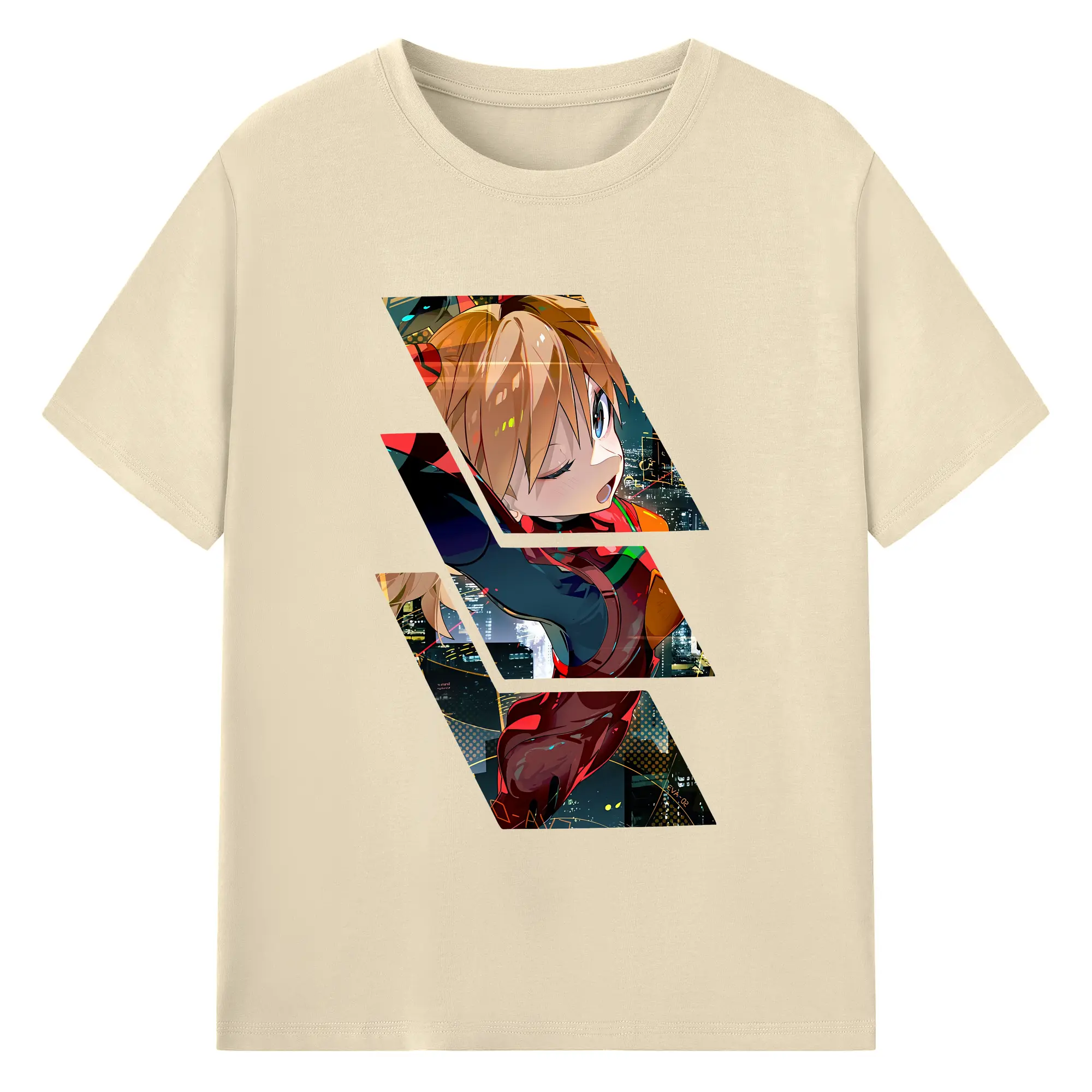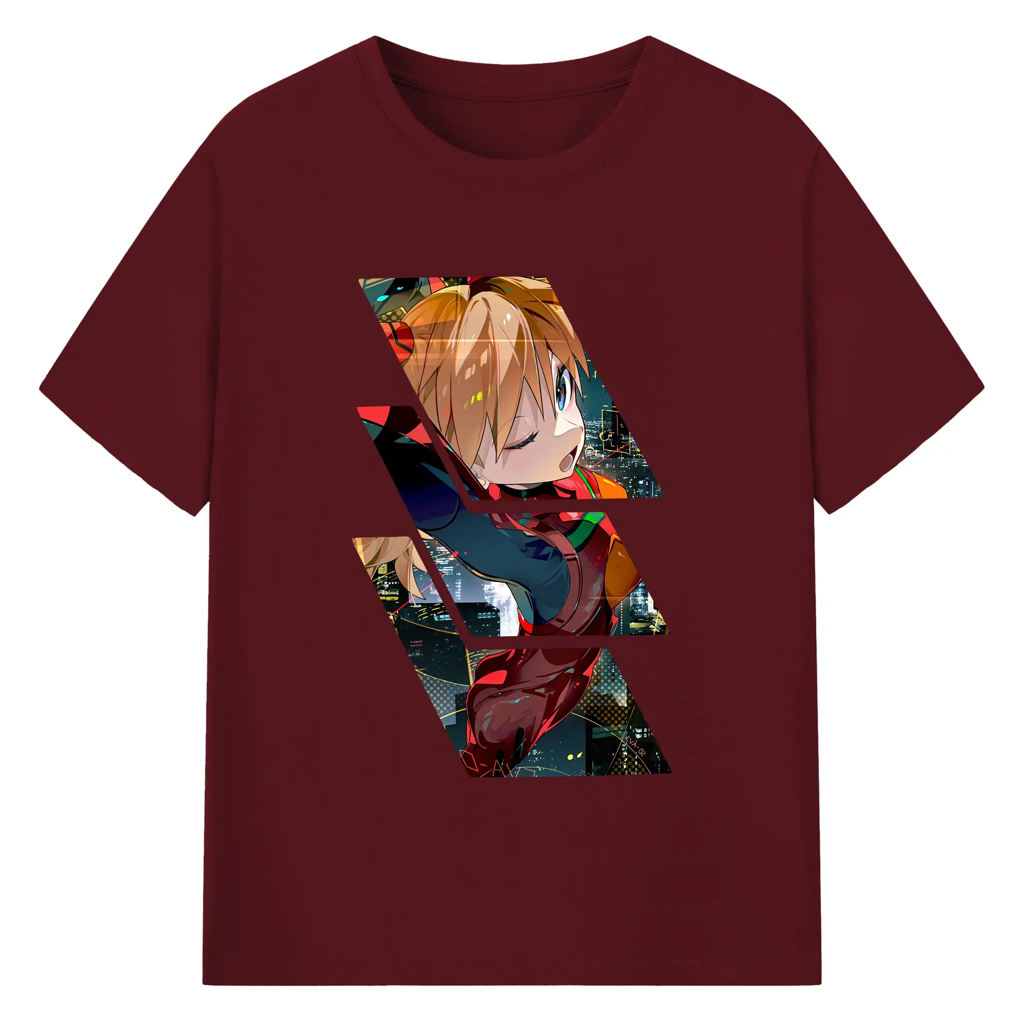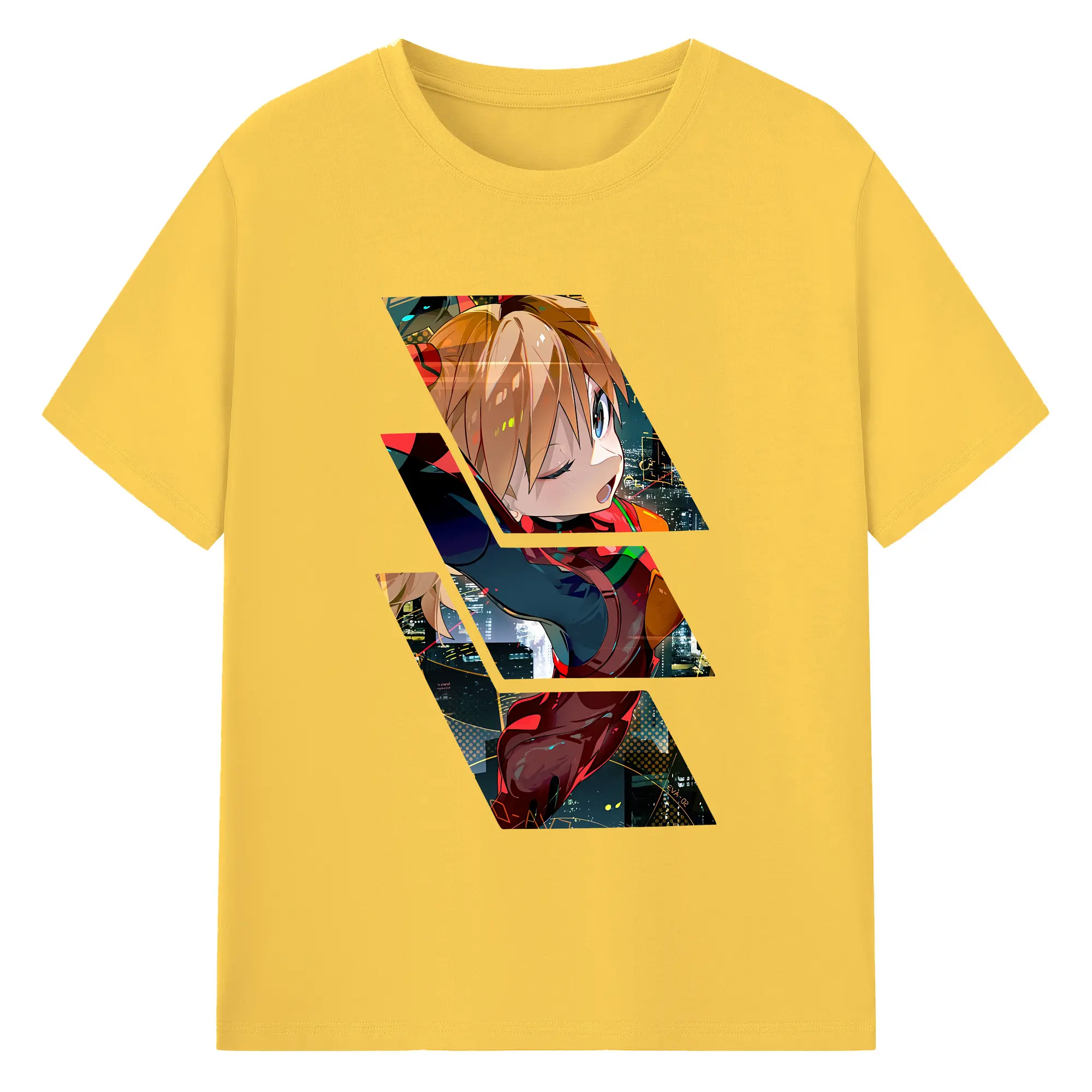 エヴァンゲリオン グッズ,アスカ·ラングレー - 綿100% 半袖Tシャツ ・ バックプリント ・ 快適 通気性 ・ 日常使い 散歩 スポーツ用
