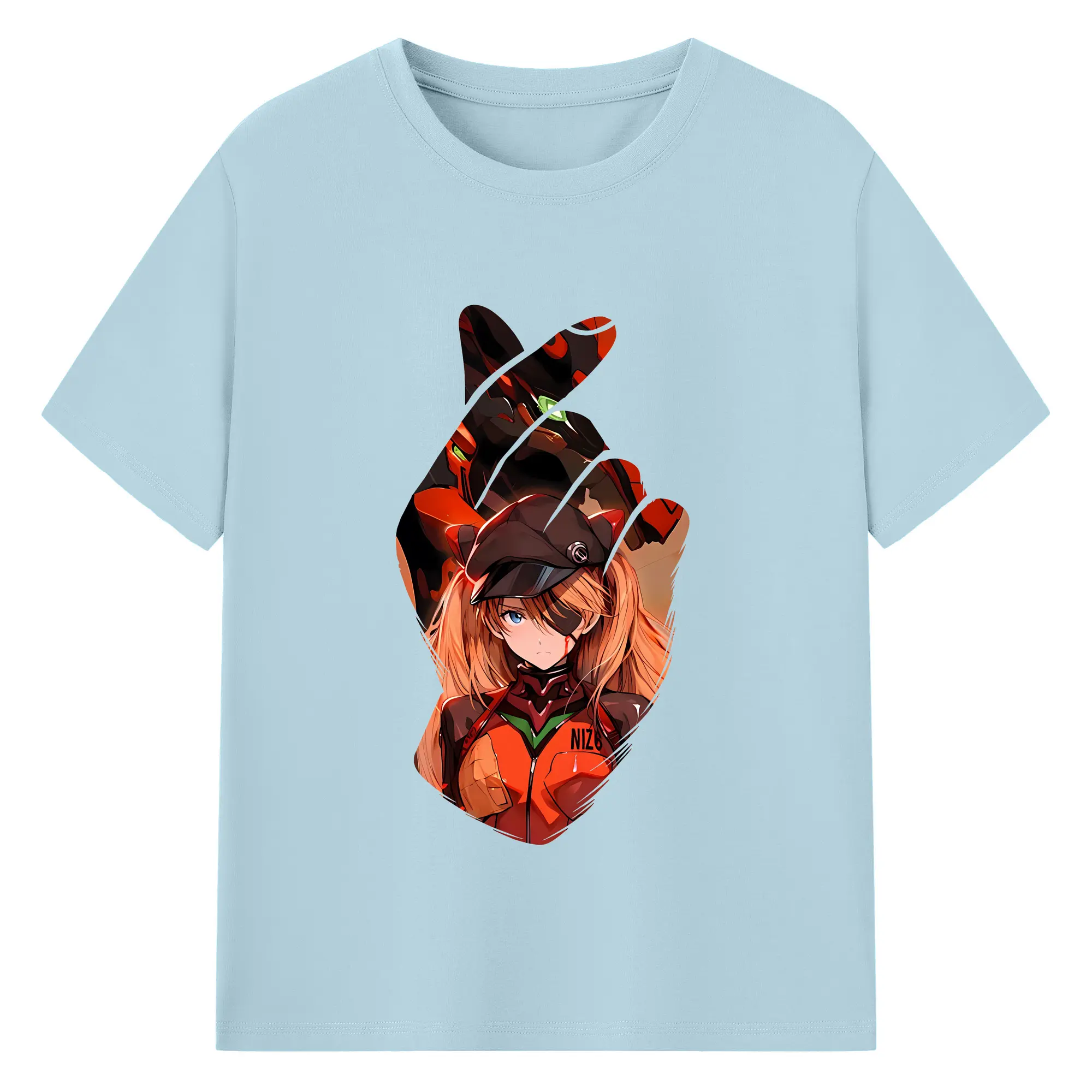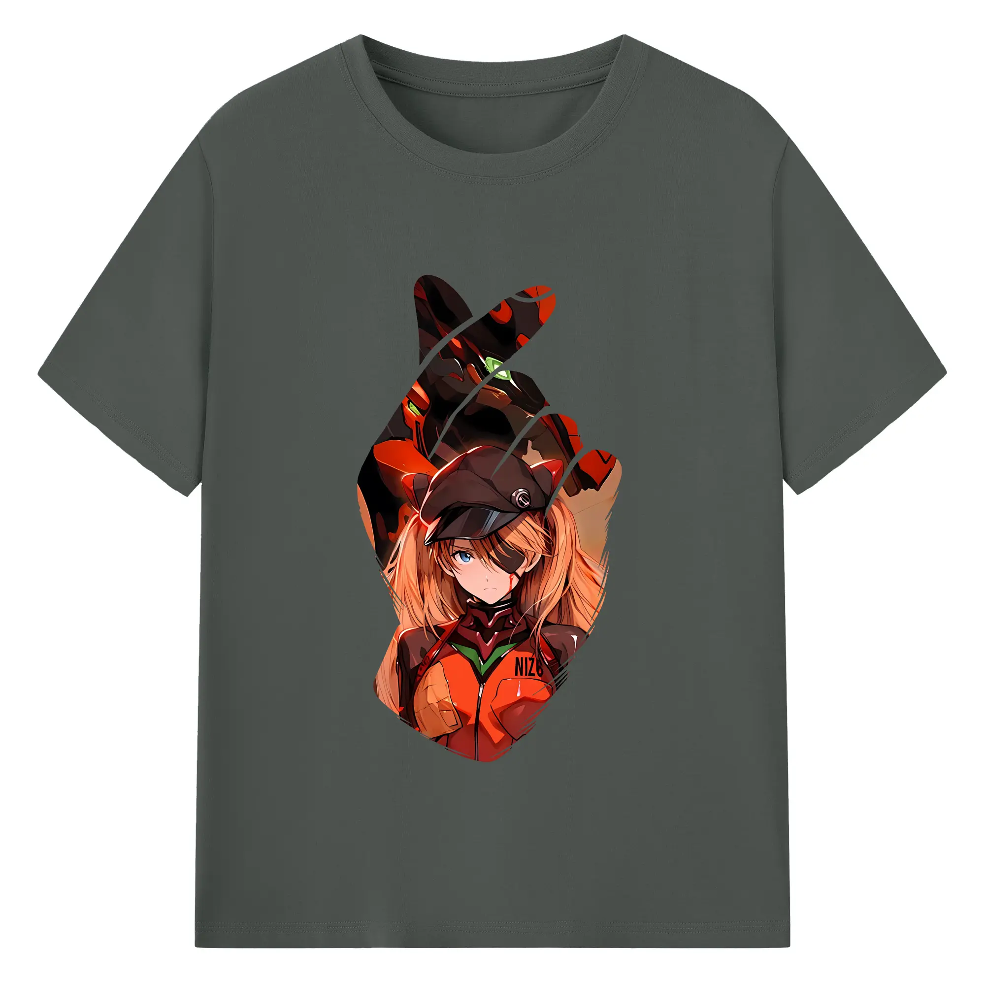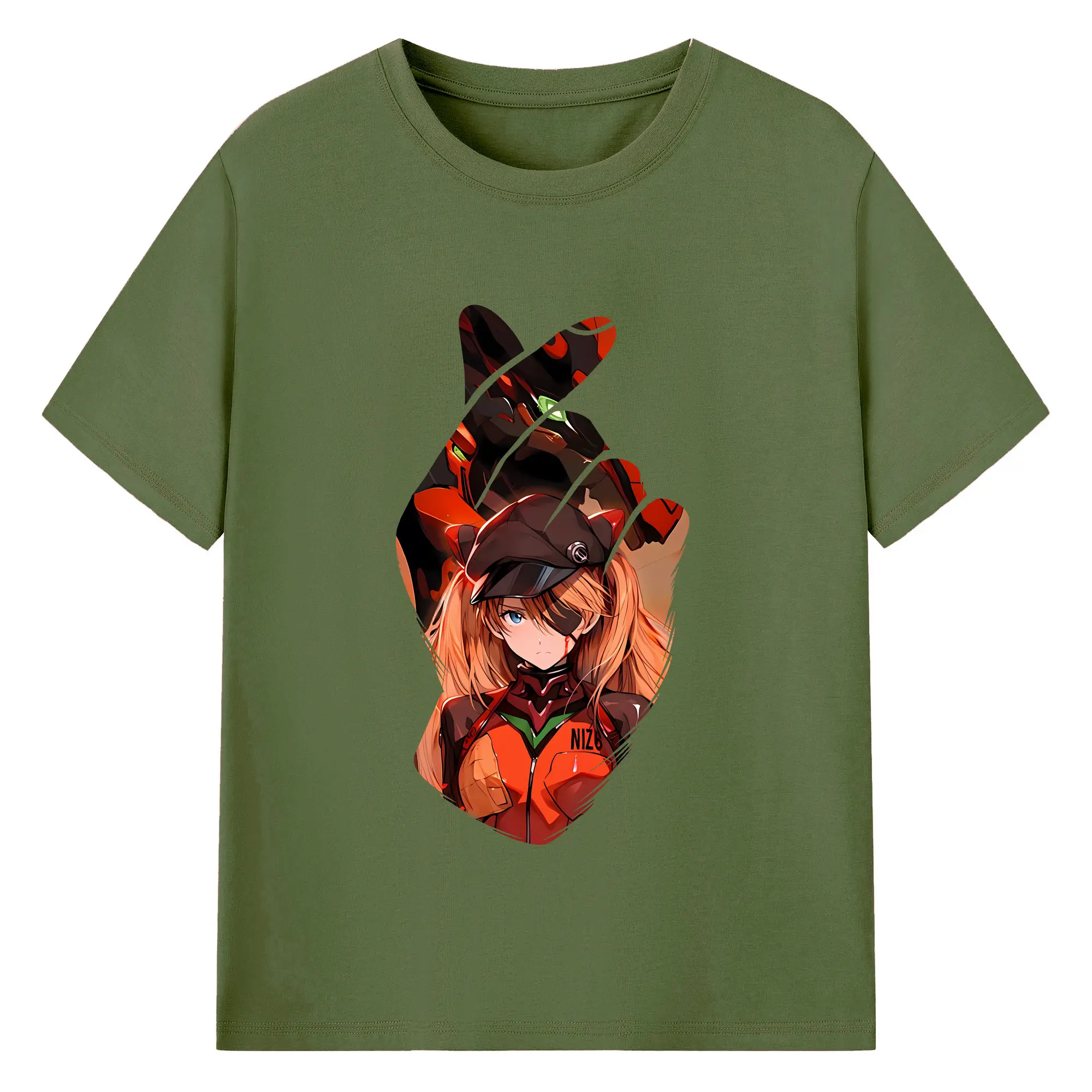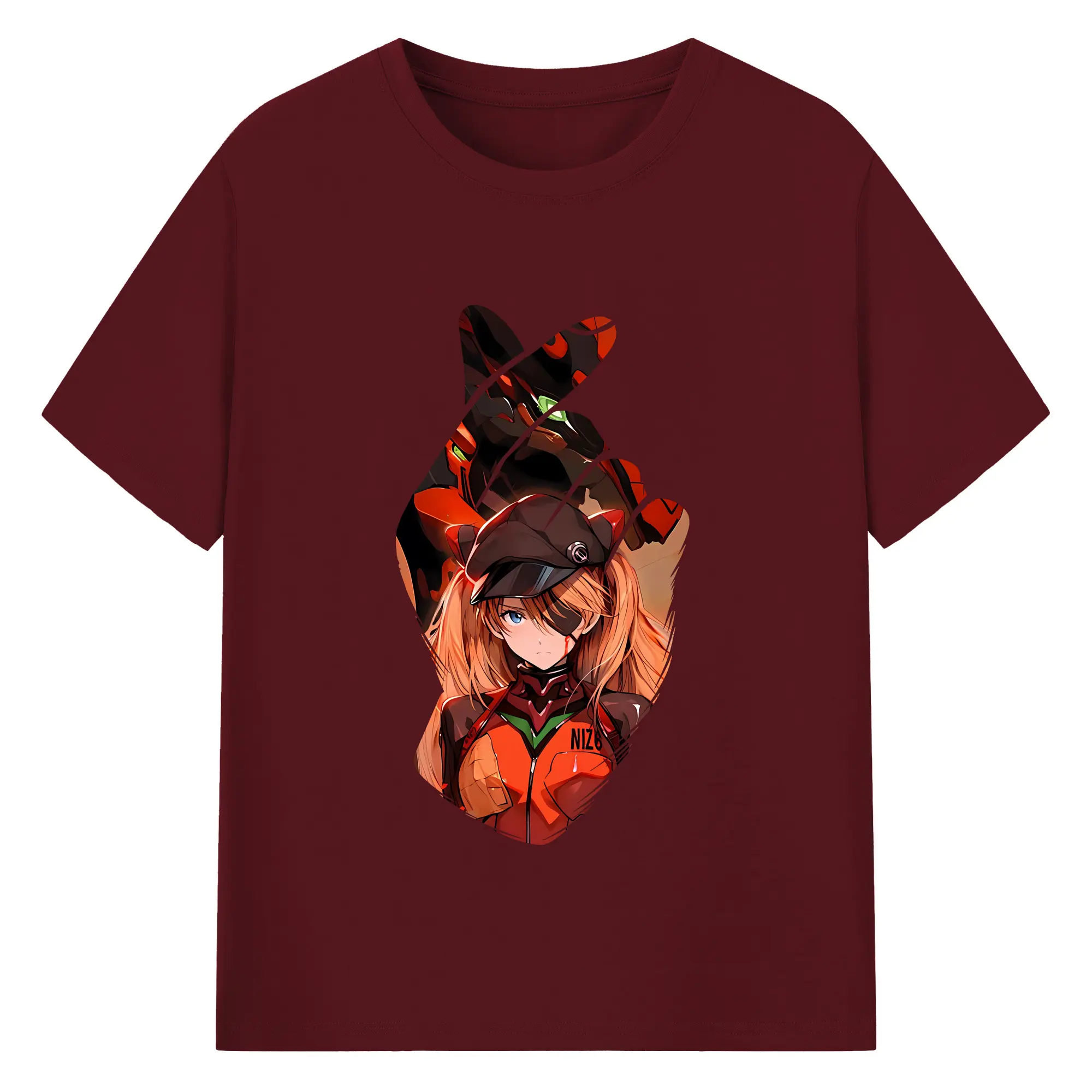 エヴァンゲリオン グッズ,アスカ·ラングレー - 綿100% 半袖Tシャツ ・ バックプリント ・ 快適 通気性 ・ 日常使い 散歩 スポーツ用