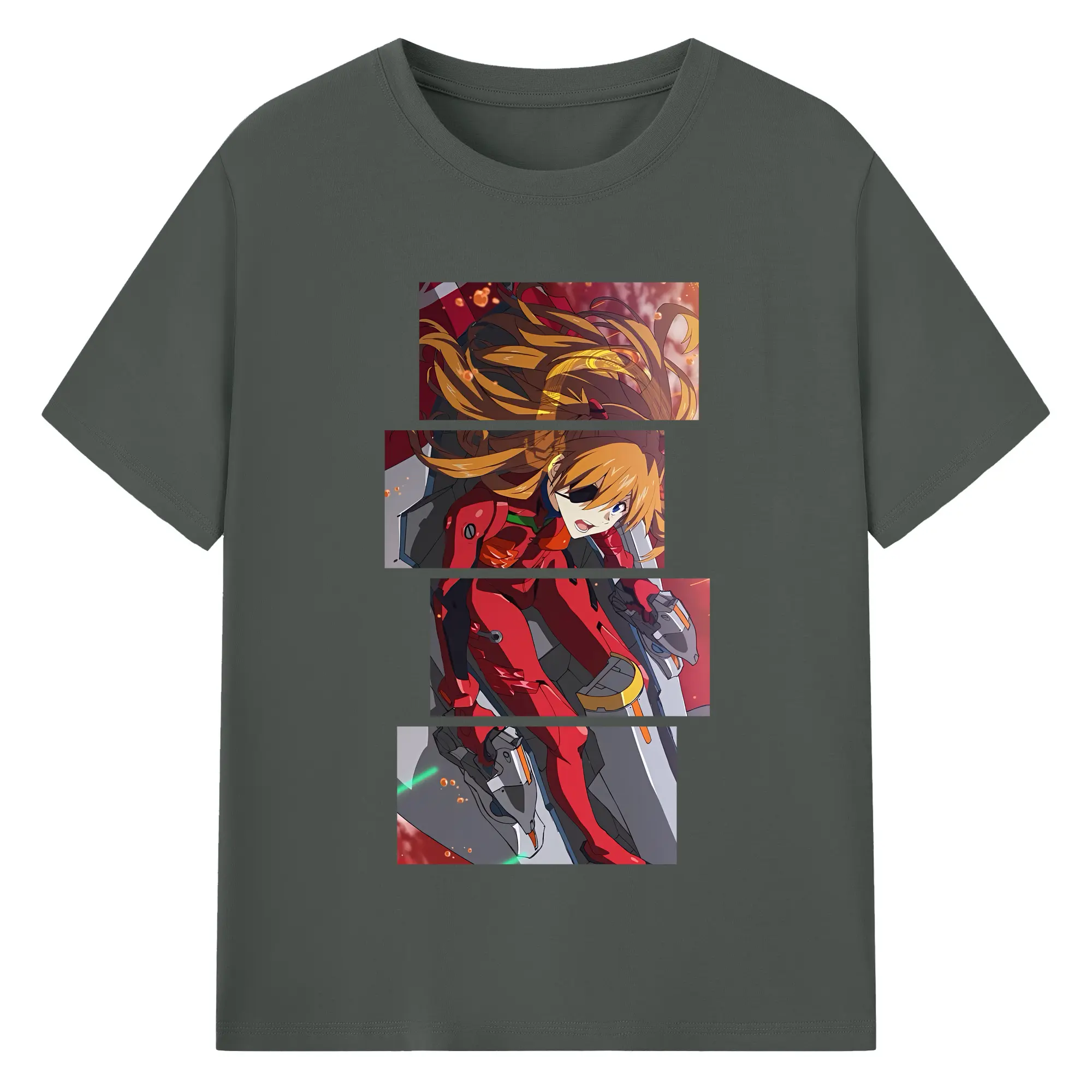 エヴァンゲリオン グッズ,アスカ·ラングレー - 綿100% 半袖Tシャツ ・ バックプリント ・ 快適 通気性 ・ 日常使い 散歩 スポーツ用