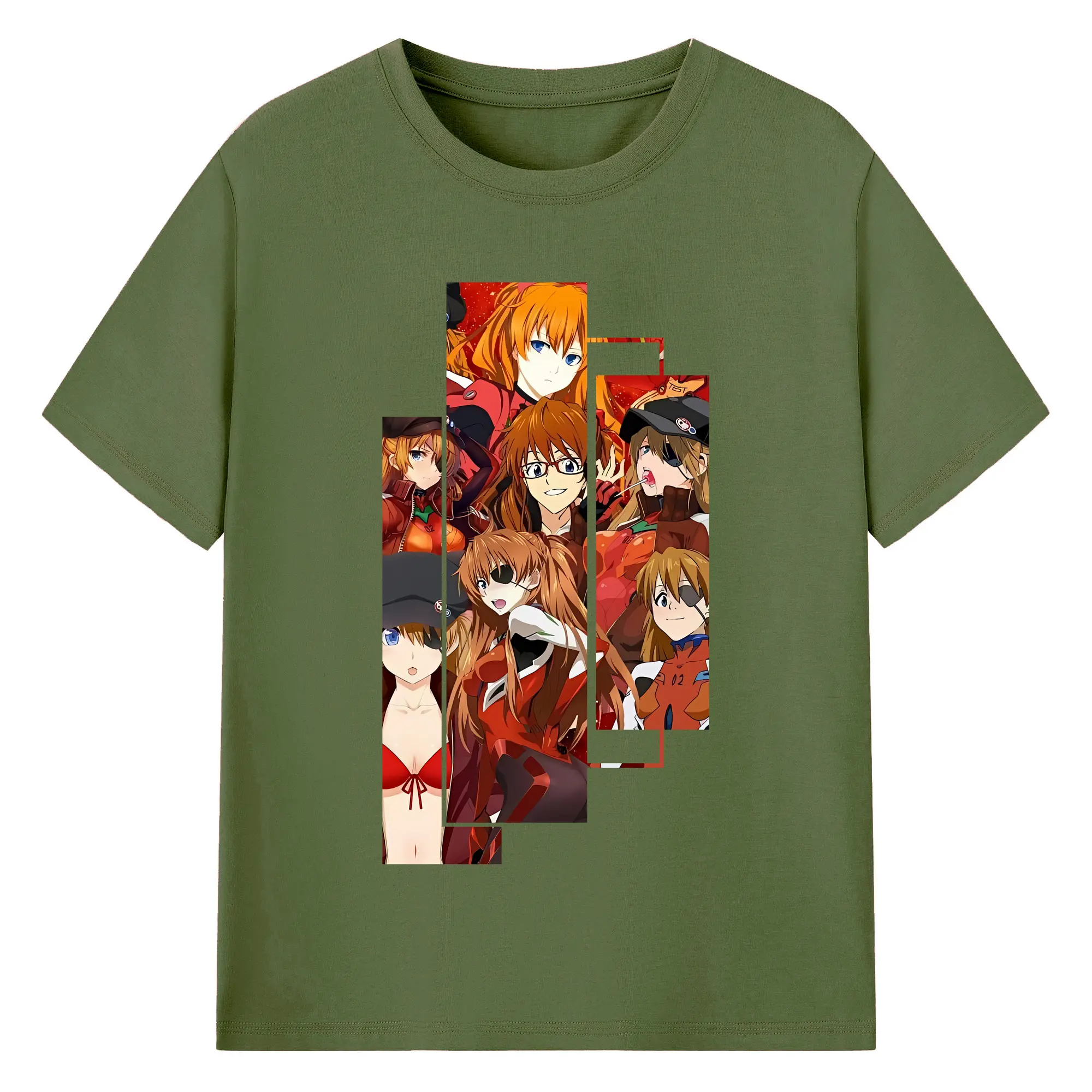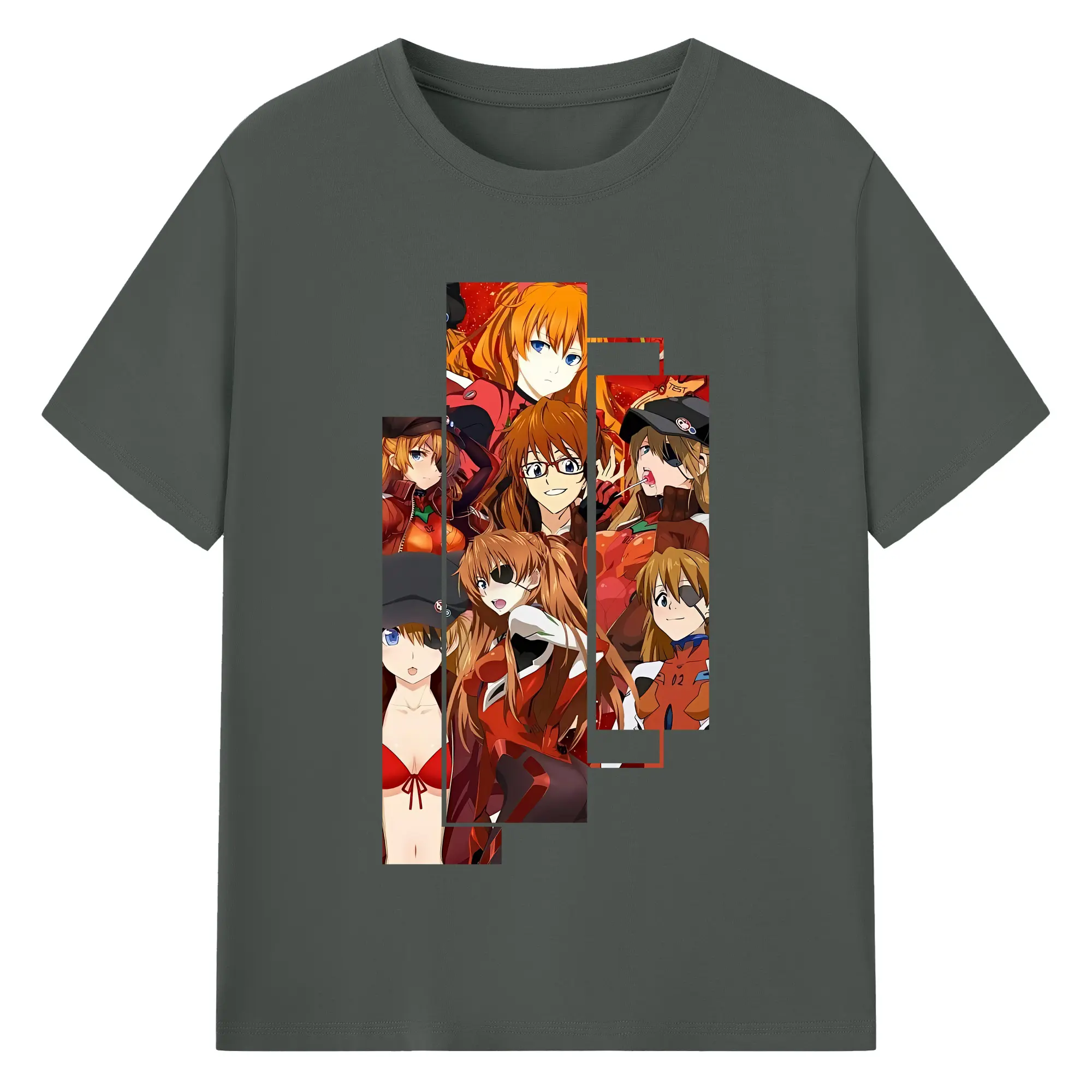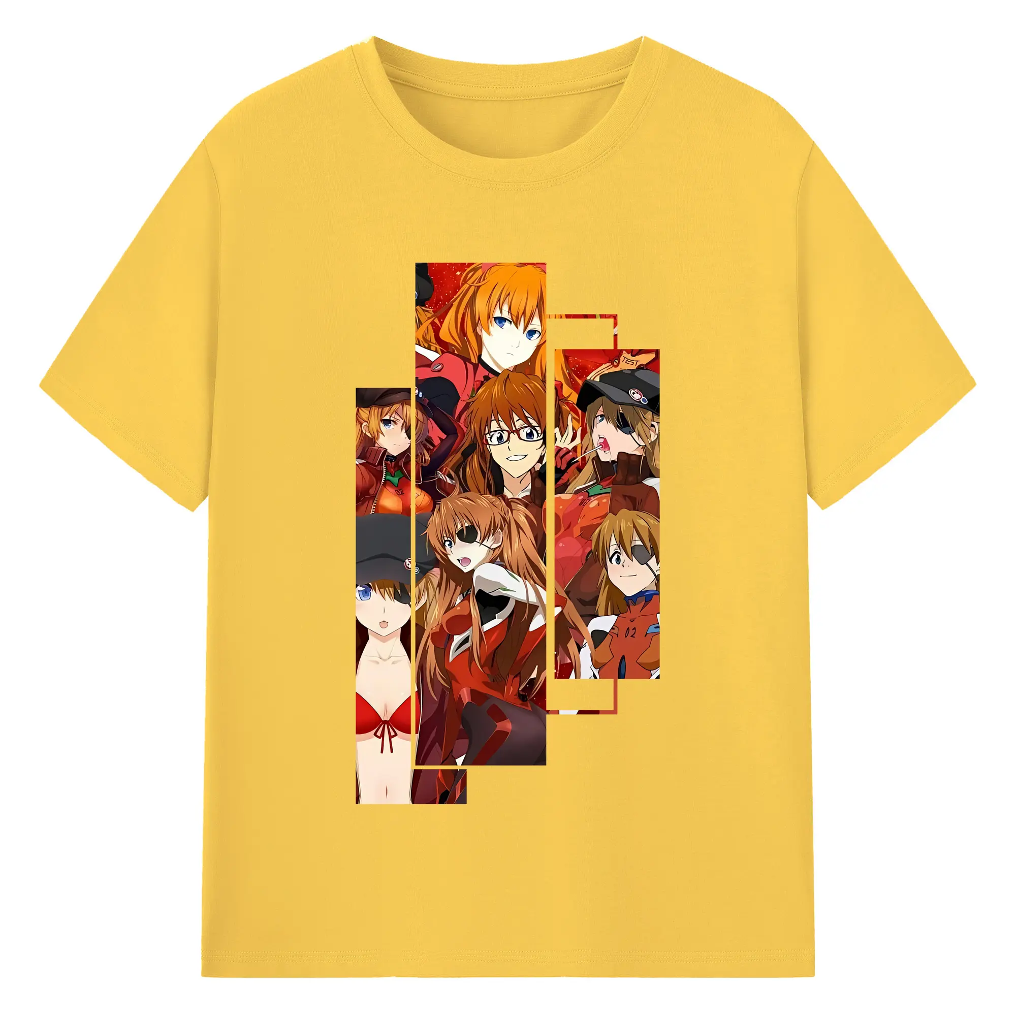 エヴァンゲリオン グッズ,アスカ·ラングレー - 綿100% 半袖Tシャツ ・ バックプリント ・ 快適 通気性 ・ 日常使い 散歩 スポーツ用