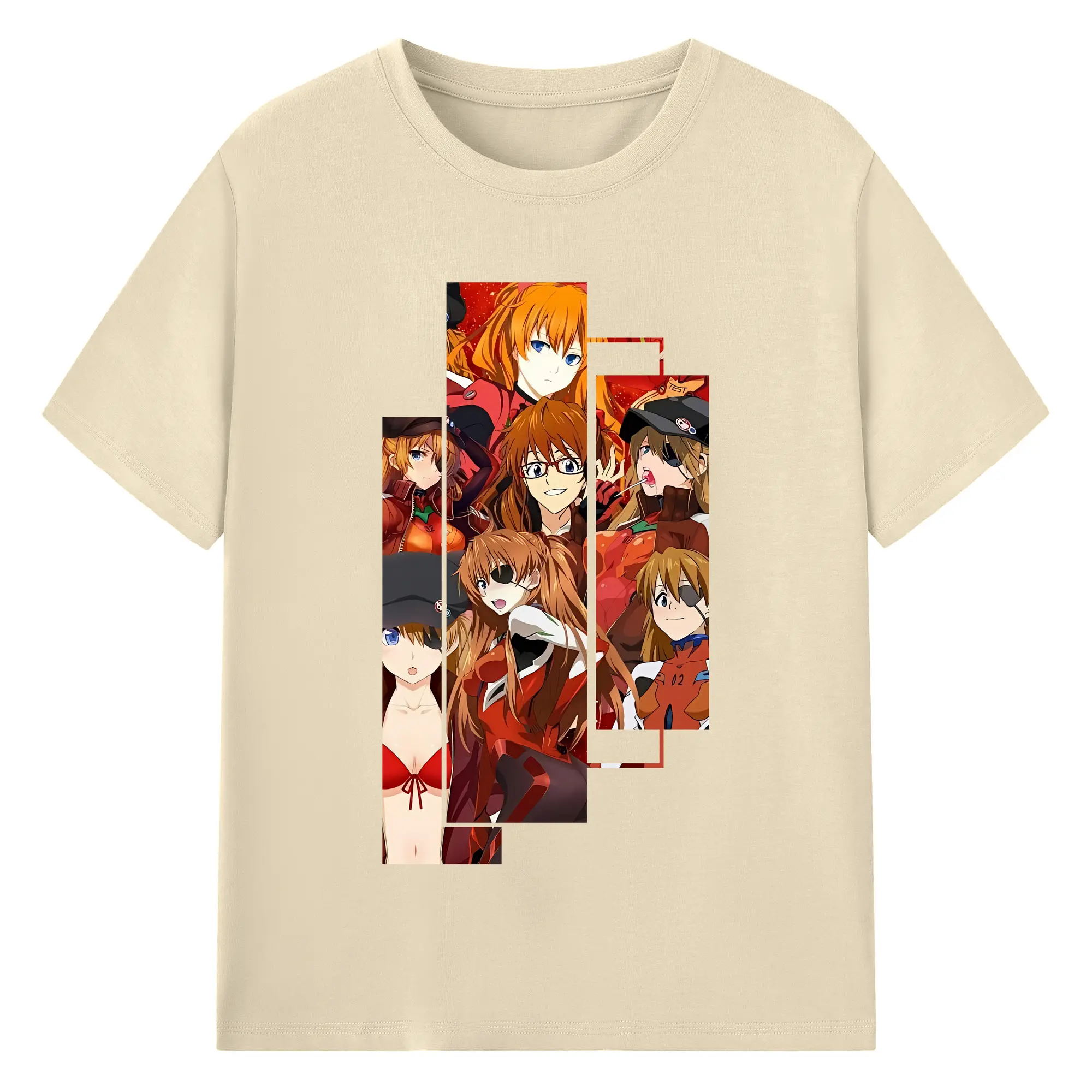 エヴァンゲリオン グッズ,アスカ·ラングレー - 綿100% ヴィンテージ風 半袖Tシャツ ・ フロントプリント ・ 柔らか肌触り ・ 通気性 快適 ・ スポーツ カジュアル 外出用