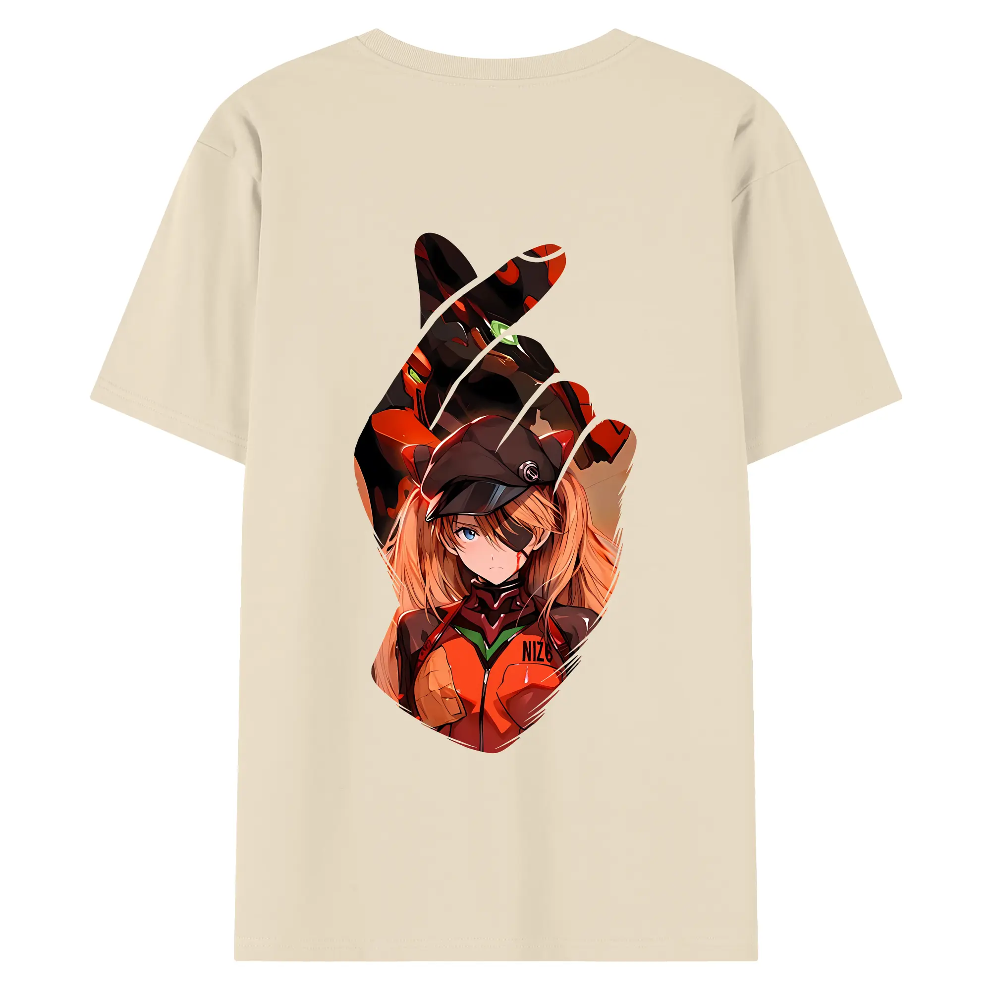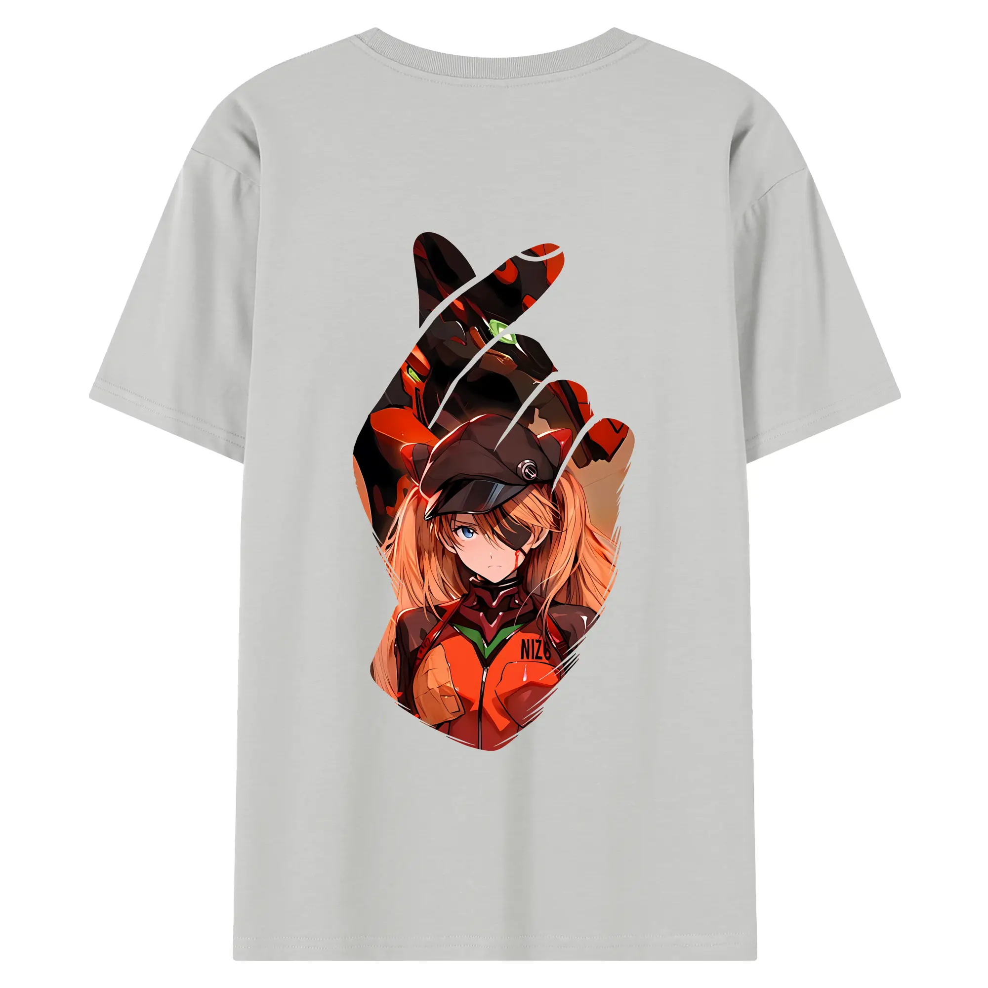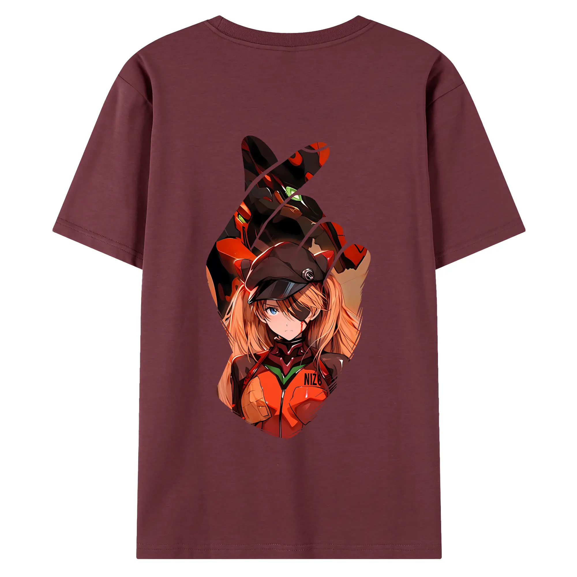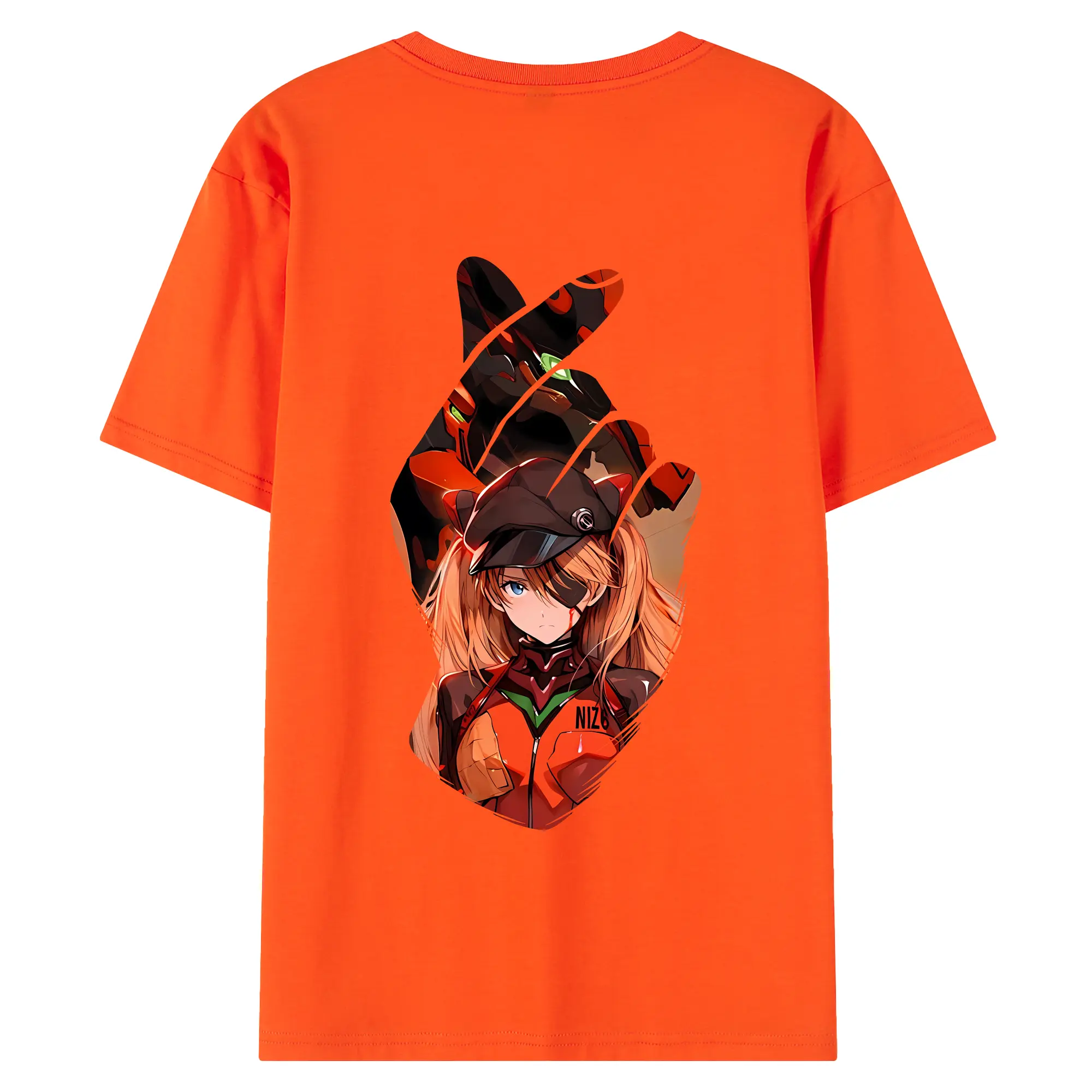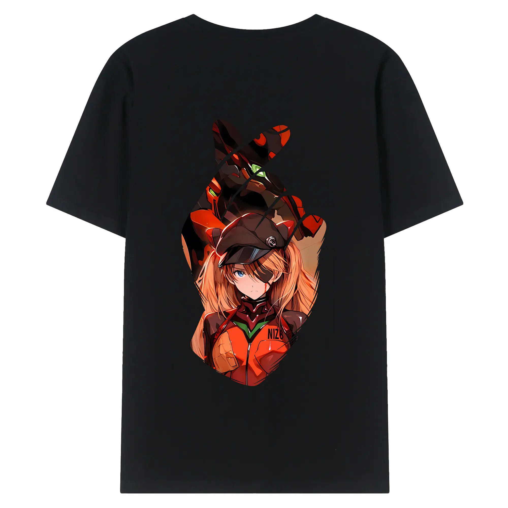 エヴァンゲリオン グッズ,アスカ·ラングレー - 綿100% ヴィンテージ風 半袖Tシャツ ・ 背面プリント ・ 柔らか肌触り ・ 通気性 快適 ・ スポーツ カジュアル 外出用