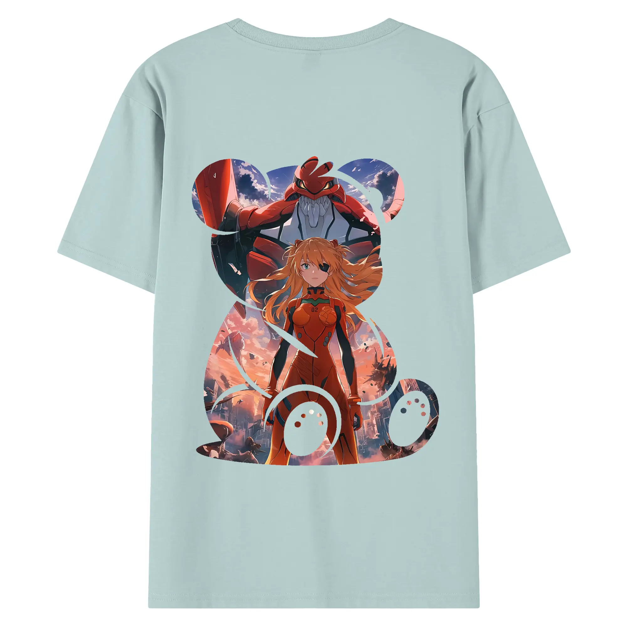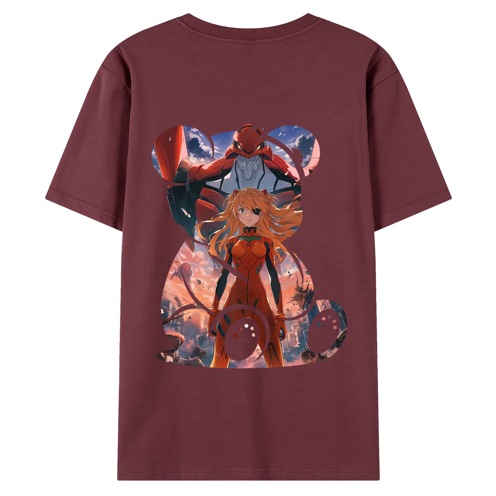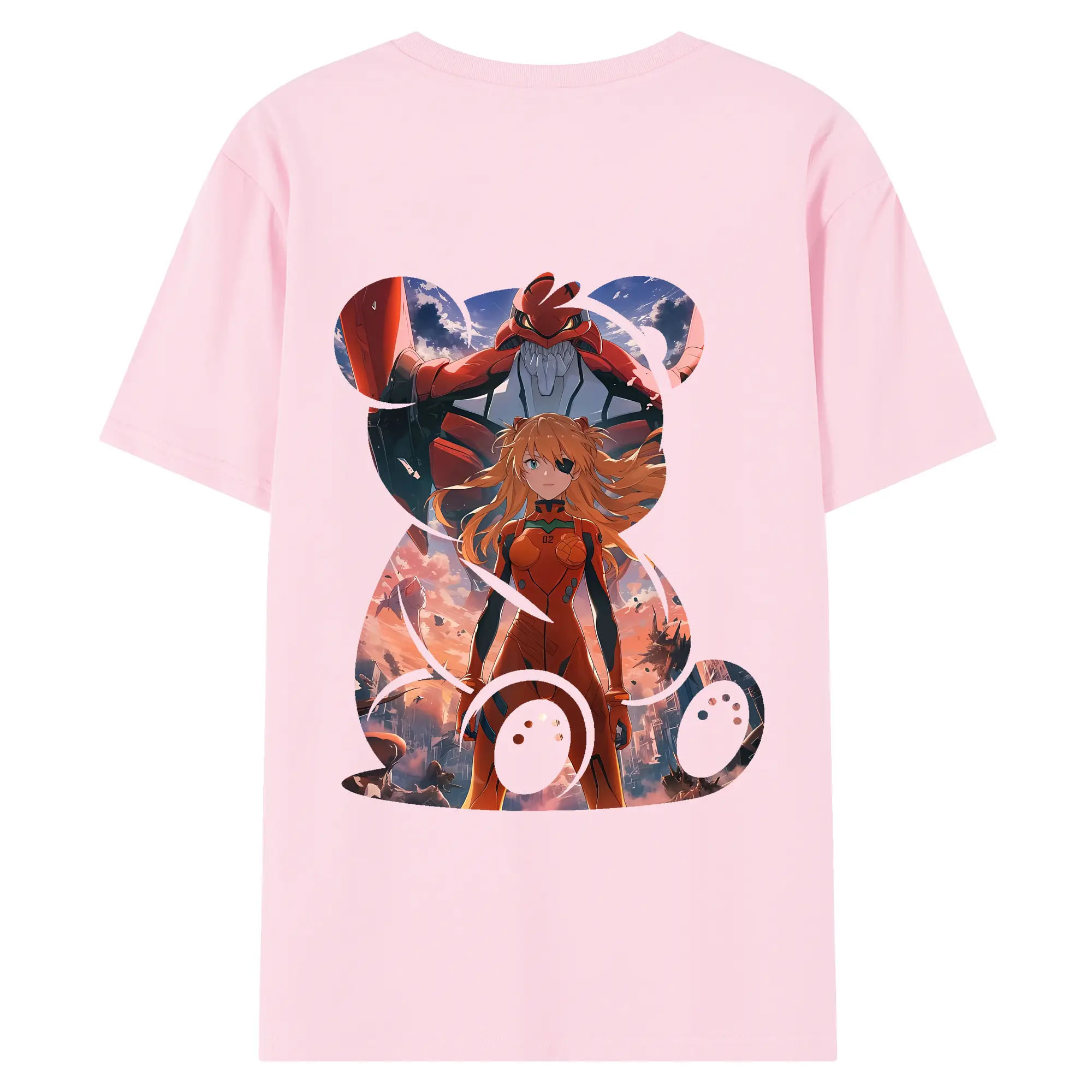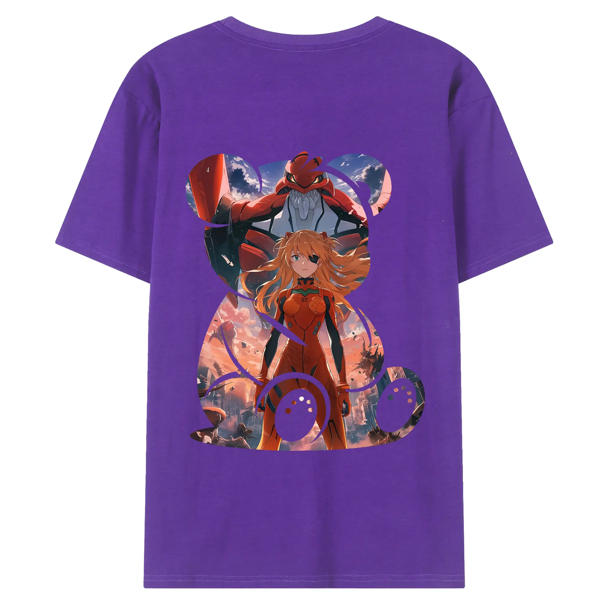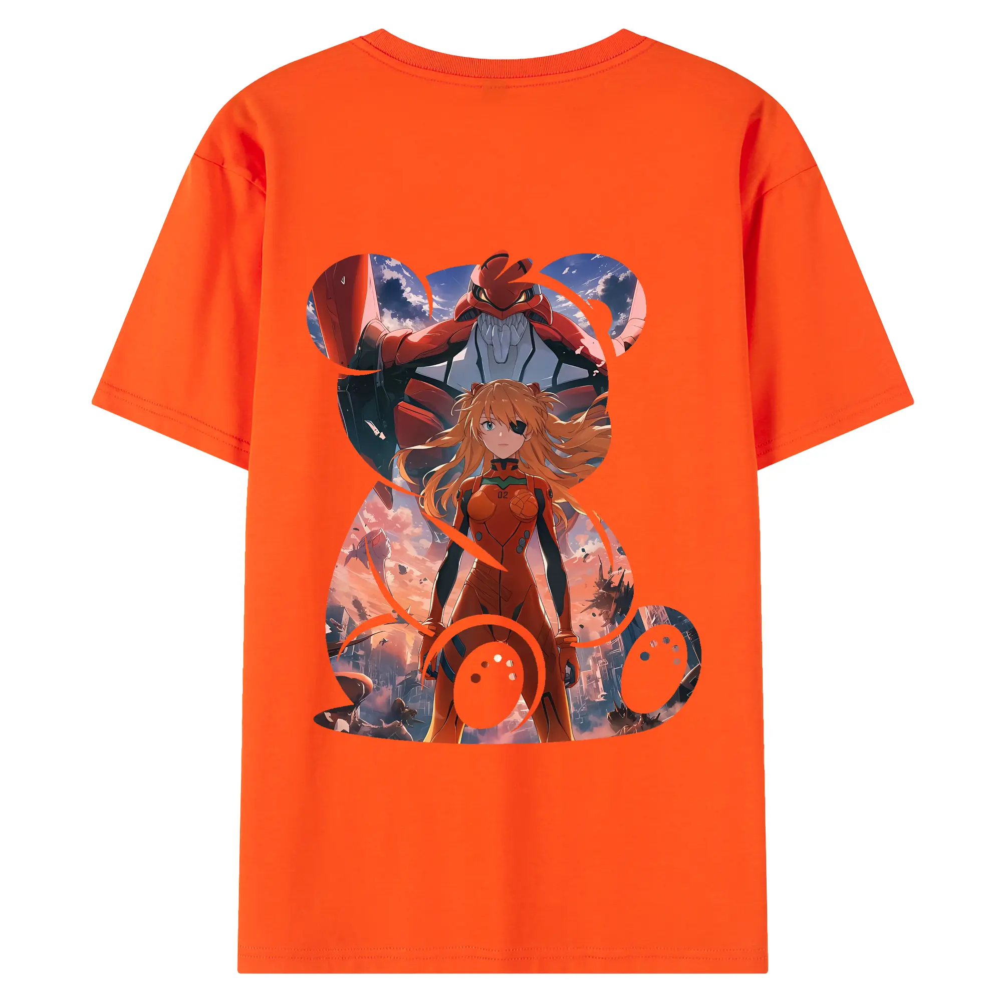 エヴァンゲリオン グッズ,アスカ·ラングレー - 綿100% ヴィンテージ風 半袖Tシャツ ・ 背面プリント ・ 柔らか肌触り ・ 通気性 快適 ・ スポーツ カジュアル 外出用