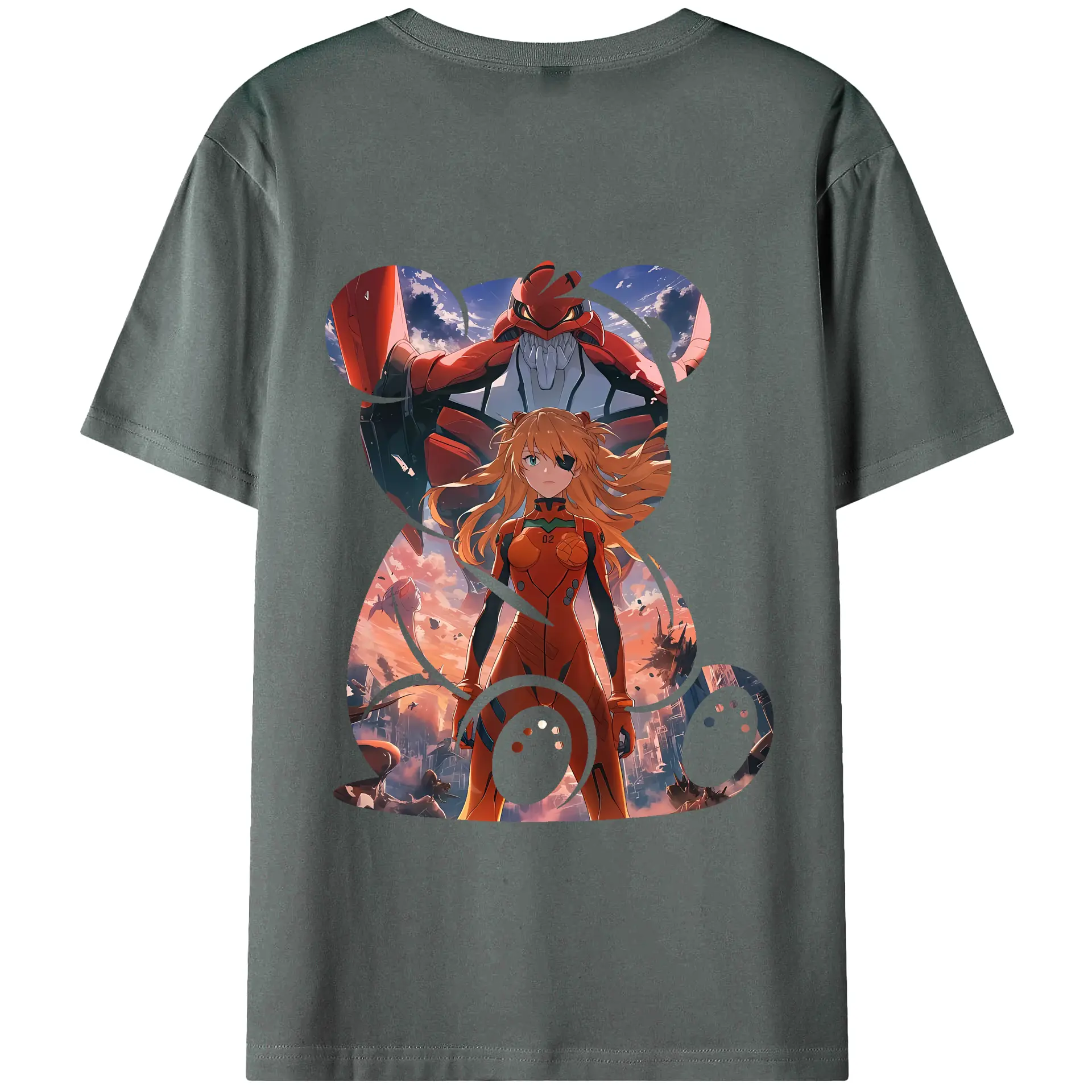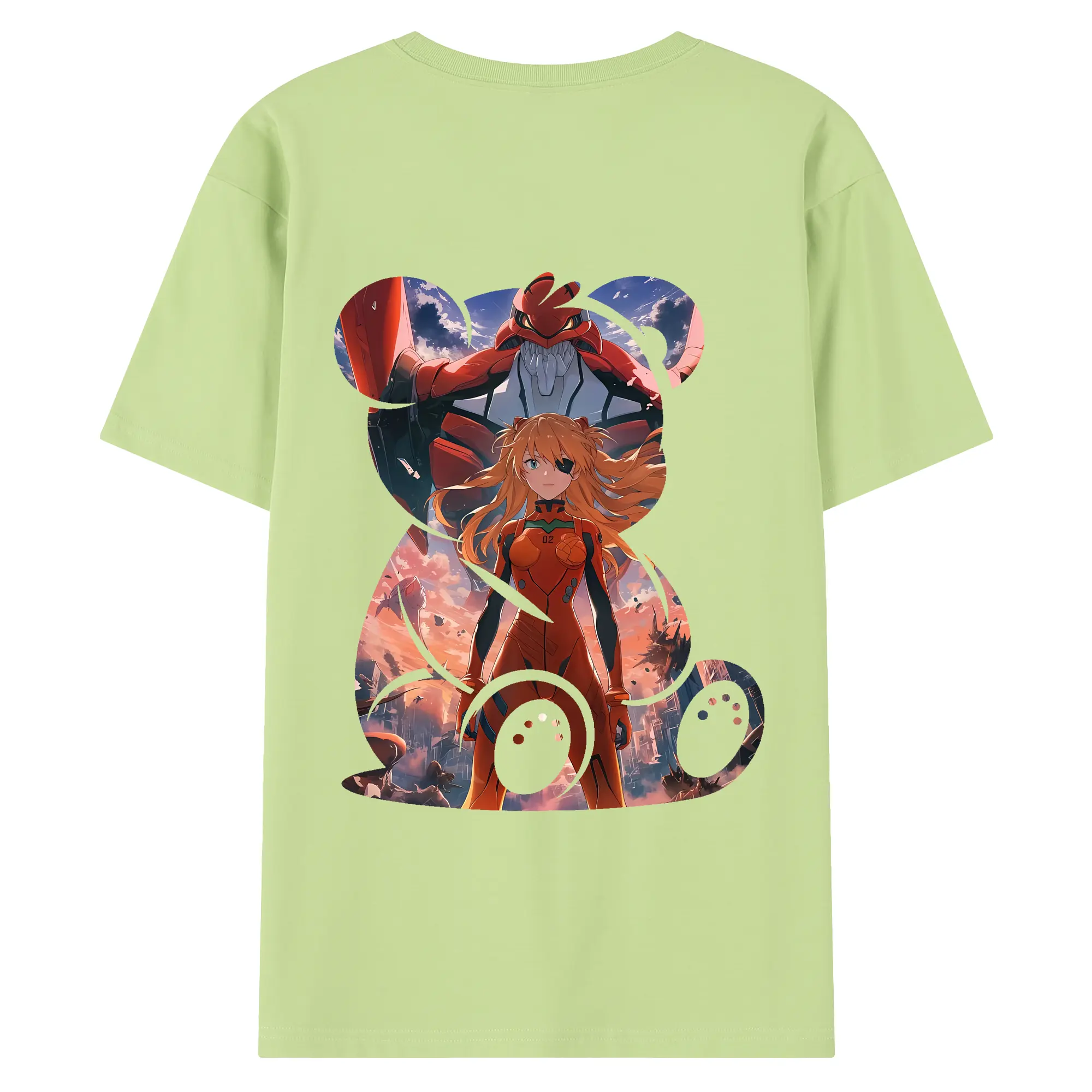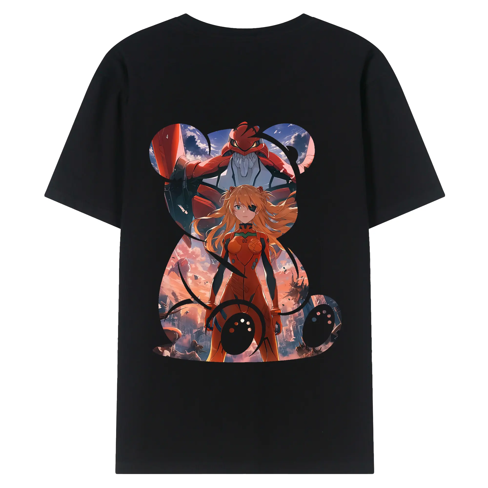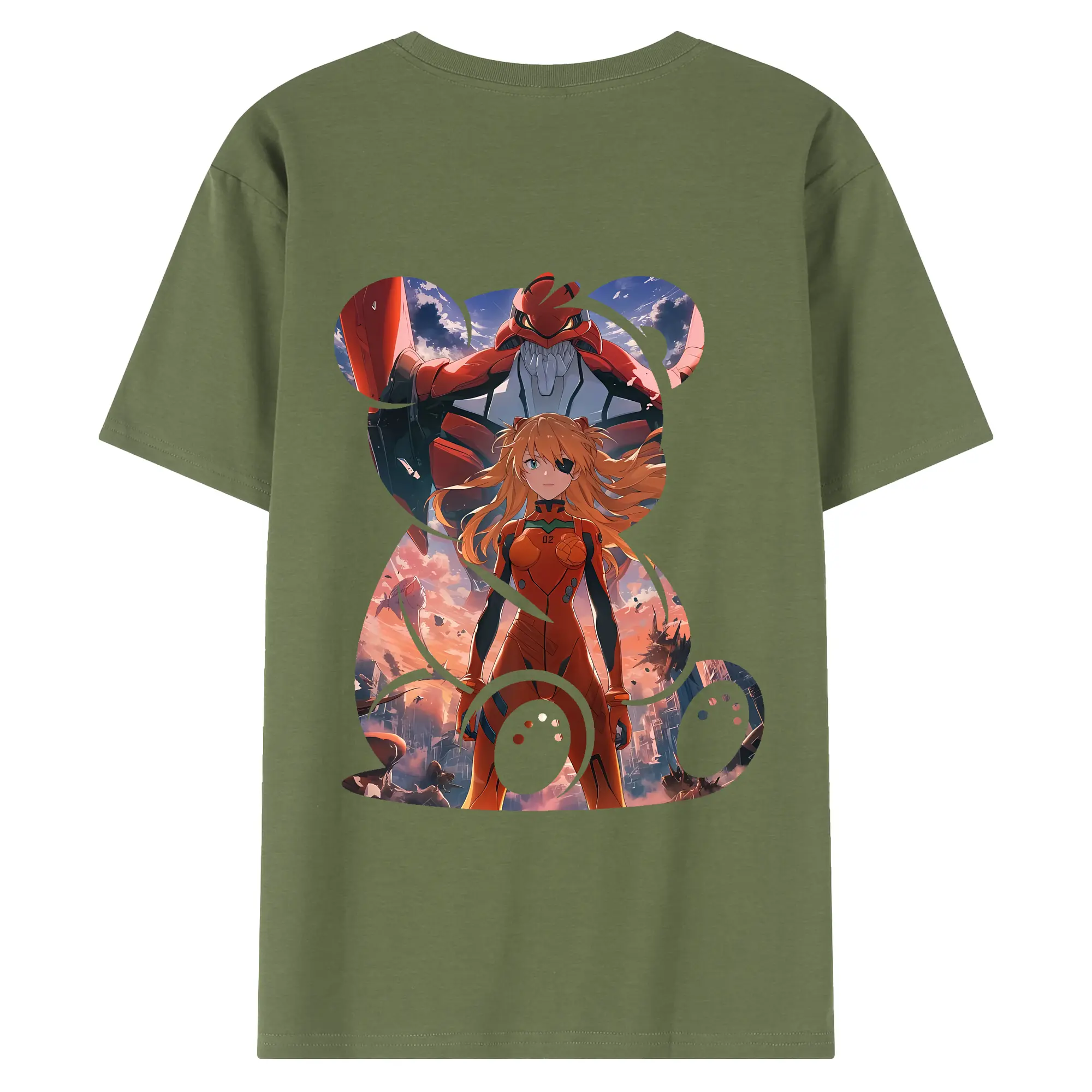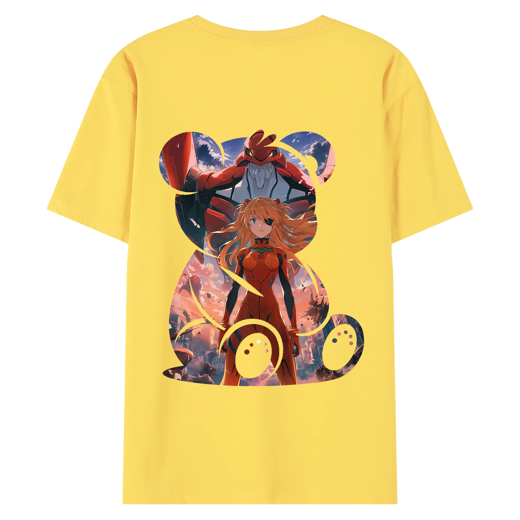 エヴァンゲリオン グッズ,アスカ·ラングレー - 綿100% ヴィンテージ風 半袖Tシャツ ・ 背面プリント ・ 柔らか肌触り ・ 通気性 快適 ・ スポーツ カジュアル 外出用