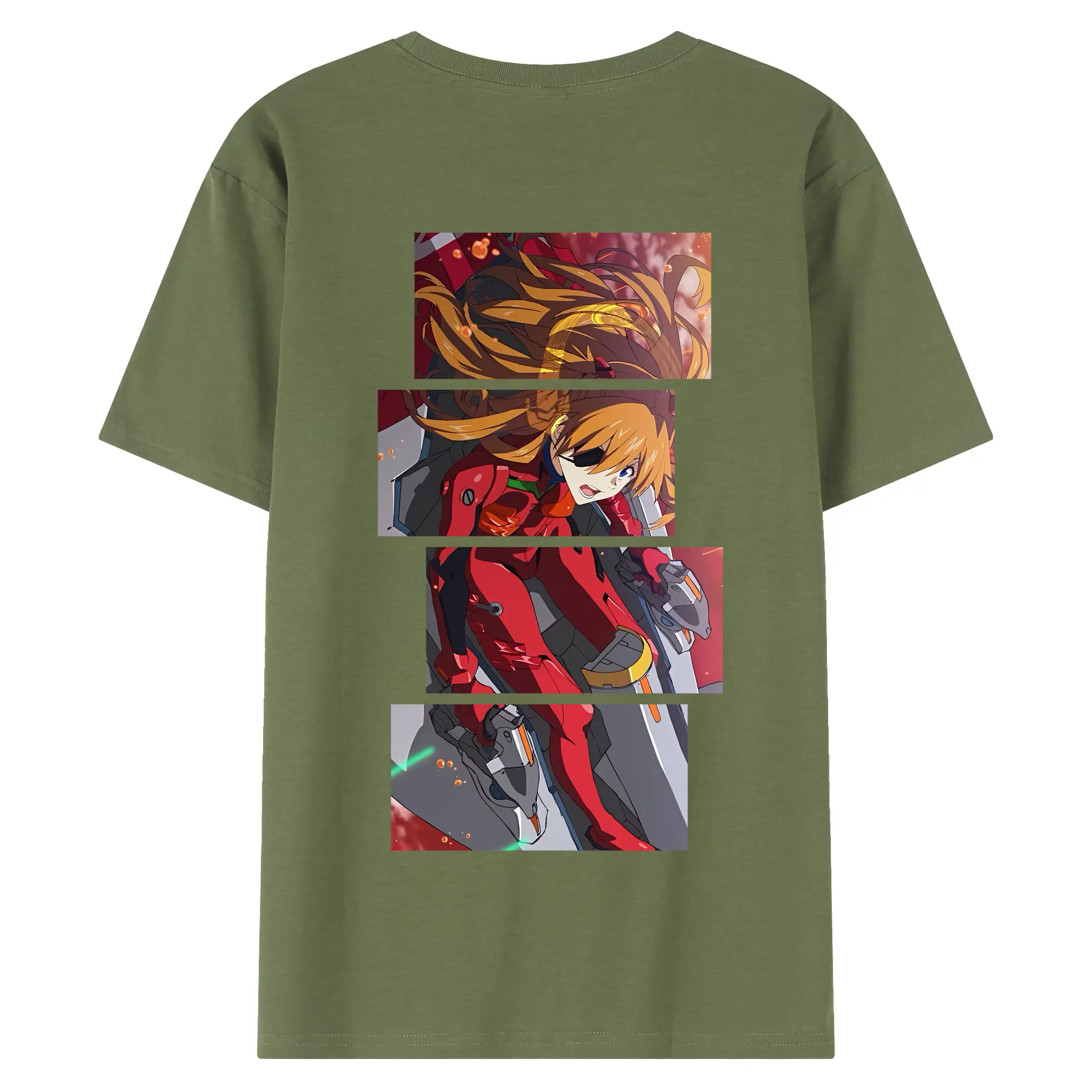 エヴァンゲリオン グッズ,アスカ·ラングレー - 綿100% 半袖Tシャツ ・ バックプリント ・ 快適 通気性 ・ 日常使い 散歩 スポーツ用