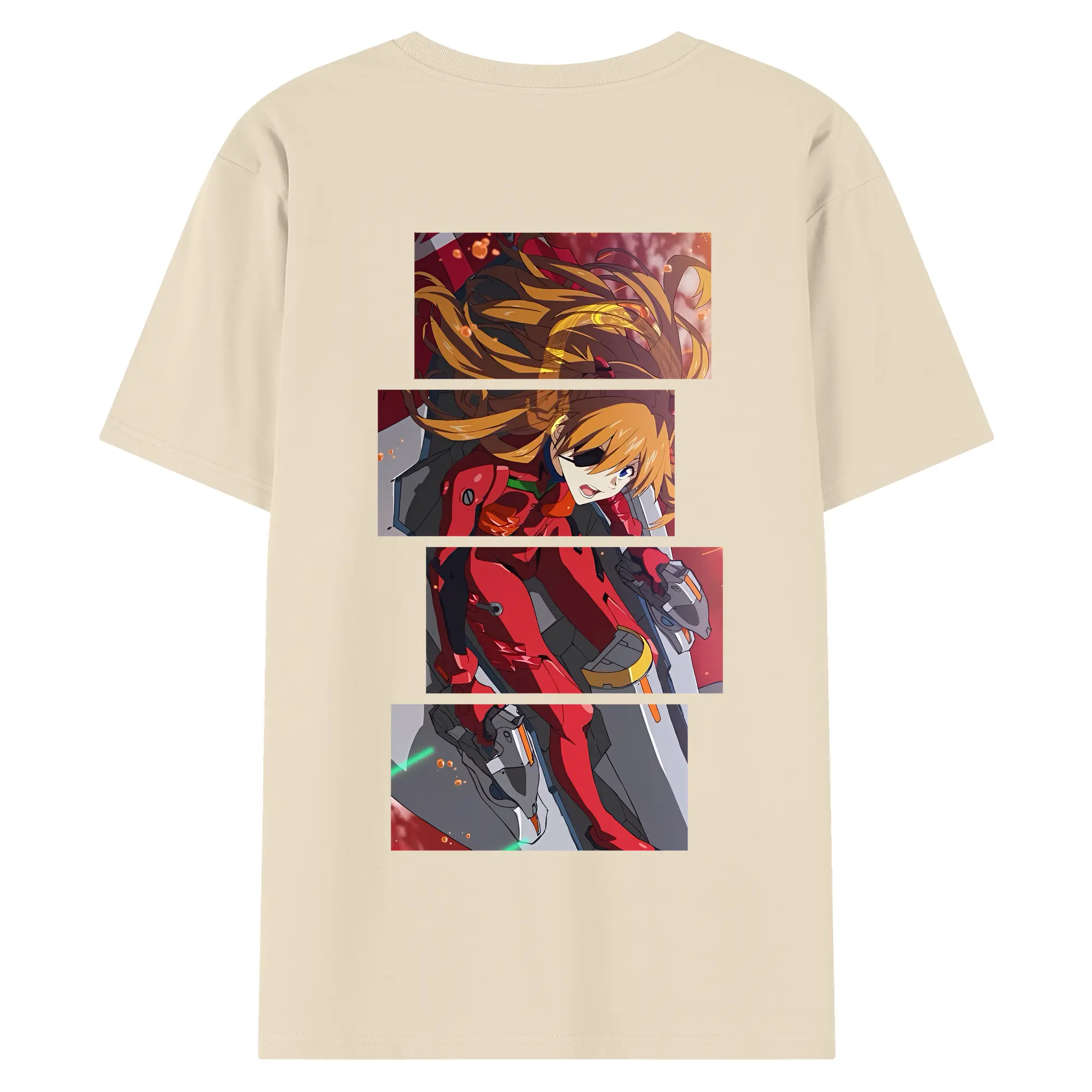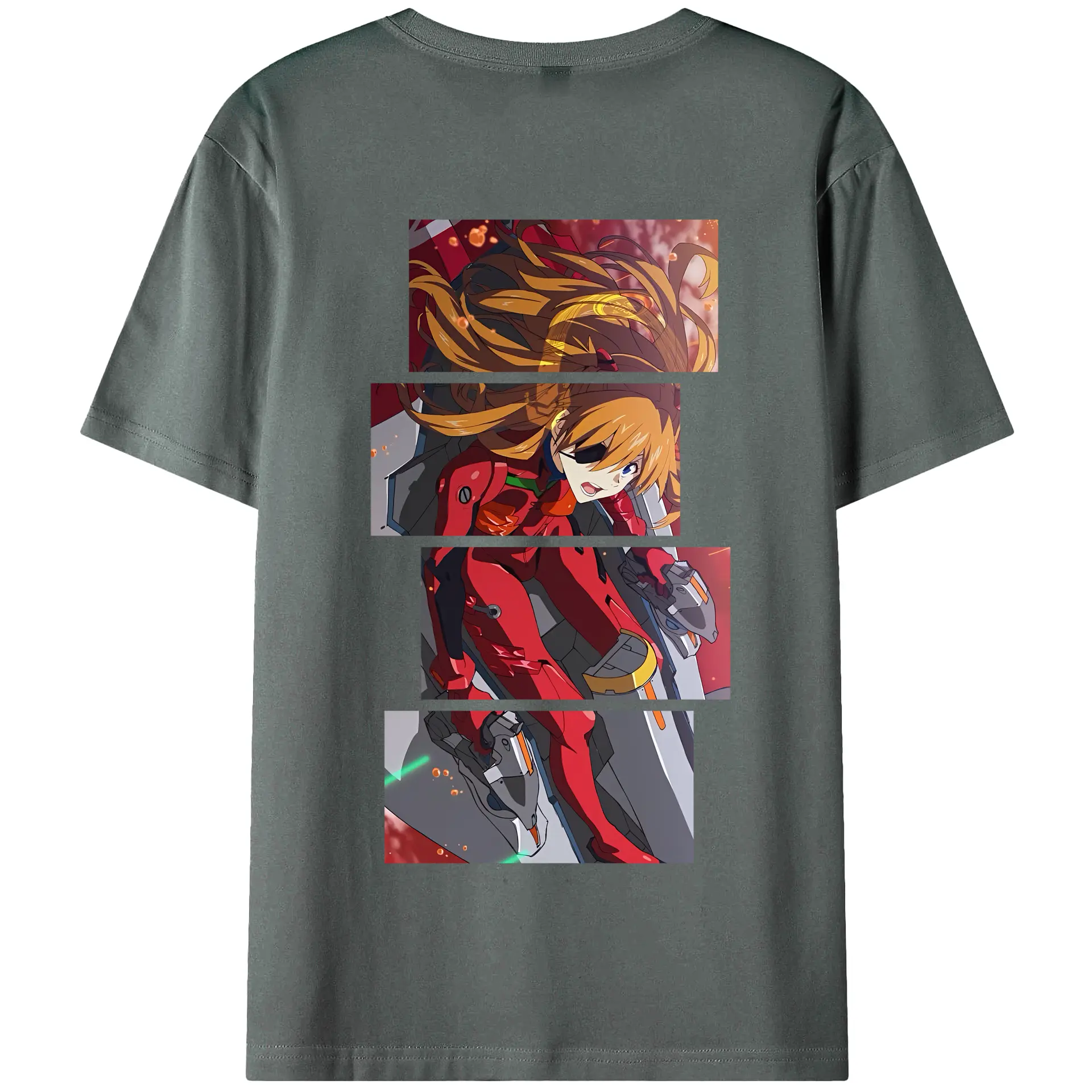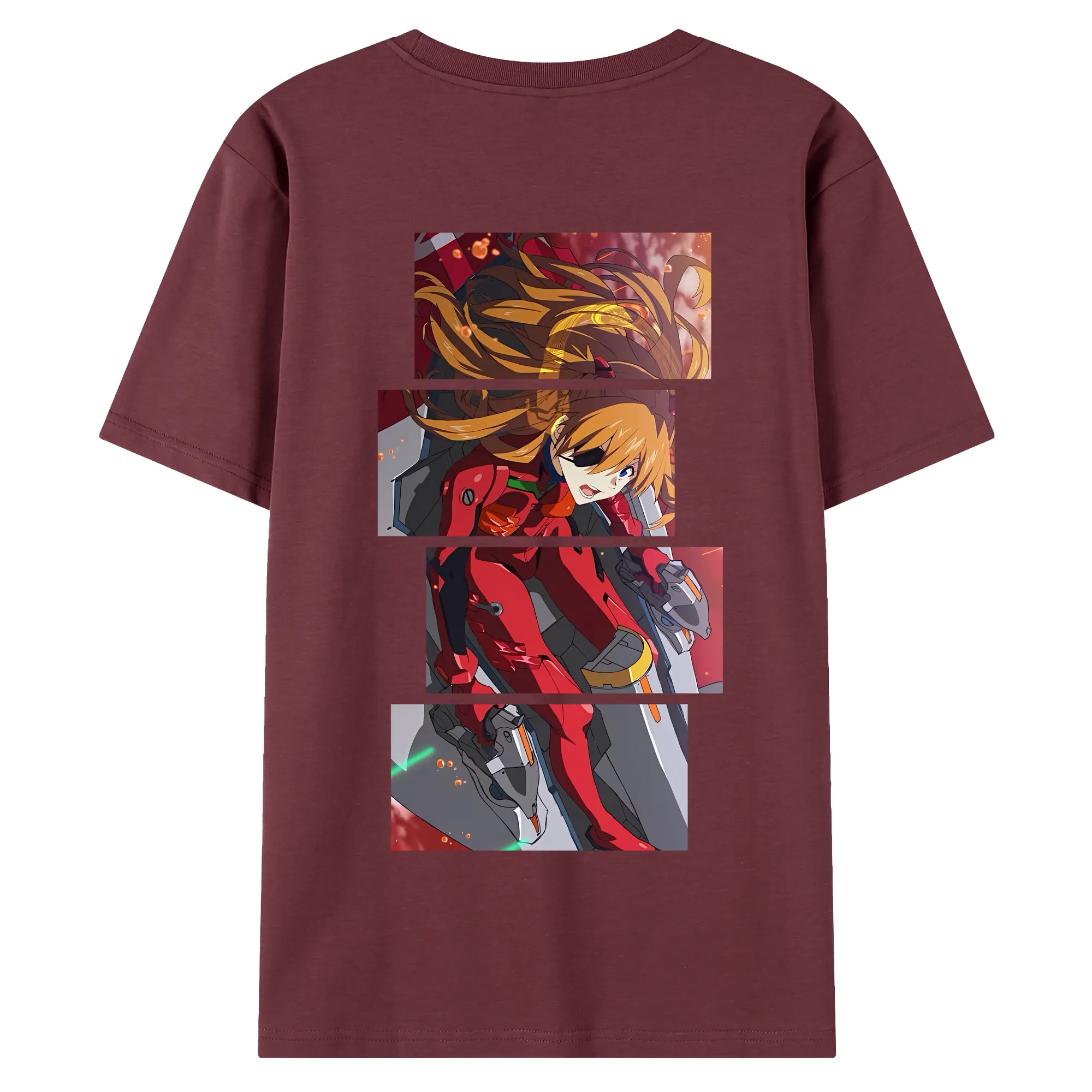 エヴァンゲリオン グッズ,アスカ·ラングレー - 綿100% ヴィンテージ風 半袖Tシャツ ・ 背面プリント ・ 柔らか肌触り ・ 通気性 快適 ・ スポーツ カジュアル 外出用