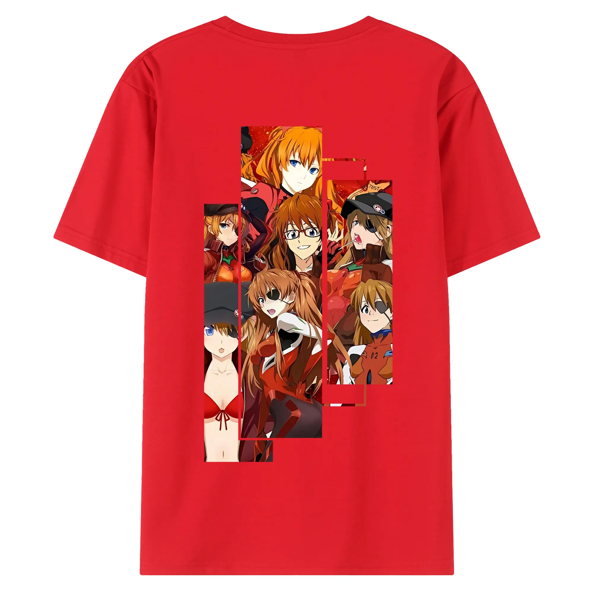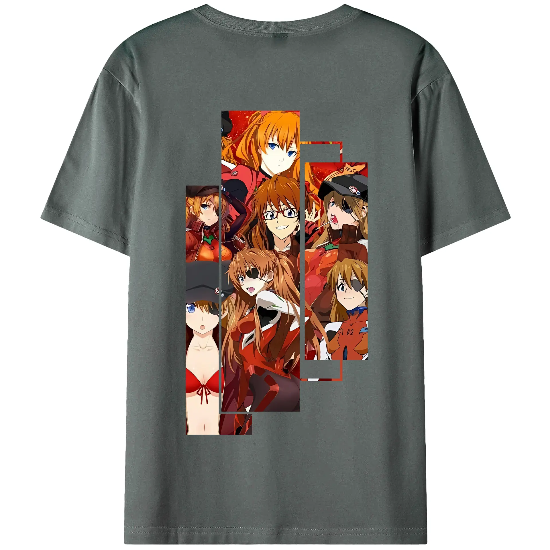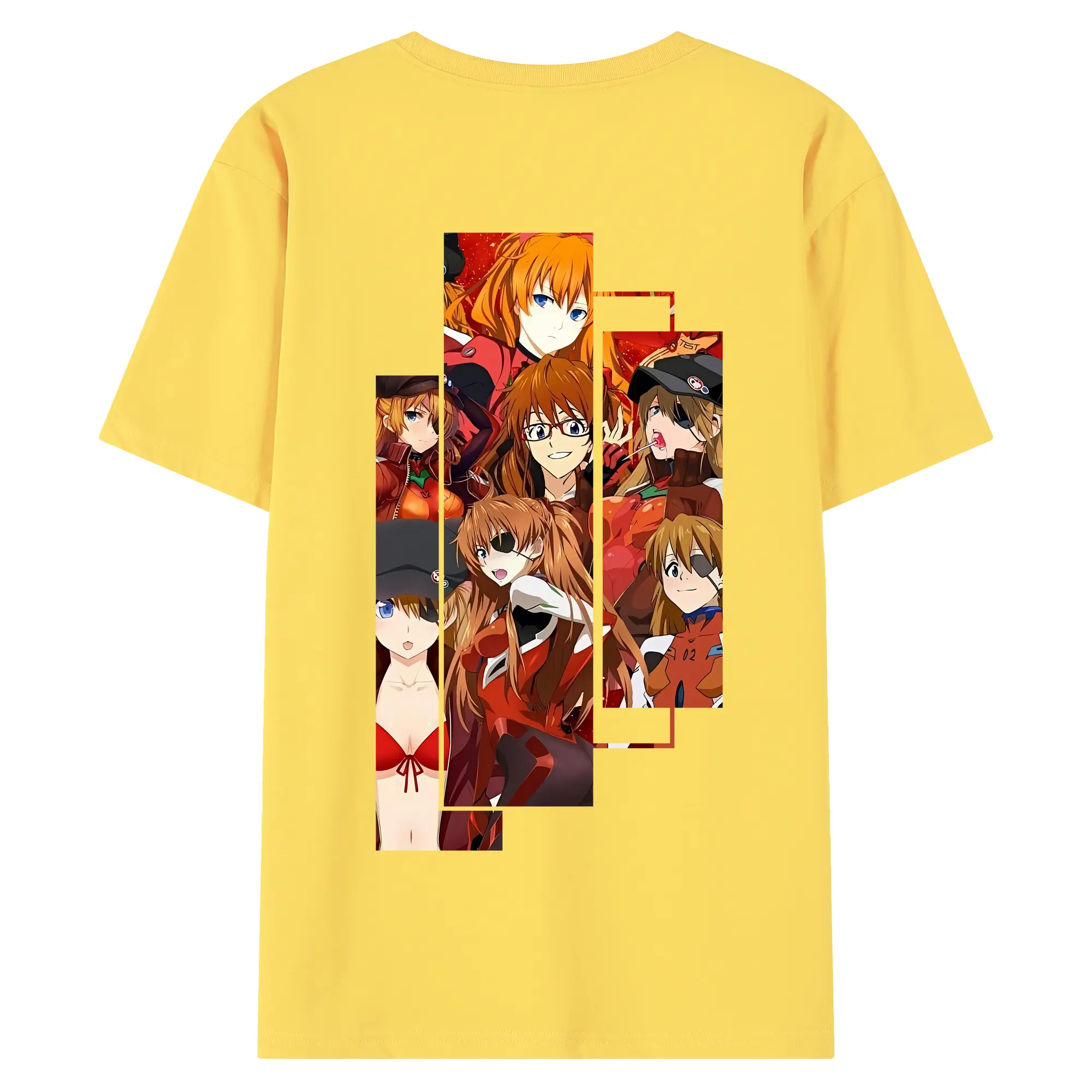 エヴァンゲリオン グッズ,アスカ·ラングレー - 綿100% ヴィンテージ風 半袖Tシャツ ・ 背面プリント ・ 柔らか肌触り ・ 通気性 快適 ・ スポーツ カジュアル 外出用