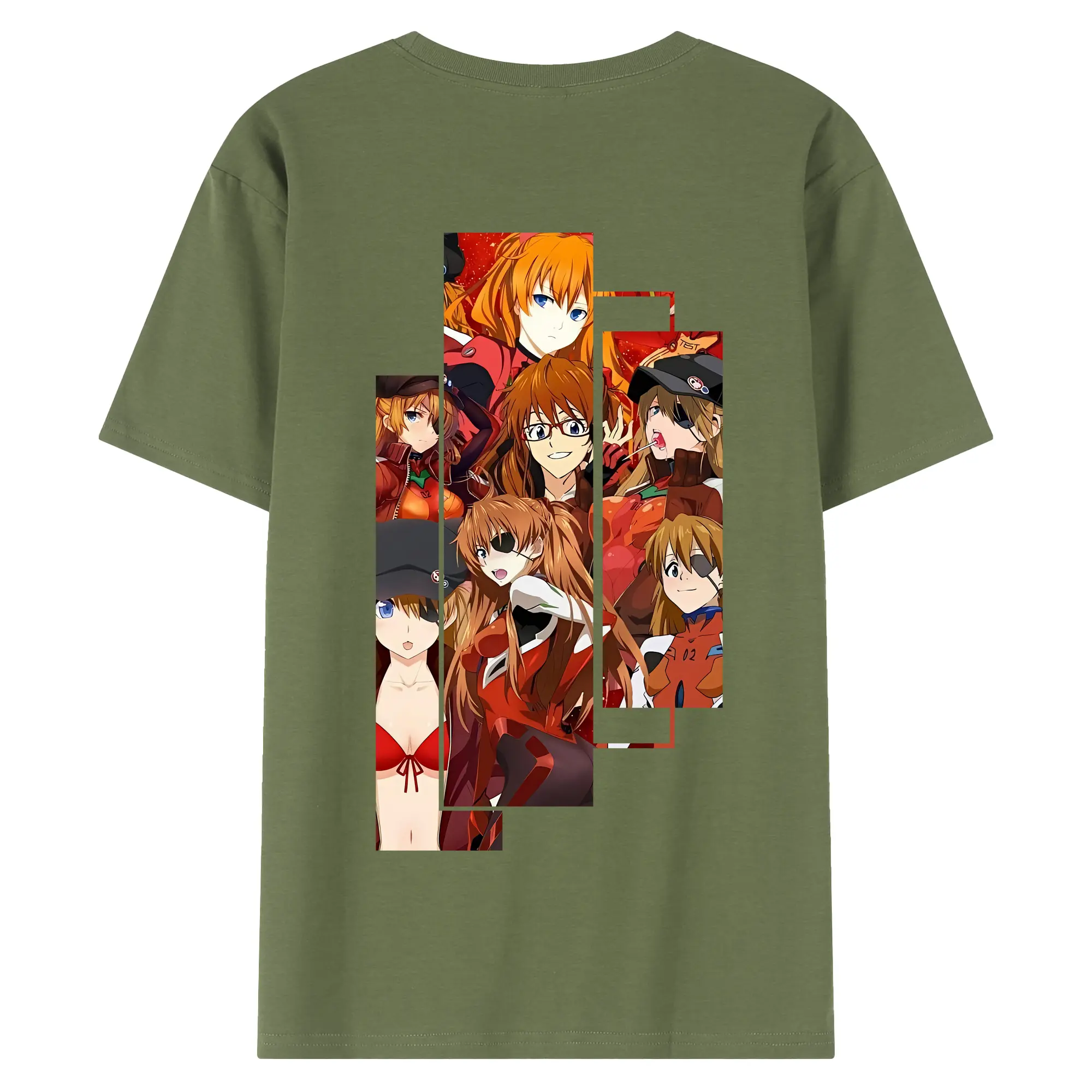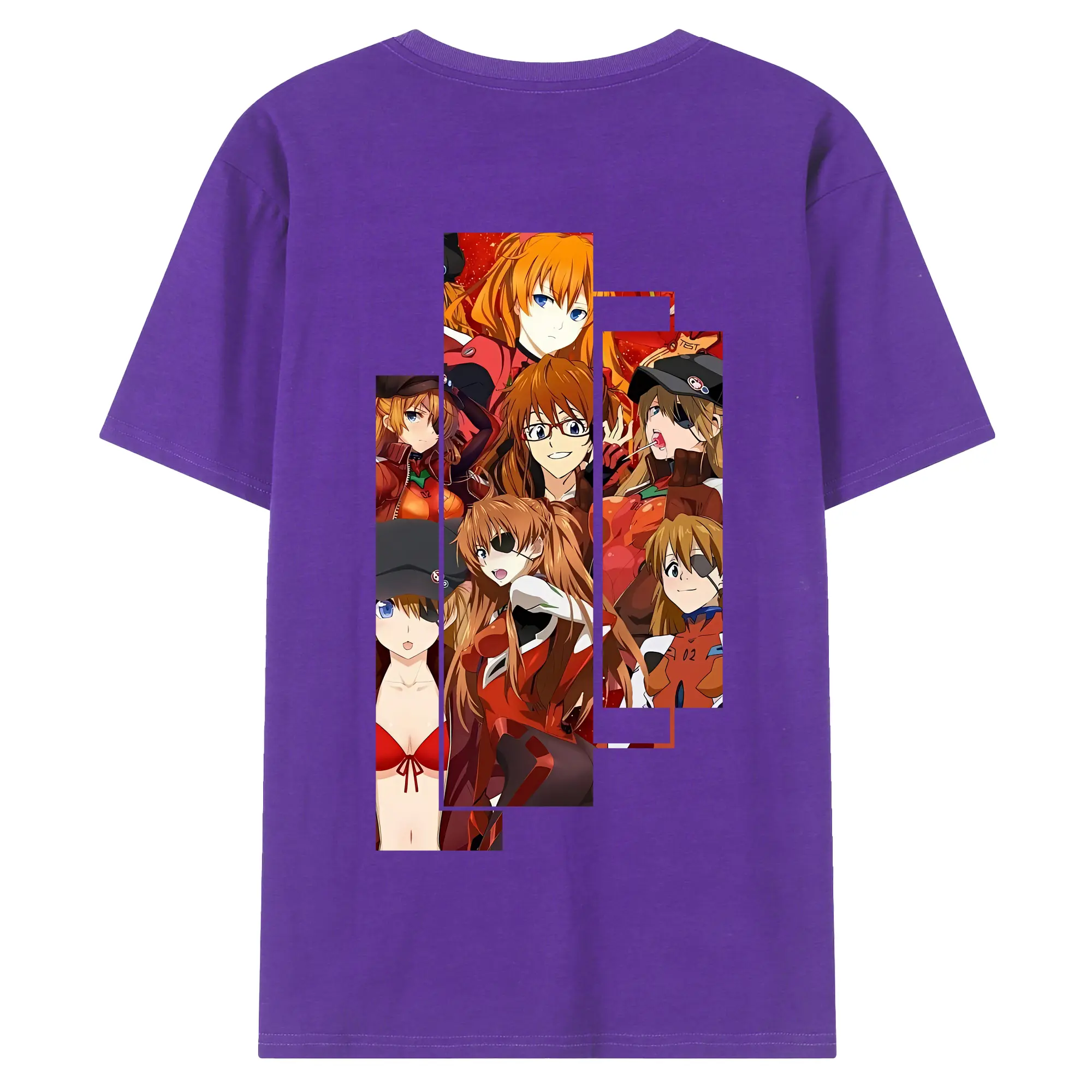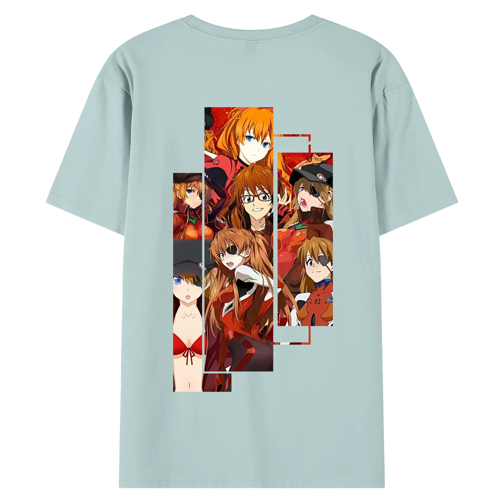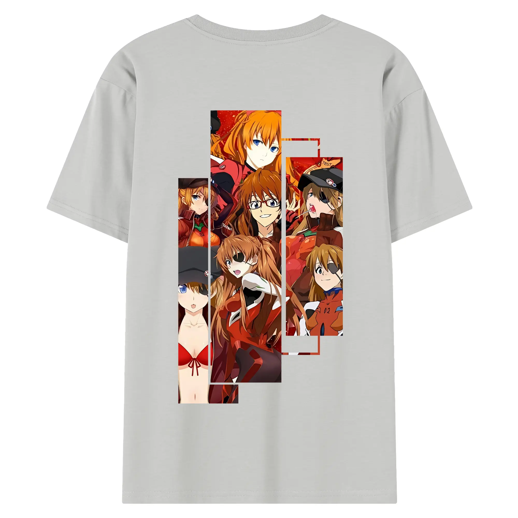 エヴァンゲリオン グッズ,アスカ·ラングレー - 綿100% ヴィンテージ風 半袖Tシャツ ・ 背面プリント ・ 柔らか肌触り ・ 通気性 快適 ・ スポーツ カジュアル 外出用