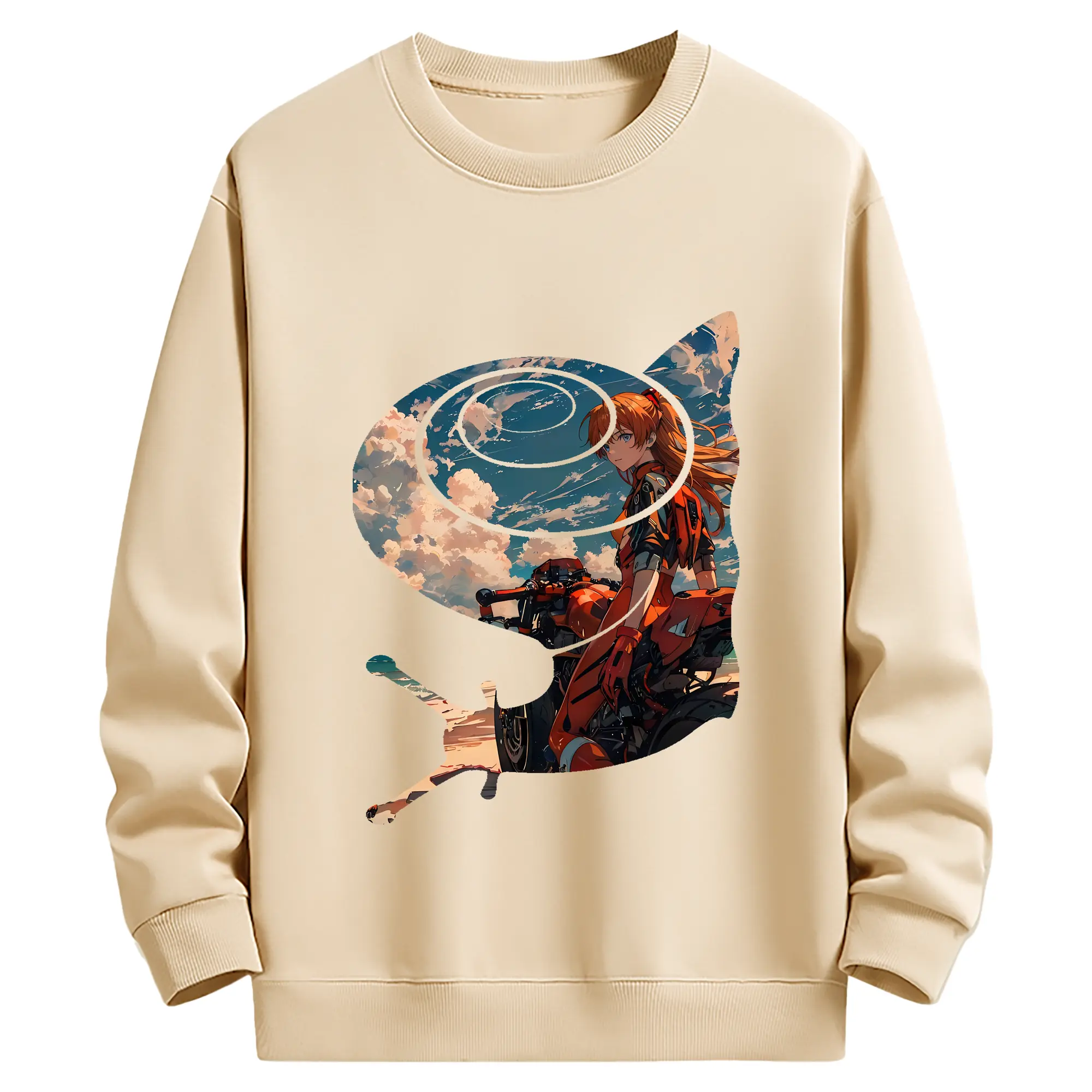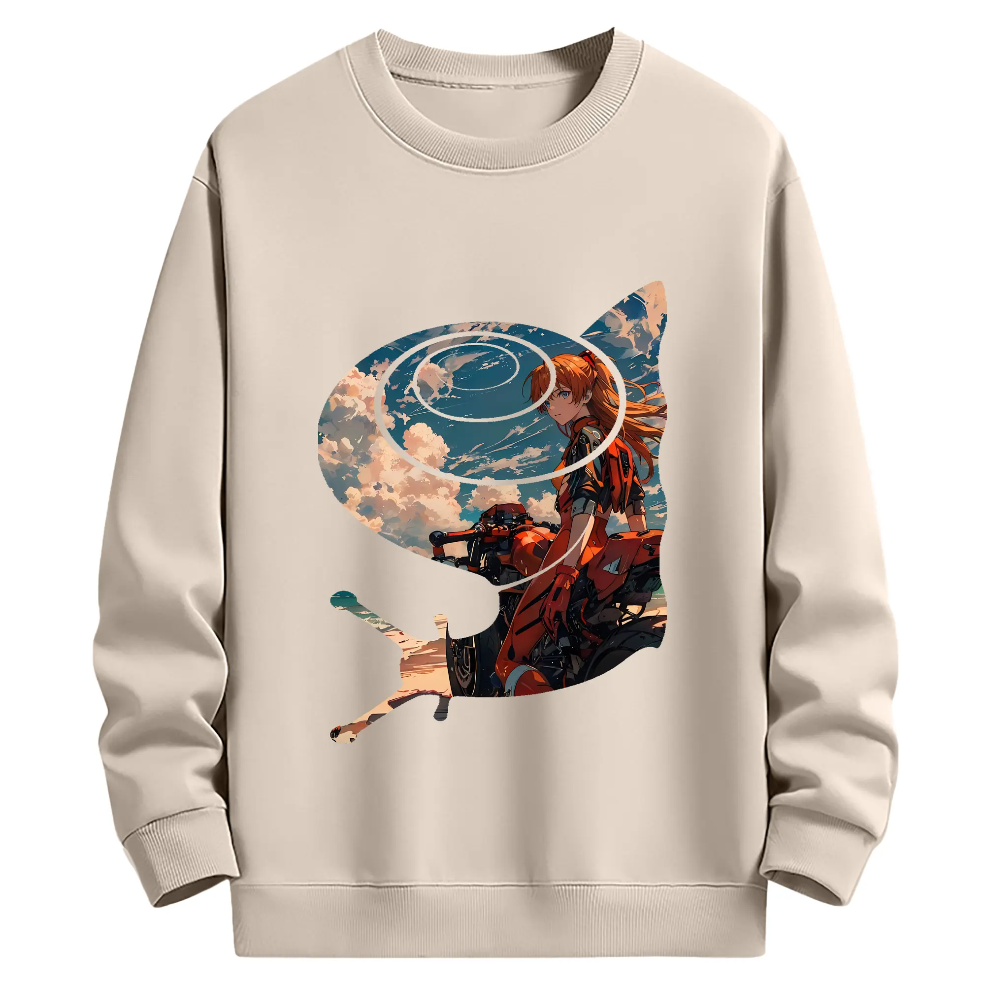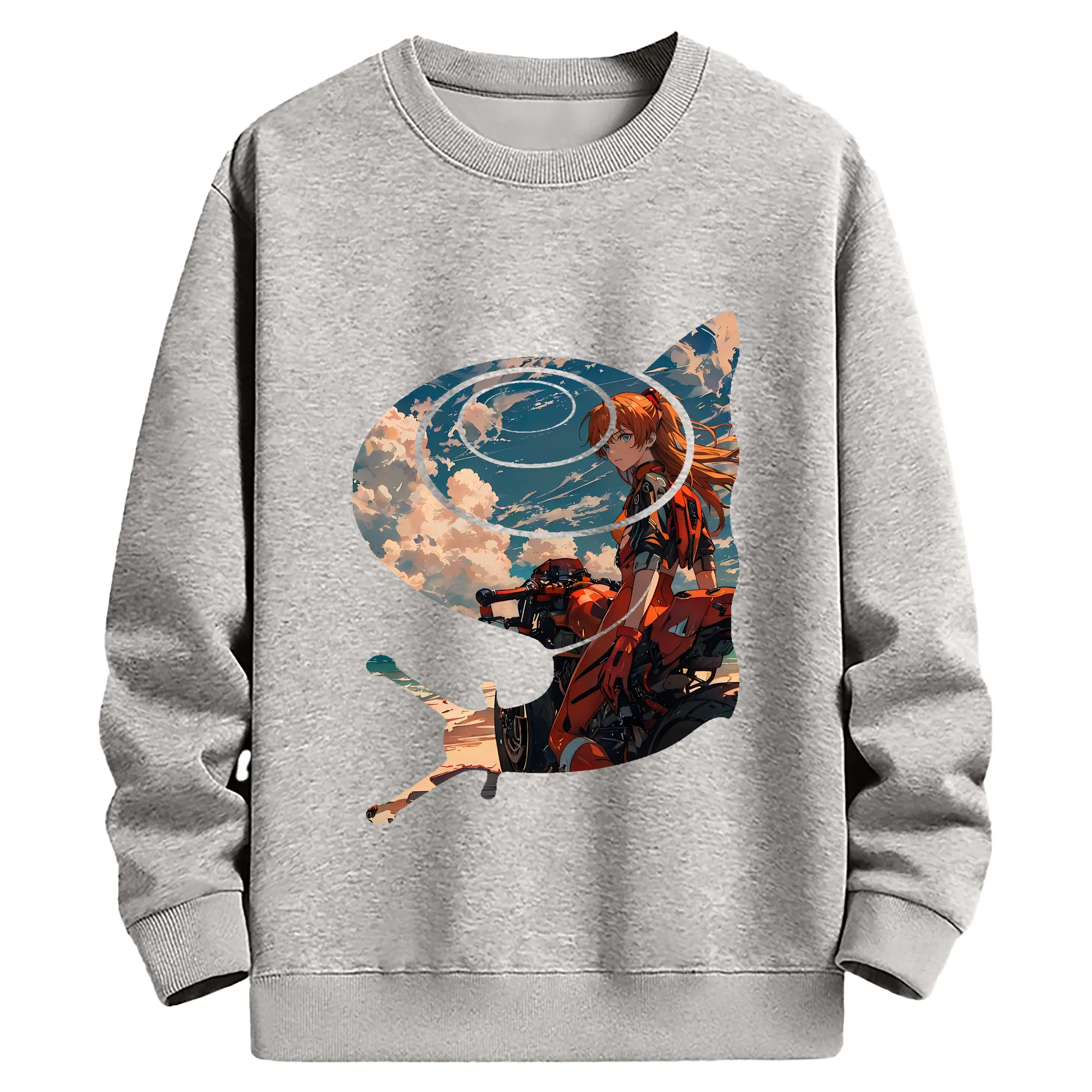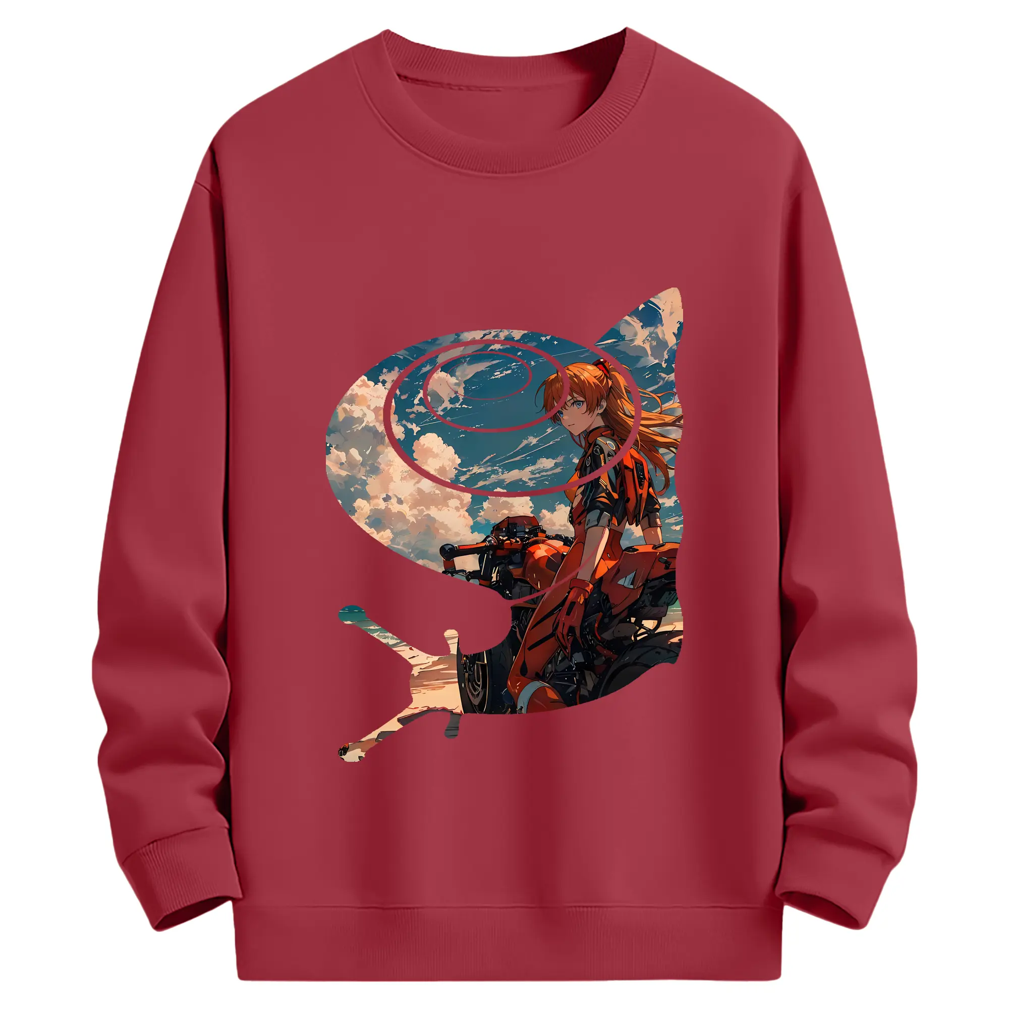 エヴァンゲリオン グッズ,アスカ·ラングレー - 薄手 クルーネック スウェット 裏毛260g · ポリエステル 春秋向け カジュアル 男女兼用 · トレーナー デイリー スポーツ 散歩に最適