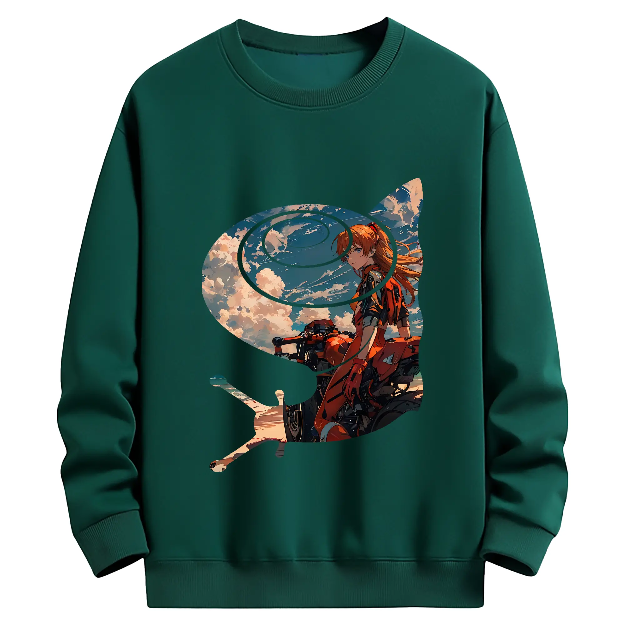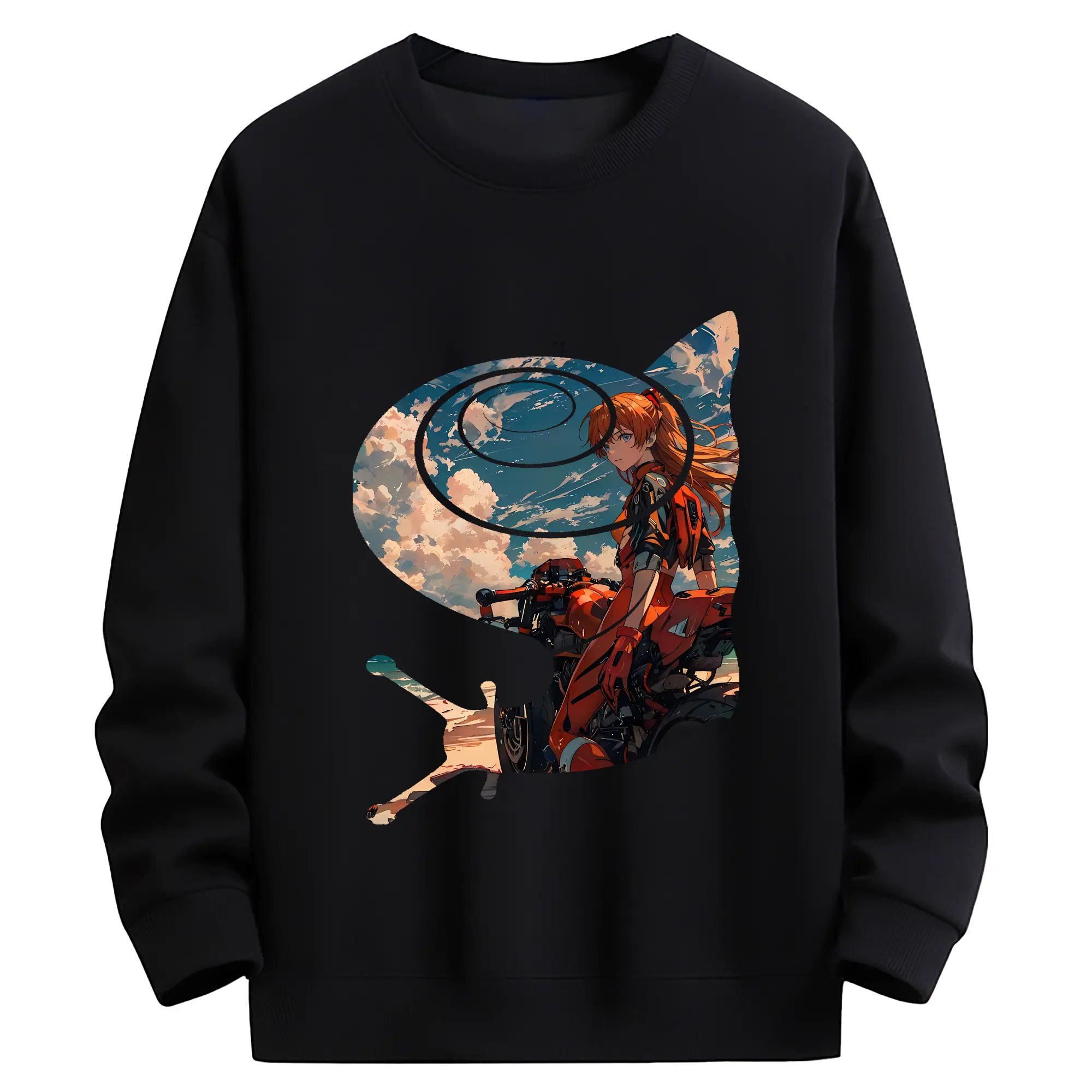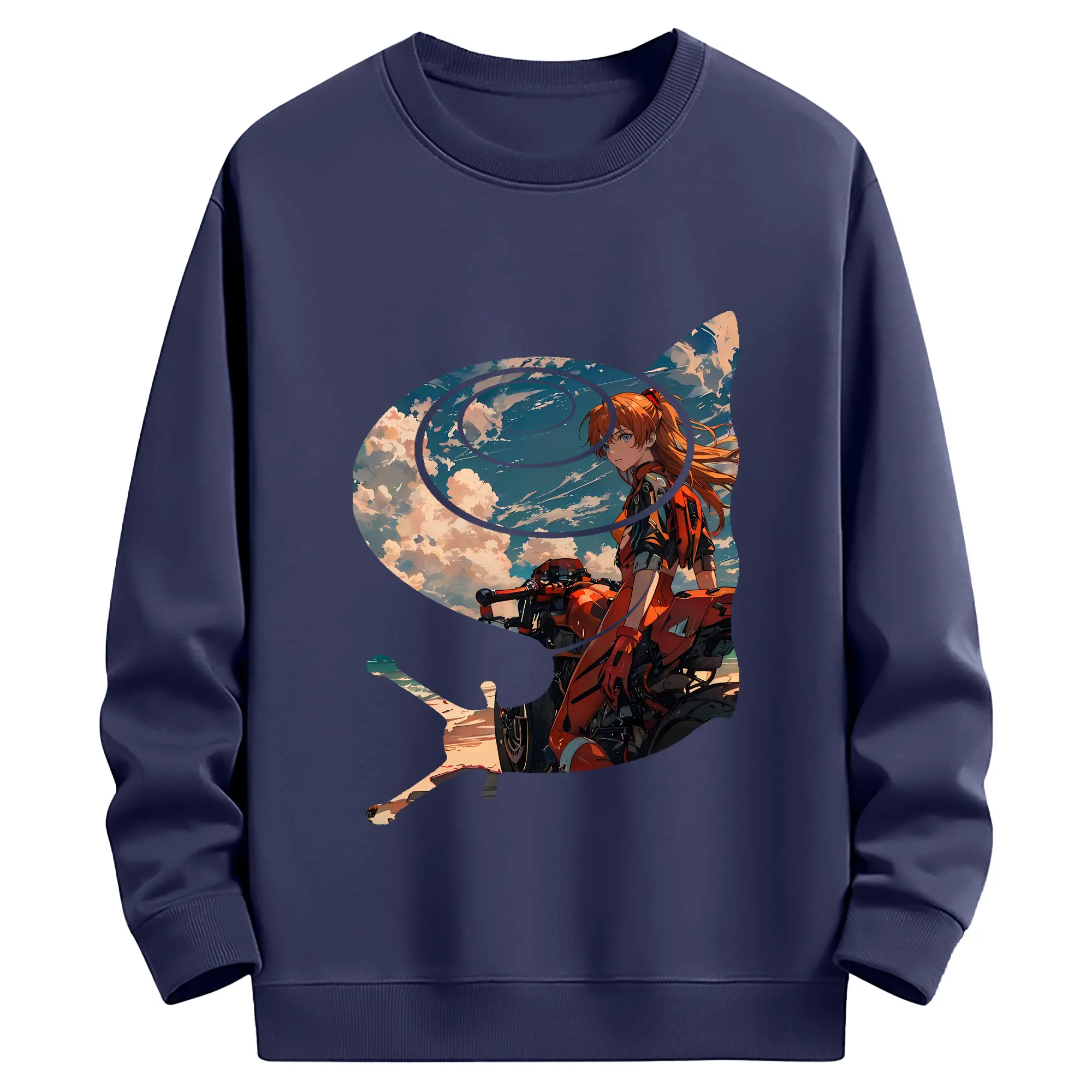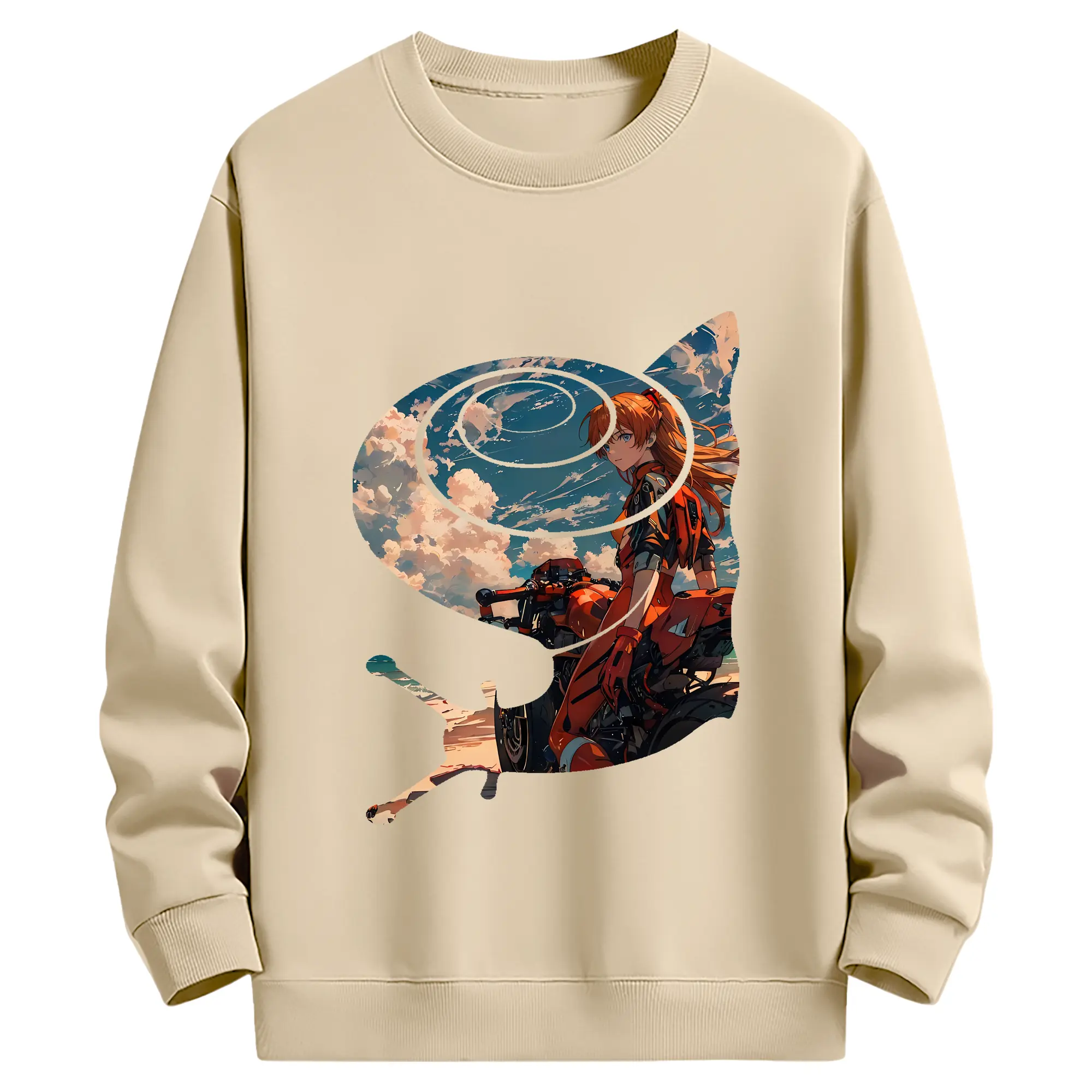 エヴァンゲリオン グッズ,アスカ·ラングレー - 薄手 クルーネック スウェット 裏毛260g · ポリエステル 春秋向け カジュアル 男女兼用 · トレーナー デイリー スポーツ 散歩に最適
