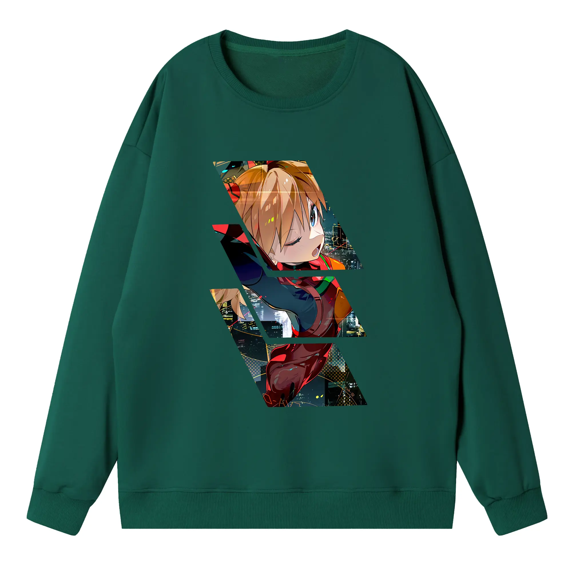 エヴァンゲリオン グッズ,アスカ·ラングレー - 高品質 クルーネック スウェット ・ コットン59% ポリエステル41% ・ ユニセックス 長袖 トレーナー ・ カジュアル デイリー スポーツ 散歩用