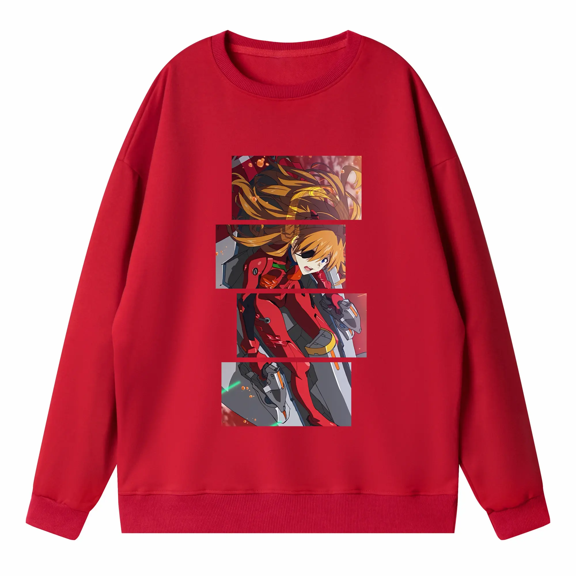 エヴァンゲリオン グッズ,アスカ·ラングレー - 高品質 クルーネック スウェット ・ コットン59% ポリエステル41% ・ ユニセックス 長袖 トレーナー ・ カジュアル デイリー スポーツ 散歩用