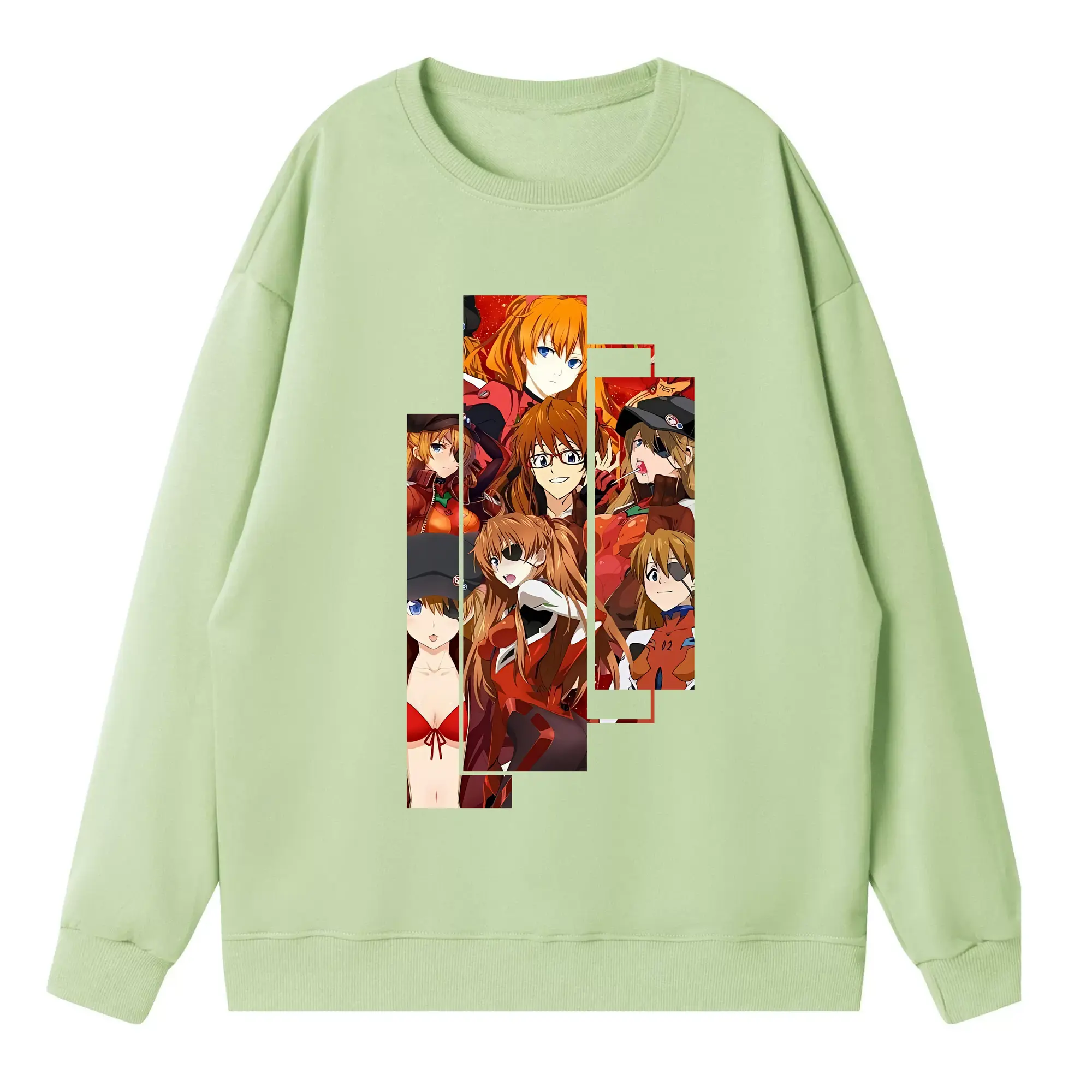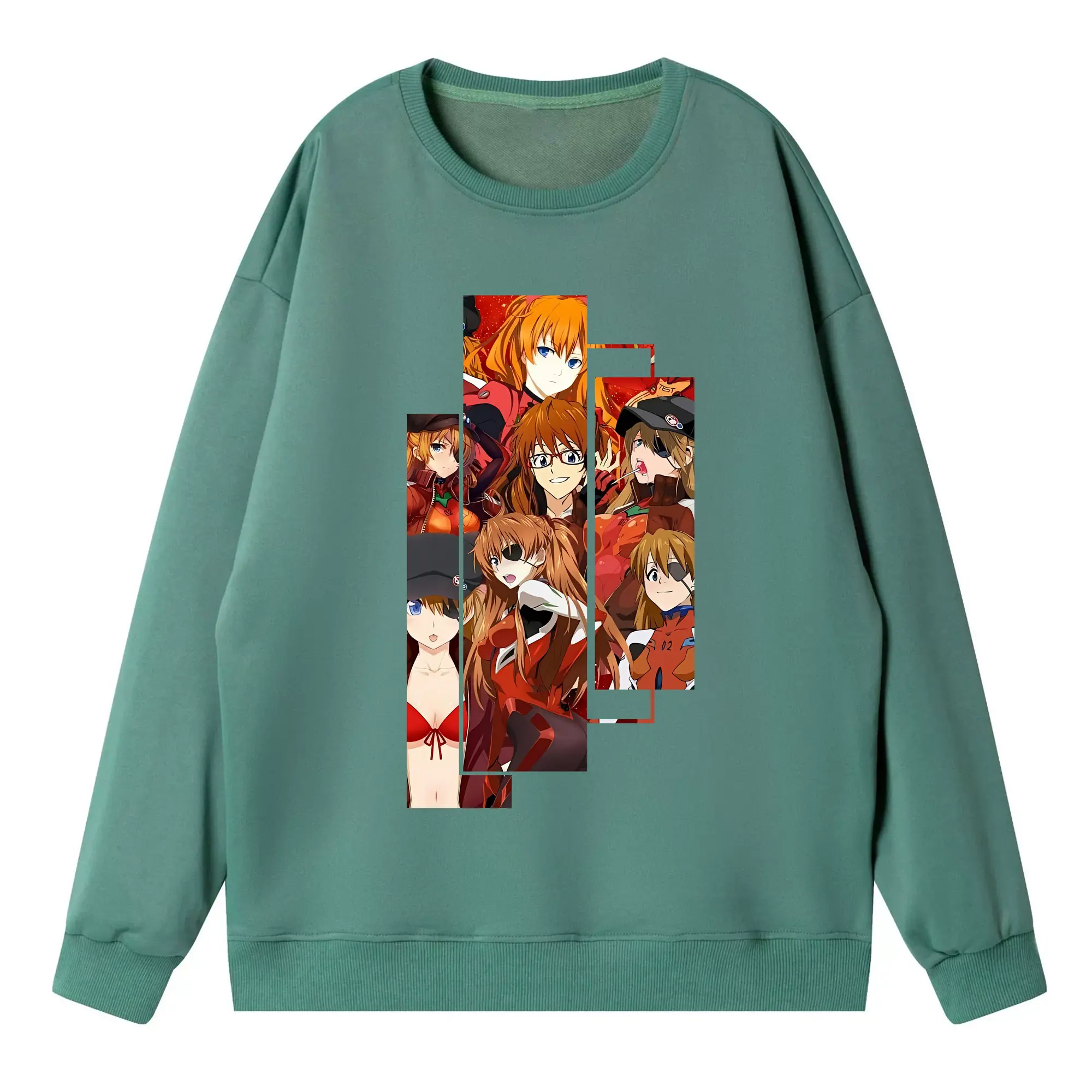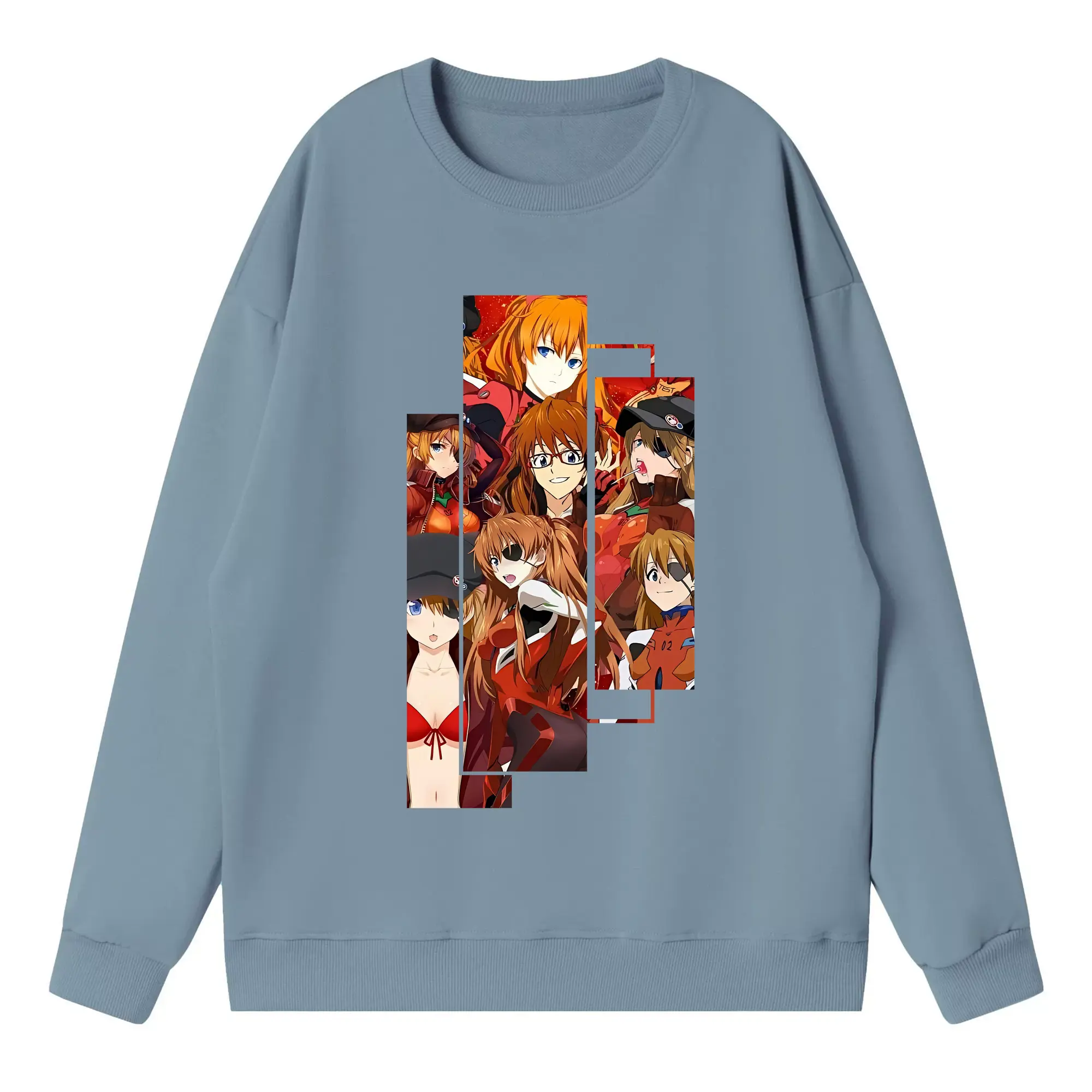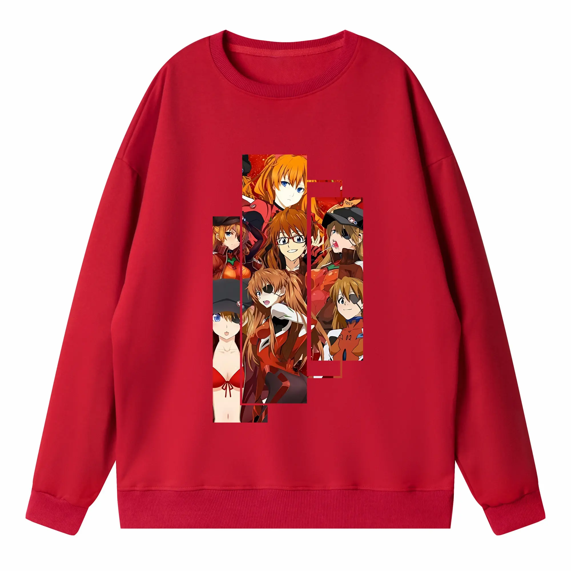 エヴァンゲリオン グッズ,アスカ·ラングレー - 高品質 クルーネック スウェット ・ コットン59% ポリエステル41% ・ ユニセックス 長袖 トレーナー ・ カジュアル デイリー スポーツ 散歩用