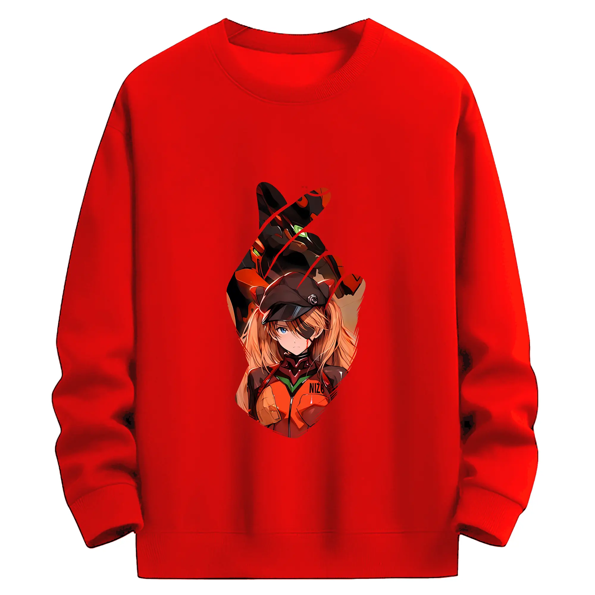エヴァンゲリオン グッズ,アスカ·ラングレー - 高品質 クルーネック スウェット ・ コットン59% ポリエステル41% ・ ユニセックス 長袖 トレーナー ・ カジュアル デイリー スポーツ 散歩用
