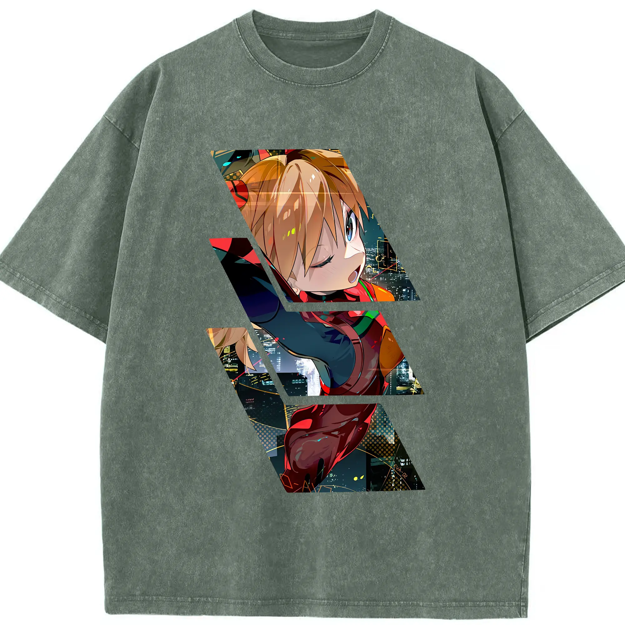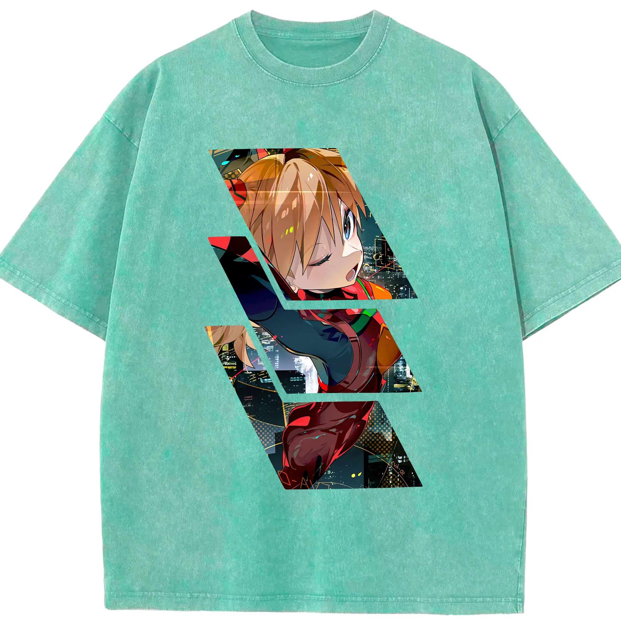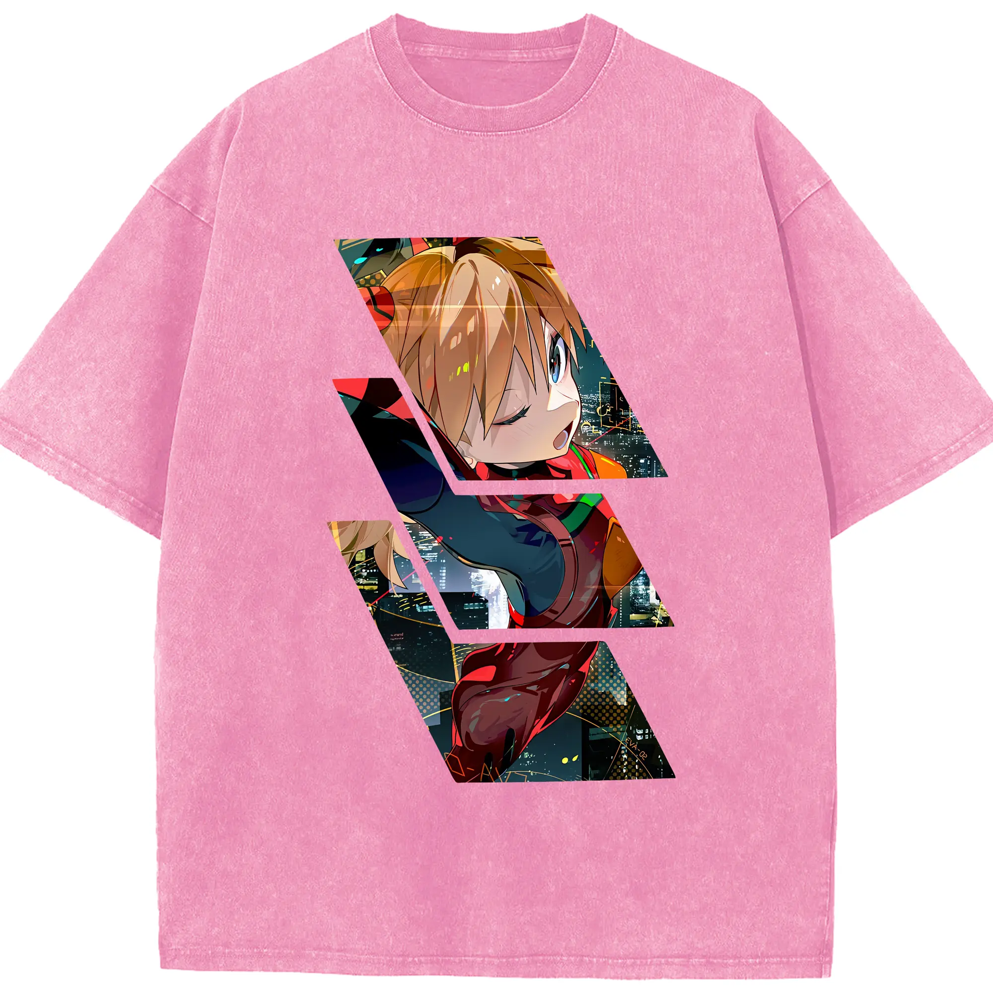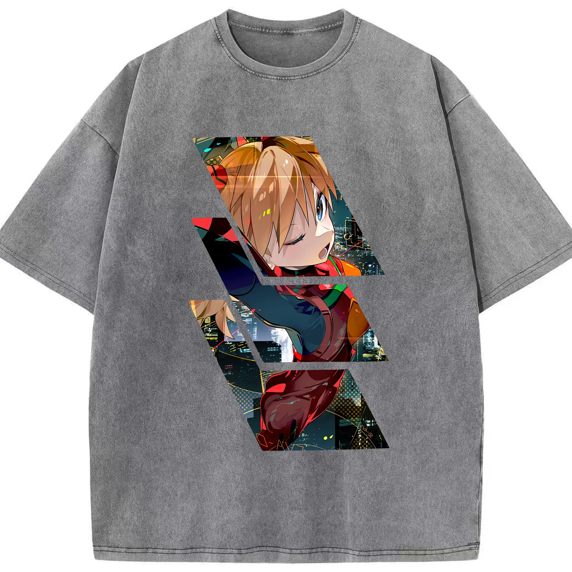 エヴァンゲリオン グッズ,アスカ·ラングレー - 綿100% ヴィンテージ風 半袖Tシャツ ・ 背面プリント ・ 柔らか肌触り ・ 通気性 快適 ・ スポーツ カジュアル 外出用