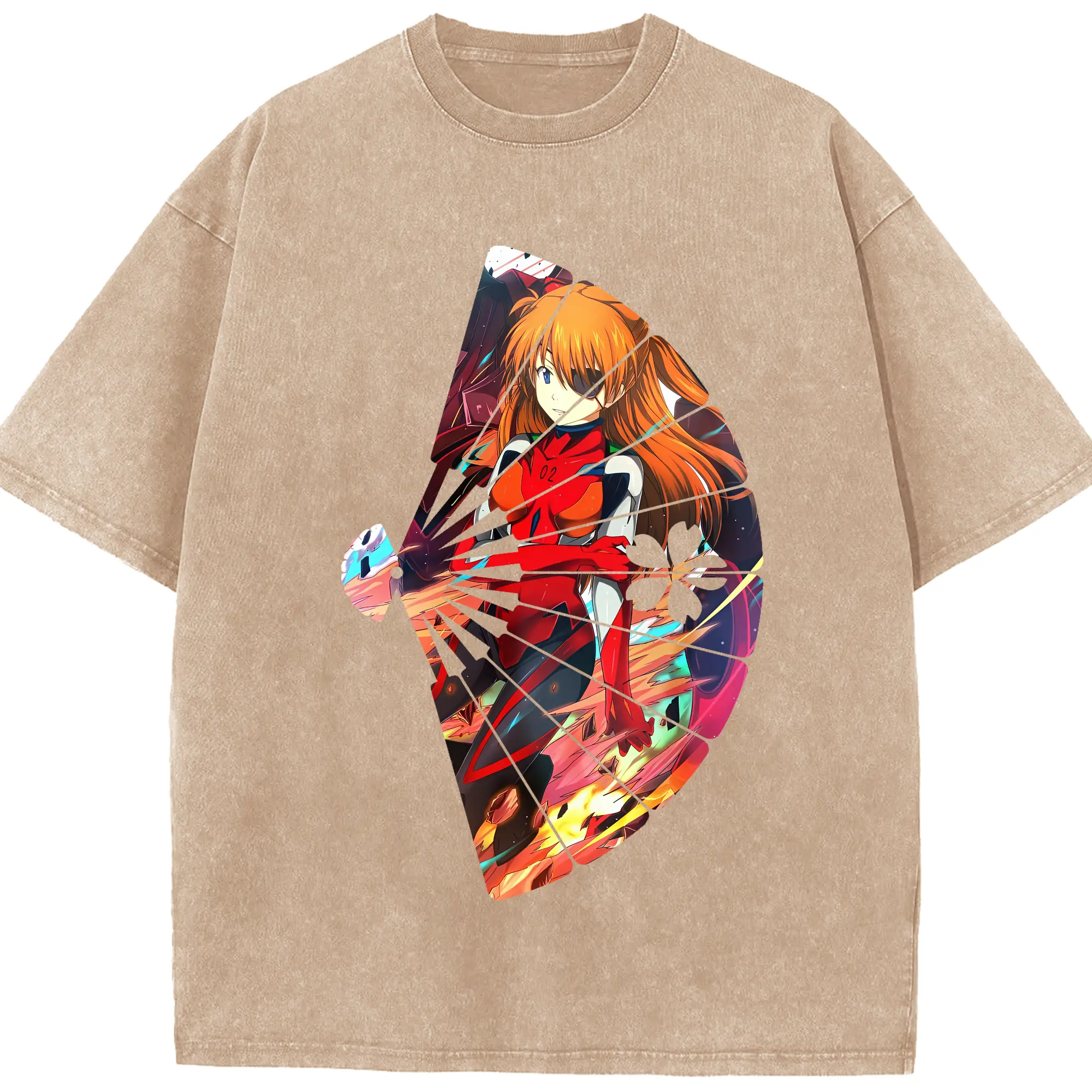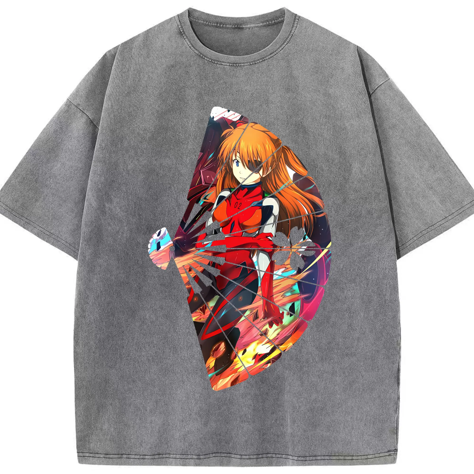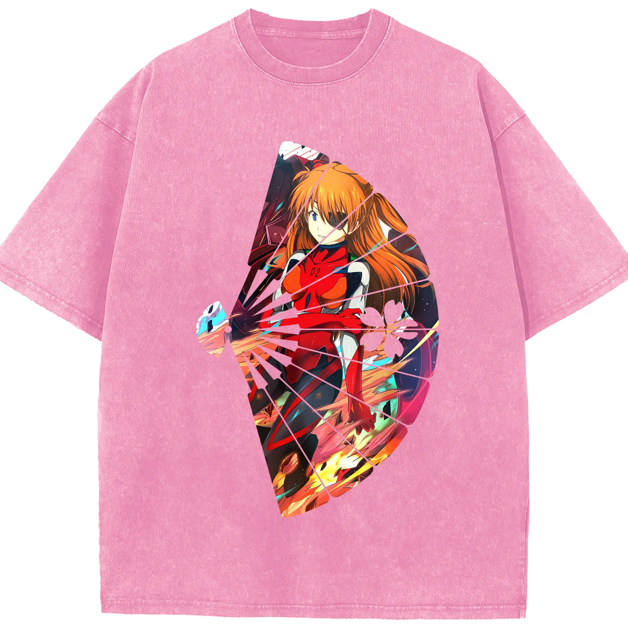 エヴァンゲリオン グッズ,アスカ·ラングレー - 綿100% ヴィンテージ風 半袖Tシャツ ・ 背面プリント ・ 柔らか肌触り ・ 通気性 快適 ・ スポーツ カジュアル 外出用
