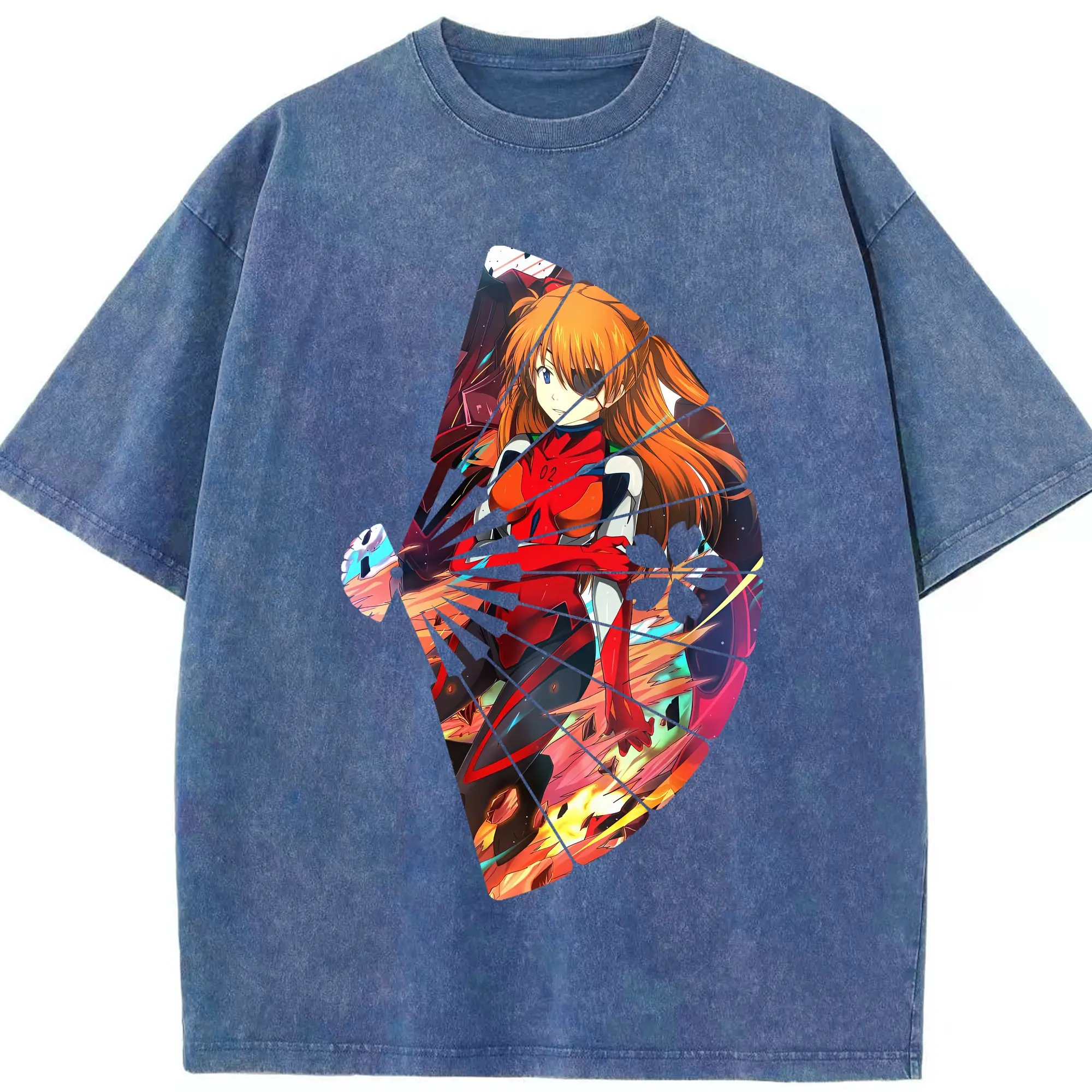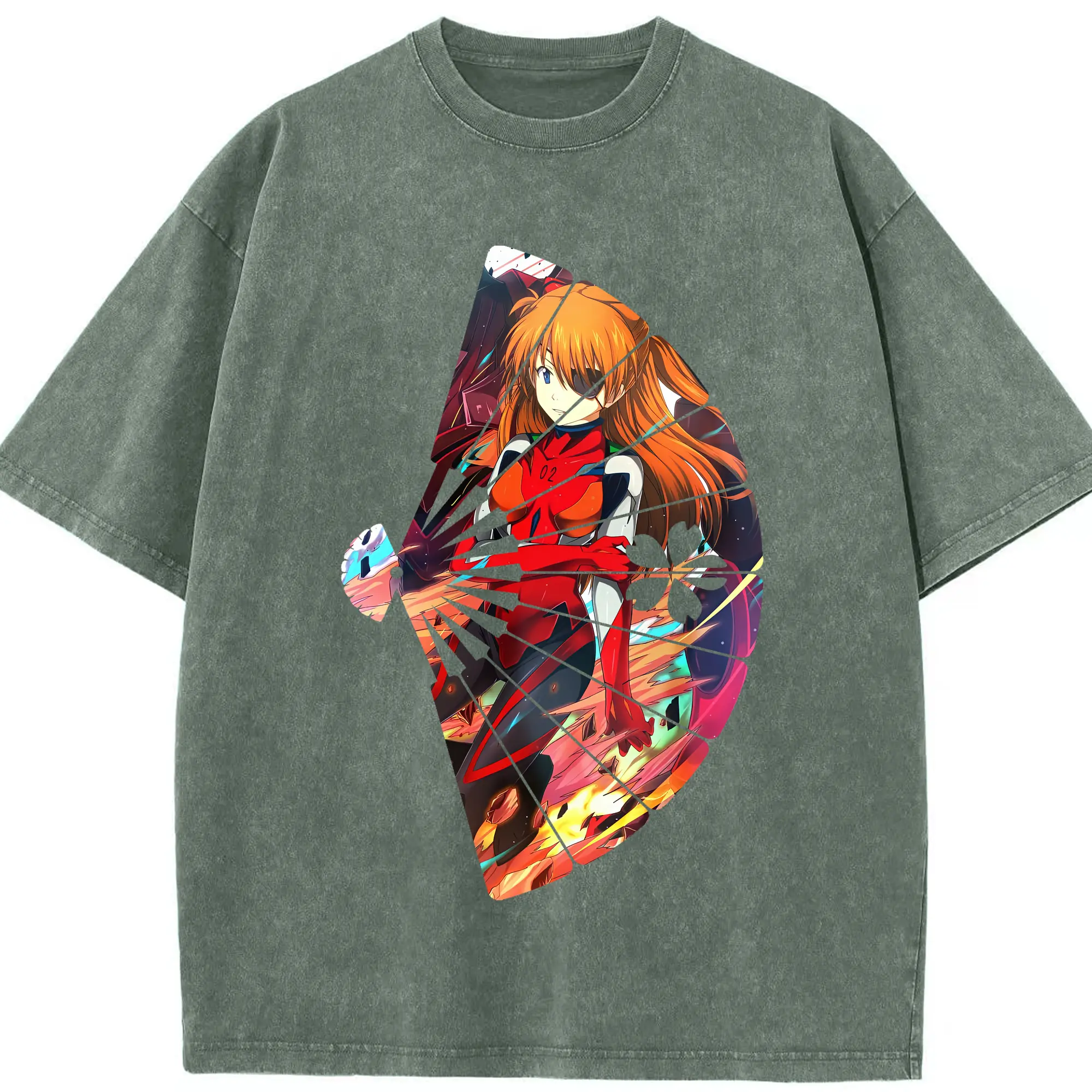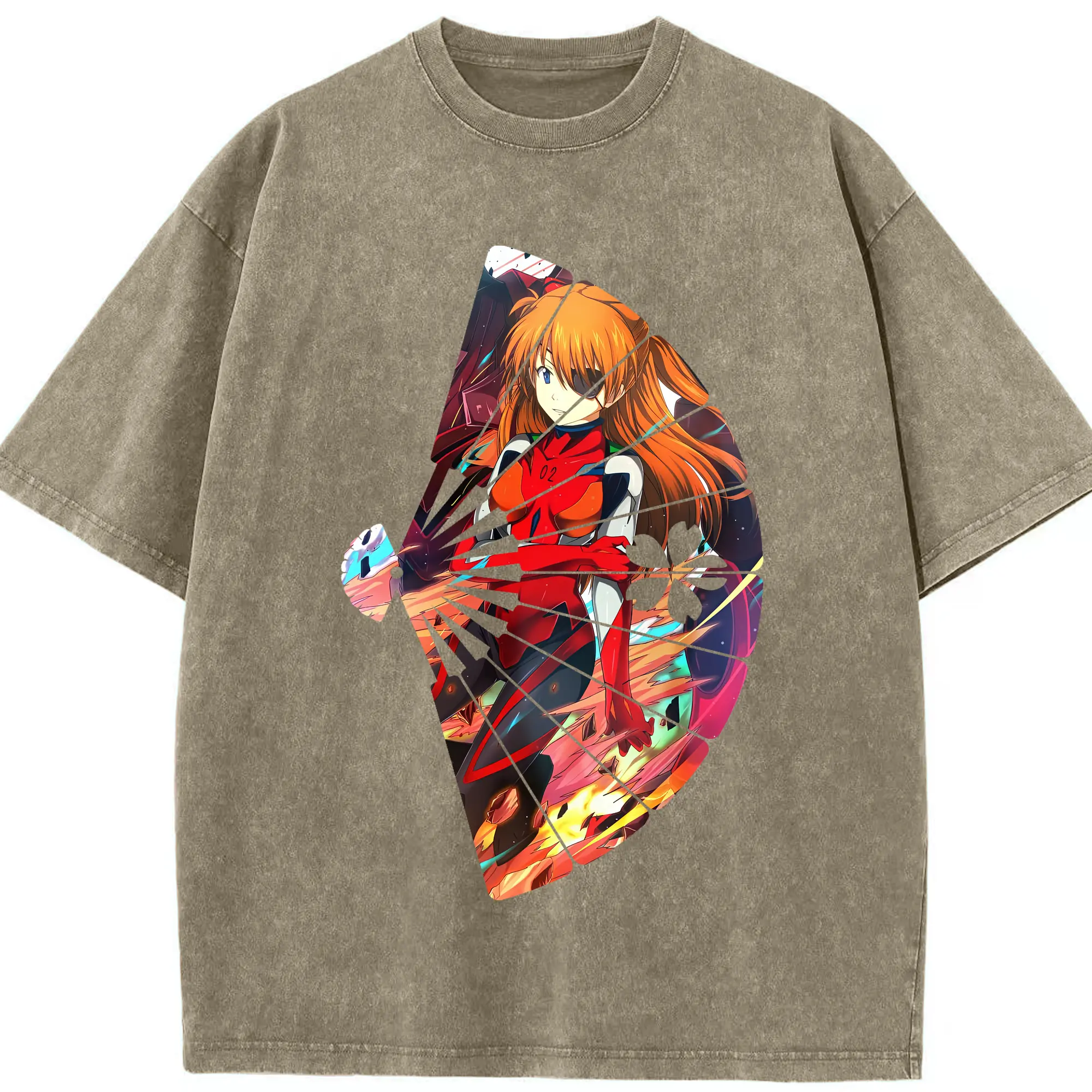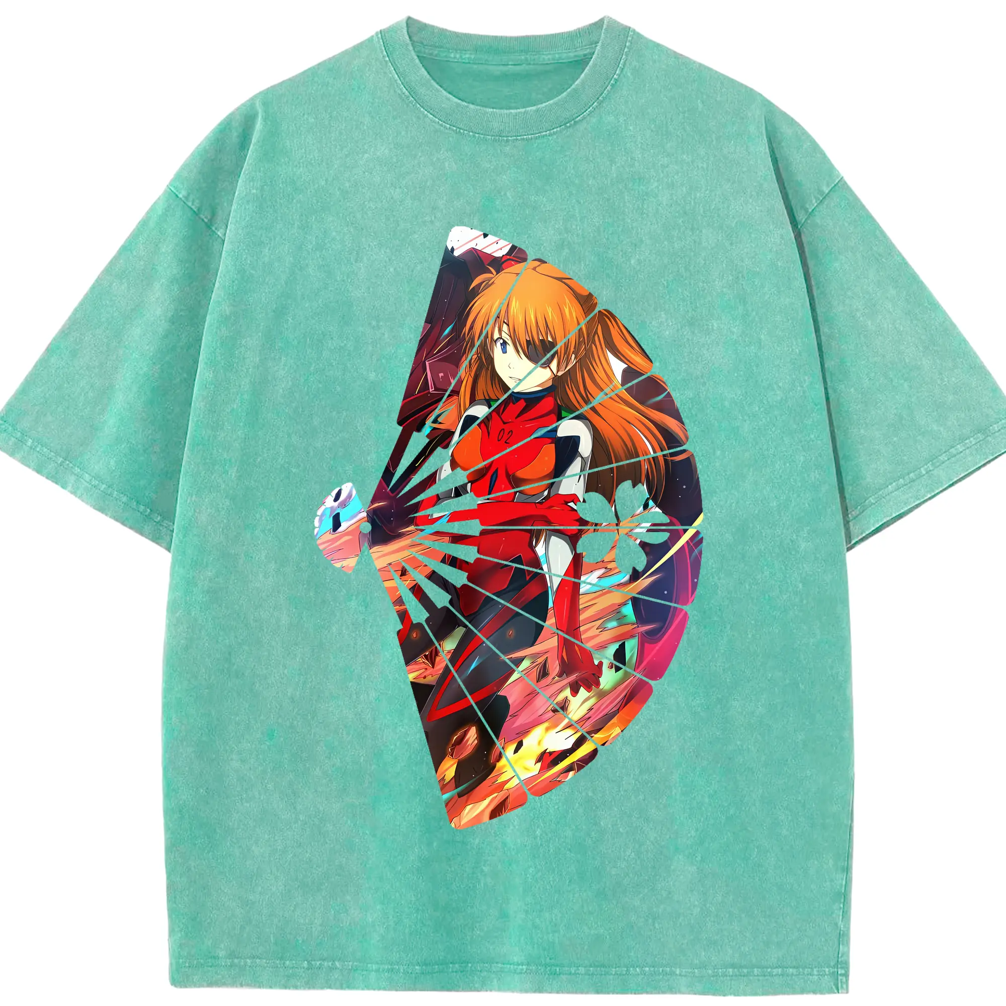 エヴァンゲリオン グッズ,アスカ·ラングレー - 綿100% ヴィンテージ風 半袖Tシャツ ・ 背面プリント ・ 柔らか肌触り ・ 通気性 快適 ・ スポーツ カジュアル 外出用